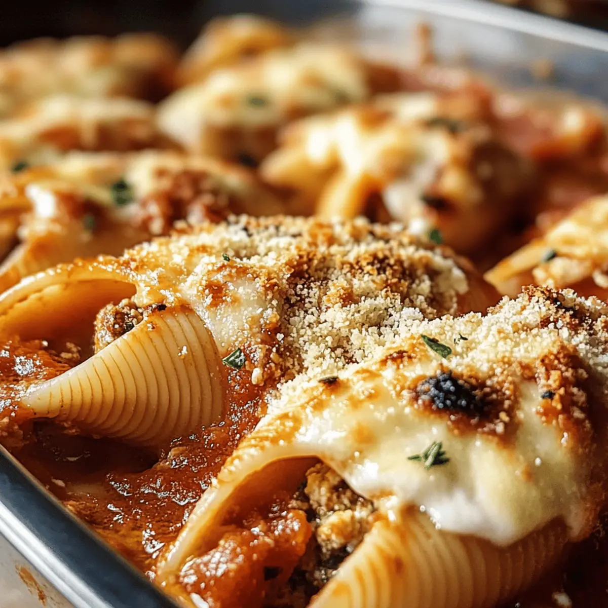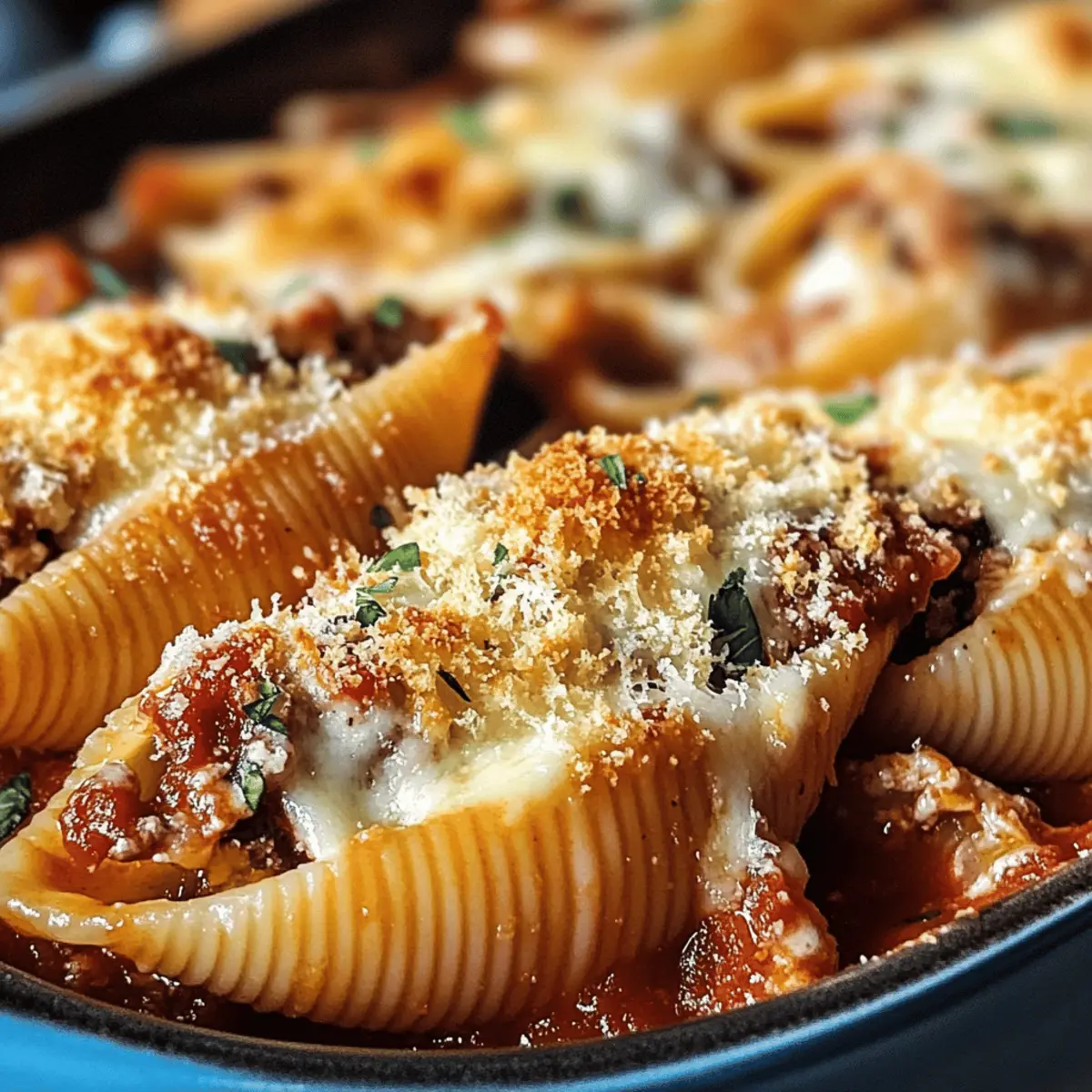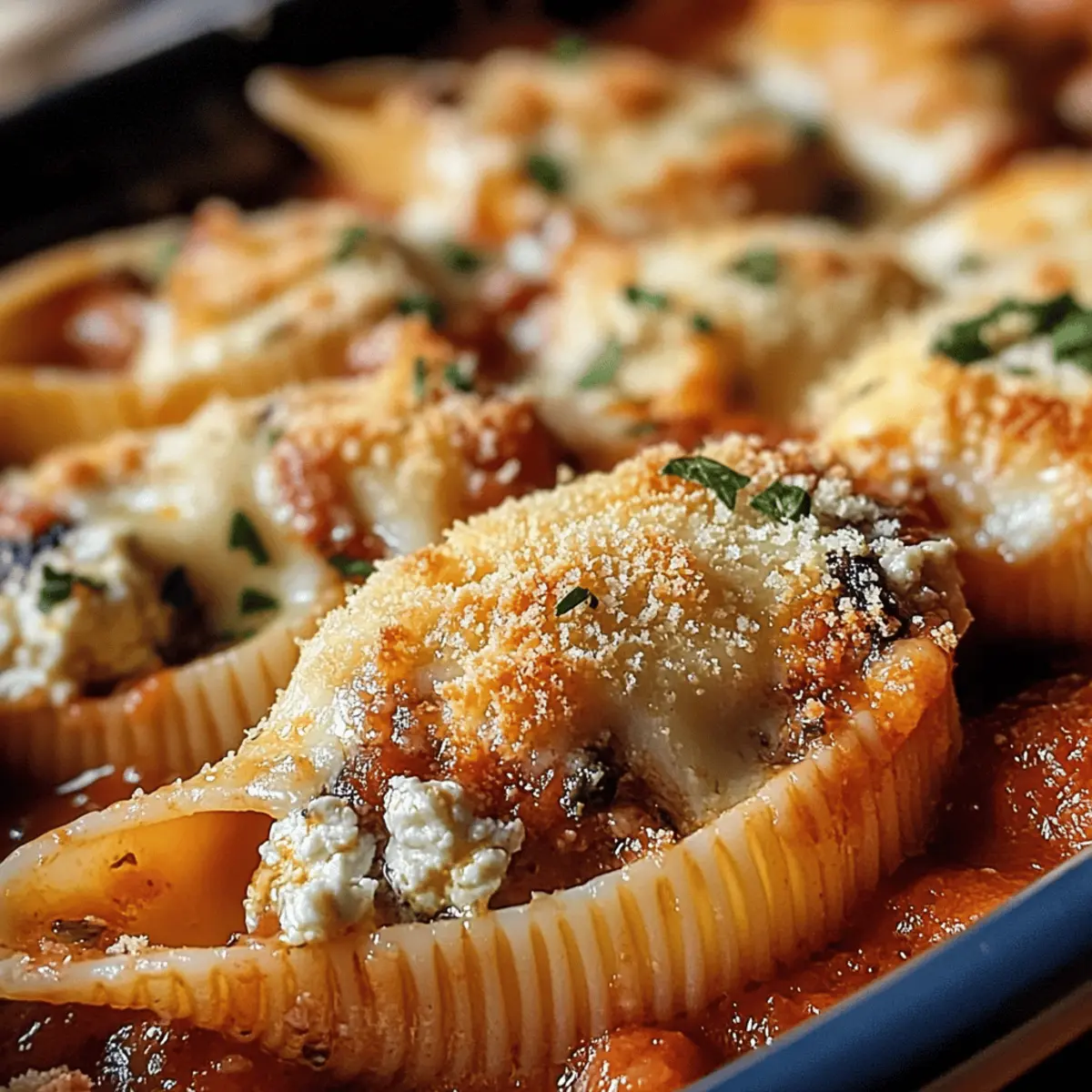 Als ich das erste Mal die köstlichen gefüllten Muscheln mit Käse zubereitet habe, wusste ich sofort, dass sie ein neuer Favorit in meiner Küche werden würden. Diese großen, zarten Muscheln scheinen förmlich darauf zu warten, mit einer cremigen Käsemischung gefüllt zu werden, die beim Backen im Ofen eine wunderbare goldene Kruste bildet. Das Beste an diesem Rezept ist nicht nur der himmlische Geschmack, sondern auch die Tatsache, dass es schnell und einfach zuzubereiten ist – perfekt für ein geselliges Abendessen mit Freunden oder einem entspannten Familienessen. Ob mit einer raffinierten Soße oder in verschiedenen Varianten der Füllung, diese gefüllten Muscheln sind ein wahrhaftiger Crowd-Pleaser! Neugierig, wie du sie Schritt für Schritt nachkochen kannst? Warum sind gefüllte Muscheln so beliebt? Einfachheit: Die Zubereitung ist kinderleicht und erfordert nur grundlegende Kochfähigkeiten – perfekt für Kochanfänger und Profis gleichermaßen. Vielfalt: Du kannst die Füllung nach Belieben anpassen, sei es mit Zucchini, Spinat oder verschiedenen Käsesorten. Entdecke auch meine Tipps für zuckerarme Varianten! Aromatische Kombination: Die Mischung aus frischen Kräutern und cremigem Käse sorgt für ein Geschmackserlebnis, das du nicht vergessen wirst. Geselligkeit: Dieses Gericht bringt Familie und Freunde zusammen – ideal für ein gemeinsames Abendessen oder ein entspanntes Wochenende. Vorbereitung: Du kannst die Muscheln im Voraus zubereiten und im Kühlschrank lagern, ideal für spontane Einladungen! Probiere diese gefüllten Muscheln mit frischem Salat oder knusprigem Knoblauchbrot dazu für ein rundum perfektes Essen. Gefüllte Muscheln mit Käse Zutaten • Für die Füllung: Große Muscheln (z.B. Conchiglie) – Diese sind die Hauptzutat für deine gefüllten Muscheln mit Käse. Alternativ eignen sich auch andere große Pastaformen. Ricotta-Käse – Die cremige Basis, die diese Füllung unvergleichlich macht. Du kannst auch Quark oder Hüttenkäse verwenden für eine andere Textur. Geriebener Parmesan-Käse – Liefert einen herzhaften Geschmack. Du kannst ihn mit Pecorino Romano variieren, um noch mehr Tiefe zu bekommen. Mozzarella-Käse – sorgt für eine wunderbar schmelzende Füllung. Bei Bedarf wechsle zu Gorgonzola für eine würzige Note. Ei – Bindet die Füllung perfekt zusammen. Für eine vegane Option nutze geschrotete Leinsamen als Ei-Ersatz. Knoblauchzehen – Bereiten eine aromatische Basis vor. Frischer Knoblauch hat einen intensiveren Geschmack als das Pulver. Zwiebel – Sorgt für Süße und Aroma in der Füllung. • Für die Soße: Passierte Tomaten – Die Grundlage der köstlichen Soße. Frische Tomaten sind auch möglich, benötigen jedoch mehr Kochzeit. Olivenöl – Für das Anbraten und die Soße selbst, verleiht sie eine feine Geschmacksnote. Getrockneter Oregano & Basilikum – Diese Gewürze bringen Aroma und eine mediterrane Note ins Gericht. Nutze frische Kräuter, wenn du magst. Salz & Pfeffer – Für die Grundwürze der Füllung und Soße, auf deinen Geschmack abgestimmt. • Zum Garnieren: Frische Petersilie – Bringt Farbe und Frische ins Gericht. Optional Spinat – Füge zusätzliches Gemüse und Nährstoffe hinzu, um die Füllung noch gesünder zu gestalten. Schritt-für-Schritt-Anleitung für Gefüllte Muscheln mit Käse Step 1: Pasta kochen Einen großen Topf mit gesalzenem Wasser zum Kochen bringen. Die Muscheln hinzufügen und etwa 8-10 Minuten al dente kochen, bis sie weich, aber noch bissfest sind. Vorsichtig abgießen und unter kaltem Wasser abspülen, um den Kochprozess zu stoppen. Die Muscheln auf einen Teller legen und abkühlen lassen. Step 2: Füllung zubereiten In einer großen Schüssel Ricotta, 100g Parmesan, ein Ei, gehackten Knoblauch und optional Spinat gut vermengen. Mit Salz und Pfeffer abschmecken, um der Füllung den richtigen Geschmack zu verleihen. Rühre alles gründlich, bis eine homogene Mischung entsteht, die cremig und gut gewürzt ist. Step 3: Soße ansetzen In einer Pfanne zwei Esslöffel Olivenöl erhitzen und die gewürfelte Zwiebel bei mittlerer Hitze glasig dünsten, etwa 3-4 Minuten. Gehackten Knoblauch hinzufügen und eine weitere Minute dünsten, bis er aromatisch ist. Dann die passierten Tomaten und getrocknete Kräuter dazugeben und die Mischung etwa 10 Minuten köcheln lassen, bis sie etwas eingedickt ist. Step 4: Backofen vorheizen Heize den Backofen auf 180°C (Ober-/Unterhitze) vor. Das sorgt dafür, dass die gefüllten Muscheln gleichmäßig erhitzt und die Oberseite schön goldbraun wird. Während der Ofen vorheizt, kannst du die Muscheln mit der Füllung befüllen. Step 5: Muscheln füllen Nehme die abgekühlten Muscheln und fülle jede einzelne großzügig mit der vorbereiteten Käsemischung. Achte darauf, dass die Füllung nicht überläuft. Lege die gefüllten Muscheln nebeneinander in eine Auflaufform und verteile die restliche Soße gleichmäßig darüber. Streue dann den restlichen Käse darauf. Step 6: Backen Decke die Auflaufform mit Aluminiumfolie ab und backe die gefüllten Muscheln für etwa 20 Minuten. Entferne die Folie und backe für weitere 10-15 Minuten, bis die Oberseite goldbraun und knusprig ist. Halte ein Auge darauf, um eine Überbrowning zu vermeiden. Step 7: Garnieren und servieren Nehme die gefüllten Muscheln nach dem Backen aus dem Ofen und lasse sie ein paar Minuten ruhen. Vor dem Servieren mit frisch gehackter Petersilie bestreuen, um ein frisches Aroma hinzuzufügen. Sofort heiß genießen und entweder als Hauptgericht oder als köstliche Beilage servieren. Aufbewahrung und Einfrieren von gefüllten Muscheln mit Käse Room Temperature:: Gefüllte Muscheln sollten nicht länger als 2 Stunden bei Raumtemperatur stehen gelassen werden, um die Frische zu bewahren. Fridge:: Du kannst die gefüllten Muscheln bis zu 3 Tage im Kühlschrank aufbewahren. Achte darauf, sie in einem luftdichten Behälter zu lagern, um Austrocknen zu vermeiden. Freezer::