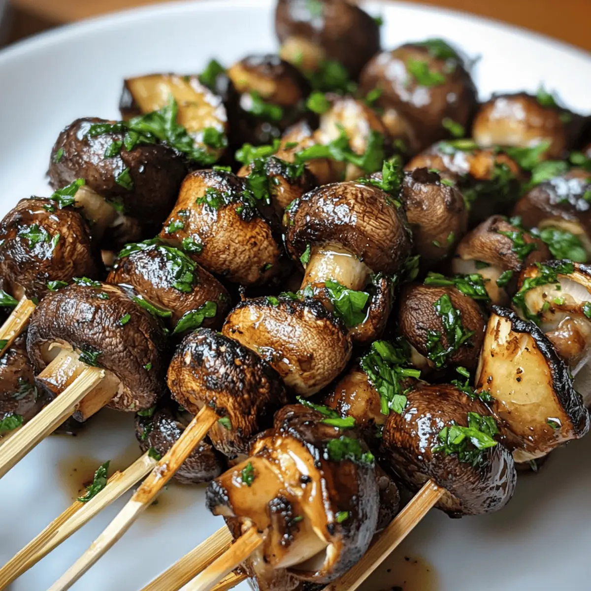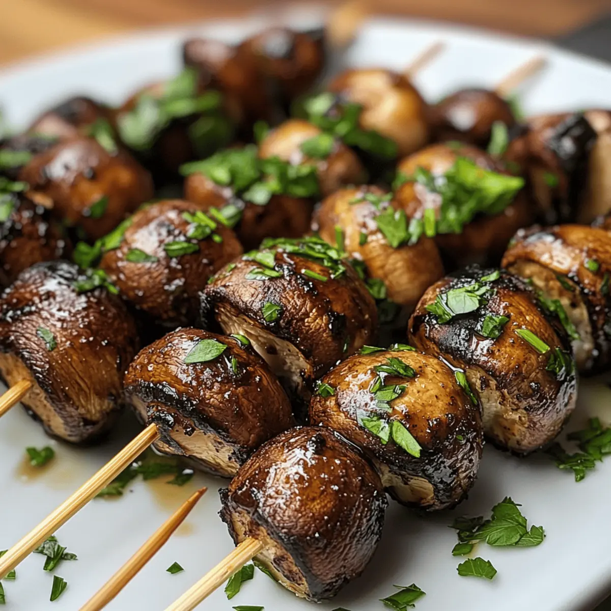 Inmitten des fröhlichen Gesangs der Grill-Zeit gönnte ich mir den verlockenden Genuss von gegrillten marinierten Champignon-Spießen. Diese einfachen, doch köstlichen Spieße zaubern nicht nur in wenigen Minuten ein abwechslungsreiches Gericht auf den Tisch, sondern sind auch eine tolle Idee für gesellige Abende mit Freunden und Familie. Die herzhaften Champignons, die in einer aromatischen Marinade aus Balsamico, Honig und frischen Kräutern schwelgen, bringen frisches Leben in jedes Grillmenü und erinnern an unbeschwerte Sommertage. Einfach zuzubereiten und dabei gesund – diese Spieße sind eine wunderbare vegetarische Option, die nicht nur Ihr Herz, sondern auch das Ihrer Gäste erobern wird! Neugierig, wie Sie mit verschiedenen Marinaden noch kreativ werden können? Warum sind diese Spieße ein Muss? Einfache Zubereitung: Diese gegrillten Champignon-Spieße sind im Handumdrehen fertig, ideal für spontane Grillabende. Vielseitige Marinaden: Experimentieren Sie mit verschiedenen Aromaten wie Rosmarin oder Chili, um jeden Biss spannend zu gestalten. Gesunde Wahl: Mit etwa 150 Kalorien pro Portion sind sie nicht nur köstlich, sondern auch leicht und gesund. Perfekt für Gäste: Sie sind ein Hit auf jeder Feier und überzeugen selbst Fleischliebhaber! Schnell zubereitet: Bereiten Sie sie in nur 40 Minuten zu, was sie zur perfekten Lösung für geschäftige Tage macht. Erinnerungen wachrufen: Diese Spieße bringen den Geschmack des Sommers direkt auf den Teller und wecken schöne Erinnerungen an Grillpartys. Gegrillte marinierte Champignon-Spieße Zutaten • Hinweis: Hier sind die notwendigen Zutaten, um diese köstlichen gegrillten marinierte Champignon-Spieße zuzubereiten. Für die Spieße Frische Champignons – Sie sind die Hauptzutat und sorgen für eine perfekte Textur und umami Geschmack. Achten Sie darauf, sie gründlich zu reinigen. Olivenöl – Bringt Feuchtigkeit und Geschmack; kann durch Avocadoöl ersetzt werden für eine leichtere Option. Balsamico-Essig – Fügt Säure und Tiefe hinzu; kann durch roten Weinessig substituiert werden, wenn nötig. Honig – Balanciert die Säure des Essigs mit einer süßen Note; verwenden Sie für eine vegane Variante Ahornsirup. Dijon-Senf – Gibt der Marinade eine pikante Note; gelber Senf funktioniert auch, bringt aber weniger Komplexität. Knoblauch (gehackt) – Verleiht einen kräftigen Geschmack; frischer Knoblauch wird bevorzugt; Knoblauchpulver kann im Notfall verwendet werden. Getrockneter Oregano – Sorgt für ein aromatisches Kräuteraroma; frischer Oregano kann den Geschmack verbessern, aber die Menge anpassen. Salz und Pfeffer – Unentbehrlich zum Würzen; nach Geschmack anpassen. Holzspieße – Notwendig für das Grillen; mindestens 30 Minuten in Wasser einweichen, um ein Verbrennen zu vermeiden. Diese Zutaten sind perfekt, um die köstlichen gegrillten marinierten Champignon-Spieße zuzubereiten, die in jeder Situation glänzen! Schritt-für-Schritt-Anleitung für Gegrillte marinierte Champignon-Spieße Step 1: Champignons vorbereiten Reinigen Sie die frischen Champignons gründlich mit einem feuchten Tuch, um Schmutz zu entfernen. Schneiden Sie die Enden der Stiele ab, falls notwendig. Diese Vorbereitung sorgt dafür, dass die Champignons optimalen Geschmack und Textur behalten, wenn sie später auf den Grill kommen. Step 2: Marinade zubereiten In einer großen Schüssel kombinieren Sie Olivenöl, Balsamico-Essig, Honig, Dijon-Senf, gehackten Knoblauch, Oregano, Salz und Pfeffer. Rühren Sie die Mischung gut um, bis sie homogen ist. Diese Marinade sorgt für den köstlichen Geschmack der gegrillten marinierten Champignon-Spieße. Step 3: Marinieren Fügen Sie die vorbereiteten Champignons zur Marinade hinzu und stellen Sie sicher, dass sie gleichmäßig bedeckt sind. Decken Sie die Schüssel ab und lassen Sie die Champignons mindestens 30 Minuten im Kühlschrank marinieren, um die Aromen zu intensivieren. Für noch mehr Geschmack können Sie sie bis zu 2 Stunden einziehen lassen. Step 4: Grill vorheizen Heizen Sie den Grill auf mittlere Hitze vor, was etwa 180–200 °C entspricht. Wenn Sie einen Holzkohlegrill verwenden, warten Sie, bis die Kohlen gleichmäßig glühen. Dies sorgt dafür, dass die gegrillten marinierte Champignon-Spieße gleichmäßig garen und eine schöne Farbe entwickeln. Step 5: Champignons aufspießen Nehmen Sie die marinierten Champignons aus der Marinade und spießen Sie sie auf die vorher in Wasser eingeweichten Holzspieße. Achten Sie darauf, genügend Abstand zwischen den Champignons zu lassen, damit die Hitze gut zirkulieren kann und sie gleichmäßig für den Grill vorbereitet sind. Step 6: Spieße grillen Legen Sie die Spieße vorsichtig auf den heißen Grill und grillen Sie sie für etwa 8-10 Minuten. Drehen Sie die Spieße regelmäßig, damit sie gleichmäßig goldbraun werden und zart bleiben. Achten Sie darauf, dass sie nicht übergart werden, um eine trockene Konsistenz zu vermeiden. Step 7: Servieren Entfernen Sie die gegrillten marinierte Champignon-Spieße vom Grill und lassen Sie sie kurz abkühlen. Servieren Sie die Spieße heiß, um das volle Aroma zu genießen. Sie sind eine köstliche vegetarische Option, die perfekt für gesellige Abende ist. Aufbewahrungstipps für Gegrillte marinierte Champignon-Spieße Raumtemperatur: Gegrillte Champignon-Spieße sollten nicht länger als 2 Stunden bei Raumtemperatur stehen gelassen werden, um die Frische zu bewahren. Kühlschrank: Im Kühlschrank können die Spieße in einem luftdichten Behälter bis zu 3 Tage aufbewahrt werden, um ihren Geschmack und ihre Zartheit zu erhalten. Einfrieren: Die Spieße können bis zu 2 Monate im Gefrierfach aufbewahrt werden; vakuumieren Sie sie zur optimalen Frische. Wiedererwärmung: Zum Erwärmen die Spieße im Ofen bei 180 °C für 10-15 Minuten backen oder auf dem Grill erhitzen, um die Aromen zu reaktivieren. Zeitsparendes Vorbereiten der gegrillten marinierten Champignon-Spieße Diese geg