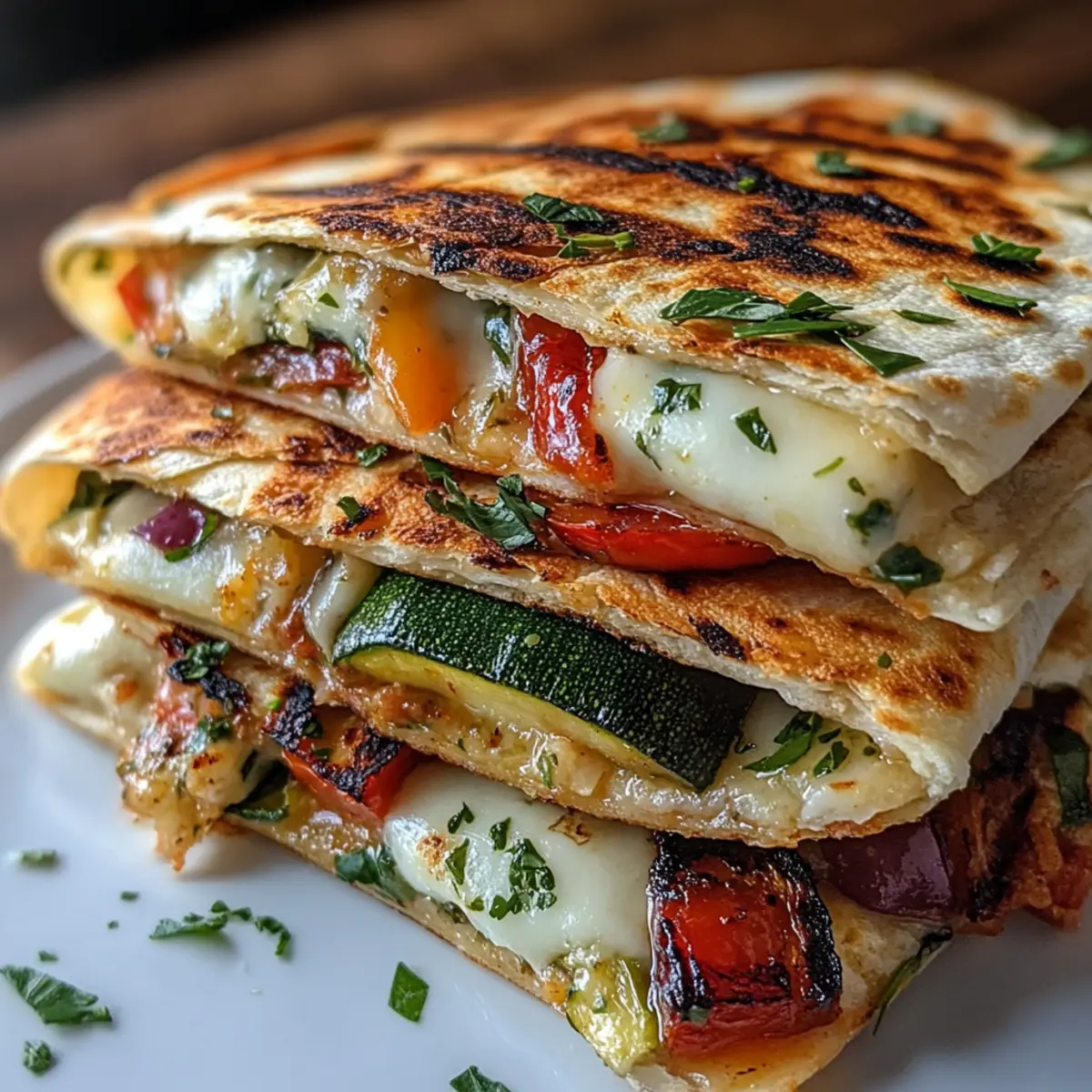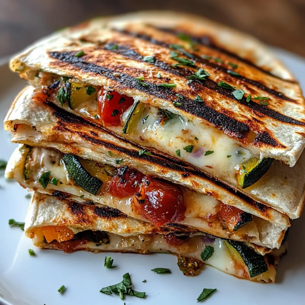 Das Gesicht meines Freundes verwandelte sich in pure Begeisterung, als ich ihm die ersten Gegrillten mediterranen Gemüse-Quesadillas servierte. Diese köstlichen Quesadillas sind nicht nur ein Genuss für die Sinne, sie sind auch eine echte Zeitersparnis und perfekt für stressige Wochentage. In weniger als 20 Minuten bringt ihr sie auf den Tisch und verwöhnt eure Liebsten mit einer farbenfrohen Mischung aus frischem Gemüse und schmelzendem Käse. Egal, ob es um ein unkompliziertes Familienessen oder eine nette Zusammenkunft mit Freunden geht, diese Gegrillten mediterranen Gemüse-Quesadillas sind immer ein Hit. Seid ihr bereit, diese schmackhaften Leckerbissen auszuprobieren und euer nächstes Abendessen aufzupeppen? Warum wirst du diese Quesadillas lieben? Schnelligkeit: In weniger als 20 Minuten zauberst du ein fantastisches Gericht. Perfekt für eilige Abende! Frische Zutaten: Eine bunte Mischung aus frischem Gemüse bringt Farbe und Geschmack auf den Tisch. Du kannst auch mit Resten experimentieren! Vielseitigkeit: Diese Quesadillas sind anpassbar! Ob Käse zusätzlich variieren oder andere Gemüsesorten verwenden, du kannst sie nach deinem Geschmack gestalten. Gesunde Wahl: Mit gesunden Zutaten wie Spinat und Oliven werden sie zu einem leichteren Genuss. Um deine Quesadillas noch besser zu machen, serviere sie mit einem erfrischenden Tzatziki-Dip! Gegrillte mediterrane Gemüse-Quesadillas Zutaten • Um das beste Geschmackserlebnis zu erzielen, stelle sicher, dass alle Zutaten frisch sind. Für die Quesadilla Mehltortillas – Sie bilden die Basis; du kannst auch Vollkorn- oder glutenfreie Varianten verwenden. Geriebener Käse (Mozzarella oder Provolone) – Sorgt für die perfekte Schmelze; alternativ kannst du Cheddar für einen anderen Geschmack nutzen. Krümeliger Feta – Verleiht eine würzige Note und cremige Textur. Zucchini – Bietet einen frischen, leicht süßlichen Geschmack; ersetzbar durch Auberginen oder Pilze. Rote Paprika – Bringt Süße und Crunch. Rote Zwiebel – Fügt Geschmack und milde Süße hinzu; kann durch gelbe Zwiebel ersetzt werden. Olivenöl – Zum Anbraten der Gemüse und für gesunde Fette. Getrocknete Tomaten – Intensiviert den Geschmack und sorgt für Abwechslung. Kalamata-Oliven – Fügt eine salzige Note hinzu. Getrockneter Oregano – Betont das mediterrane Aroma. Salz und Pfeffer – Grundgewürze für den Geschmack. Frischer Spinat oder Rucola (optional) – Sorgt für zusätzliche Frische und Nährstoffe. Bereite dich darauf vor, auf eine Geschmacksexplosion in deinen Gegrillten mediterranen Gemüse-Quesadillas zu stoßen! Schritt-für-Schritt-Anleitungen für Gegrillte mediterrane Gemüse-Quesadillas Step 1: Pfanne vorheizen Erhitze eine große Grillpfanne oder beschichtete Pfanne bei mittlerer Hitze für etwa 3-5 Minuten. Ein gut vorgeheiztes Kochgeschirr ist entscheidend, um eine schöne, knusprige Textur für deine Gegrillten mediterranen Gemüse-Quesadillas zu erreichen. Du solltest die Pfanne fühlbar warm an deiner Hand spüren, bevor du fortfährst. Step 2: Gemüse anbraten In einer Schüssel, vermische die in Scheiben geschnittene Zucchini, rote Paprika und rote Zwiebel mit einem Esslöffel Olivenöl sowie einer Prise Salz, Pfeffer und getrocknetem Oregano. Sauté diese Mischung für 3-4 Minuten in der heißen Pfanne, bis das Gemüse leicht weich, aber immer noch knackig ist und sich ihr Aroma entfaltet. Step 3: Tortilla vorbereiten Lege eine Mehltortilla in die vorgeheizte Pfanne. Streue die Hälfte des geriebenen Käses gleichmäßig auf eine Hälfte der Tortilla. Achte darauf, dass der Käse gut verteilt ist, um das Schmelzen zu fördern, während du die Gegrillten mediterranen Gemüse-Quesadillas zubereitest. Step 4: Füllung hinzufügen Mit einem Löffel die saftigen, sautierten Gemüse, gehackte getrocknete Tomaten, geschnittene Kalamata-Oliven und den zerbröckelten Feta gleichmäßig auf den Käse schichten. Wenn du möchtest, füge frischen Spinat oder Rucola hinzu, um deinen Quesadillas etwas Frische zu verleihen. Step 5: Käse und Tortilla zusammensetzen Streue den restlichen Käse auf das Gemüse und klappe die Tortilla vorsichtig in der Mitte zu. Drücke die Ränder leicht an, um sicherzustellen, dass die Füllung beim Braten nicht herausfällt. Die Kombination aus Käse und Gemüse macht deine Gegrillten mediterranen Gemüse-Quesadillas besonders schmelzig und köstlich. Step 6: Tortilla grillen Brate die gefüllte Tortilla für etwa 2-3 Minuten auf jeder Seite, indem du sie sanft mit einem Spachtel leicht andrückst. Achte darauf, dass sie goldbraun und knusprig wird, während der Käse schmilzt. Halte die Tortilla im Auge, um ein Anbrennen zu verhindern, und genieße den köstlichen Duft, der aufsteigt. Step 7: Servieren und genießen Nimm die Gegrillten mediterranen Gemüse-Quesadillas aus der Pfanne und lass sie kurz abkühlen. Mit einem scharfen Messer in Keile schneiden und warm servieren. Diese Quesadillas sind perfekt für jede Gelegenheit und werden mit einem Dip wie Tzatziki fantastische Geschmackserlebnisse bieten. Expert Tips für Gegrillte mediterrane Gemüse-Quesadillas Gemüse vorbereiten: Achte darauf, dass die Gemüse gleichmäßig geschnitten sind, damit sie gleichmäßig garen und die perfekte Konsistenz erreichen. Käse schmelzen: Verwende eine Kombination von Käsesorten für zusätzlichen Geschmack. Sobald der Käse gut geschmolzen ist, entfalten sich die Aromen in den Gegrillten mediterranen Gemüse-Quesadillas besonders gut. Wenden der Tortilla: Sei vorsichtig beim Wenden! Eine gut aufgeheizte Pfanne sorgt dafür, dass die Quesadillas knusprig bleiben, ohne zu verbrennen. Anpassungen: Experimentiere mit verschiedenen Kräutern oder Gewürzen, um deinen Quesadillas einen personalisierten Flair zu verleihen. Serviervorschläge: Besonders gut schmecken die Quesadillas mit einem frischen Dip, wie Tzatziki oder Hummus, was das Geschmackserlebnis abrundet. Was passt gut zu Gegrillten mediter