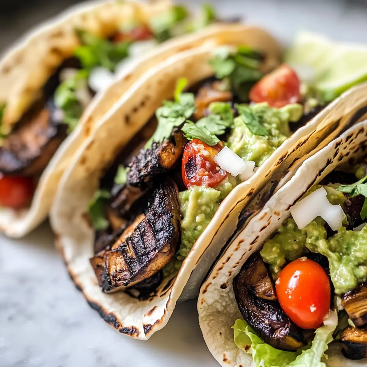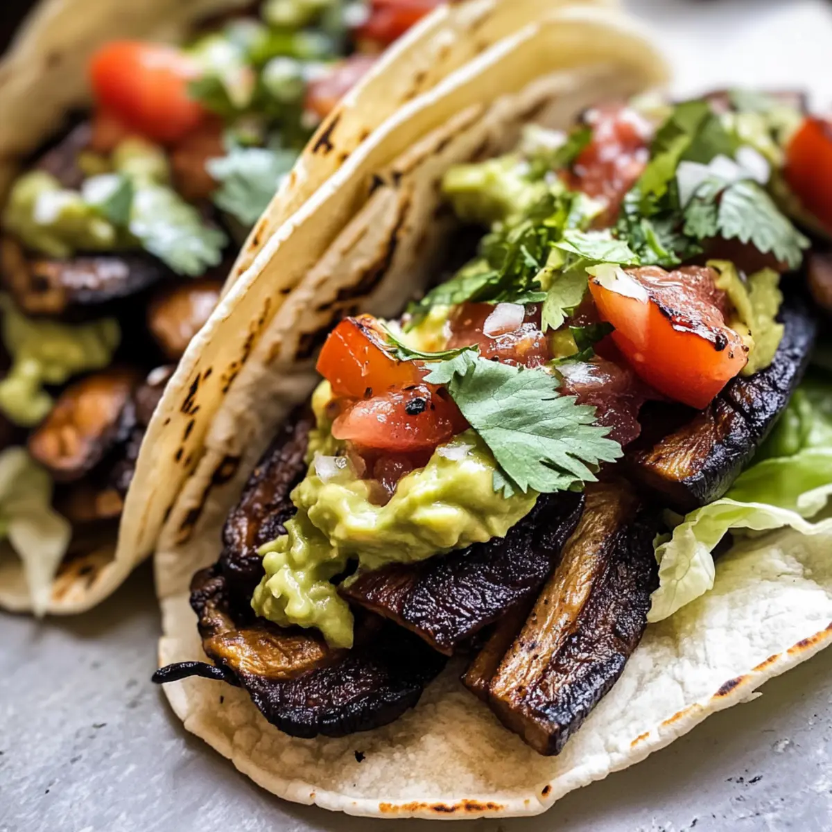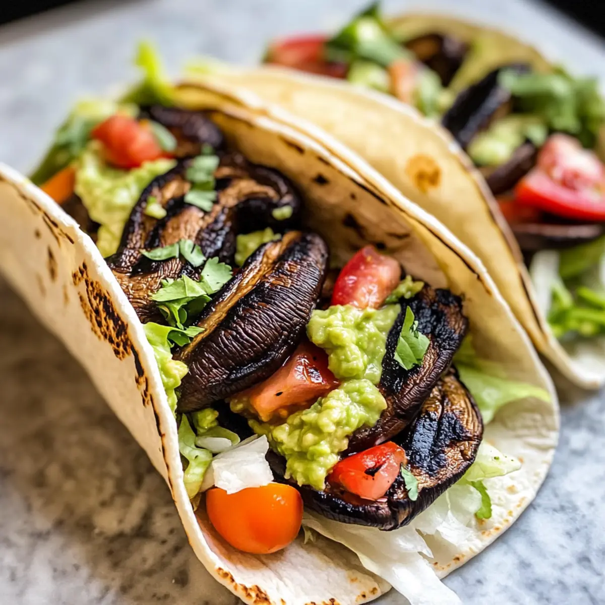 Beim Grillen von Portobello-Pilzen wird der Sommer auf Pfanne und Teller lebendig! Diese gegrillten Portobello-Pilz-Tacos sind nicht nur ein festliches Erlebnis für den Gaumen, sondern auch eine gesunde, vegetarische Option, die selbst eingefleischte Fleischliebhaber begeistern wird. Mit einer schnellen Zubereitungszeit und einfachen Zutaten sind sie perfekt für spontane Grillabende oder entspannte Familientreffen. Das rauchige Aroma der nach dem Grillen zarten Pilze, gepaart mit cremiger Guacamole und frischen Beilagen, macht jeden Biss zu einem Genuss. Also, was steht bei dir auf dem Grill? Warum sind diese Tacos so einzigartig? Saisonal, frisch und gesund: Diese gegrillten Portobello-Pilz-Tacos sind die ideale Sommermahlzeit, die nicht nur frisch, sondern auch vollgepackt mit gesunden Zutaten ist. Sie sind einfach zuzubereiten und benötigen nur grundlegende Kochfähigkeiten—was sie perfekt für jedes Grillfest macht. Vielfalt für jeden Geschmack: Variiere die Zutaten ganz nach deinem Belieben! Von Avocado bis zur Auswahl der Toppings kannst du deiner Kreativität freien Lauf lassen. Ein Genuss für alle: Selbst die überzeugendsten Fleischliebhaber werden von dem rauchigen Geschmack und der herzhaften Textur überzeugt sein. Und für noch mehr Inspiration schau dir unsere Wissenswertes über Tacos an! Gegrillte Portobello-Pilz-Taco Zutaten Für ein unvergleichliches Geschmackserlebnis, das voller gesunder Zutaten steckt! Für die Marinade • Portobello-Pilze – Sie sind die Hauptzutat und verleihen den Tacos eine fleischige Textur. Verwende große Pilze für die perfekte Taco-Größe. • Gemahlener Kreuzkümmel – Dieser bringt Wärme und erdige Noten ins Spiel. Alternativ kannst du auch Taco-Gewürz verwenden. • Knoblauchpulver – Verstärkt den Umami-Geschmack. Frischer Knoblauch sorgt für intensivere Aromen. • Chili-Pulver – Fügt eine milde Schärfe hinzu. Tausche gegen Paprika aus, wenn du es weniger würzig magst. • Rauchpaprika – Dieser verleiht den Tacos den unverwechselbaren rauchigen Geschmack, der für ein Grillvergnügen sorgt. Reguläre Paprika ist ein weniger rauchiger Ersatz. • Salz & Pfeffer – Sorgt für den perfekten Geschmacksausgleich. Nach Wunsch anpassen. • Zitronensaft – Bringt Frische in die Marinade. Ersetze ihn durch Limettensaft für einen anderen Kick. • Olivenöl – Dient als Basis für die Marinade und sorgt für eine reichhaltige Textur. Avocadoöl kann ebenfalls verwendet werden. Für die Guacamole • Avocado – Sorgt für eine cremige Konsistenz und perfekten Geschmack. Ersetze sie durch saure Sahne für eine andere Note. • Knoblauch (für Guacamole) – Frische und Geschmack; du kannst auch Knoblauchpulver verwenden, wenn es schnell gehen muss. • Limettensaft (für Guacamole) – Verhindert das Braunwerden der Avocado und fügt Geschmack hinzu. Für die Tacos • Mehl-Tortillas – Die perfekte Hülle für die Tacos, die Struktur geben. Mais-Tortillas sind glutenfrei und eine gute Alternative. • Eisbergsalat – Bringt einen knackigen Biss. Tausche ihn gegen andere Blattgemüse aus, wenn gewünscht. • Cherrytomaten – Verleihen Frische und Süße. Du kannst sie durch gewürfelte rote Zwiebeln ersetzen für mehr Crunch. • Griechischer Joghurt oder saure Sahne – Cremer Topping für mehr Reichhaltigkeit; pflanzliche Alternativen sind eine großartige Option für eine milchfreie Variante. • Rote Zwiebel – Bringt Schärfe und Crunch ins Spiel; verwende weiße Zwiebel für einen milderen Geschmack. • Koriander – Ein frisches Kräutergarnitur, das die Aromen verstärkt; lass ihn weg, wenn du es weniger kräuterig magst. • Limettenviertel – Serviere sie frisch, um einen zusätzlichen Spritzer über die Tacos zu geben. Mit diesen Zutaten verwandelst du dein nächstes Grillfest in ein veganes Festmahl. Die gegrillten Portobello-Pilz-Tacos werden sowohl deine Familie als auch Freunde begeistern! Schritt-für-Schritt-Anleitung für Gegrillte Portobello-Pilz-Tacos Step 1: Marinade zubereiten In einer kleinen Schüssel vermischst du die Zutaten für die Marinade: gemahlener Kreuzkümmel, Knoblauchpulver, Chili-Pulver, Rauchpaprika, Salz, Pfeffer, Zitronensaft und Olivenöl. Rühre die Mischung gut durch, bis alle Zutaten gleichmäßig kombiniert sind. Diese würzige Marinade wird den gegrillten Portobello-Pilzen eine elegante Geschmacksfülle verleihen. Step 2: Pilze marinieren Nimm die Portobello-Pilze und tauche sie in die vorbereitete Marinade, wende sie gründlich, sodass sie gleichmäßig bedeckt sind. Lasse die marinierten Pilze mindestens 30 Minuten bei Raumtemperatur ruhen, damit sie die Aromen aufnehmen können. Diese Wartezeit intensiviert den Geschmack und bereitet die Pilze optimal für den Grill vor. Step 3: Guacamole vorbereiten Während die Pilze marinieren, kannst du die Guacamole zubereiten. Misse eine reife Avocado in eine Schüssel, füge frisch gepressten Limettensaft, gehackten Knoblauch sowie eine Prise Salz und Pfeffer hinzu. Püriere alles mit einer Gabel, bis die Mischung cremig ist. Setze die Guacamole beiseite, um die Aromen verschmelzen zu lassen. Step 4: Grill vorheizen Heize den Grill auf hohe Temperatur vor. Lass ihn einige Minuten ohne Deckel laufen, bis er vollständig aufgeheizt ist. Reduziere dann die Hitze auf mittelhoch, um die perfekte Grillbedingung für die Portobello-Pilze zu schaffen. Achte darauf, dass die Grillroste gut geölt sind, um ein Ankleben der Pilze zu verhindern. Step 5: Pilze grillen Platziere die marinierten Portobello-Pilze mit der glänzenden Seite nach unten auf dem Grill. Grille die Pilze für etwa 6 Minuten, bis sie schöne Grillspuren zeigen und weich werden. Wende die Pilze vorsichtig und grille die andere Seite ebenfalls für weitere 6 Minuten. Sie sollten zart sein und einen köstlichen rauchigen Geschmack entwickeln. Step 6: Tortillas erwärmen Während die Pilze auf dem Grill sind, kannst du die Tortillas vorbereiten. Lege sie auf den Grill 