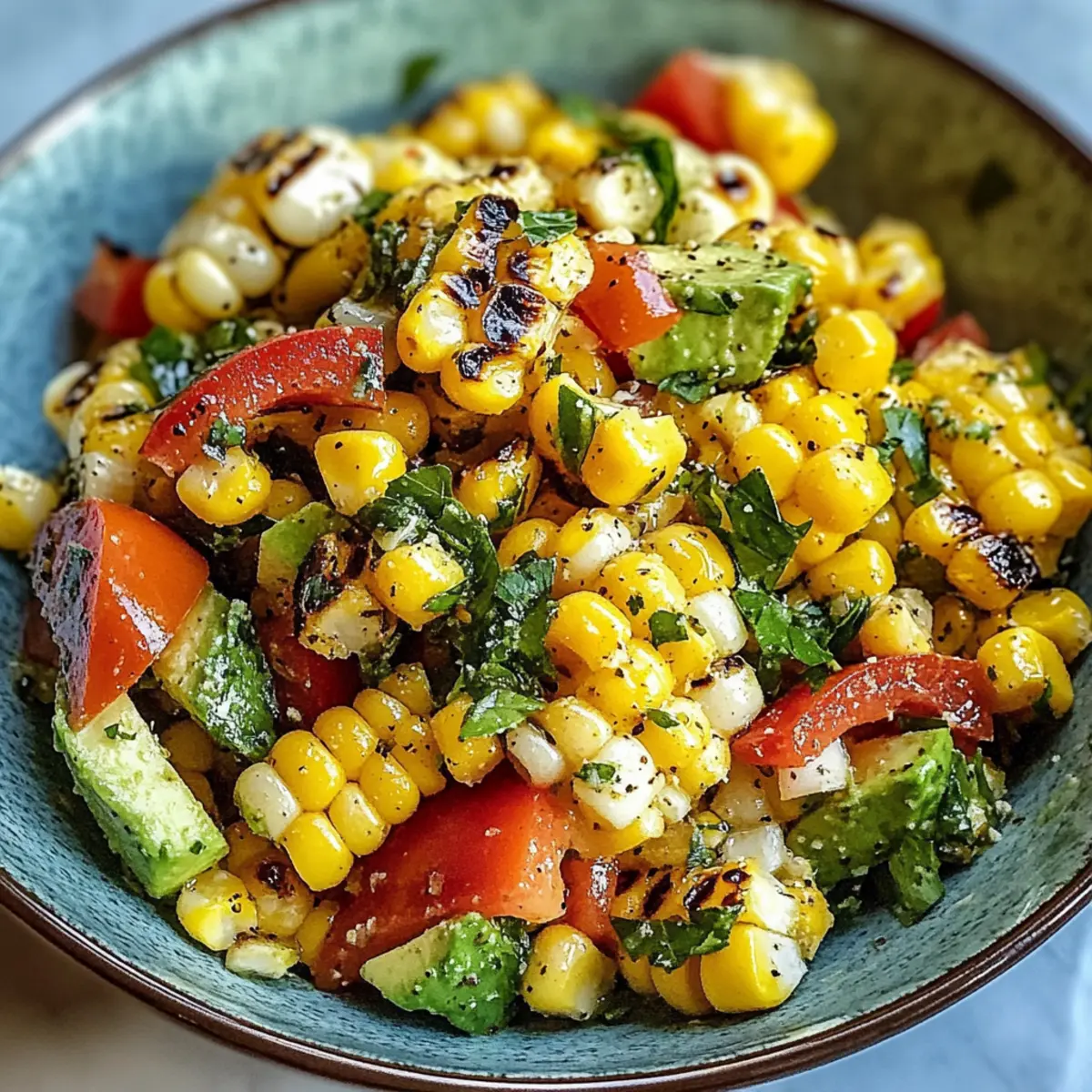 Der Grill surrt, während der Duft von frisch gegrilltem Gemüse in der Luft liegt – genau das, was ich an Sommerabenden liebe! Heute teile ich mit euch das Rezept für meinen köstlichen Gegrillten Maissalat. Diese erfrischende Beilage vereint süße, rauchige Maiskörner mit knackigem Gemüse und einer spritzigen Vinaigrette, perfekt für Grillpartys oder Taschen voller Picknickfreunde. Ein großer Vorteil ist, dass der Salat blitzschnell zubereitet ist und sich hervorragend als gesunde, schmackhafte Beilage zu euren Lieblingsgerichten anbietet. Die Kombination aus frischen Kräutern und einer Prise Gewürzen wird sicherlich jeden Gaumen erfreuen. Seid ihr bereit, euren Sommer mit dieser bunten Köstlichkeit zu bereichern? Warum wirst du diesen Gegrillten Maissalat lieben? Einfachheit, die begeistert: Der Gegrillte Maissalat ist im Handumdrehen zubereitet und benötigt nur grundlegende Fähigkeiten in der Küche. Frischer Geschmack: Die Kombination aus süßem, gegrilltem Mais und knackigem Gemüse sorgt für ein Geschmackserlebnis, das den Sommer perfekt einfängt. Vielseitig einsetzbar: Ob als Beilage zu grilled meats oder als Hauptgericht über frischen Greens, dieser Salat passt einfach zu allem! Gesund genießen: Reich an Ballaststoffen und Vitaminen ist er eine gesunde Wahl, die sich ohne schlechtes Gewissen genießen lässt. Seht euch auch unsere Tipps für die optimale Zubereitung an und entdeckt, wie ihr den Salat mit verschiedenen Kräutern wie Basilikum oder Minze variieren könnt! Gegrillter Maissalat Zutaten Ein frischer und bunter Genuss für den Sommer! Für den Salat Frischer Mais – sorgt für Süße und Textur; frischer Mais ist für den besten Geschmack unerlässlich. Paprika – fügt Farbe und Knusprigkeit hinzu; verschiedene Farben sorgen für ein attraktives Aussehen. Zwiebel – bringt Aroma und Geschmack; rote Zwiebeln sind eine milde Wahl. Avocado (optional) – verleiht Cremigkeit und gesunde Fette; kann auch weggelassen werden, wenn du es einfacher halten möchtest. Koriander – sorgt für frischen Geschmack und eine schöne Garnitur; kann durch Petersilie ersetzt werden, wenn du keinen magst. Für das Dressing Olivenöl – bringt gesunde Fette und Feuchtigkeit; auch pflanzliches Öl kann verwendet werden. Limettensaft – bietet Säure und Frische; Zitronensaft ist eine gute Alternative. Honig (optional) – fügt eine süße Note hinzu; Agavensirup ist eine vegane Option. Salz und Pfeffer – wichtig für die Geschmacksverstärkung; nach Belieben anpassen. Paprika, Kreuzkümmel, und Chili-Pulver – Gewürze für zusätzliche Tiefe und Wärme; nach persönlichem Vorlieben justieren. Dieser Gegrillte Maissalat ist nicht nur ein Augenschmaus, sondern auch eine gesunde Ergänzung zu jeder Sommermahlzeit! Schritt-für-Schritt-Anleitung für Gegrillter Maissalat Step 1: Grill vorheizen Heize den Grill auf mittelhohe Temperatur vor, idealerweise zwischen 200 und 220 Grad Celsius. Wenn du einen Holzkohlegrill nutzt, stelle sicher, dass die Kohlen gleichmäßig glühen und eine schöne, graue Asche entwickeln. Diese Temperatur sorgt dafür, dass der Mais schön karamellisiert und die Aromen intensiviert werden. Step 2: Mais vorbereiten Entferne die Schalen und Seidenfäden vom frischen Mais. Wasche die Maiskolben gründlich und beträufle sie dann leicht mit Olivenöl, damit sie beim Grillen nicht ankleben. Ein gleichmäßiger Ölfilm unterstützt das Rösten und sorgt für einen köstlichen Geschmack. Step 3: Mais grillen Lege die vorbereiteten Maiskolben auf den Grill und drehe sie alle 2-3 Minuten, um alle Seiten gleichmäßig zu garen. Grille den Mais etwa 10-15 Minuten lang, bis die Körner angenehm braun und leicht angeröstet sind – das gibt einen herrlichen Grillgeschmack. Step 4: Mais abkühlen und schneiden Nimm die gegrillten Maiskolben vom Grill und lasse sie einige Minuten abkühlen. Sobald sie handhabbar sind, verwende ein scharfes Messer, um die Körner vorsichtig von den Kolben zu schneiden. Achte darauf, nicht zu viel Druck auszuüben, damit die Körner nicht zerquetscht werden. Step 5: Gemüse schneiden Während der Mais abkühlt, wasche und schneide die Paprika, die Zwiebel und die Avocado in kleine Würfel. Gib das geschnittene Gemüse in eine große Schüssel. Diese bunten Zutaten ergänzen den Gegrillten Maissalat und bringen Farbe sowie eine knusprige Textur ins Spiel. Step 6: Mais zum Gemüse geben Füge die abgekühlten und geschnittenen Maiskörner in die große Schüssel mit Gemüse. Mische alles vorsichtig, damit die Zutaten gleichmäßig verteilt sind. Der Gegrillte Maissalat nimmt durch die Kombination der frischen Zutaten ein tolles Aroma an. Step 7: Dressing zubereiten Verrühre in einer kleinen Schüssel das Olivenöl, den Limettensaft, den Honig (wenn verwendet), die Gewürze, Salz und Pfeffer. Schlage das Dressing mit einem Schneebesen gut durch, bis es gut emulgiert ist. Dieses Dressing wird dem Gegrillten Maissalat eine spritzige Frische verleihen. Step 8: Salat kombinieren Gieße das frisch zubereitete Dressing über die Gemüsemischung und rühre alles sanft um, um die Aromen zu kombinieren. Achte darauf, dass das Dressing gleichmäßig verteilt ist, damit jeder Bissen des Gegrillten Maissalats köstlich schmeckt. Serviere den Salat direkt oder lasse ihn kurz durchziehen für noch mehr Geschmack. Gegrillter Maissalat Variationen Entdecke, wie du diesen köstlichen Salat nach deinem Geschmack anpassen kannst! Lass deiner Kreativität freien Lauf und genieße die Vielfalt der Aromen und Texturen. Vegetarisch: Verzichte auf den Honig und nutze zum Süßen z.B. Agavensirup für eine köstliche vegane Variante. Kräuter-Power: Tausche Koriander gegen frischen Basilikum oder Minze aus, um dem Salat eine neue, aufregende Note zu verpassen. Würzige Variante: Füge gewürfelte Jalapeños oder einen Hauch von Cayennepfeffer hinzu, um deinen Gegrillten Maissalat schärfer zu gestalten. Grilled Veggies: Ersetze den Mais durch and