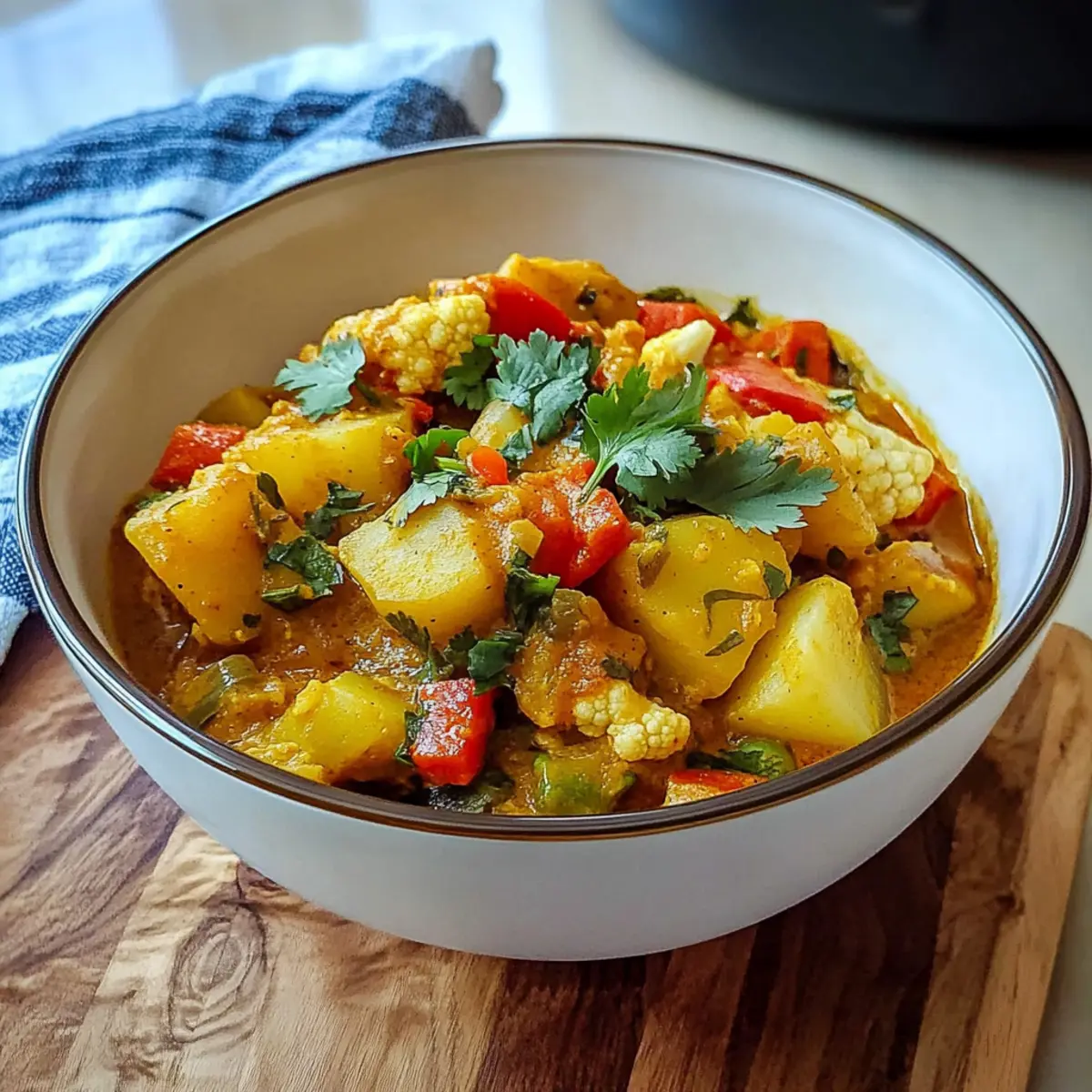 Als ich neulich eine spontane Reise durch die farbenfrohen Märkte Indiens gemacht habe, rolte sich in meinem Kopf die Idee eines traumhaften Gemüsecurrys zusammen. Diese 20-Minuten einfache Möglichkeit, ein herzhaftes, veganfreundliches und glutenfreies Gericht zuzubereiten, wird nicht nur Ihrem Gaumen schmeicheln, sondern auch ideal in Ihren hektischen Alltag passen. Mit nur einem Topf für die Zubereitung ist der Gemüsecurry die perfekte Lösung, wenn es in der Küche mal schnell gehen muss, ohne dabei auf Geschmack und Nährstoffe zu verzichten. Stellen Sie sich vor, wie Sie beim Servieren die leuchtenden Farben und den köstlichen Duft genießen können – das lässt sich kaum widerstehen! Welche frisch geernteten Zutaten würden Sie für Ihre eigene Version wählen? Warum ist dieses Gemüsecurry ein Muss? Einfachheit: Mit nur einem Topf können Sie in nur 20 Minuten ein köstliches Gericht zaubern – ideal für stressige Wochentage! Vielseitigkeit: Passen Sie es Ihren Vorlieben an: Verwenden Sie saisonales Gemüse oder fügen Sie proteinreiche Zutaten wie Kichererbsen hinzu. Gesundheitlich: Dieses Rezept ist vegan und glutenfrei, voller Nährstoffe und schmeckt der ganzen Familie. Geschmacksexplosion: Die harmonische Kombination aus Gewürzen und frischen Zutaten sorgt für ein aufregendes Geschmackserlebnis. Möchten Sie mehr einfache Rezepte probieren? Schauen Sie sich doch auch die Luftfritteuse Pizza Röllchen oder das Heißluftfritteuse Langos Hei an! Gemüsecurry Zutaten • Dieses Rezept bietet eine köstliche Grundlage für Ihr Gemüsecurry mit frischen Zutaten! Für die Basis Kochen Öl – sorgt für Feuchtigkeit und hilft, das Gemüse anzubraten. Ersetzen Sie es durch Kokosöl für einen tropischen Geschmack. Kreuzkümmelsamen – verleiht eine warme, erdige Note als Basisgewürz. Kann auch durch gemahlenen Kreuzkümmel ersetzt werden, wenn nötig. Kurkuma-Pulver – sorgt für Farbe und einen erdigen Geschmack. Keine direkte Alternative, kann aber für einen milderen Geschmack weggelassen werden. Rotes Chili-Pulver – sorgt für Würze; je nach Vorliebe anpassen. Paprika eignet sich als milde Alternative. Garam Masala – unverzichtbar für den authentischen Geschmack. Verwenden Sie frisches Garam Masala für die besten Ergebnisse. Ingwer-Knoblauch-Paste – bringt Wärme und Geschmacksfülle. Frisch gehackter Ingwer und Knoblauch sind ebenfalls eine gute Wahl. Zwiebel (gewürfelt) – fügt Süße und Tiefe hinzu und ist wichtig für die Geschmacksbildung. Keine Alternativen empfohlen. Für das Gemüse Kartoffeln (geschält und gewürfelt) – Hauptbestandteil für die Kohlenhydrate, der beim Kochen eine cremige Konsistenz erzeugt. Süßkartoffeln bieten eine spannende Variante. Blumenkohl-Röschen – wertvoll für die Nährstoffe und die Textur. Gefrorener Blumenkohl oder andere Gemüse können auch verwendet werden. Rote Paprika (gewürfelt) – bringt Süße und Farbe; kann durch grüne Paprika oder andere leuchtende Gemüsesorten ersetzt werden. Gefrorene Erbsen – sorgen für Süße und Textur; frische Erbsen sind ebenfalls eine Option. Für die Sauce Zerkleinerte Tomaten – basis für die Sauce; sorgt für Säure und Feuchtigkeit. Frische Tomaten können zur Saison verwendet werden. Kasuri Methi – verleiht ein authentisches Curry-Aroma; optional, aber sehr empfehlenswert. Salz und Pfeffer – nach Geschmack, um alle Aromen zu intensivieren. Limetten- oder Zitronensaft – hellt den Geschmack am Ende auf; kann durch Essig bei Bedarf ersetzt werden. Für die Garnitur Gehackter Koriander – frische Garnitur, die Helligkeit hinzufügt; kann weggelassen werden, wenn es nicht gewünscht ist. Schritt-für-Schritt-Anleitung für das Schnelles und einfaches Gemüsecurry Step 1: Gemüse vorbereiten Waschen, schälen und würfeln Sie das Gemüse in mundgerechte Stücke. Achten Sie darauf, dass alles gleichmäßig geschnitten ist, damit es gleichmäßig gart. Bereiten Sie die gefrorenen Erbsen und den Blumenkohl vor; sie benötigen keine besondere Vorbereitung. Legen Sie alle Zutaten bereit, damit Sie im nächsten Schritt zügig arbeiten können. Step 2: Öl erhitzen und Gewürze hinzufügen Erhitzen Sie einen Esslöffel Öl in einem großen Topf bei mittlerer Temperatur. Sobald das Öl heiß ist, fügen Sie einen Teelöffel Kreuzkümmelsamen hinzu und warten Sie, bis sie anfangen zu springen, was etwa 30 Sekunden dauern sollte. Diese aromatischen Gewürze bilden die geschmackliche Basis für Ihr Gemüsecurry und sorgen für ein wunderbares Aroma. Step 3: Zwiebeln und Ingwer-Knoblauch-Paste anbraten Fügen Sie die gewürfelte Zwiebel hinzu und sautieren Sie sie etwa 3-4 Minuten lang, bis sie durchscheinend wird. Rühren Sie dann die Ingwer-Knoblauch-Paste ein und braten Sie sie weitere 1-2 Minuten an, bis sie duftet. Diese Schritte tragen dazu bei, die Aromen zu intensivieren und einen aromatischen Grundgeschmack für das Gemüsecurry zu schaffen. Step 4: Gewürze rösten Integrieren Sie einen Teelöffel Kurkuma, zwei Teelöffel Garam Masala und einen Teelöffel rotes Chili-Pulver in die Mischung. Rösten Sie die Gewürze für etwa eine Minute, bis sie duften und ihr Aroma freisetzen. Dies verstärkt den Geschmack des Gemüsecurrys und bereitet den Gaumen auf die kommenden Zutaten vor. Step 5: Gemüse und Tomaten hinzufügen Geben Sie die vorbereiteten Kartoffeln, Blumenkohlröschen, gewürfelte rote Paprika und zerkleinerte Tomaten in den Topf. Rühren Sie alles gut um, damit die Gewürze das Gemüse gleichmäßig bedecken. Diese Mischung wird die Grundlage der Sauce für Ihr Gemüsecurry bilden und sorgt für eine köstliche Geschmackskomposition. Step 6: Simmern lassen Fügen Sie eine Tasse Wasser hinzu und bringen Sie die Mischung zum Köcheln. Decken Sie den Topf ab und lassen Sie das Gemüsecurry 10-15 Minuten sanft köcheln, bis das Gemüse weich ist. Achten Sie darauf, gelegentlich umzurühren, damit nichts am Boden des Topfes anhaftet und gleichmäßig g