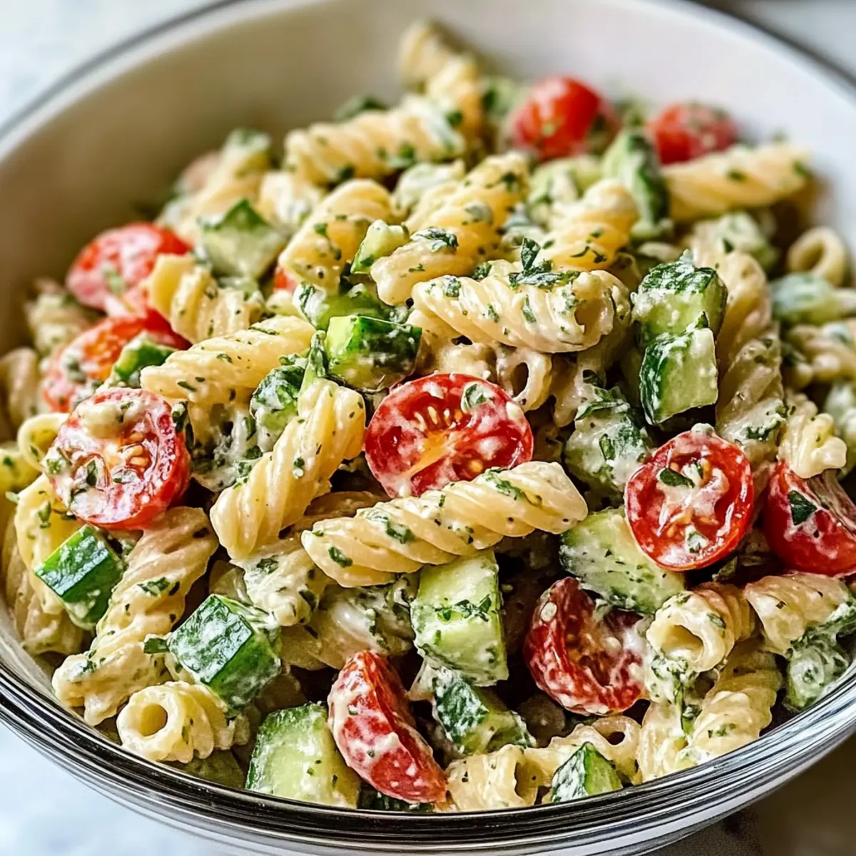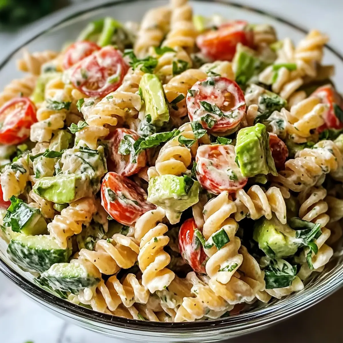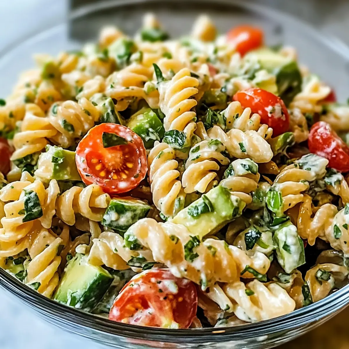 Die Sonne scheint und der Duft von frischem Gemüse liegt in der Luft – es ist der perfekte Tag für einen gesunden, cremigen Nudelsalat! So oft greift man zu fastfood, doch manchmal sehnt man sich nach einer nahrhaften Alternative, die nicht nur schnell zubereitet ist, sondern auch lecker schmeckt. Mein gesunder cremiger Nudelsalat vereint köstliche Aromen von knackigem Gemüse und der sanften Cremigkeit von Avocado und griechischem Joghurt. Diese Zusammenstellung ist nicht nur ein Genuss für den Gaumen, sondern auch ein wahres Fest für die Sinne. Er eignet sich hervorragend als schnelles Mittagessen oder als schmackhafte Beilage zu einem Grillabend. Mach dich bereit, die gesunde Seite des Pasta-Salads neu zu entdecken – welcher frische Zutat wirst du deine persönliche Note verleihen? Warum wirst du diesen Nudelsalat lieben? Gesund, lecker und bunt: Dieser gesunde cremige Nudelsalat ist nicht nur ein Augenschmaus, sondern auch eine hervorragende Wahl für alle, die auf ihre Ernährung achten möchten. Einfach zuzubereiten: Perfekt für stressige Tage – in nur wenigen Minuten hast du ein nahrhaftes Gericht auf dem Tisch. Vielseitig: Du kannst ganz nach Belieben mit verschiedenen Zutaten und Kräutern experimentieren, um den Salat deinem Geschmack anzupassen. Frisch und knackig: Die Kombination aus frischem Gemüse und cremigem Dressing sorgt für ein Geschmackserlebnis, das lange in Erinnerung bleibt. Ideal für jede Gelegenheit: Ob zum Picknick, als leichtes Mittagessen oder als Beilage beim Grillen – dieser Nudelsalat wird deine Gäste begeistern! Und wenn du auf der Suche nach weiteren köstlichen Rezepten bist, schau dir auch meine Gegrillter Kase Burrito und die Pepperoni Pizza Rollen an! Gesunde cremige Nudelsalat Zutaten • Für den Nudelsalat Pasta – Die Grundlage, die für Herzhaftigkeit sorgt; verwende Vollkorn- oder glutenfreie Pasta als gesunde Alternative. Avocado – Sorgt für eine cremige Textur und gesunde Fette; ersetze sie durch griechischen Joghurt für eine kalorienärmere Variante. Tomaten – Bringen Saftigkeit und Frische ins Spiel; mach auch aus Kirschtomaten oder gerösteten Paprika eine tolle Option. Gurke – Fügt einen knackigen Biss hinzu; Zucchini eignet sich hervorragend für eine niedrigere Kohlenhydratversion. • Für das Dressing Griechischer Joghurt – Bietet einen cremigen Geschmack und zusätzliches Protein; kann durch Mayonnaise für eine reichhaltigere Note ersetzt werden. Zitronensaft – Verstärkt die Aromen und sorgt für eine angenehme Säure; versuche roten Wein-Essig als interessante Alternative. Dieser gesunde cremige Nudelsalat wird dich mit seinen frischen und lebhaften Zutaten begeistern! Step-by-Step Instructions für Gesunde cremige Nudelsalat Step 1: Pasta kochen Koche die Pasta gemäß der Anweisungen auf der Verpackung in einem großen Topf mit kochendem Salzwasser. Lass die Nudeln etwa 8–10 Minuten garen, bis sie al dente sind. Nachdem die Pasta fertig ist, abseihen und unter kaltem Wasser abspülen, damit sie abkühlt und die Garzeit stoppt. Step 2: Gemüse vorbereiten Während die Pasta kocht, schneide die Avocado, die Tomaten und die Gurke in kleine Stücke. Achte darauf, die Avocado sofort zu verarbeiten, um ein Braunwerden zu vermeiden. Gib das gewürfelte Gemüse in eine große Schüssel und mische alles gut durch, damit gleichmäßige Farbtupfer entstehen, die frisch und einladend wirken. Step 3: Dressing zubereiten In einer separaten Schüssel vermengst du griechischen Joghurt mit frischem Zitronensaft. Rühre gut um, bis eine cremige Sauce entsteht. Füge nach Belieben Salz und Pfeffer hinzu, um das Dressing abzuschmecken. Die Kombination aus dem Joghurt und der Zitrone sorgt für die perfekte Säure und cremige Konsistenz für deinen gesunden cremigen Nudelsalat. Step 4: Alles vermengen Sobald die Pasta abgekühlt ist, gib sie in die Schüssel mit dem gehackten Gemüse. Gieße das Dressing darüber und falte alles vorsichtig mit einem Spatel unter, bis die Pasta und das Gemüse gleichmäßig mit der cremigen Sauce überzogen sind. Sei sanft, um die Struktur der zarten Zutaten zu bewahren und das optimale Geschmackserlebnis zu erzielen. Step 5: Kühlen und servieren Decke die Schüssel mit Frischhaltefolie ab und stelle den Nudelsalat für mindestens 30 Minuten in den Kühlschrank. Dadurch können sich die Aromen schön entfalten und der Salat wird frisch und erfrischend serviert. Vor dem Servieren kannst du gerne noch frische Kräuter oder einen Spritzer Zitronensaft darüber geben, um den Geschmack zu intensivieren. Lagerungstipps für Gesunde cremige Nudelsalat Kühlschrank: Lagere den Nudelsalat in einem luftdichten Behälter für bis zu 3 Tage. Achte darauf, dass der Salat gut abgedeckt ist, um die Frische zu erhalten. Zutaten getrennt: Wenn du den Salat im Voraus zubereitest, lagere das Dressing separat, um die Knackigkeit des Gemüses zu bewahren. Mische beides erst kurz vor dem Servieren. Einfrieren: Es wird nicht empfohlen, den gesunden cremigen Nudelsalat einzufrieren, da die Textur der frischen Zutaten nach dem Auftauen leidet. Wiedererwärmen: Bei Bedarf kühle den Salat gut und serviere ihn kalt. Bei Zimmertemperatur genießen, um die Aromen zu intensivieren. Vorbereitungen für deinen gesunden cremigen Nudelsalat Bereite dir deinen gesunden cremigen Nudelsalat perfekt im Voraus vor, um dir Zeit zu sparen und den Genuss zu maximieren! Koche die Pasta bis zu 24 Stunden im Voraus und lasse sie gut abkühlen, um eine perfekte Textur zu gewährleisten. Auch das Gemüse kannst du am Vortag schneiden – beachte hierbei, die Avocado erst kurz vor dem Servieren hinzuzufügen, um ein Braunwerden zu verhindern. Das Dressing aus griechischem Joghurt und Zitronensaft hält sich im Kühlschrank ebenfalls bis zu 3 Tagen. Wenn du bereit bist, deinen Nudelsalat zu servieren, vermenge einfach die abgekühlte Pasta mit dem vorbereiteten Gemüse und dem Dressing und genieße ein frisches, köstliches Ergebni