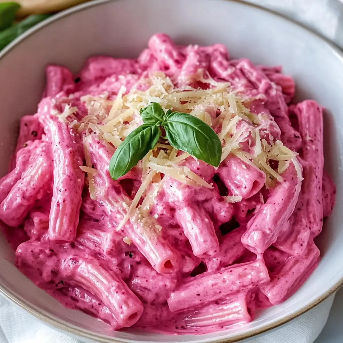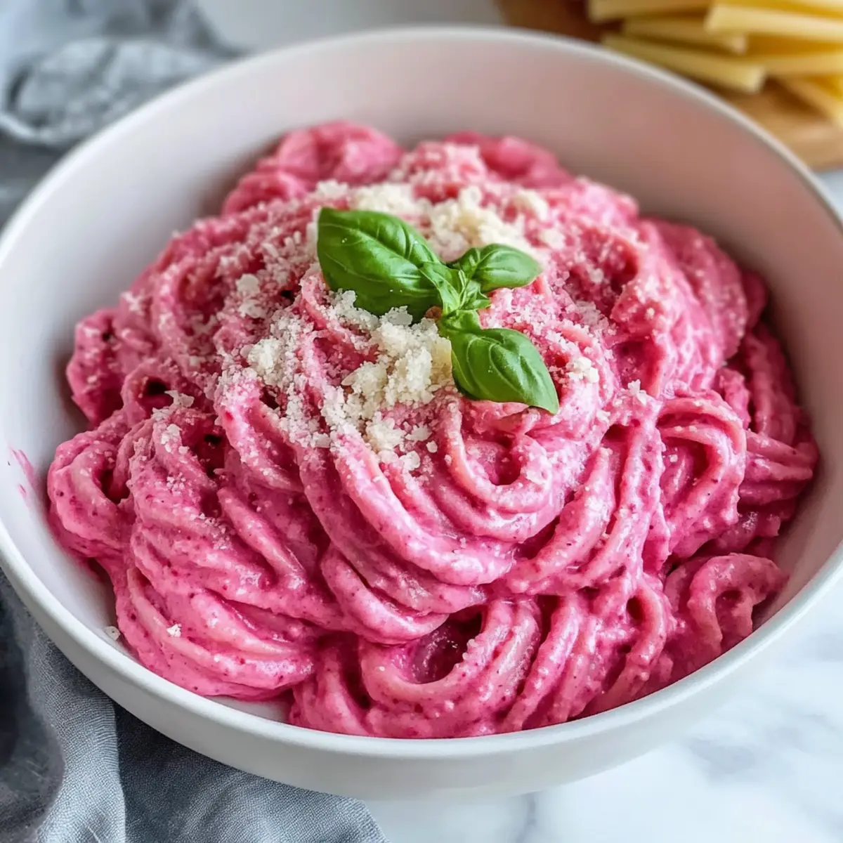 Als ich kürzlich in meine Gemüse-Kiste schaute, entdeckte ich eine wunderschöne rote Rübe, die auf ihren großen Auftritt wartete. Diese Entdeckung inspirierte mich sofort zu meiner gesunden veganen rosa Pasta, die nicht nur in ihrer Farbe auffällt, sondern auch mit ihrem cremigen Geschmack begeistert. Mit minimalem Aufwand zubereitet, ist dieses Rezept perfekt für hektische Abende, an denen man sich dennoch etwas Besonderes gönnen möchte. Die Kombination aus velvety Cashew-Soße und der süßen Rübe verleiht jedem Bissen eine wohltuende Gelassenheit, die selbst die anspruchsvollsten Gaumen begeistert. Dieser pflanzliche Genuss beweist, dass man auch ohne tierische Produkte nicht auf köstliches Comfort Food verzichten muss. Neugierig, wie einfach es ist, ein wenig Farbe auf den Teller zu bringen? Warum wirst du dieses Rezept lieben? Einfachheit: Die Zubereitung ist unkompliziert und erfordert nur grundlegende Kochkenntnisse. Jeder kann diese gesunde vegane rosa Pasta in nur 30 Minuten genießen! Cremige Textur: Die Kombination aus eingeweichten Cashews und gerösteten Rüben sorgt für eine unvergleichlich samtige Soße, die jeder Pasta hervorragend umhüllt. Farbe und Genuss: Das lebendige Rosa bringt Farbe auf deinen Teller und sorgt für Gesprächsstoff beim Dinner. Vielfältige Optionen: Du kannst das Rezept ganz einfach anpassen, indem du zum Beispiel die Rübe durch geröstete Paprika ersetzt oder frischen Spinat hinzufügst. Besonderer Komfort: Diese Pasta bietet den Komfort von klassischen Gerichten, ganz ohne tierische Produkte, und ist somit ideal für alle, die auf pflanzliche Ernährung umsteigen möchten. Perfekt für jede Gelegenheit: Egal, ob für ein schnelles Abendessen oder ein besonderes Treffen mit Freunden – diese Pasta wird sicherlich beeindrucken! Gesunde Vegane Rosa Pasta Zutaten • Egal, ob du ein erfahrener Koch oder ein Neuling bist, du wirst überrascht sein, wie einfach es ist, diese gesunde vegane rosa Pasta zuzubereiten! Für die Sauce Rohe Cashews – Sorgfältig einweichen (mindestens 4 Stunden) für eine cremige Textur. Rübe – Wähle eine frische, geröstete Rübe für süßen Geschmack und eine lebhafte Farbe. Olivenöl – Ideal zum Anbraten von Zwiebeln und Knoblauch, kann durch vegane Butter ersetzt werden. Schalotte – Bringt Tiefe und Süße in die Sauce, bis sie glasig ist anbraten. Knoblauch – Verwende ihn in kleinen Mengen für ein intensives Aroma. Für die Pasta Pasta – Wähle deine Lieblingsteigwaren und koche sie al dente; etwas Nudelwasser für die Sauce aufbewahren! Gewürze Salz und schwarzer Pfeffer – Grundlegende Gewürze zum Aufpeppen des Geschmacks, nach Belieben anpassen. Kräuter (Basilikum, Oregano, rote Paprika) – Verleihe der Sauce eine aromatische Note; füge nach Geschmack hinzu. Optionale Garnierungen Frische Kräuter – Ergänzen Sie das Gericht mit einer bunten Note und zusätzlichem Geschmack. Vegane Parmesan – Für ein wenig extra Umami und einen tollen Biss. Schritt-für-Schritt-Anleitung für Gesunde Vegane Rosa Pasta Step 1: Rübe rösten Heize den Ofen auf 220°C vor. Wickele die frische Rübe in Alufolie, beträufle sie mit etwas Olivenöl und würze sie mit Salz. Roasting die Rübe für etwa 50-60 Minuten, bis sie zart ist. Achte darauf, dass die Rinde gut geröstet ist, um das volle Aroma zu entfalten. Step 2: Cashews einweichen Während die Rübe im Ofen ist, weiche die rohen Cashews ein. Lass sie mindestens 4 Stunden in Wasser einlegen oder wenn du es eilig hast, 30 Minuten in heißem Wasser. Nach dem Einweichen siebe die Cashews ab und spüle sie gut durch, um die Cremigkeit für die Sauce zu garantieren. Step 3: Cashew-Rübe-Mix vorbereiten Gib die eingeweichten Cashews zusammen mit der gerösteten Rübe und einer Prise Salz in einen Mixer. Püriere die Mischung auf höchster Stufe, bis sie völlig glatt und cremig ist. Diese Mischung wird die Basis für die Sauce deiner gesunden veganen rosa Pasta setzen. Step 4: Pasta kochen Setze einen großen Topf mit Wasser auf den Herd und bringe es zum Kochen. Füge deine Lieblingspasta hinzu und koche sie nach den Anweisungen auf der Verpackung al dente. Bevor du die Pasta abgießt, hebe dir 1 Tasse des Nudelwassers auf, um die Sauce später anzupassen. Step 5: Zwiebeln und Knoblauch anbraten Während die Pasta kocht, erhitze etwas Olivenöl in einer Pfanne bei mittlerer Hitze. Füge die fein gehackte Schalotte hinzu und dünste sie etwa 5 Minuten lang, bis sie glasig wird. Danach den geschälten und fein gehackten Knoblauch hinzufügen und eine weitere Minute braten, bis er duftet. Step 6: Sauce vollenden Gib die pürierte Cashew-Rübe-Mischung in die Pfanne, gefolgt von dem restlichen Nudelwasser und den Gewürzen nach Belieben. Mische alles gut durch und lasse die Sauce etwa 5 Minuten lang bei niedriger Hitze köcheln, bis sie gut durchwärmt ist und eine schön cremige Konsistenz erreicht. Step 7: Pasta vermengen Füge die gekochte Pasta direkt in die Pfanne mit der Sauce. Mische alles gut, bis die Pasta gleichmäßig mit der Sauce überzogen ist. Du kannst die Konsistenz bei Bedarf mit zusätzlichem Nudelwasser anpassen, um die perfekte Cremigkeit für deine gesunde vegane rosa Pasta zu erreichen. Tipps für die beste gesunde vegane rosa Pasta Cashews richtig einweichen: Achte darauf, die Cashews lange genug einzuweichen. Rohe Cashews ergeben die beste cremige Textur, während geröstete Cashews den Geschmack verändern können. Rübe sorgfältig rösten: Röste die Rübe anstelle zu kochen, um die Süße und die intensive Farbe zu bewahren. Dies sorgt für einen stärkeren Geschmack in deiner gesunden veganen rosa Pasta. Pasta al dente kochen: Koche die Pasta al dente und hebe dir immer etwas Nudelwasser auf. Es hilft, die Sauce beim Vermengen perfekt zu verfeinern. Sauce spülen: Wenn die Sauce zu dick ist, füge das reservierte Nudelwasser schrittweise hinzu. So hältst du die gewünschte Konsistenz, ohne sie verwässern zu lassen. Veg