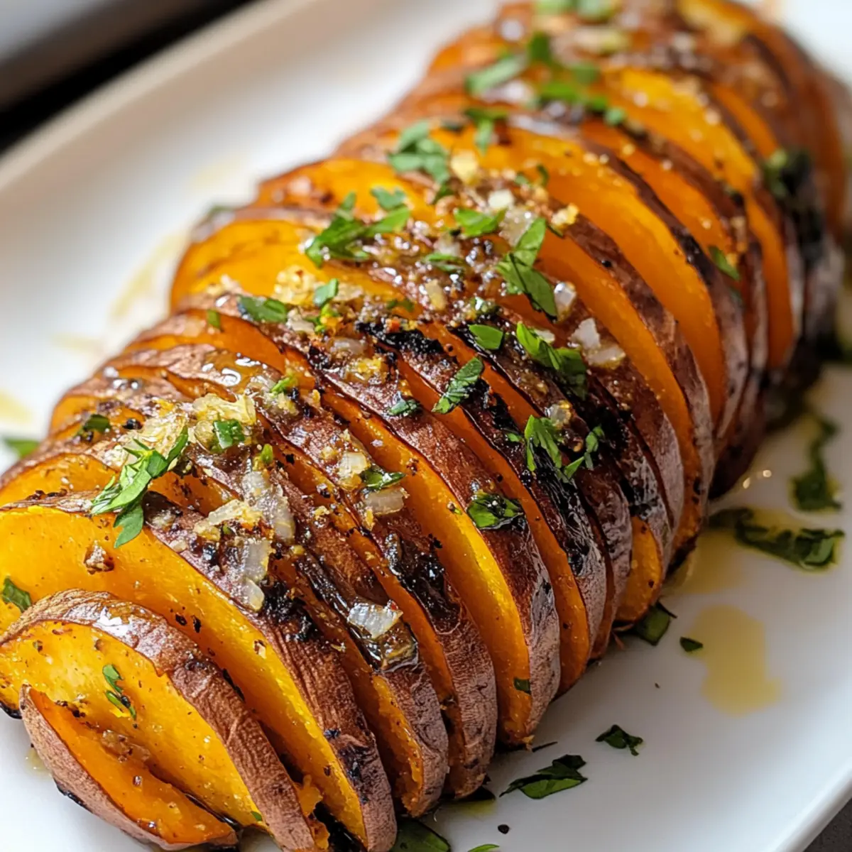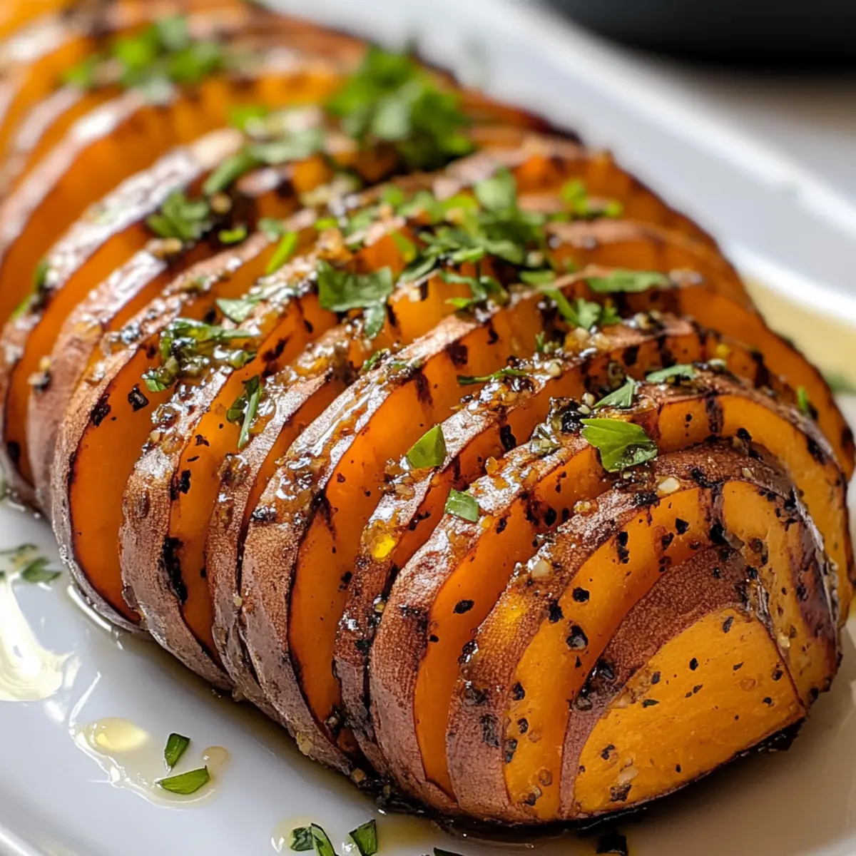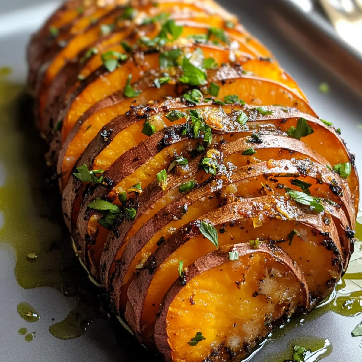 Stell dir vor, du öffnest den Ofen und der verführerische Duft von Gewürzten Hasselback-Süßkartoffeln zieht durch die Küche. Diese köstliche Beilage vereint die perfekten, knusprigen Ränder mit einem zarten Inneren und wird mit einer harmonischen Gewürzmischung zu einem echten Highlight auf jedem Tisch. Die Zubereitung ist im Handumdrehen erledigt, was dieses Gericht zu einer großartigen Wahl für spontane Dinnerpartys macht oder einfach als tröstliche Beilage für den Wochenendbrunch. Auch die Anpassungsfähigkeit ist ein Plus: Ganz gleich, ob du einen Hauch von Schärfe möchtest oder die Süßkartoffeln für die Allergiker auf dem Sofa umgestalten willst, diese Rezept bietet dir alle Möglichkeiten. Bist du bereit, deine nächste Mahlzeit mit diesen köstlichen Kartoffeln aufzupeppen? Wenn ja, lass uns loslegen! Warum sind Gewürzte Hasselback-Süßkartoffeln so besonders? Vielfältiger Genuss: Diese Gewürzten Hasselback-Süßkartoffeln bieten eine atemberaubende Kombination aus knusprigen Rändern und zartem Inneren. Einfache Zubereitung: Mit nur wenigen Zutaten und schnellen Schritten sind sie die perfekte Wahl für spontane Dinnerpartys oder entspannte Abendessen. Individualisierbar: Du kannst die Gewürze nach deinem Geschmack anpassen und sogar verschiedene Gemüsearten ausprobieren. Gesund und lecker: Sie sind nicht nur glutenfrei und vegetarisch, sondern bieten auch eine gute Portion Geschmack und Nährstoffe. Perfekte Beilage: Egal, ob zu gebratenem Fleisch oder einer vegetarischen Quinoa-Salat, sie machen jeden Teller zu einem Festmahl. Verpasse nicht die Gelegenheit, dieses Rezept auszuprobieren! Gewürzte Hasselback-Süßkartoffeln Zutaten Hinweis: Diese Zutatenliste sorgt für die perfekte Harmonie zwischen Geschmack und Textur. Für die Süßkartoffeln Süßkartoffeln – Hauptzutat, die für natürliche Süße und Geschmeidigkeit sorgt; kann durch normale Kartoffeln ersetzt werden, aber achte auf die Kochzeiten. Natives Olivenöl extra – Fügt Feuchtigkeit hinzu und unterstützt das Rösten; kann auch durch geschmolzene Butter oder Avocadoöl ersetzt werden, um einen neuen Geschmack zu erzielen. Für die Gewürzmischung Knoblauchpulver – Intensiviert den Geschmack; frischer Knoblauch sorgt für ein noch kräftigeres Aroma. Cayennepfeffer – Fügt Schärfe hinzu; lasse ihn weg oder reduziere die Menge für eine mildere Variante. Geräuchertes Paprikapulver – Verleiht eine rauchige Note; normales Paprikapulver ist eine mildere Alternative. Salz und Pfeffer – Verbessern den Gesamgeschmack; je nach Vorliebe anpassen. Für die Garnitur Frische Kräuter (Rosmarin oder Thymian) – Sorgen für zusätzlichen Geschmack und eine ansprechende Präsentation; andere frische Kräuter können ebenfalls verwendet werden. Schritt-für-Schritt-Anleitung für Gewürzte Hasselback-Süßkartoffeln Step 1: Ofen vorheizen Heize den Ofen auf 200 °C vor. Dies sorgt dafür, dass die Gewürzten Hasselback-Süßkartoffeln gleichmäßig und knusprig gegart werden. Stelle sicher, dass der Ofen diese Temperatur erreicht, bevor du mit der Vorbereitung der Süßkartoffeln beginnst. Step 2: Süßkartoffeln vorbereiten Wasche und trockne die Süßkartoffeln gründlich ab. Schneide sie dann mit einem scharfen Messer in dünne, gleichmäßige Scheiben, etwa alle 0,5 cm, ohne sie ganz durchzuschneiden. Dies ermöglicht, dass die Gewürze besser in die Kartoffeln eindringen und sie beim Rösten knusprig werden. Step 3: Gewürzmischung herstellen In einer Schüssel vermische das native Olivenöl, Knoblauchpulver, Cayennepfeffer, geräuchertes Paprikapulver, Salz und Pfeffer. Rühre gründlich um, bis eine gleichmäßige Paste entsteht. Diese aromatische Gewürzmischung verleiht den Gewürzten Hasselback-Süßkartoffeln ihren intensiven Geschmack. Step 4: Süßkartoffeln würzen Lege die vorbereiteten Süßkartoffeln auf ein mit Backpapier ausgelegtes Backblech. Benutze einen Pinsel, um die Gewürzmischung großzügig über jede Kartoffel zu streichen und achte darauf, dass etwas der Mischung in die Einschnitte gelangt. Dies sorgt für ein intensives Aroma und gleichmäßige Würze. Step 5: Rösten Schiebe das Backblech in den vorgeheizten Ofen und röste die Süßkartoffeln für etwa 45-50 Minuten. Überprüfe regelmäßig den Garzustand; die äußeren Ränder sollten goldbraun und knusprig sein, während das Innere zart bleibt. Step 6: Garnieren und servieren Nimm die Gewürzten Hasselback-Süßkartoffeln aus dem Ofen und lasse sie kurz abkühlen. Bestreue sie nach Belieben mit frischen Kräutern wie Rosmarin oder Thymian, um zusätzliche Aromen zu entfalten und ein ansprechendes Aussehen zu erzielen. Serviere sie warm als köstliche Beilage. Variationen von Gewürzten Hasselback-Süßkartoffeln Entdecke, wie du diese köstlichen Süßkartoffeln ganz nach deinem Geschmack anpassen kannst. Lass deiner Kreativität freien Lauf und finde heraus, was dir am besten schmeckt! Dairy-Free: Ersetze das Olivenöl durch geschmolzene Margerine oder Kokosöl für eine pflanzliche Option. Würzige Variante: Füge mehr Cayennepfeffer oder sogar etwas Chilipulver hinzu, um ein feuriges Geschmackserlebnis zu schaffen. Schärfe làsst sich wunderbar kontrollieren! Erdnussbutter-Twist: Vor dem Rösten mit Erdnussbutter bestreichen für eine süßliche, nussige Geschmacksnote, die überrascht und begeistert. Mediterraner Genuss: Streue Feta-Käse und getrocknete Tomaten vor dem Servieren darüber für eine mediterrane Note. Mmm, so schmackhaft! Nussige Textur: Garnieren mit gehobelten Mandeln oder Walnüssen für zusätzlichen Crunch und Nährstoffe. Der Kontrast von Temperaturen macht den Biss unglaublich interessant. Lachs-Option: Ergänze die Süßkartoffeln mit gegrilltem Lachs für ein herzhaftes Hauptgericht. Ein perfektes Zusammenspiel von Aromen! Räucher-Paprika: Verwende geräuchertes Paprikapulver anstelle von normalem, um den rauchigen Geschmack zu verstärken. Dies bringt eine aufregende Dimens