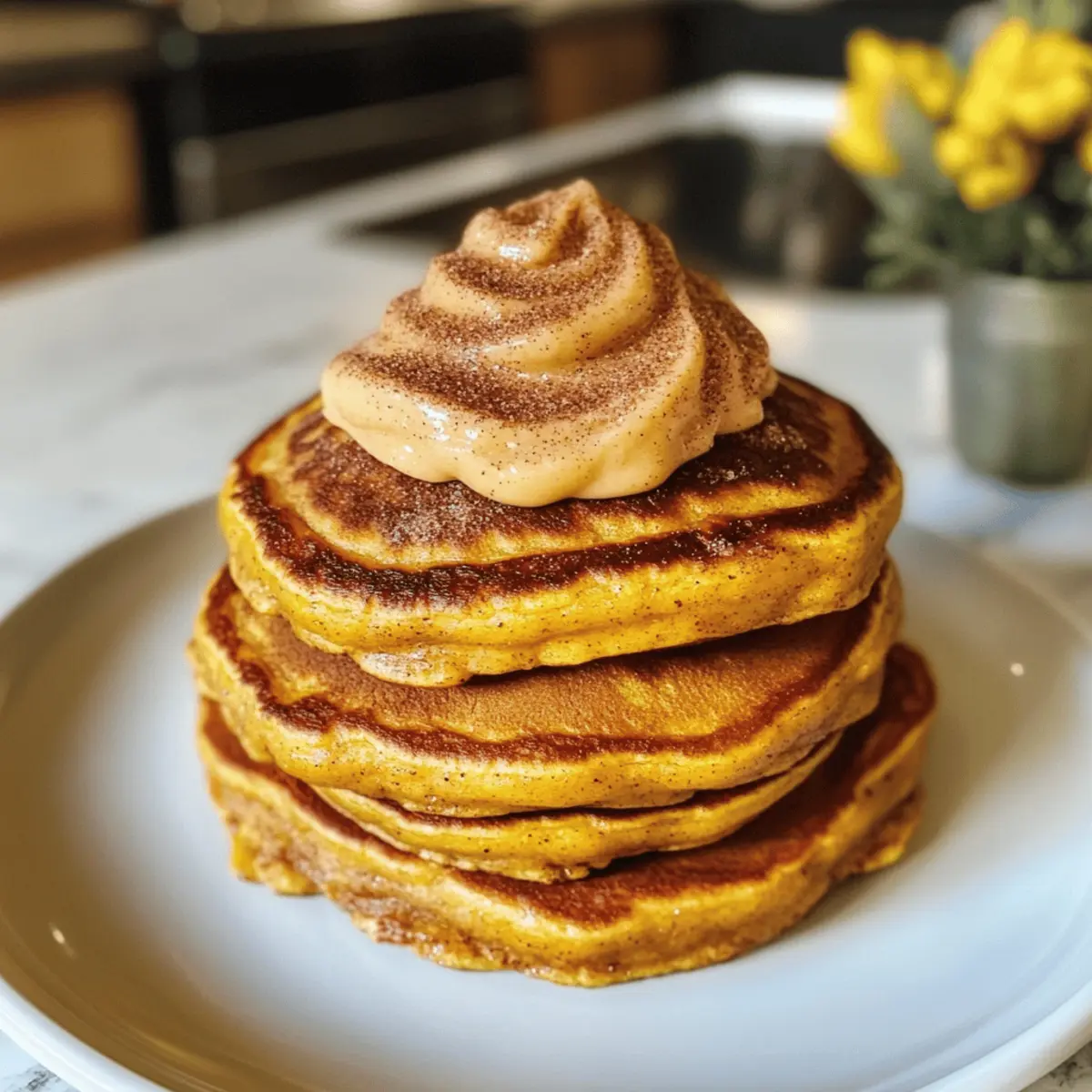 Der Duft von frisch gebackenen Gilmore Girls Kürbispfannkuchen erfüllt die Küche und lässt mich sofort an die gemütlichen Morgen in Stars Hollow denken. Diese fluffigen Pancakes sind nicht nur ein Hochgenuss mit ihrem warmen Pumpkin-Pie-Geschmack, sondern haben auch ein köstliches Topping aus Zimtbutter, das sanft über die warmen Pfannkuchen schmilzt. Ideal für ein herbstliches Frühstück, bieten sie die perfekte Kombination aus schneller Zubereitung und Seelenwärme – ganz ohne Fast Food. Möchtest du herausfinden, wie du dieses herzerwärmende Rezept ganz einfach selbst zubereiten kannst? Warum wirst du diese Kürbispfannkuchen lieben? Gemütlichkeit in jedem Bissen: Diese Gilmore Girls Kürbispfannkuchen sind der Inbegriff von herbstlicher Gemütlichkeit und bringen das besondere Flair von Stars Hollow direkt in deine Küche. Einfachheit: Mit nur wenigen Zutaten und unkomplizierten Schritten sind diese Pfannkuchen schnell zubereitet – perfekt für ein stressfreies Frühstück. Ausgezeichneter Geschmack: Die Kombination aus Kürbisgewürzen und dem zarten Zimtbutter-Topping verwandelt jeden Bissen in ein Geschmackserlebnis. Vielseitigkeit: Ob zum gemütlichen Sonntagsfrühstück oder zu festlichen Anlässen, diese Pfannkuchen sind immer ein Hit! Gesundes Vergnügen: Versorge deine Familie mit wichtigen Nährstoffen, während du geschmacklich überzeugst – ideal für alle, die Fast Food satt haben! Mach dir auch die mühelose Zubereitung von Zimtbutter zunutze, um das ganze Rezept abzurunden! Gilmore Girls Kürbispfannkuchen Zutaten • Diese köstlichen Pfannkuchen sind einfach zuzubereiten und machen perfekt für dein nächstes herbstliches Frühstück. Für den Pfannkuchenteig Allzweckmehl – Gibt Struktur; kannst auch glutenfreies Mehl verwenden. Backpulver – Wichtig für das Aufgehen der Pancakes; stelle sicher, dass es frisch ist. Backsoda – Sorgt zusätzlich für die fluffige Konsistenz. Zucker – Süßt und balanciert die Gewürze; probiere braunen Zucker für mehr Tiefe. Gemahlener Zimt – Verleiht Wärme und Geschmack. Kürbiskuchengewürz – Ein Muss für den herbstlichen Geschmack; kaufe fertig oder mache es selbst. Ei – Bindet die Zutaten und sorgt für Feuchtigkeit. Milch – Hydratisiert den Teig; auch durch Mandel- oder Hafermilch eretzbar. Kürbispüree – Der Schlüssel für Geschmack und Feuchtigkeit; eignet sich sowohl für hausgemachtes als auch für aus der Dose. Pflanzenöl – Macht die Pfannkuchen zart; schmelzte Butter geht auch. Vanillebohnenpaste – Verstärkt den Geschmack; Vanilleextrakt kann auch verwendet werden. Zutaten für die Zimtzucker-Swirls Butter – Sollte weich sein, um sich gut vermischen zu lassen. Kristallzucker – Für die süße Note der Swirls. Gemahlener Zimt – Verstärkt den Geschmack des Zimtzuckers. Zutaten für die Zimtbutter Butter – Sollte weich sein für eine einfache Mischung. Puderzucker – Für süße Cremigkeit im Topping. Gemahlener Zimt – Bringt den charakteristischen Zimtgeschmack. Honig – Natürliche Süße; kann durch Ahornsirup ersetzt werden. Vanillebohnenpaste – Fügt eine zusätzliche Geschmacksnote hinzu. Schritt-für-Schritt-Anleitung für Gilmore Girls Kürbispfannkuchen mit Zimtbutter Step 1: Pfannkuchenteig vorbereiten In einer großen Rührschüssel vermischst du die trockenen Zutaten: Mehl, Backpulver, Backsoda, Zucker, gemahlenen Zimt und Kürbiskuchengewürz. Mache eine Mulde in der Mitte und füge das Ei, die Milch, das Kürbispüree, das Pflanzenöl und die Vanillebohnenpaste hinzu. Rühre die Mischung sanft zusammen, bis alles gerade so verbunden ist, und achte darauf, nicht zu übermixen, damit die Gilmore Girls Kürbispfannkuchen fluffy bleiben. Step 2: Zimtzucker-Swirl machen In einer separaten Schüssel vermische die weiche Butter, den Kristallzucker und den gemahlenen Zimt gründlich. Integriere einen Esslöffel des Pfannkuchenteigs, bis die Mischung glatt ist. Fülle anschließend diese Zimtbutter in einen Spritzbeutel. Dies wird der köstliche Swirl, der deinen Pfannkuchen eine besondere Note verleiht, während du sie kochst. Step 3: Pfannkuchen braten Erhitze eine beschichtete Pfanne oder eine Pfanne bei mittlerer Hitze und bestreiche sie leicht mit Öl. Gieße etwa 1/4 Tasse des Pfannkuchenteigs in die Pfanne und spritze unmittelbar danach den Zimtzucker-Swirl darüber. Lass die Pfannkuchen braten, bis an der Oberseite Blasen entstehen (ca. 1–2 Minuten), dann füge einen Teelöffel Wasser an den Rand der Pfanne hinzu, decke sie mit einem Deckel ab und dampfe sie für weitere 1–2 Minuten, um die Fluffigkeit zu erhöhen. Step 4: Zimtbutter zubereiten In einer Schüssel schlägst du die weiche Butter, den Puderzucker, den gemahlenen Zimt, den Honig und die Vanillebohnenpaste zusammen, bis eine cremige Konsistenz erreicht ist. Diese Zimtbutter wird ein unwiderstehliches Topping für deine warmen Gilmore Girls Kürbispfannkuchen sein und verleiht jedem Bissen ein warmes, süßes Aroma. Step 5: Servieren Staple die warmen Kürbispfannkuchen auf einem schönen Teller und verteile die Zimtbutter großzügig darüber. Du kannst auch zusätzliche Garnierungen wie frisches Obst oder einen Schuss Ahornsirup hinzugeben, um das Erlebnis noch weiter zu verfeinern. Diese Gilmore Girls Kürbispfannkuchen sind perfekt für einen gemütlichen Herbstmorgen, bei dem sich der Duft von Zimt in der Luft ausbreitet. Was passt zu Gilmore Girls Kürbispfannkuchen? Genieße ein unvergleichliches Frühstückserlebnis, das die Aromen des Herbstes perfekt einfängt und deine Sinne verzaubert. Klassischer Ahornsirup: Der süße Geschmack des Ahornsirups ergänzt die Kürbispfannkuchen und verstärkt deren Geschmack und Textur. Dieser Klassiker darf auf keinen Fall fehlen! Frische Äpfel: Saftige, in Scheiben geschnittene Äpfel, leicht angebraten, bieten eine knackige und fruchtige Komponente, die das reichhaltige Aroma der Pfannkuchen wunderbar ausgleicht. Schlagsahne: Ein Klecks frisch