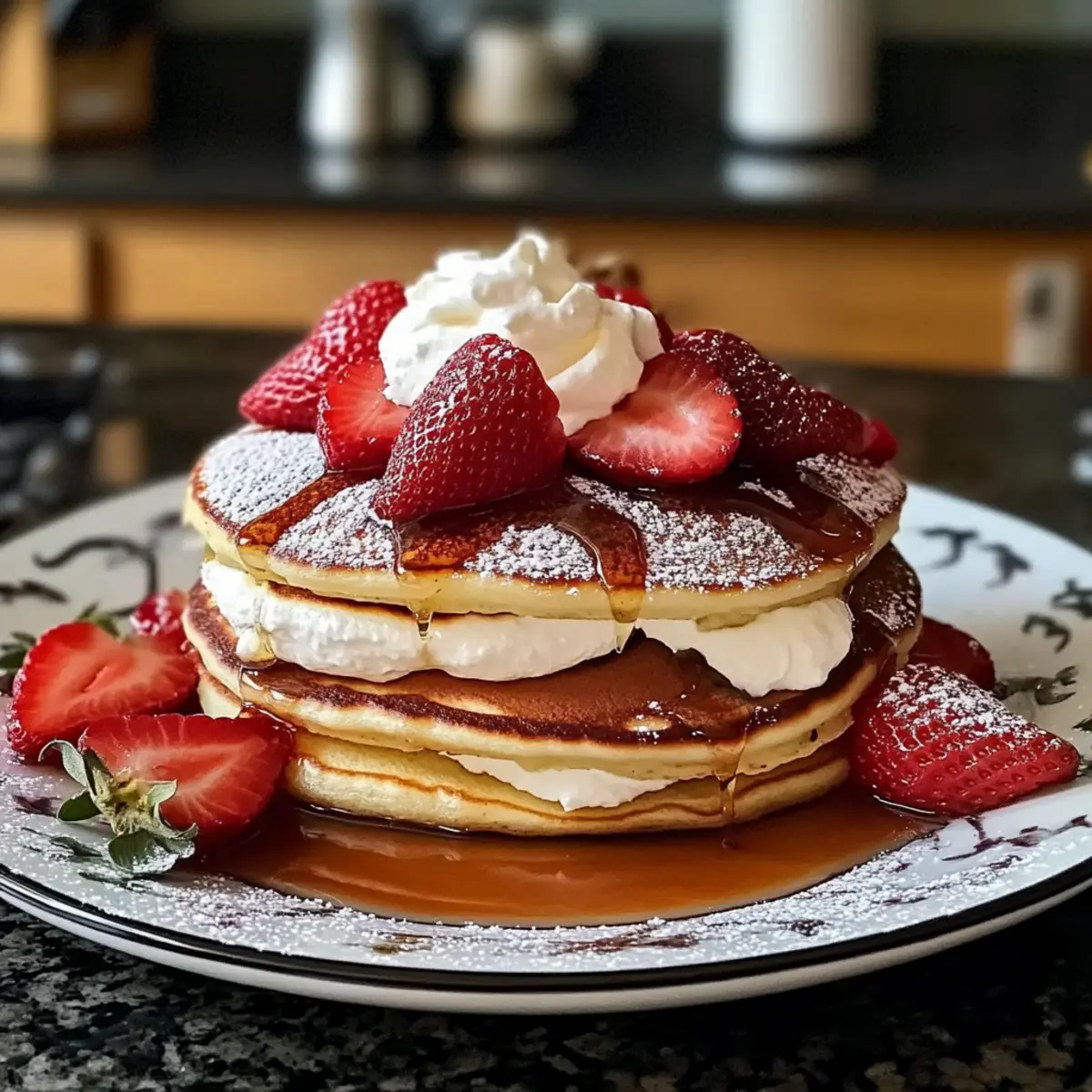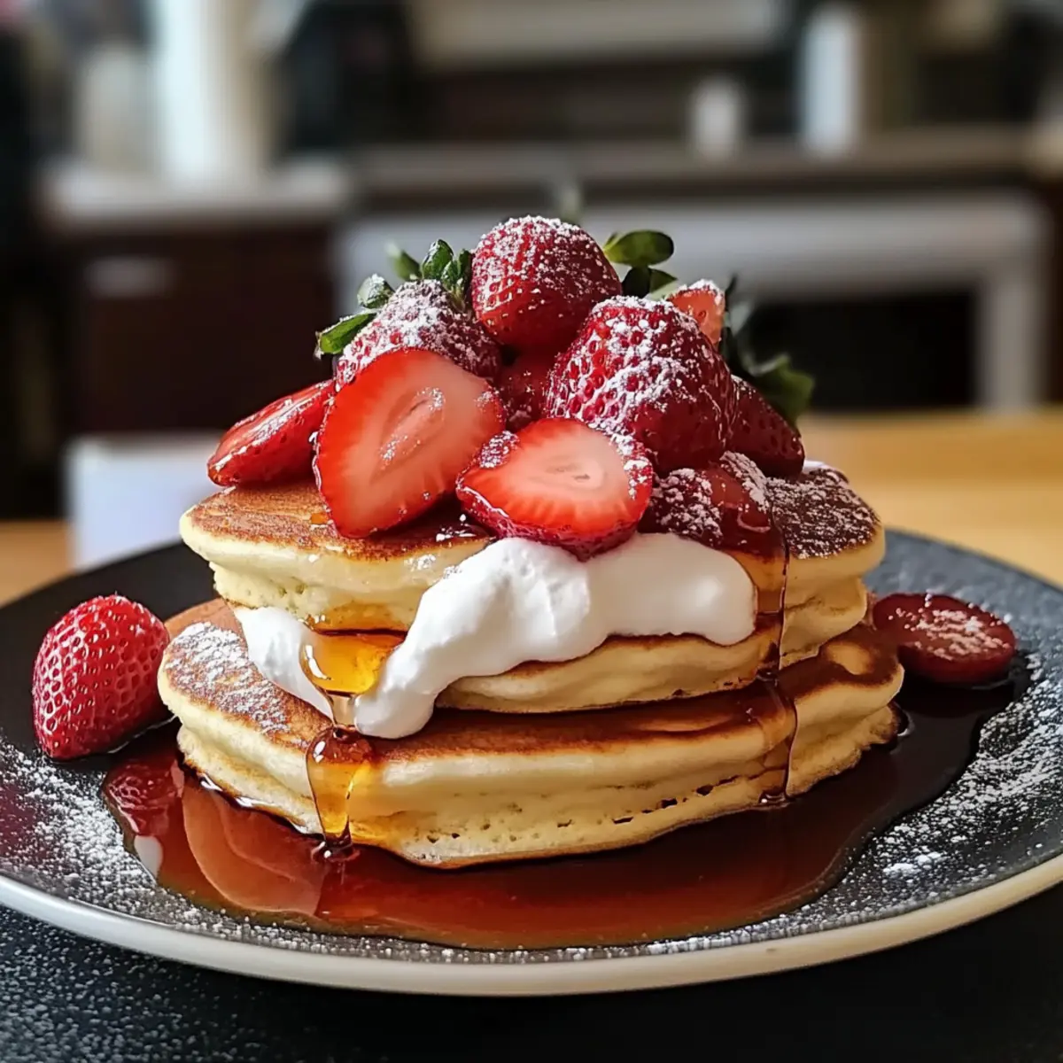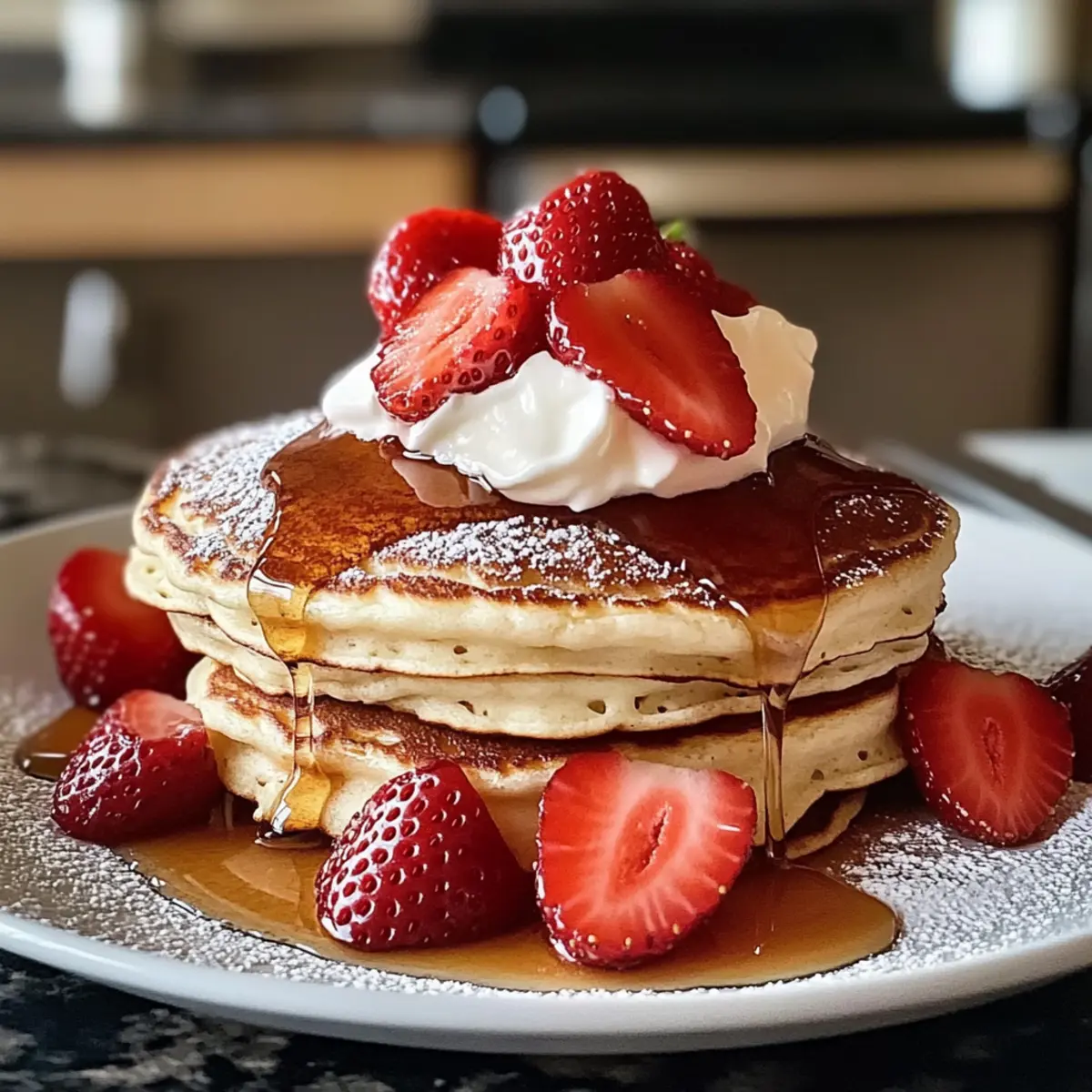 Als ich vor Kurzem in einer kleinen Cafeteria eine neue Frühstücksvariante entdeckte, konnte ich nicht glauben, dass ich diese Kombination noch nie selbst ausprobiert hatte: Glutenfreie Erdbeer-Käsekuchen-Pfannkuchen. Diese flauschigen Pfannkuchen vereinen die köstliche Cremigkeit eines Käsekuchens mit der frischen Süße von Erdbeeren – eine genussvolle Art, den Tag zu beginnen! Wenn du ein schnelles und einfaches Rezept suchst, das sich perfekt für glutenfreie Ernährung eignet und auch als süßes Highlight zum Brunch glänzt, dann wirst du diese Pfannkuchen lieben. Welche Geheimnisse verbergen sich wohl in dieser himmlischen Kombination? Lass uns gemeinsam herausfinden, wie du sie zubereiten kannst! Warum wirst du diese Pfannkuchen lieben? Einzigartiger Genuss: Diese glutenfreien Erdbeer-Käsekuchen-Pfannkuchen vereinen zwei beliebte Frühstücksoptionen in einem köstlichen Gericht. Einfachheit: Die Zubereitung ist schnell und erfordert nur grundlegende Kochfähigkeiten. Frisch und fruchtig: Die Kombination aus frischen Erdbeeren und cremigem Käse sorgt für einen aufregenden Geschmack, der deine Geschmacksknospen verwöhnt. Vielseitig: Perfekt für Frühstück oder Brunch – du kannst sie auch mit verschiedenen Früchten oder Toppings variieren. Schnell zubereitet: In nur wenigen Minuten auf dem Tisch, ideal für hektische Morgen oder besondere Anlässe. Crowd-Pleaser: Diese Pfannkuchen sind ein Hit bei Familie und Freunden und verwandeln jeden Brunch in ein Fest! Probier auch andere leckere Frühstücksrezepte auf unserem Blog aus! Glutenfreie Erdbeer-Käsekuchen-Pfannkuchen Zutaten • Entdecke die köstlichen Zutaten für die perfekten glutenfreien Pfannkuchen! Für den Teig Glutenfreies Mehl – Gibt den Pfannkuchen Struktur; für nicht-glutenfreie Varianten verwende einfaches Mehl. Backpulver – Lässt die Pfannkuchen aufgehen; achte darauf, dass es frisch ist für das beste Ergebnis. Zucker – Fügt Süße hinzu; du kannst auch Honig oder Ahornsirup verwenden, wenn du magst. Salz – Verstärkt den Geschmack; verwende Meersalz für einen subtilen Unterschied. Milch – Befeuchtet den Teig; pflanzliche Alternativen wie Mandel- oder Hafermilch sind ebenfalls möglich. Eier – Binden die Zutaten und sorgen für Reichtum; nutze Chia- oder Leinsamen-Eier für eine vegane Variante (1 EL gemahlene Leinsamen + 3 EL Wasser pro Ei). Für die Füllung Frischkäse – Kreiert die Käsekuchenfüllung; kann durch laktosefreien Frischkäse ersetzt werden. Für das Topping Erdbeeren – Frisches Obst sorgt für natürliche Süße und Geschmack; auch gefrorene Beeren sind möglich, können aber die Textur verändern. Diese glutenfreien Erdbeer-Käsekuchen-Pfannkuchen sind nicht nur ein Genuss, sondern auch einfach zuzubereiten – perfekt für jeden, der auf der Suche nach einer leckeren Frühstücksoption ist! Schritt-für-Schritt-Anleitung für Glutenfreie Erdbeer-Käsekuchen-Pfannkuchen Step 1: Trockene Zutaten vermengen Vermische in einer großen Schüssel das glutenfreie Mehl, Backpulver, Zucker und Salz gründlich. Achte darauf, dass die trockenen Zutaten gleichmäßig verteilt sind. Dies ist wichtig, damit die Pfannkuchen beim Backen gleichmäßig aufgehen. Du kannst einen Schneebesen oder einen Löffel verwenden, um die Zutaten gut zu kombinieren. Step 2: Feuchte Zutaten vorbereiten In einer separaten Schüssel schlage die Milch, Eier und den geschmolzenen Frischkäse zusammen, bis die Mischung cremig und glatt ist. Dies sollte etwa 2-3 Minuten dauern. Achte darauf, dass alle Zutaten gut miteinander vermischt sind, sodass keine Klumpen entstehen. Diese feuchte Mischung verleiht den glutenfreien Erdbeer-Käsekuchen-Pfannkuchen ihre besondere Konsistenz. Step 3: Teig kombinieren Gib die feuchten Zutaten langsam zu den trockenen Zutaten und vermenge beides vorsichtig mit einem Spatel oder Holzlöffel. Mische nur so lange, bis die Zutaten gerade verbunden sind – Übermixen kann die Pfannkuchen hart machen. Denke daran, der Teig sollte ein wenig klumpig sein; das macht die Pfannkuchen schön fluffig. Step 4: Pfanne vorheizen Erhitze eine beschichtete Pfanne bei mittlerer Hitze und gib etwas Öl oder Butter hinein, um sie leicht zu fetten. Warten Sie, bis das Fett schmilzt und die Pfanne heiß genug ist, um einen Wassertropfen zu brutzeln. Eine richtige Temperatur sorgt dafür, dass die glutenfreien Erdbeer-Käsekuchen-Pfannkuchen gleichmäßig gebräunt werden. Step 5: Pfannkuchen backen Gib eine Kelle des Teigs in die heiße Pfanne, um einen Pfannkuchen zu formen. Lasse genug Platz zwischen den Pfannkuchen, damit sie beim Backen aufgehen können. Warte, bis sich an der Oberfläche kleine Blasen bilden und die Ränder fest aussehen – das dauert etwa 2-3 Minuten. Drehe den Pfannkuchen vorsichtig um und backe die andere Seite goldbraun, was etwa weitere 2 Minuten dauern sollte. Step 6: Servieren und genießen Serviere die glutenfreien Erdbeer-Käsekuchen-Pfannkuchen warm, übereinander gestapelt, und garniere sie nach Belieben mit frischen Erdbeeren und einem Schuss Sirup. Diese Pfannkuchen sind die perfekte Mischung aus süß und cremig und bieten einen himmlischen Start in den Tag oder ein genussvolles Brunch-Erlebnis. Expert Tips für glutenfreie Erdbeer-Käsekuchen-Pfannkuchen • Perfekte Konsistenz: Achte darauf, den Teig nicht zu stark zu mischen. Ein klumpiger Teig ergibt fluffigere glutenfreie Erdbeer-Käsekuchen-Pfannkuchen. • Richtige Hitze: Reduziere die Hitze, wenn die Pfannkuchen zu schnell bräunen. Eine mittlere Hitze gewährleistet gleichmäßiges Backen und verhindert, dass sie innen roh bleiben. • Frische Zutaten: Verwende frische Zutaten, insbesondere Frischkäse und Erdbeeren, um den besten Geschmack für deine Pfannkuchen zu gewährleisten. • Variationen: Probiere die Pfannkuchen mit verschiedenen Beeren oder durch Zugabe von Vanilleextrakt im Teig, um zusätzliche Aromen zu erzielen. • Vorbereitung: Du kannst den Teig im Voraus zubereiten und i