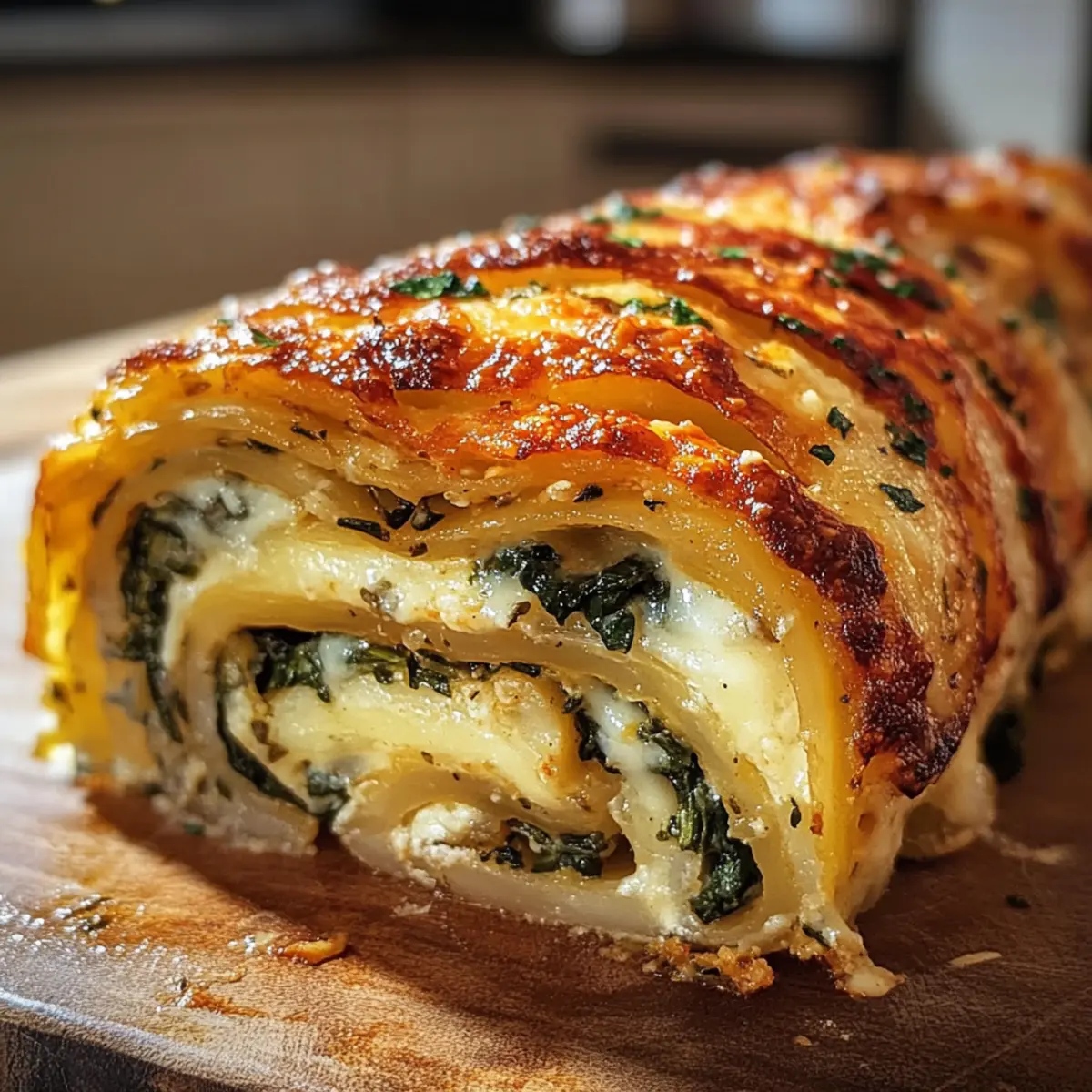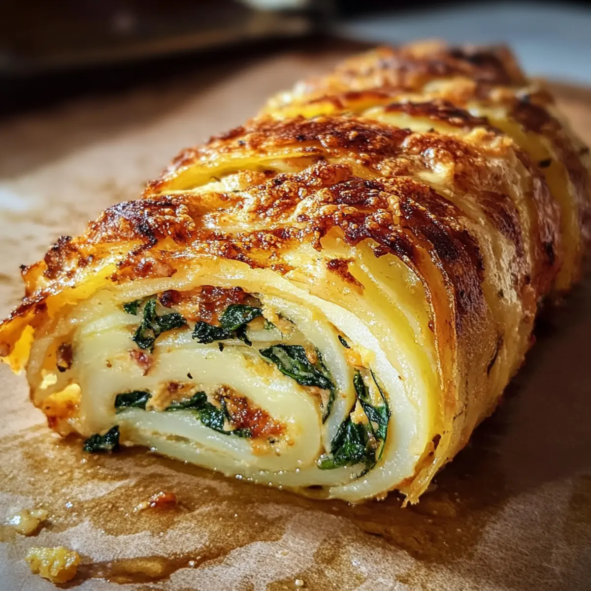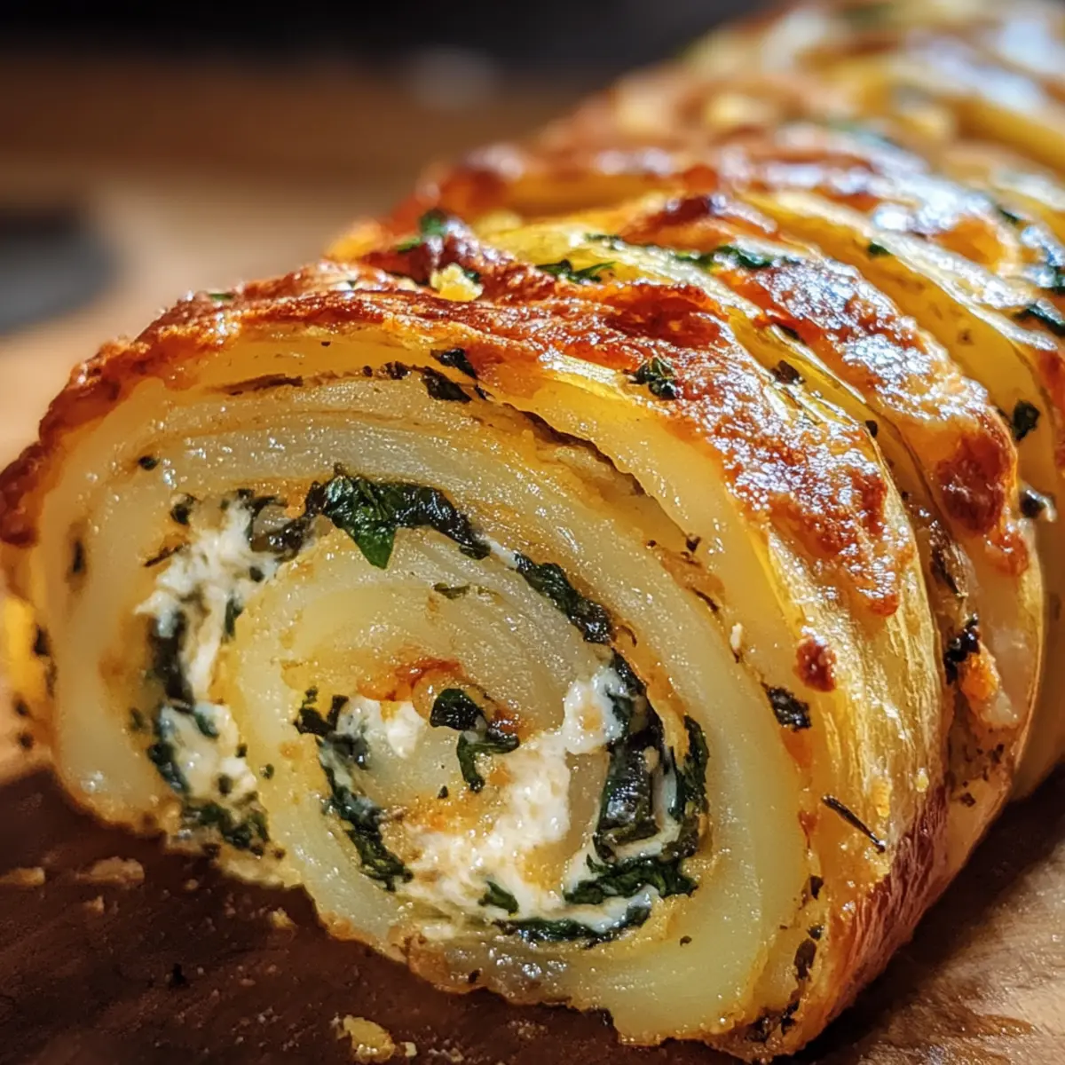 Die ersten Bissen dieser gratinierten Kartoffelrolle entführen mich in ein warmes, einladendes Zuhause, wo der Duft von frisch gebackenem Komfortessen durch die Luft schwebt. Dieses Rezept für die gratinierte Kartoffelrolle ist nicht nur ein Augenschmaus, sondern vereint mühelos die besten Eigenschaften von Comfort Food mit einer raffinierten Note. Jede Schicht zarter Kartoffeln und herzhafter Füllung bietet ein Geschmackserlebnis, das sowohl Tradition als auch Eleganz verkörpert. Diese Rolle lässt sich perfekt als Hauptgericht für Familienessen oder festliche Feiern vorbereiten und verleiht jedem Anlass das gewisse Etwas. Außerdem ist sie ein wahrer Crowd-Pleaser, der selbst die wählerischsten Gaumen überrascht. Und das Beste? Sie lässt sich hervorragend im Voraus zubereiten, sodass Sie mehr Zeit mit Ihren Gästen verbringen können. Neugierig auf den nächsten Schritt, um dieses Rezept zum Leben zu erwecken? Warum ist dieses Rezept so besonders? Einzigartiger Genuss: Die gratinierte Kartoffelrolle kombiniert die Cremigkeit von Sahne mit der herzhaften Tiefe des Käses für einen unwiderstehlichen Geschmack. Einfach und schnell: Die Zubereitung ist unkompliziert, perfekt für eine gelungene hausgemachte Mahlzeit, selbst für weniger erfahrene Köche. Vielfältig servierbar: Diese Rolle lässt sich sowohl alleine als Hauptgericht als auch als Beilage zu Fleisch oder Gemüse servieren, ideal für jeden Anlass. Auf jeden Fall ein Crowd-Pleaser! Ihre Präsentation und die Kombination traditioneller Aromen werden Ihre Gäste beeindrucken und den Tisch zum Gesprächsthema machen. Prima zum Voraus zubereiten: Diese perfekte Make-Ahead-Option ermöglicht es Ihnen, Stress am Abend zu vermeiden. Bereiten Sie die Rolle einfach im Voraus vor und backen Sie sie kurz vor dem Servieren. Gratinierte Kartoffelrolle Zutaten Für die Kartoffelschicht • Kartoffeln – – Dünn geschnitten, garantieren sie eine zarte Basis für die Rolle. • Butter – – Für das Anbraten der Zwiebeln und erhöht die Cremigkeit. Für die Füllung • Zwiebeln – – Ihre Süße und Tiefe verleihen der Füllung Charakter. • Knoblauch – – Frisch verwendet, intensiviert er den Geschmack der Mischung. • Sahne – – Sorgt für eine reichhaltige, cremige Füllung und kann durch griechischen Joghurt ersetzt werden. • Käse – – Die Kombination aus Mozzarella, Cheddar und Parmesan bringt eine herrliche Cremigkeit; jede schmelzende Käsesorte funktioniert. Für die Würzung • Salz & Pfeffer – – Grundlegende Gewürze, um jedes Element perfekt abzurunden. • Muskatnuss – – Verleiht der Kartoffelrolle eine subtile Wärme und Tiefe. Für die Garnitur • Schnittlauch – – Frisch gehackt, sorgt er für einen frischen Farb- und Geschmacksakzent. Dieses gratinierte Kartoffelrolle Rezept vereint all diese Zutaten für einen unvergesslichen Genuss! Step-by-Step Instructions for Gratinierte Kartoffelrolle Rezept Step 1: Kartoffeln vorbereiten Die Kartoffeln schälen und in dünne Scheiben schneiden, damit sie gleichmäßig garen. Heize den Ofen auf 180 Grad vor. Lege ein Backblech mit Backpapier aus und fette es leicht ein. Die Kartoffelscheiben überlappend auf dem Blech anordnen, mit etwas Butter bestreichen und mit Salz sowie Pfeffer würzen. Backe die Kartoffeln 25–30 Minuten, bis sie zart und goldbraun sind. Step 2: Zwiebeln anbraten Während die Kartoffeln im Ofen sind, die Zwiebeln fein hacken. In einer Pfanne etwas Butter erhitzen und die Zwiebeln darin bei mittlerer Hitze glasig dünsten, was etwa 3–4 Minuten dauert. Achte darauf, dass sie nicht anbrennen, da dies den Geschmack beeinträchtigen könnte. Diese aromatisierten Zwiebeln werden die Füllung der gratinierten Kartoffelrolle perfekt bereichern. Step 3: Sahnemischung anrühren In der Zwischenzeit die Sahne in eine Schüssel geben und mit Salz, Pfeffer und einer Prise Muskatnuss gut vermengen. Diese Mischung verleiht der gratinierten Kartoffelrolle nicht nur Geschmack, sondern sorgt auch für die cremige Textur. Rühre die Zutaten gründlich durch, sodass sie gleichmäßig verteilt sind, und lege die Mischung zur Seite. Step 4: Auflaufform vorbereiten Nehme eine geeignete Auflaufform und fette sie gut mit Butter ein, sodass die Kartoffelrolle beim Backen nicht kleben bleibt. Beginne nun, abwechselnd die gebackenen Kartoffelscheiben, die angebratenen Zwiebeln und die Käsesorten in die Form zu schichten. Achte darauf, jede Schicht gleichmäßig zu verteilen, damit alle Aromen gut zur Geltung kommen. Step 5: Sahnemischung hinzufügen Sobald die Schichten aus Kartoffeln, Zwiebeln und Käse in der Auflaufform angeordnet sind, gieße die vorbereitete Sahnemischung gleichmäßig darüber. Diese cremige Schicht bleibt beim Backen schön erhalten und trägt zur Vollmundigkeit der gratinierten Kartoffelrolle bei. Achte darauf, dass alles gut durchtränkt ist, um das volle Geschmackserlebnis zu gewährleisten. Step 6: Backen Setze die Auflaufform in den vorgeheizten Ofen und backe die gratinierte Kartoffelrolle für 45 Minuten. Achte darauf, dass die Oberseite eine goldene Farbe annimmt und die Käseoberfläche schön blubbert. Dies zeigt, dass die Aromen sich wunderbar vermischt haben und die Rolle nun fertig ist, um serviert zu werden. Step 7: Garnieren und Servieren Sobald die gratinierte Kartoffelrolle aus dem Ofen kommt, lasse sie einige Minuten ruhen, bevor du sie anschneidest, damit sie sich besser setzen kann. Garniere die Rolle mit frisch gehacktem Schnittlauch, um zusätzlichen Farb- und Geschmacksakzent zu setzen. Jetzt ist die Zeit gekommen, diese köstliche Kartoffelrolle in Scheiben zu schneiden und zu genießen! Meal Prep für die gratinierte Kartoffelrolle Die gratinierte Kartoffelrolle ist ideal für alle, die clever im Voraus planen möchten! Sie können die Kartoffelschichten und die Füllung bis zu 24 Stunden im Voraus zubereiten. Beginnen Sie, indem Sie die Kartoffeln schälen und schneiden sowie die Zwiebeln anbrat
