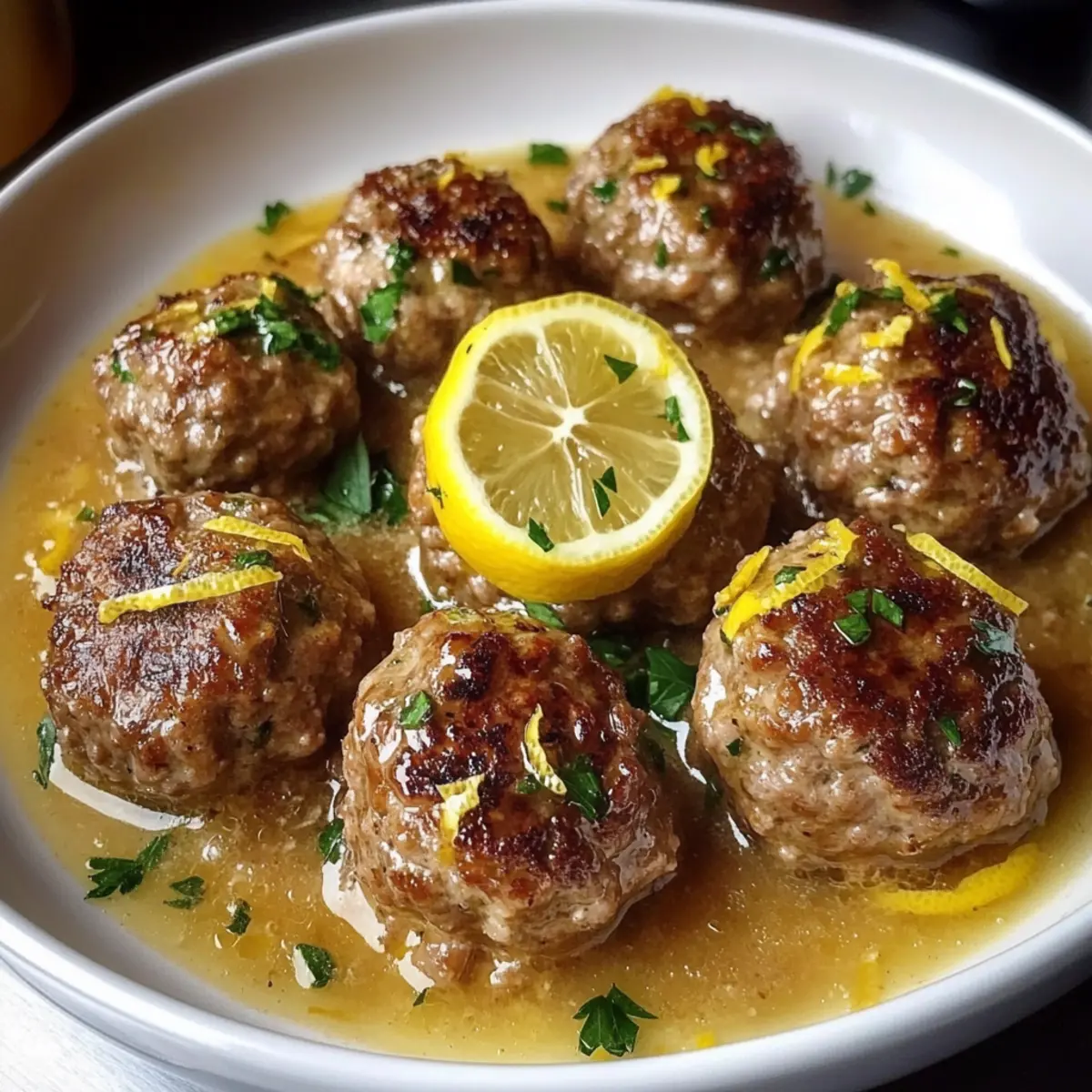 7. Servieren Sie die Fleischbällchen warm, garniert mit zusätzliche Zitronenschale oder frischer Petersilie.