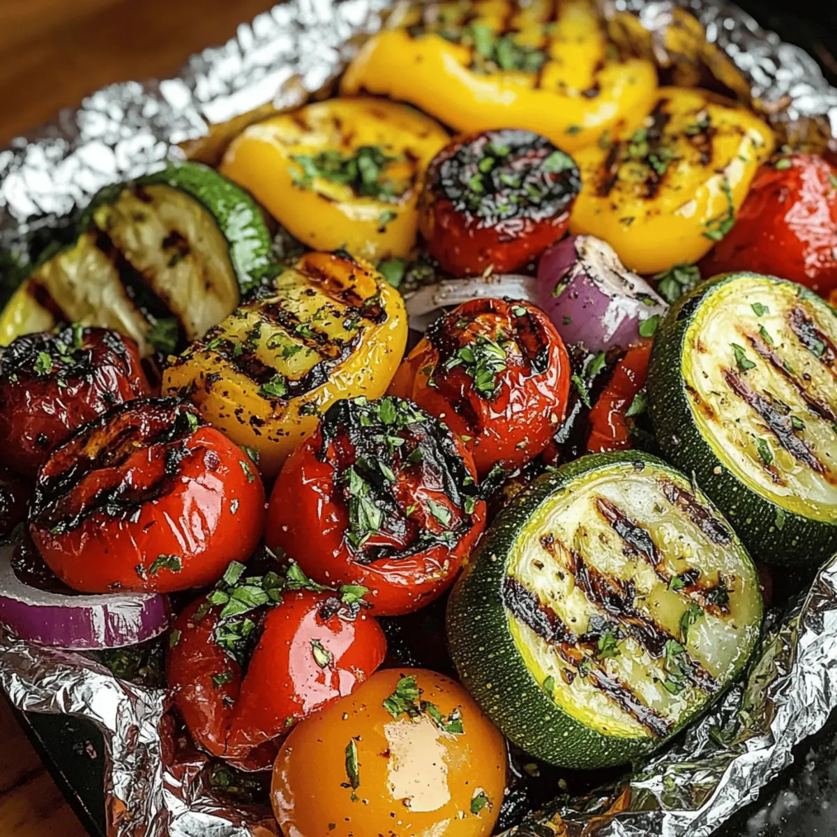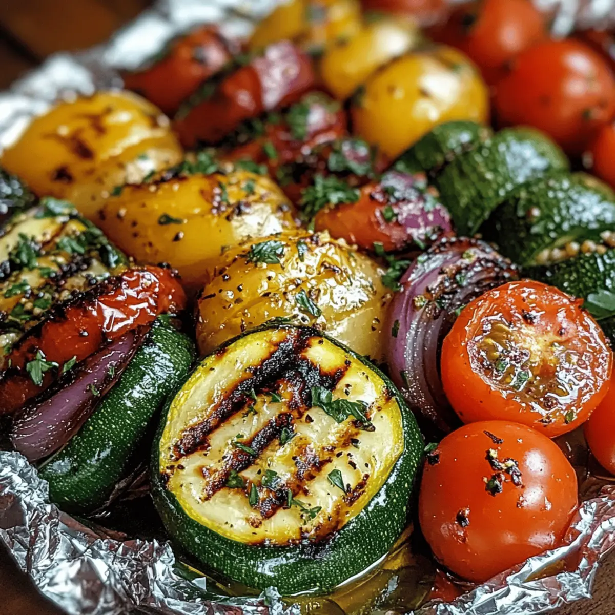 Der Duft von frisch gegrilltem Gemüse durchdringt den Sommer und weckt Erinnerungen an gesellige Abende im Garten. In diesen Grillgemüse-Päckchen vereinen sich saisonale Köstlichkeiten wie bunte Paprika, Zucchini und Kirschtomaten zu einem aromatischen Fest, das nicht nur das Auge erfreut, sondern auch gesund ist. Diese leicht zuzubereitenden Päckchen sind perfekt für jede Grillparty – ein köstliches Highlight und dazu auch noch vegan und glutenfrei! Wer möchte nicht, dass seine Gäste bei einem gemeinsamen Essen begeistert nach mehr verlangen? Lass uns gemeinsam in die Welt der Grillgemüse-Päckchen eintauchen und entdecken, wie einfach es ist, mit frischen Zutaten ein unvergessliches Geschmackserlebnis zu kreieren. Bist du bereit, deinen Grill zum Leben zu erwecken? Warum sind Grillgemüse-Päckchen der Hit? Vielfalt, die begeistert: Diese Grillgemüse-Päckchen sind nicht nur einfach zuzubereiten, sondern auch anpassbar mit deinen Lieblingsgemüsesorten oder saisonalen Zutaten – für jedes Grillfest! Gesunde Wahl: Vollgepackt mit Vitaminen und Mineralstoffen sind sie eine perfekte Ergänzung für gesundheitsbewusste Esser. Aromatische Kräuter: Der Einsatz von frischen Kräutern und Gewürzen verleiht diesen Päckchen einen unverwechselbaren Geschmack, der alle Gäste an den Tisch ruft. Einfaches Handling: Das Grillen in Aluminiumfolie sorgt dafür, dass die Aromen eingeschlossen bleiben und das Gemüse perfekt gart – kein mühseliges Wenden erforderlich! Begeisterte Gäste: Diese leckeren Päckchen sorgen für Gesprächsstoff und bleiben in Erinnerung, sodass deine Grillpartys noch lange im Gedächtnis bleiben. Probier auch unsere Serving Suggestions für eine kreative Präsentation! Grillgemüse-Päckchen Zutaten Für das Gemüse • Bunte Paprika – Verleiht Süße und Farbe; wähle feste und glänzende Paprika ohne Flecken. • Zucchini – Sorgt für eine zarte, feuchte Textur; wähle glatte, feste Zucchini und vermeide überreife Exemplare. • Gelbe Zucchini – Fügt einen leicht anderen Geschmack und zusätzliche Farbe hinzu, um die optische Anziehungskraft zu erhöhen. • Rote Zwiebel – Bietet milde Süße und mehr Geschmack durch das Grillen; wähle feste Zwiebeln ohne grüne Triebe. • Kirschtomaten – Bringen Saftigkeit und Säure ins Spiel; benutze reife, pralle Tomaten für den besten Geschmack. Für die Marinade • Knoblauch – Fügt aromatische Tiefe hinzu; feiner gehackter Knoblauch entfaltet intensivere Aromen. • Olivenöl – Dient als Marinade-Basis und verbessert die Geschmäcker, während es das Ankleben verhindert. • Balsamico-Essig – Bringt eine würzige Note und Komplexität in die Marinade. • Getrockneter Oregano und Thymian – Sorgen für Kräuternoten; frische Kräuter können für einen stärkeren Geschmack verwendet werden. • Salz und Pfeffer – Essenziell für die Würzung; nach Geschmack anpassen. Sonstiges • Aluminiumfolie – Wird benötigt, um die Gemüse-Päckchen zu wickeln und ist beim Grillen unerlässlich. Entdecke die unglaublichen Möglichkeiten, die dir diese Grillgemüse-Päckchen bieten, und genieße eine gesunde, köstliche Grillzeit! Schritt-für-Schritt-Anleitung für Grillgemüse-Päckchen Step 1: Gemüse vorbereiten Wasche die bunten Paprika, Zucchini und roten Zwiebeln gründlich. Schneide die Paprika und Zucchini in gleichmäßige Stücke und halbiere die Kirschtomaten. Achte darauf, dass alle Gemüsestücke ähnliche Größen haben, um ein gleichmäßiges Garen in deinen Grillgemüse-Päckchen zu gewährleisten. Step 2: Marinade erstellen In einer großen Schüssel vermischst du das Olivenöl, den Balsamico-Essig, den fein gehackten Knoblauch, getrockneten Oregano, Thymian sowie Salz und Pfeffer. Rühre die Mischung gut um, bis alle Zutaten gut kombiniert sind und ein aromatischer Duft entsteht. Diese Marinade bringt den Geschmack deiner Grillgemüse-Päckchen auf ein neues Level. Step 3: Gemüse vermengen Füge die vorbereiteten Gemüsewürfel zur Marinade hinzu und vermische alles gründlich, sodass jedes Stück gleichmäßig mit der würzigen Marinade überzogen ist. Lass die Mischung einige Minuten ziehen, damit die Aromen gut einziehen können. So erhältst du ein intensives Geschmackerlebnis in deinen Grillgemüse-Päckchen. Step 4: Folien-Päckchen vorbereiten Schneide große Stücke Aluminiumfolie zurecht, sodass du quadratische Flächen hast. Lege jeweils eine Portion der marinierten Gemüsemischung in die Mitte jeder Folie. Schlage die Folie gut zusammen, indem du die Ränder nach oben faltest und sie fest versiegelst, sodass die Aromen während des Grillens intragiert bleiben. Step 5: Grill vorheizen Heize den Grill auf mittelhohe Temperatur vor, etwa 200–220°C. Diese Temperatur sorgt dafür, dass die Grillgemüse-Päckchen gleichmäßig garen und du die perfekten grilltypischen Röstungen erhältst. Stelle sicher, dass der Grill gut vorgeheizt ist, um die besten Ergebnisse zu erzielen. Step 6: Päckchen grillen Platziere die Folien-Päckchen vorsichtig auf dem Grillrost. Grille sie für etwa 15-20 Minuten, wobei du sie gelegentlich drehst. Achte darauf, dass das Gemüse zart ist und an den Rändern leicht schimmert – das zeigt dir, dass die Grillgemüse-Päckchen perfekt gar sind. Step 7: Servieren Nimm die Päckchen vorsichtig vom Grill und öffne sie mit Bedacht, um dich vor dem heißen Dampf zu schützen. Anrichten kannst du sie direkt auf einem großen Teller oder nach Belieben über einem Bett aus Quinoa oder Couscous. Garniere die fertigen Grillgemüse-Päckchen mit frischen Kräutern für einen zusätzlichen Farb- und Geschmacksakzent. Was passt zu Grillgemüse-Päckchen? Egal ob für ein gemütliches Grillfest oder ein einfaches Abendessen – die richtige Beilage macht den Unterschied! Cremige Polenta: Sie ist zart und nimmt die Aromen der Grillgemüse-Päckchen wunderbar auf. Polenta sorgt für eine reichhaltige Textur und ergänzt die Frische des Gemüses perfekt. Qui