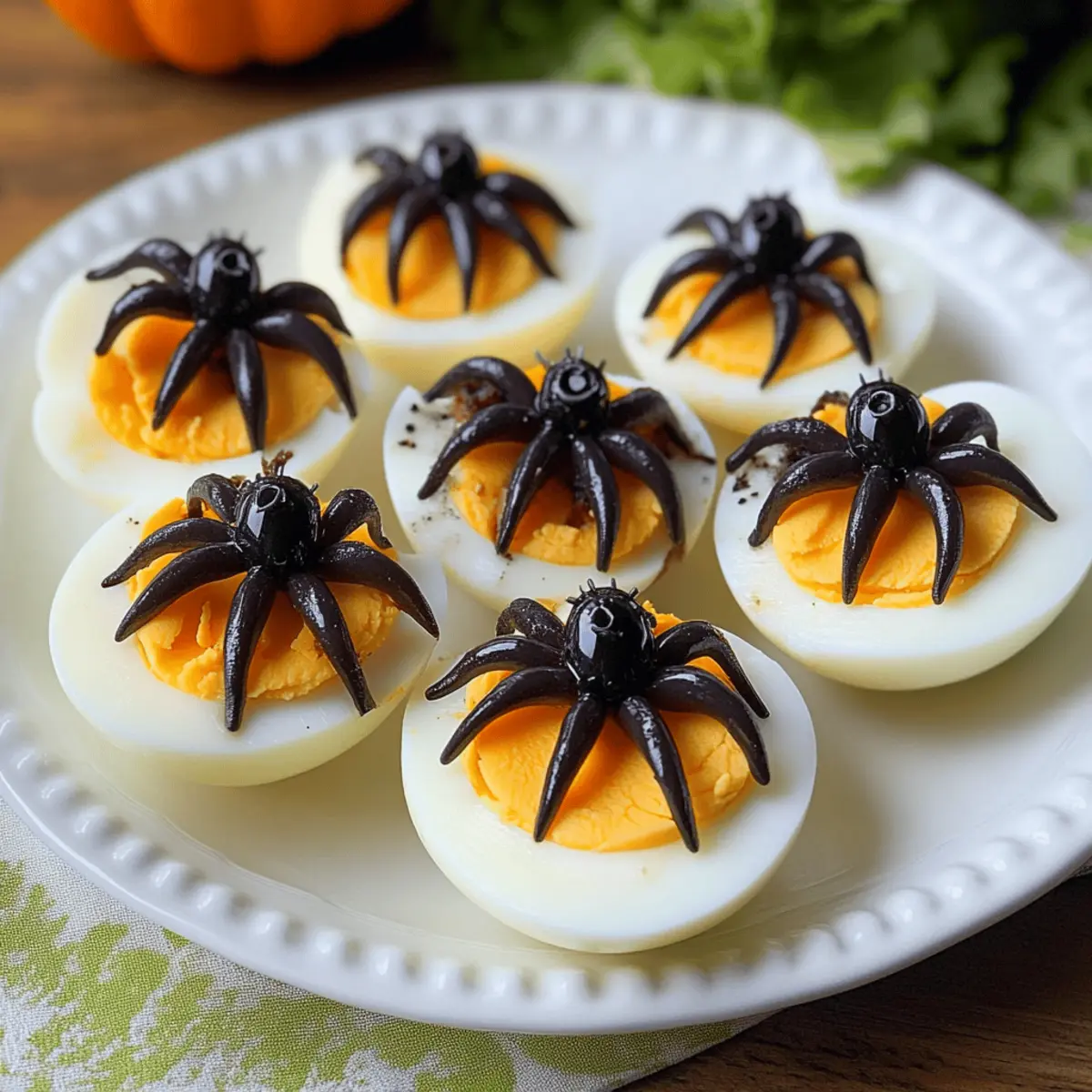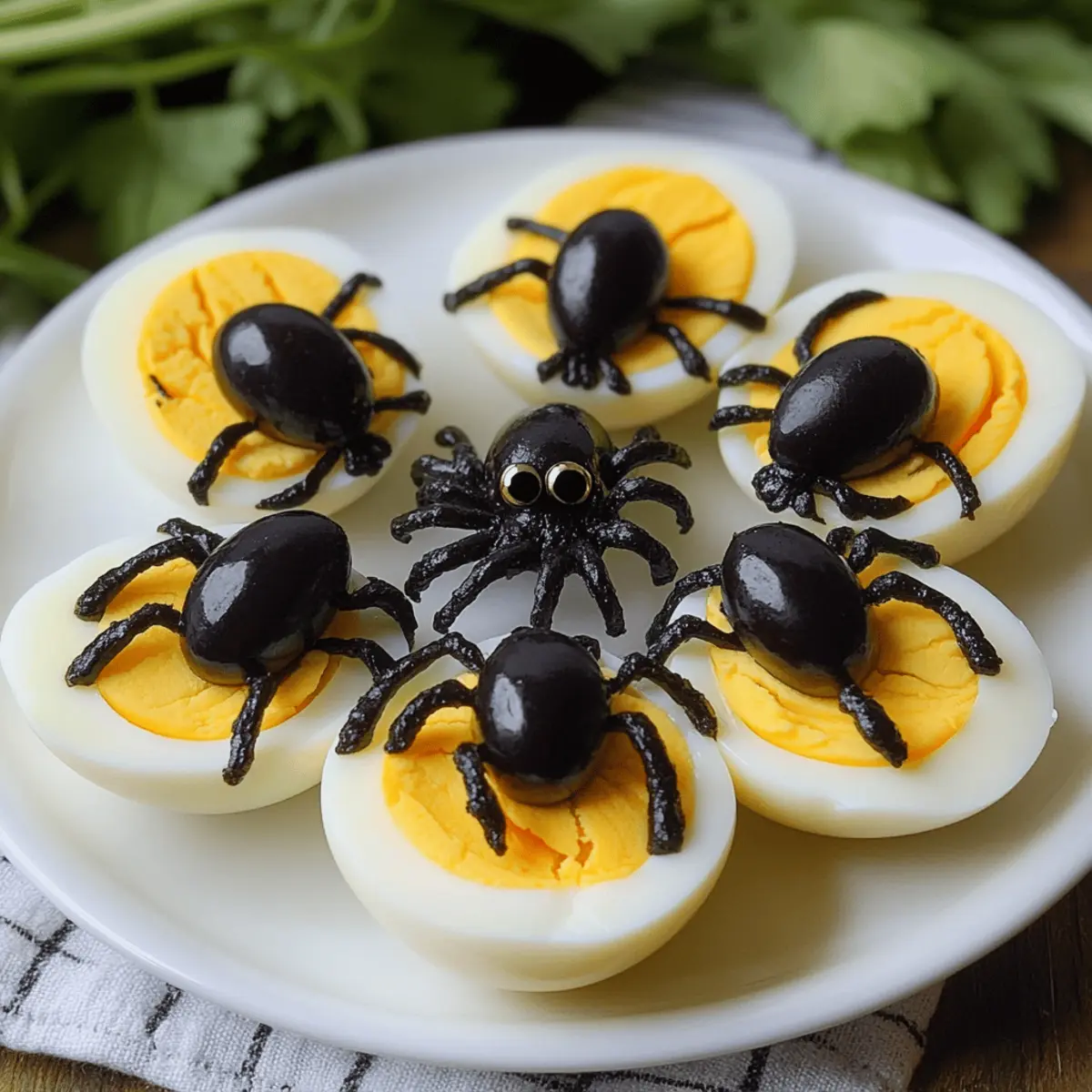Es war einmal eine Halloween-Feier, bei der die Kinder mit großen Augen um den Tisch herumschwirrten, während das Licht von flackernden Kerzen tanzte. Genau in diesem Moment fielen mir die gruselige Spinneneier ein – eine unheimlich coole Kombination aus frischen, hartgekochten Eiern und samtigen schwarzen Oliven. Diese gruselige Kleinigkeit ist nicht nur unglaublich einfach zuzubereiten, sondern sorgt auch für viel Spaß auf jeder Halloween-Party. Die gruselige Optik und der proteinreiche Snack machen sie zu einem Hit für Groß und Klein. Wenn du Lust auf ein bisschen Gespenster-Stimmung und unbeschwerte Gaudi hast, sind diese gruselige Spinneneier genau das Richtige. Neugierig, wie du diese schaurigen Leckerbissen selbst zubereiten kannst? Lass uns gemeinsam in die Zubereitung eintauchen! Warum sind gruselige Spinneneier perfekt? Spielerisch und kreativ: Die gruselige Optik dieser Spinneneier verwandelt einfaches Kochen in ein schauriges Kunstwerk, das in jedem Halloween-Gespräch für Aufsehen sorgt. Rasche Zubereitung: In nur wenigen Schritten bereit, sind diese Snacks ideal für spontane Feiern, da sie dir wertvolle Zeit sparen. Nährstoffreich: Diese kleinen Leckerbissen bieten nicht nur Spaß, sondern auch eine gute Portion Protein, was sie zur perfekten Wahl für Kinder und Erwachsene macht. Vielfältig anpassbar: Du kannst mit verschiedenen Oliven oder saisonalen Gewürzen experimentieren, um die Präsentation noch aufregender zu gestalten – entdecke kreative Ideen wie in den Variation Ideen. Familienfreundlich: Die Kombination aus fluffigem Ei und salzigen Oliven spricht Geschmäcker aller Altersgruppen an und sorgt dafür, dass alle bei deinen Festlichkeiten glücklich sind. Zutaten für gruselige Spinneneier • Ideal für ein schauriges Halloween-Highlight! Für die Eier Eier (Eggs) – Diese bilden die Grundlage des Snacks und liefern wertvolles Protein; achte darauf, die Größe entsprechend der Kochzeiten anzupassen. Für die Dekoration Schwarze Oliven (Black Olives) – Sie dienen als schaurige Spinnen-Dekoration und verleihen dem Snack einen salzigen Geschmack; du kannst auch grüne Oliven verwenden, beachte jedoch, dass sie nicht die gruselige Farbe haben. Grapes (Trauben) – Für eine kreative Wendung können sie statt Oliven verwendet werden, um eine andere gruselige Optik zu zaubern. Lass dich inspirieren und mache diese gruselige Köstlichkeit zu einem Highlight deiner Halloween-Feier! Schritt-für-Schritt-Anleitung für gruselige Spinneneier Schritt 1: Eier kochen Setze einen Topf mit Wasser auf den Herd und bringe es zum Kochen. Lege vorsichtig die Eier hinein und koche sie für etwa 10 Minuten, bis sie hartgekocht sind. Um sicherzustellen, dass die Eier gut gekocht sind, solltest du auf einen stabilen, sanften Kochvorgang achten. Nach dem Kochen die Eier in kaltes Wasser legen, um den Kochprozess zu stoppen. Schritt 2: Eier schälen und schneiden Sobald die Eier abgekühlt sind, schäle sie vorsichtig und schneide sie der Länge nach in zwei Hälften. Achte darauf, dabei die Eierschalen vollständig zu entfernen, damit die weißen Eierhälften schön glatt und bereit für die Dekoration sind. Diese Hälften sind jetzt die perfekte Grundlage für deine gruselige Spinneneier. Schritt 3: Oliven dekorieren Halbiere die entkernten schwarzen Oliven, um die Körper der Spinnen zu erstellen. Platziere jeweils eine Olive auf jeder Eierhälfte, sodass sie wie Spinnen aussehen. Für die Beine kannst du die halben Oliven in kleinere Streifen schneiden und um den Körper herum anordnen, um ein noch gruseliges Aussehen zu erzeugen. Schritt 4: Anrichten und servieren Arrangiere die gruselige Spinneneier auf einem ansprechenden Teller. Du kannst die Eier auf einem Bett aus grünen Blättern oder mit fiktiven Spinnen dekorieren, um das schaurige Ambiente zu verstärken. Wenn alles schön platziert ist, sind deine gruselige Spinneneier bereit, um auf deiner Halloween-Party serviert zu werden und viele begeisterte Gesichter zu zaubern. Vorbereitung für gruselige Spinneneier Die gruselige Spinneneier sind perfekt für eine zügige Essensvorbereitung! Du kannst die Eier bis zu 24 Stunden im Voraus kochen und im Kühlschrank aufbewahren, was dir wertvolle Zeit am Tag der Feier spart. Um die beste Qualität zu gewährleisten, lege die gekochten Eier nach dem Abkühlen in kaltes Wasser, um ein Anhaften der Schale zu verhindern. Wenn du bereit bist zu dekorieren, schäle die Eier und halbiere sie einfach. Halbiere die schwarzen Oliven und platziere sie auf den Eihälften, um die Spinnen zu formen. Mit diesen Vorbereitungen hast du schnell und einfach gruselige Spinneneier kreiert, die genauso lecker wie frisch sein werden! Variationen & Alternativen für gruselige Spinneneier Lass deiner Kreativität freien Lauf und passe die Rezeptur nach deinem Geschmack an, um deine Gäste zu überraschen! Vegetarisch: Verwende statt Oliven kleine Paprikastücke als Spinnenkörper für eine bunte Präsentation. Diese Variante bringt frische Farben auf den Tisch und ist ideal für alle, die kein Olivenfan sind. Scharfer Kick: Füge etwas Chilipulver zu den Eiern hinzu, um eine feurige Note zu erhalten. Perfekt für diejenigen, die ihre Snacks gerne würzig mögen! Crunchy Texture: Streue einige geröstete Sonnenblumenkerne über die Eier für einen zusätzlichen Crunch. So wird dieser Snack noch interessanter und bietet einen spannenden Biss. Gourmet-Twist: Probiere schwarze Trüffelöl auf den fertigen Spinneneiern für einen Hauch von Luxus. Diese Idee verwandelt deine Gruseligen Spinneneier in ein elegantes Appetizer für besondere Anlässe. Süßes Überraschung: Tausche die schwarzen Oliven gegen Trauben für eine süßere, kindgerechte Version aus. So wird der Geschmack süß und frisch, was besonders bei den Kleinen gut ankommt – eine spannende Abwechslung! Füllung variieren: Verwende eine cremige Füllung aus Frischkäse mit Kräutern, um einen herzhaften Snack zu kreieren. Dies s