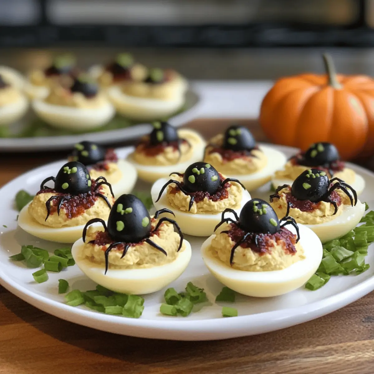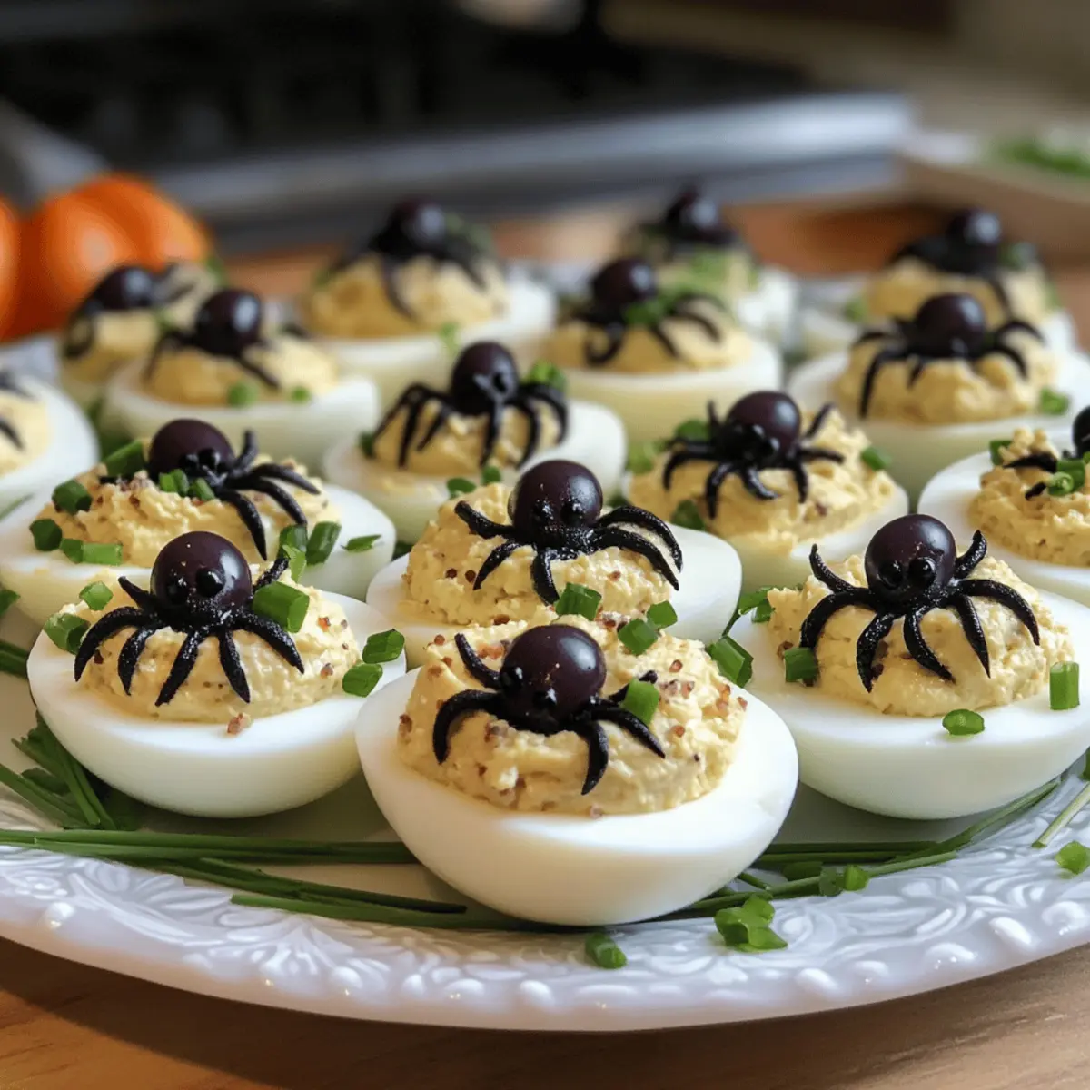 Hast du auch schon einmal erlebt, dass das Essen auf einer Halloween-Party alle Blicke auf sich zieht? Diese Gruselige Teufels-Eier sind genau das! Mit ihrer unheimlich ansprechenden Präsentation und den köstlichen Aromen werden sie nicht nur deine Gäste zum Staunen bringen, sondern sind auch ein proteinreicher Snack, der in nur 45 Minuten zubereitet ist. Mit einer Vielzahl von Farben und kreativen Variationen, wie Spinnen- und Augäpfel-Eiern, fügen sie eine furchterregende, aber schmackhafte Note zu deinem Halloween-Buffet hinzu. Außerdem sind sie perfekt für jede Diät—ob low-carb, keto oder vegetarisch. Bist du bereit, deine nächste Halloween-Feier mit diesen schaurig-schönen Leckerbissen zu bereichern? Warum sind diese Gruselige Teufels-Eier unvergesslich? Einzigartiges Erlebnis: Diese Gruselige Teufels-Eier sind nicht nur ein Gaumenschmaus, sondern auch ein visueller Höhepunkt auf jeder Halloween-Feier. Einfach und Schnell: Die Zubereitung dauert lediglich 45 Minuten und erfordert keine speziellen Kochkünste—ideal für jeden Hobbykoch. Proteinreicher Snack: Jedes Ei liefert wertvolle Proteine, was sie zu einer großartigen Wahl für health-conscious Gäste macht. Vielfältige Variationen: Ob Spinnen- oder Augäpfel-Eier, mit einfachen Anpassungen kannst du kreative Designs und Geschmäcker kreieren. Diätfreundlich: Egal ob low-carb oder vegetarisch, diese Eier sind vielseitig und passen sich an unterschiedliche Ernährungsweisen an. Party-Publikumsmagnet: Mit ihrem schaurigen Aussehen werden sie schnell zum Gesprächsthema und begeistern sowohl Kinder als auch Erwachsene! Gruselige Teufels-Eier Zutaten Notiz: Die perfekte Grundlage für deine schaurigen Teufels-Eier! Eier – die Hauptzutat; liefern wertvolles Protein und essentielle Nährstoffe. Hinweis: Frische Bio-Eier verwenden für besseren Geschmack. Mayonnaise – sorgt für Cremigkeit und Reichhaltigkeit in der Eigelbfüllung. Substitution: Griechischer Joghurt reduziert die Kalorien und fügt Probiotika hinzu. Senf – verstärkt den Geschmack mit einer spritzigen Note. Optional: Für mehr Geschmacksvertiefung hinzufügen. Essig – bringt Säure ins Spiel, um die Aromen auszubalancieren. Weißweinessig ist eine milde Wahl. Salz & Pfeffer – Gewürze; nach Geschmack anpassen. Frische Kräuter sind eine gute Option für weniger Natrium. Lebensmittelfarbe – schwarz und orange für gruselige Effekte. Optional: bringt Farbvielfalt und steigert die visuelle Anziehungskraft. Schwarze Oliven – verwendet, um „Spinnen“-Eier zu kreieren. Substitution: Schwarze Bohnen können als vegetarische Option verwendet werden. Schnittlauch – dient als „Beine“ der Spinnen für die Dekoration. Alternative: Dünn geschnittene Gurke oder Frühlingszwiebel kann denselben Effekt erzielen. Verwandle deine Halloween-Feier mit diesen kreativen Gruselige Teufels-Eier in ein unvergessliches Fest! Schritt-für-Schritt-Anleitung für Gruselige Teufels-Eier Step 1: Eier kochen Lege die Eier in einen großen Topf und bedecke sie mit kaltem Wasser. Bringe das Wasser bei mittlerer Hitze zum Kochen, dann nimm den Topf vom Herd und lasse ihn zugedeckt 12 Minuten stehen. Dies sorgt dafür, dass die Eier perfekt hart gekocht sind und ein klares, gleichmäßiges Eigelb haben. Step 2: Eier abkühlen Nach 12 Minuten nimm die Eier aus dem heißen Wasser und lege sie direkt in ein Eiswasserbad. Lasse die Eier dort für mindestens 10 Minuten, um den Kochprozess zu stoppen und das Schälen zu erleichtern. So bleiben die Eier schön frisch und vermeiden eine grüne Verfärbung des Eigelbs. Step 3: Eier schälen Nach dem Abkühlen halte die Eier unter kaltem, fließendem Wasser und schäle sie vorsichtig. Achte darauf, die Schale sanft abzutrennen, um die weiße Struktur nicht zu beschädigen. Danach patsche die Eier trocken mit einem Küchentuch, damit sie bereit für die weitere Verarbeitung sind. Step 4: Eigelb vorbereiten Schneide die gekochten Eier der Länge nach in zwei Hälften und entnimm das Eigelb mit einem Löffel in eine Rührschüssel. Zerdrücke die Eigelbe mit einer Gabel und füge Mayonnaise, Senf, Essig, Salz und Pfeffer hinzu. Vermische alles gut, bis die Masse schön cremig und glatt wird. Step 5: Eigelb einfärben Teile die Eigelbmasse in mehrere Schüsseln auf – eine für die natürliche Farbe und eine andere, die du mit schwarzer Lebensmittelfarbe und eine dritte mit orangefarbener Lebensmittelfarbe anpasst. Dadurch erhältst du die verschiedenen Farben für deine Gruselige Teufels-Eier, die den visuellen Reiz nochmals steigern. Step 6: Eiweiße füllen Nutze einen Löffel oder einen Spritzbeutel, um die bunte Eigelbmasse vorsichtig in die Hälften der Eiweiße zu füllen. Achte darauf, die Füllung hübsch zu dekorieren. Es sieht besonders beeindruckend aus, wenn du die Farben übereinander schichtest, bevor du die Eier zur Präsentation bereit machst. Step 7: Dekorieren Für ein schauriges Finish schneide die schwarzen Oliven in Hälften und platziere sie auf den gefüllten Eiern als Spinnen-Augen. Alternativ kannst du Frischkäse-Tupfen und Paprika verwenden, um das Aussehen von Grusel-Augen zu kreieren. Diese kreativen Dekorationen verleihen deinem Gericht den letzten Schliff für eine Halloween-Party. Step 8: Kühlen vor dem Servieren Die fertig dekorierten Gruselige Teufels-Eier am besten für mindestens 30 Minuten im Kühlschrank kalt stellen. Dies sorgt nicht nur für einen besseren Geschmack, sondern liegt auch vorteilhaft in der Präsentation, da sie gekühlt besonders appetitlich aussehen. Lagerungstipps für Gruselige Teufels-Eier Raumtemperatur: Gruselige Teufels-Eier sollten nicht bei Raumtemperatur gelagert werden, um die Frische und Sicherheit zu gewährleisten. Kühlschrank: Bewahre die gefüllten Eier in einem luftdichten Behälter im Kühlschrank auf, wo sie bis zu 3 Tage frisch bleiben. Schichtung: Verwende Pergamentpapier zwischen den Schichten, um ein Ankleben der Eier zu verhindern und die Präse