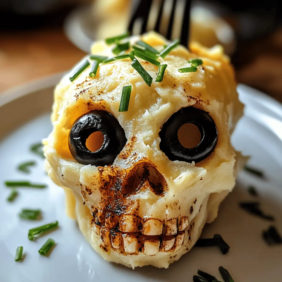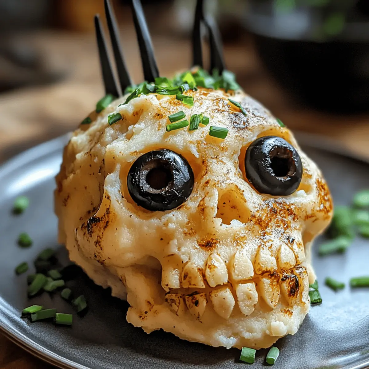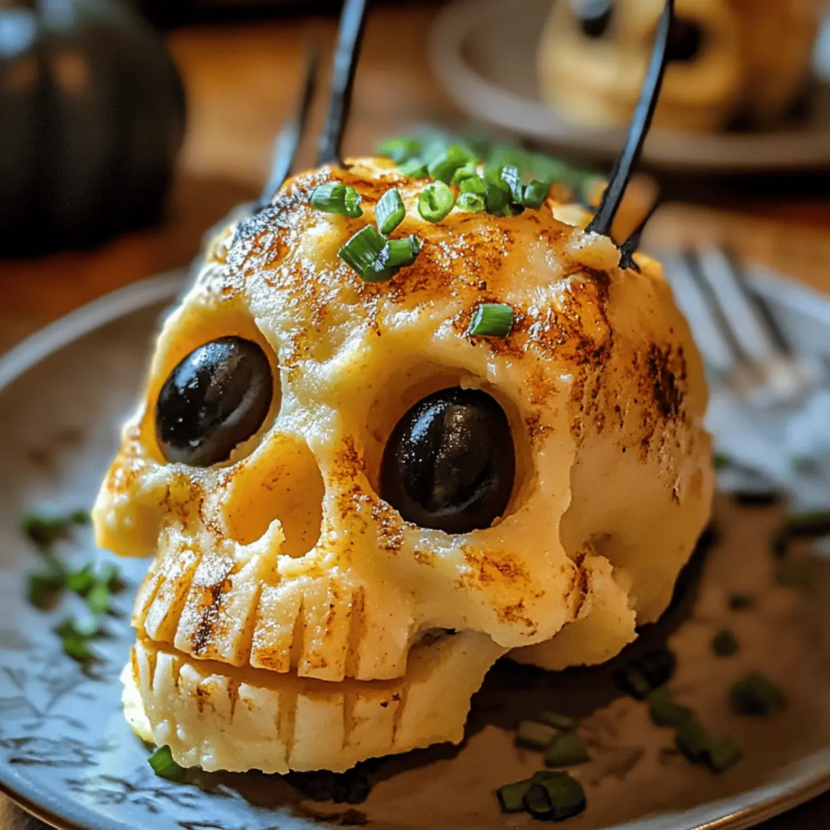 Die Gruselige Totenkopf Kartoffeln warm servieren und optional mit frisch gehacktem Schnittlauch oder Frühlingszwiebeln garnieren. Sie sind die perfekte Beilage for deine Halloween-Feier und werden sicherlich für Aufsehen sorgen!