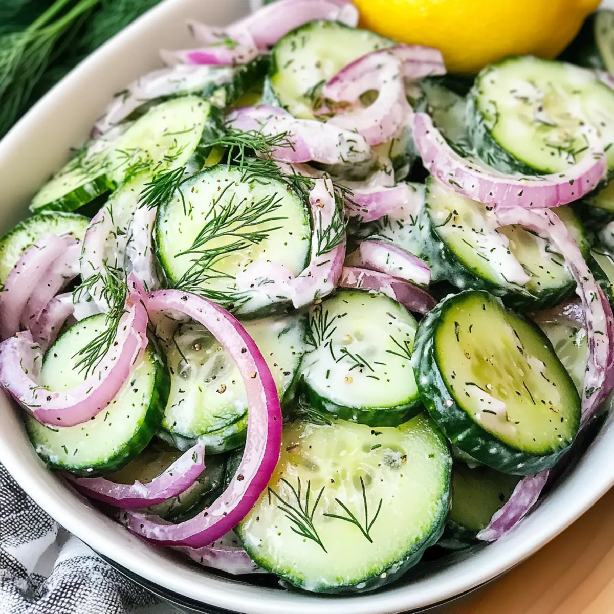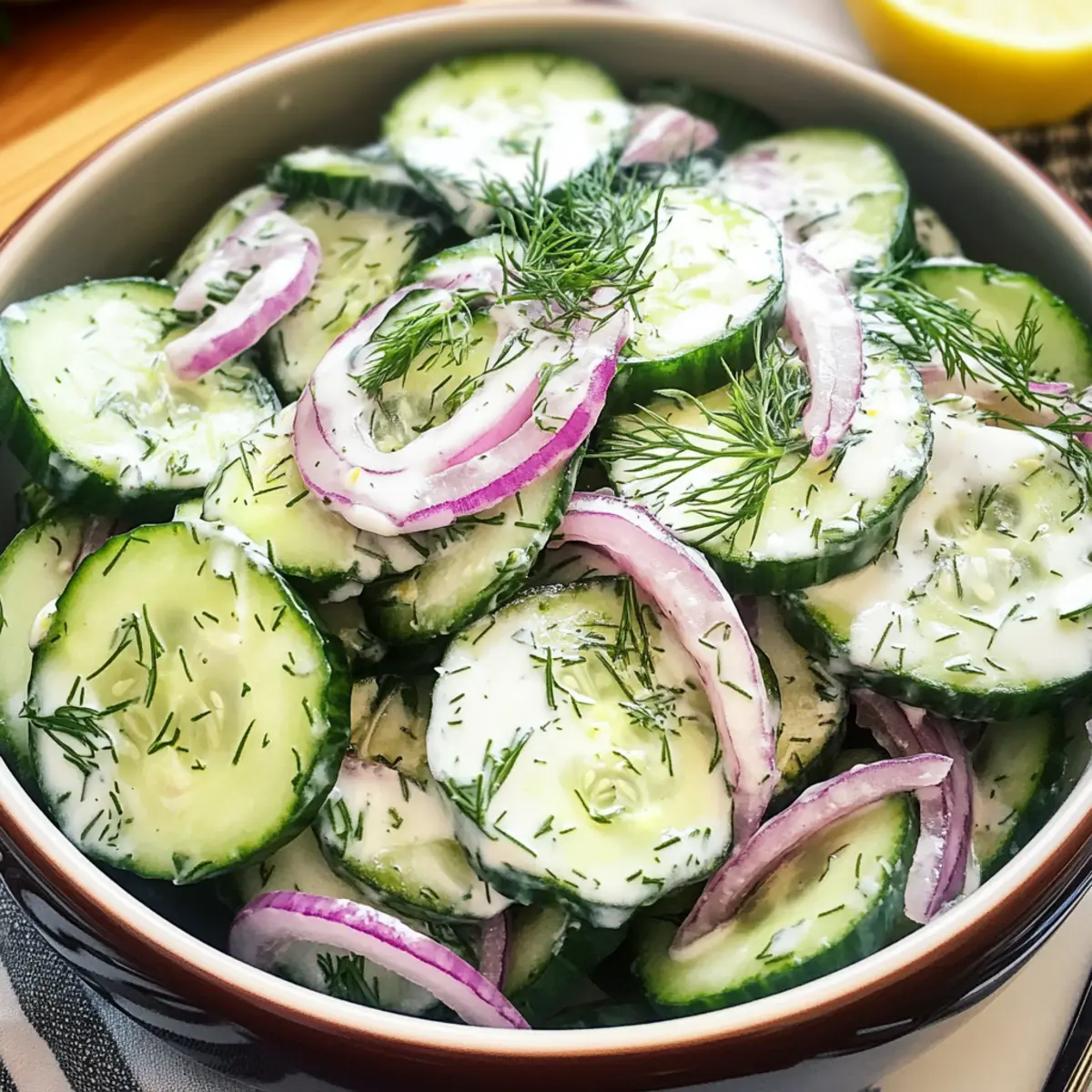 Frische Zutaten: Dieser Gurken-Dill-Salat bringt den Geschmack des Sommers direkt auf deinen Tisch. Einfachheit pur: In nur 10 Minuten zubereitet, ist er perfekt für spontane Grillpartys oder das Mittagessen. Gesunde Wahl: Mit nur 104 Kalorien pro Portion passt er hervorragend in jede Diät, sei es glutenfrei, vegan oder kalorienarm. Vielfältig einsetzbar: Kombiniere ihn mit gegrilltem Fleisch oder genieße ihn als leichten Snack. Unvergesslicher Geschmack: Die Kombination aus knackigen Gurken, aromatischem Dill und einem cremigen, zitronigen Dressing begeistert jeden Gaumen. Nutze auch die Gelegenheit, die Frische zu betonen, indem du selbstgemachte Dressings ausprobierst!