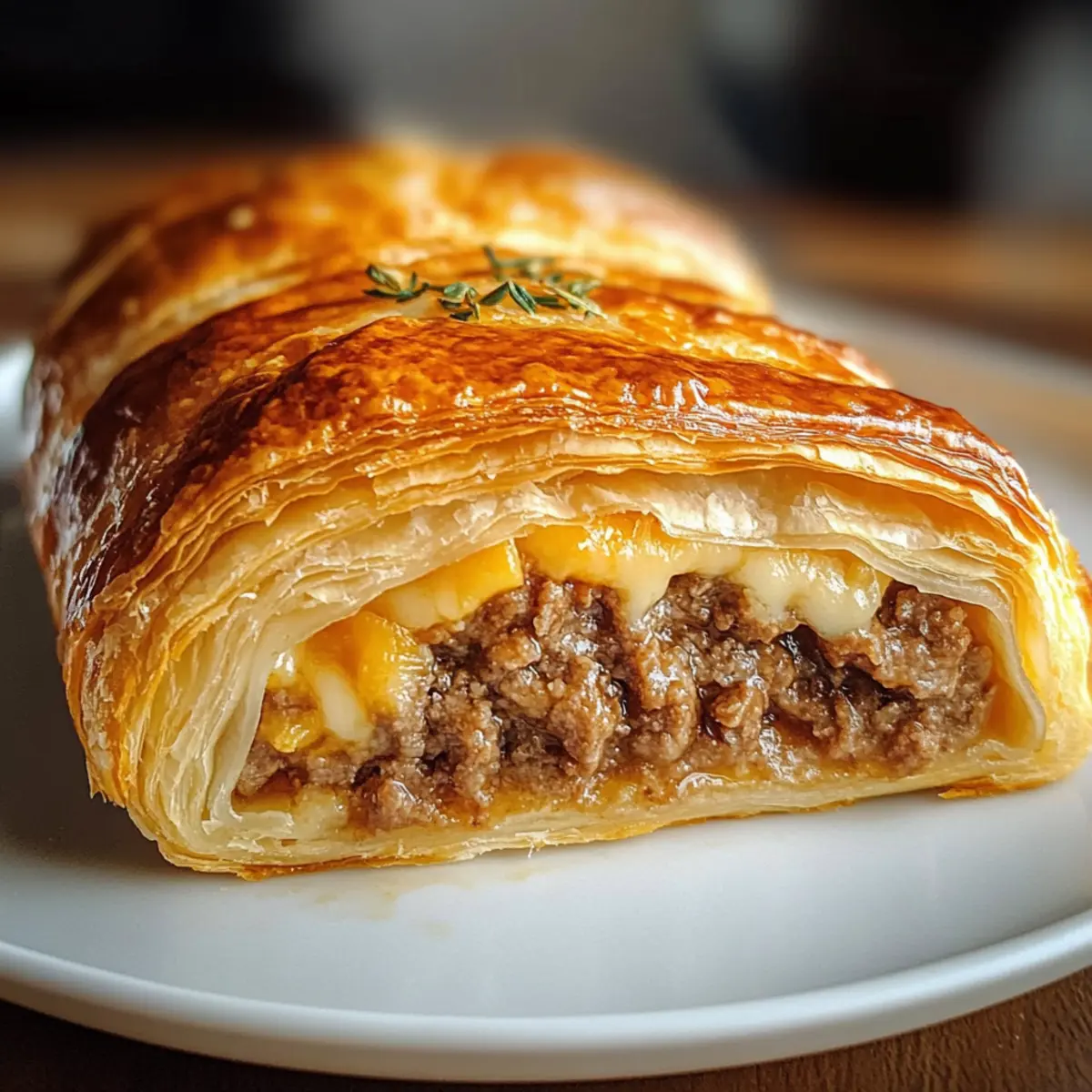 Es gibt kaum etwas Befriedigenderes, als dem verlockenden Duft einer frisch gebackenen Hackfleisch-Käse-Blätterteig-Rolle in der eigenen Küche zu begegnen. Dieses Rezept vereint herzhaften Genuss und knusprigen Genuss auf wunderbare Weise – ideal, um Familie und Freunde zu verwöhnen oder ein schnelles, aber beeindruckendes Gericht für unerwartete Gäste zu zaubern. Mit einigen einfachen Zutaten wird aus dem fluffigen Blätterteig und dem würzigen Hackfleisch ein köstliches Erlebnis, das große und kleine Feinschmecker begeistert. Ob warm als Hauptgericht oder kalt als Snack – diese traditionelle deutsche Delikatesse bietet nicht nur einen hohen Spaßfaktor, sondern ist auch äußerst anpassungsfähig für zahlreiche Variationen. Welche Füllung würden Sie als Nächstes ausprobieren? Warum ist diese Rolle so besonders? Herzhaft und sättigend: Die Hackfleisch-Käse-Blätterteig-Rolle ist eine wahre Geschmacksexplosion! Einfach zuzubereiten: Selbst Anfänger in der Küche werden mit Leichtigkeit erfolgreich sein. Vielseitig: Experimentieren Sie mit verschiedenen Füllungen und Käsesorten – der Kreativität sind keine Grenzen gesetzt! Ideal für jede Gelegenheit: Ob Familienessen oder improvisierter Snack, diese Rolle begeistert Gäste jeden Alters. Aromatisch und einladend: Der Duft, der beim Backen durch die Küche zieht, schafft eine behagliche Atmosphäre. Machen Sie sich bereit, mit dieser herzhaften Delikatesse den Alltag zu bereichern! Hackfleisch-Käse-Blätterteig-Rolle Zutaten • Für diese köstliche Hackfleisch-Käse-Blätterteig-Rolle benötigen Sie einige einfache, aber geschmackvolle Zutaten. Für die Füllung Rinderhackfleisch – sorgt für starken Geschmack und bleibt beim Kochen saftig; alternativ kann auch gemischtes Hackfleisch verwendet werden. Frische Kräuter (Petersilie oder Schnittlauch) – verleihen der Füllung Frische und Farbe; alternative Kräuter wie Thymian oder Basilikum sind ebenfalls erhältlich. Paprika oder Zwiebel – steigern die Feuchtigkeit und bringen eine süßliche Note; verwenden Sie nach Geschmack rote oder gelbe Paprika. Chiliflocken oder Jalapeños (optional) – für eine scharfe Note; dosieren Sie sparsam je nach persönlicher Vorliebe. Für den Teig Blätterteig – die knusprige Hülle, die die Füllung umschließt; verwenden Sie am besten hochwertigen, fertigen Blätterteig. Ei – sorgt für die goldbraune Kruste; wichtig für ein ansprechendes Aussehen. Salz – hebt den Geschmack in der gesamten Füllung; nach Belieben anpassen. Pfeffer – fügt eine milde Schärfe und Tiefe hinzu; normaler schwarzer Pfeffer ist eine sichere Wahl. Paprikapulver – bringt eine leicht rauchige Note in die Füllung; geräuchertes Paprikapulver sorgt für noch mehr Geschmack. Für den Käse Geriebener Käse (Gouda, Emmentaler oder Cheddar) – sorgt für Cremigkeit und verbindet die Aromen; ersetzen Sie durch jede schmelzbare Käsesorte, die Ihnen gefällt. Schritt-für-Schritt-Anleitung für Hackfleisch-Käse-Blätterteig-Rolle Step 1: Fleisch würzen Das Rinderhackfleisch in eine Schüssel geben und mit Salz, Pfeffer und Paprikapulver würzen. Frische Kräuter wie Petersilie oder Schnittlauch sowie gewürfelte Paprika oder Zwiebel hinzufügen. Alles gut vermengen und das Fleischgemisch für etwa 5 Minuten beiseite stellen, damit die Aromen sich entfalten können. Step 2: Blätterteig vorbereiten Den Blätterteig auf ein mit Backpapier ausgelegtes Blech ausrollen. Lassen Sie ihn für 2–3 Minuten entspannen, damit er sich leichter verarbeiten lässt. Achten Sie darauf, dass der Teig gleichmäßig dünn ist, um später eine schöne, knusprige Kruste zu erhalten. Step 3: Käse verteilen Geriebenen Käse gleichmäßig auf die Fläche des Blätterteigs streuen und dabei einen Rand von etwa 2 cm frei lassen. Dieser Käse wird beim Backen schmelzen und die Füllung zusammenhalten. Lassen Sie genug Platz, um die Rolle später gut einzuschlagen. Step 4: Füllung auftragen Das vorbereitete Hackfleischgemisch gleichmäßig über den Käse verteilen. Sanft andrücken, um die Füllung zu komprimieren, damit sie beim Backen nicht herausfällt. Achten Sie darauf, dass die Zutaten gleichmäßig verteilt sind, um ein gleichmäßiges Backen zu gewährleisten. Step 5: Rolle formen An einer Seite des Blätterteigs beginnend, den Teig vorsichtig aufrollen. Achten Sie darauf, die Enden gut zu verschließen, damit die Füllung beim Backen nicht entweicht. Legen Sie die Rolle mit der Nahtstelle nach unten auf das Backpapier, um sie stabil zu halten. Step 6: Mit Ei bestreichen Ein Ei in einer kleinen Schüssel verquirlen und die Oberseite der Rolle gleichmäßig damit bestreichen. Dies sorgt für eine appetitliche goldene Farbe und eine glänzende Kruste. Achten Sie darauf, dass der gesamte Teig mit Ei überzogen ist. Step 7: Backofen vorheizen Den Backofen auf 200°C vorheizen (180°C für Umluftherde). Das ist wichtig, damit die Hackfleisch-Käse-Blätterteig-Rolle von Beginn an gleichmäßig backt und der Blätterteig schön aufgeht. Step 8: Backen und auskühlen Die Rolle in den vorgeheizten Ofen geben und 25–30 Minuten backen, bis sie goldbraun und knusprig ist. Nach dem Backen die Rolle für etwa 5 Minuten abkühlen lassen, bevor sie in Scheiben geschnitten wird. Dies hilft, die Füllung zu fixieren und eine ordentliche Form zu bewahren. Lagerungstipps für Hackfleisch-Käse-Blätterteig-Rolle Raumtemperatur: Die Hackfleisch-Käse-Blätterteig-Rolle sollte nicht länger als 2 Stunden bei Raumtemperatur stehen, um die Frische des Gerichts zu sichern. Kühlschrank: Bewahren Sie die Rolle nach dem Abkühlen in einem luftdichten Behälter im Kühlschrank auf; sie bleibt dort bis zu 3 Tage frisch. Gefrierschrank: Für eine längere Haltbarkeit lassen sich die Rolle in Scheiben schneiden und bis zu 3 Monate im Gefrierfach aufbewahren. Zum Aufwärmen im Ofen bei 180°C für 15-20 Minuten backen, bis sie durchgehend heiß ist. Wiedererwärmung: Um die Knuspr