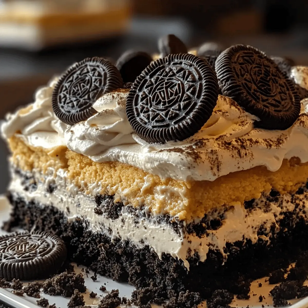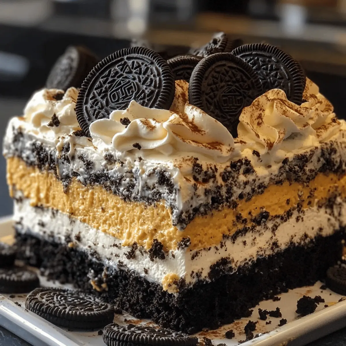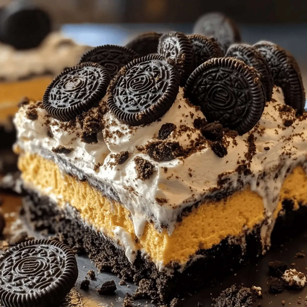 Eines der ersten Dinge, die mir in den Sinn kommen, wenn der Herbst naht, sind die festlichen Leckereien, die die Saison so besonders machen. In dieser Zeit wird mein innerer Konditor wach und verlangt nach der Herstellung eines schaurig-schönen Desserts. Heute teile ich mein Geheimnis für das unwiderstehliche Halloween Oreo Dessert Schichten. Diese einfache und eiweißreiche Leckerei kombiniert cremige Vanillepudding- und luftige Frischkäse-Schichten mit knusprigen Oreo-Keksen. Es ist nicht nur ein echter Hingucker auf jeder Halloween-Party, sondern auch eine hervorragende Möglichkeit, Kinder in die Küche zu bringen. Mit der Möglichkeit, die Aromen nach Lust und Laune anzupassen, eignet sich dieses Dessert perfekt für alle, die sich von Fast Food verabschieden möchten. Bist du bereit, das gruselige Vergnügen zu entdecken? Warum wird dieses Rezept geliebt? Einfachheit: Die Zubereitung ist kinderleicht und benötigt nur wenige Zutaten. Selbst unerfahrene Köche können hier beeindruckende Ergebnisse erzielen! Festlicher Genuss: Die schichten aus cremigem Vanillepudding und knusprigen Oreo-Keksen sorgen für ein Geschmacksvergnügen, das Groß und Klein begeistert. Vielseitigkeit: Du kannst die Aromen ganz nach Wunsch anpassen. Probier doch mal Halloween Salat Mit für eine gesunde Ergänzung! Zeitersparnis: Das Dessert kann im Voraus zubereitet werden, ideal für vielbeschäftigte Tage oder Partys. Kreativität: Lass deiner Fantasie freien Lauf und dekoriere es mit bunten Halloween-Streuseln oder sogar Einfaches Erdbeerkuss Dessert für zusätzliche Leckerbissen! Halloween Oreo Dessert Schichten Zutaten Für die Basis • Oreo-Kekse – Die Grundlage und Dekoration; verwende thematisch passende Halloween-Oreos für einen festlichen Touch. • Butter (weich) – Sorgt für eine reichhaltige Basis; achte darauf, sie bei Raumtemperatur zu verwenden. Für die Pudding-Schichten • Instant Vanillepudding – Verleiht Cremigkeit und Stabilität; kann auch durch Schokoladenpudding ersetzt werden für einen intensiveren Geschmack. • Kaltes Milch – Wichtig für die Zubereitung des Puddings; stelle sicher, dass sie gut gekühlt ist für die beste Konsistenz. • Orange Lebensmittelfarbe – Optional, um die Pudding-Schicht festlich zu gestalten und die Halloween-Atmosphäre zu steigern. Für die Frischkäse-Schichten • Frischkäse (weich) – Kreiert eine samtige, cremige Schicht; stelle sicher, dass er ebenfalls weich ist für eine einfache Mischung. • Puderzucker – Süßt die Frischkäse-Mischung; passe die Menge je nach persönlichem Geschmack an. • Vanilleextrakt – Verleiht dem Frischkäse-Geschmack eine besondere Note. • Cool Whip oder Schlagsahne – Macht die Textur der Schichten luftig und leicht. Für die Dekoration • Halloween-Streusel – Für das gewisse Etwas und das Spaßfaktor; nutze bunte Sprinkles, um das Dessert zu verschönern. • Zimt (optional) – Fügt eine Wärme hinzu; kann auch durch Lebkuchengewürz ersetzt werden für eine herbstliche Note. • Zerbrochene Brezeln oder Toffee-Stücke – Für zusätzliche Knusprigkeit und Textur über die Schichten; ein köstlicher Kontrast! Mit diesen Zutaten bist du bereit, die schaurig schönen Halloween Oreo Dessert Schichten zuzubereiten, die nicht nur festlich, sondern auch ein Hit auf jeder Party sein werden! Schritt-für-Schritt-Anleitung für Halloween Oreo Dessert Schichten Step 1: Oreo-Boden vorbereiten Zerkleinere die Oreo-Kekse in einer Küchenmaschine oder mit einem Nudelholz, bis sie feine Krümel ergeben. Bewahre ½ Tasse der Krümel zur Dekoration auf. Drücke die restlichen Krümel gleichmäßig in den Boden einer 23×33 cm großen Auflaufform oder in Dessertgläser, um eine reizvolle Basis für deine Halloween Oreo Dessert Schichten zu schaffen. Step 2: Frischkäse-Mischung erstellen Verrühre in einer großen Schüssel die weiche Butter, den Frischkäse, den Puderzucker und den Vanilleextrakt mit einem Handmixer. Schlage die Mischung auf mittlerer Stufe circa 2-3 Minuten, bis sie glatt und cremig ist. Füge dann die Hälfte des Cool Whip oder der Schlagsahne vorsichtig hinzu und falte sie unter, um die Luftigkeit zu bewahren. Step 3: Pudding zubereiten In einer separaten Schüssel den instant Vanillepudding mit 500 ml kalter Milch verquirlen. Rühre kräftig, bis die Mischung dick und cremig ist, was etwa 2 Minuten dauert. Falls gewünscht, füge ein paar Tropfen orange Lebensmittelfarbe hinzu und vermische sie gründlich, um eine festliche Pudding-Schicht für dein Halloween Oreo Dessert zu erhalten. Step 4: Dessert schichten Beginne mit der Verteilung der Frischkäse-Mischung gleichmäßig über den Oreo-Boden in der Auflaufform oder den Gläsern. Darauf folgt dann die cremige Pudding-Schicht, die du gleichmäßig verstreichen solltest. Zum Abschluss gib die restliche Cool Whip oder Schlagsahne darüber und glätte die Oberfläche sanft mit einem Spatel. Step 5: Dekoration hinzufügen Streue die zuvor aufbewahrten Oreo-Krümel gleichmäßig über die oberste Schicht der Cool Whip. Dekoriere das Dessert mit bunten Halloween-Streuseln und optionalen Zutaten wie zerbrochenen Brezeln oder Toffee-Stücken, um eine knusprige Textur und zusätzlichen Geschmack zu verleihen. Step 6: Kühlen Decke das Dessert gut ab und stelle es für mindestens 4 Stunden, idealerweise über Nacht, in den Kühlschrank. Die Kühle sorgt dafür, dass die Aromen sich entfalten und die Schichten fest werden, was für traumhafte Halloween Oreo Dessert Schichten sorgt, die bereit sind, serviert zu werden. Was passt zu Halloween Oreo Dessert Schichten? Egal, ob du eine Halloween-Party schmeißen oder einfach nur das saisonale Vergnügen genießen möchtest, die perfekte Kombination aus süßen und herzhaften Begleitgerichten macht dein Fest komplett. Würzige Kürbis-Suppe: Diese cremige Suppe ergänzt die Süße des Desserts und bringt die herbstlichen Aromen perfekt zur Geltung. Apfel-Zimt-Salat: Ein frischer, knackige
