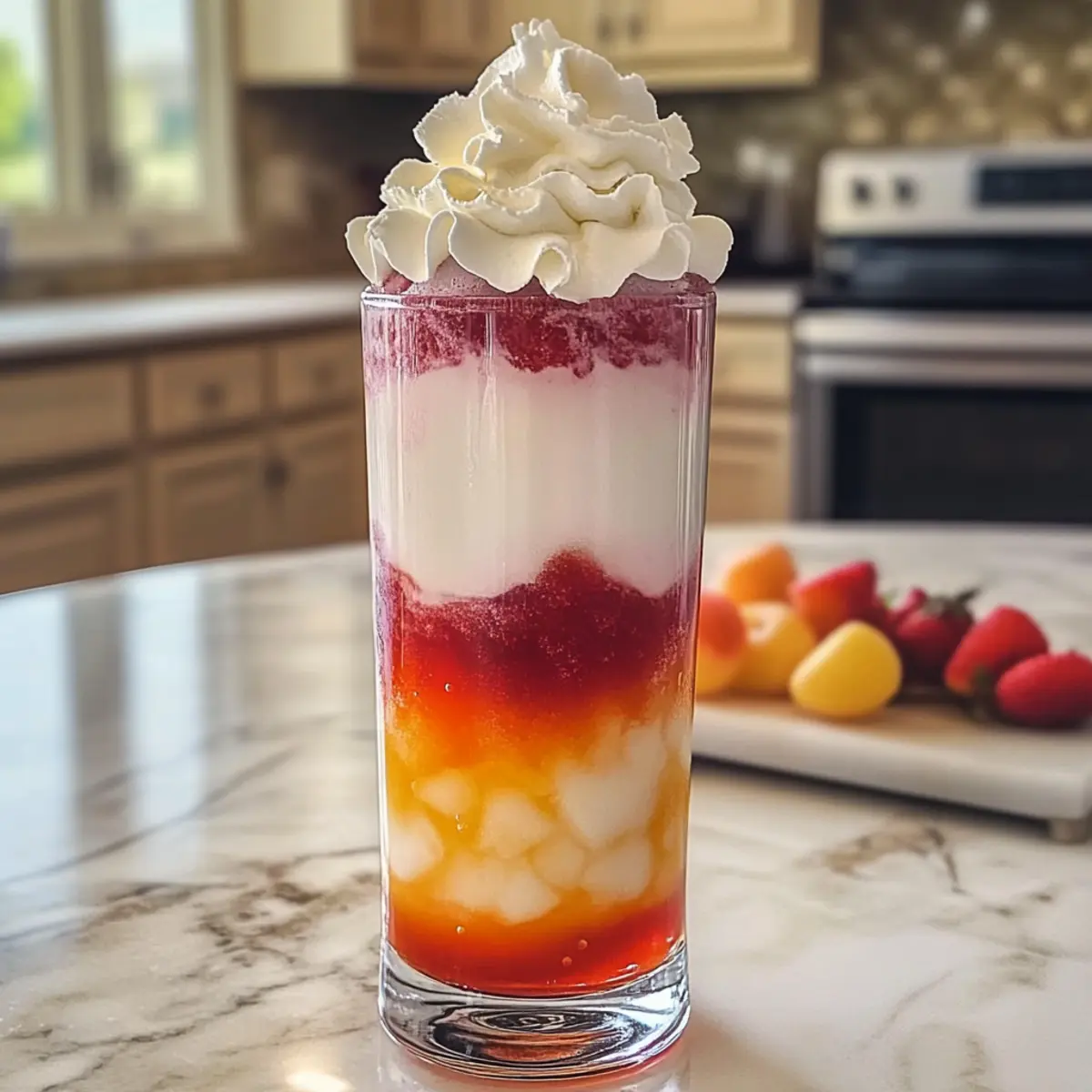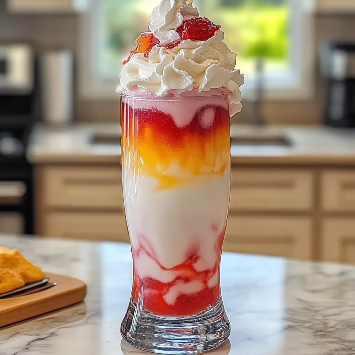 Ein Hauch von Sommer in jedem Schluck! Wenn ich an erfrischende Getränke denke, kann ich nicht anders, als an das hausgemachte italienische Sahne-Soda zu denken. Dieses sprudelnde Vergnügen kombiniert die Süße von fruchtigen Sirups mit einer cremigen Note und lässt mich sofort an sonnige Nachmittage im Freien denken. Die schnelle Zubereitung macht es nicht nur perfekt für spontane Zusammenkünfte, sondern auch für gemütliche Abende zu Hause. Egal, ob du deine eigenen Sirup-Kreationen ausprobierst oder einfach nur einen Klassiker genießen möchtest, dieses Rezept ist ein wahrer Publikumsliebling. Bist du bereit, dich von den verschiedenen Geschmacksrichtungen überraschen zu lassen? Warum wirst du dieses Rezept lieben? Einfachheit: Die Zubereitung ist unglaublich unkompliziert und benötigt nur wenige Minuten, ideal für Eilige oder Anfänger in der Küche. Vielfältige Geschmäcker: Experimentiere mit verschiedenen Sirupen – von fruchtig bis exotisch. Es gibt unzählige Möglichkeiten, deinen ganz eigenen Twist zu kreieren. Erfrischend lecker: Diese hausgemachte italienische Sahne-Soda bietet die perfekte Kombination aus Süße und Spritzigkeit, die an einen Sommertag erinnert. Für die ganze Familie: Ideal für Kinder und Erwachsene, es ist ein fester Bestandteil jeder Feier oder entspannter Abende. Mit Glanz und Creme: Die üppige Optik und der cremige Geschmack machen jeden Schluck zu einem Genuss, perfekt für jede Gelegenheit. Mach doch auch mal deine eigenen Sirupe mit diesem einfachen Rezept für Sirup! Hausgemachte italienische Sahne-Soda Zutaten Für die Basis • Zerkleinertes Eis – sorgt für eine frosty Textur und hält das Getränk kühl. • Club Soda – verleiht erfrischende Spritzigkeit; Sprudelwasser ist eine leichtere Alternative. • Fruchtsirup – wähle Geschmäcker wie Brombeere, Pfirsich oder Vanille für eine süße Note. Selbstgemachte Sirupe heben das Erlebnis. • Schlagsahne – verleiht eine creamy Reichhaltigkeit; kann durch Halb und Halb für eine leichtere Version ersetzt werden. Für das Topping • Schlagsahne – optional, verstärkt die Süße und das visuelle Erlebnis. Genieße die hausgemachte italienische Sahne-Soda und experimentiere mit verschiedenen Geschmäckern! Step-by-Step Instructions for Hausgemachte italienische Sahne-Soda Step 1: Glas vorbereiten Fülle ein hohes Glas mit etwa ¾ Tasse zerkleinertem Eis. Achte darauf, dass das Eis gleichmäßig verteilt ist, um die kühle Textur zu gewährleisten. Dies sorgt dafür, dass die hausgemachte italienische Sahne-Soda perfekt kalt bleibt, während du die anderen Zutaten hinzufügst. Step 2: Fruchtsirup hinzufügen Gieße 6-8 Esslöffel deines gewählten Fruchtsirups über das Eis. Lass die bunten Sirupströme hinunterfließen, während sie sich schön mit dem Eis vermischen. Der Sirup verleiht deinem Getränk eine verlockende Süße und wird die Basis für das erfrischende Aroma der italienischen Sahne-Soda. Step 3: Club Soda eingießen Kippe das Glas leicht und gieße langsam 1 Tasse Club Soda über den Sirup. Achte darauf, dass du es vorsichtig tust, um übermäßigen Schaum zu vermeiden. Das sprudelnde Wasser sorgt für die erfrischende Spritzigkeit, die dieses Getränk zu einem echten Genuss macht. Step 4: Sahne einfüllen Gieße behutsam 4 Esslöffel schwere Sahne über die Club Soda-Ebene. Lass die Sahne auf der Oberfläche schwimmen, damit eine schöne, gefrostete Schicht entsteht. Diese cremige Schicht ist das Herzstück der hausgemachten italienischen Sahne-Soda und verleiht dem Getränk seinen unverwechselbaren Geschmack. Step 5: Mit Schlagsahne toppen Falls gewünscht, kannst du dein Getränk nun mit Schlagsahne krönen. Verteile eine großzügige Menge Schlagsahne obenauf, um die Süße zu verstärken und eine hübsche Optik zu schaffen. Dies verleiht deiner Hausgemachten italienischen Sahne-Soda das gewisse Etwas und macht sie noch verlockender. Step 6: Rühren und servieren Rühre vorsichtig die Schichten in deinem Glas, um die Aromen der hausgemachten italienischen Sahne-Soda zu kombinieren. Stelle sicher, dass du dabei nicht zu stark rührst, um die Spritzigkeit zu erhalten. Serviere das Getränk sofort, damit es frisch und sprudelnd bleibt! Lagerungstipps für hausgemachte italienische Sahne-Soda Raumtemperatur: Am besten sofort genießen! Bei Raumtemperatur verliert die hausgemachte italienische Sahne-Soda schnell ihre Spritzigkeit und Frische. Kühlschrank: Reste können in einem luftdichten Behälter im Kühlschrank bis zu 2 Tage aufbewahrt werden. Die Textur könnte sich verändern, insbesondere die Spritzigkeit geht verloren. Einzelne Zutaten: Fruchtsirup kann bis zu 2 Wochen im Kühlschrank gelagert werden, während die Club Soda ungekühlt bis zum angegebenen Haltbarkeitsdatum reicht. Wiedererwärmung: Da die italienische Sahne-Soda frisch serviert werden sollte, ist eine Wiedererwärmung nicht empfohlen; bereite sie lieber frisch zu, um den besten Geschmack zu gewährleisten. Nützliche Tipps für hausgemachte italienische Sahne-Soda Hochwertige Sirupe verwenden: Qualität zählt! Wähle frische oder hausgemachte Fruchtsirupe für einen intensiveren Geschmack und vermeide minderwertige Produkte. Eis perfekt zerkleinern: Sorge dafür, dass das zerkleinerte Eis gut verteilt ist. Zu wenig Eis kann dazu führen, dass die italienische Sahne-Soda schnell warm wird. Sanft einschenken: Gieße das Club Soda vorsichtig über einen Löffel, um die Spritzigkeit zu bewahren und übermäßigen Schaum zu vermeiden. So bleibt deine hausgemachte italienische Sahne-Soda optisch ansprechend. Sofort servieren: Um die besten Ergebnisse zu erzielen, serviere die italienische Sahne-Soda sofort nach der Zubereitung. So bleibt sie spritzig und frisch. Kreative Toppings: Probiere verschiedene Toppings wie Schokoladensauce oder Streusel. Diese kleinen Extras machen deine hausgemachte italienische Sahne-Soda noch unwiderstehlicher! Variationen für hausgemachte italienische Sahne-Sod