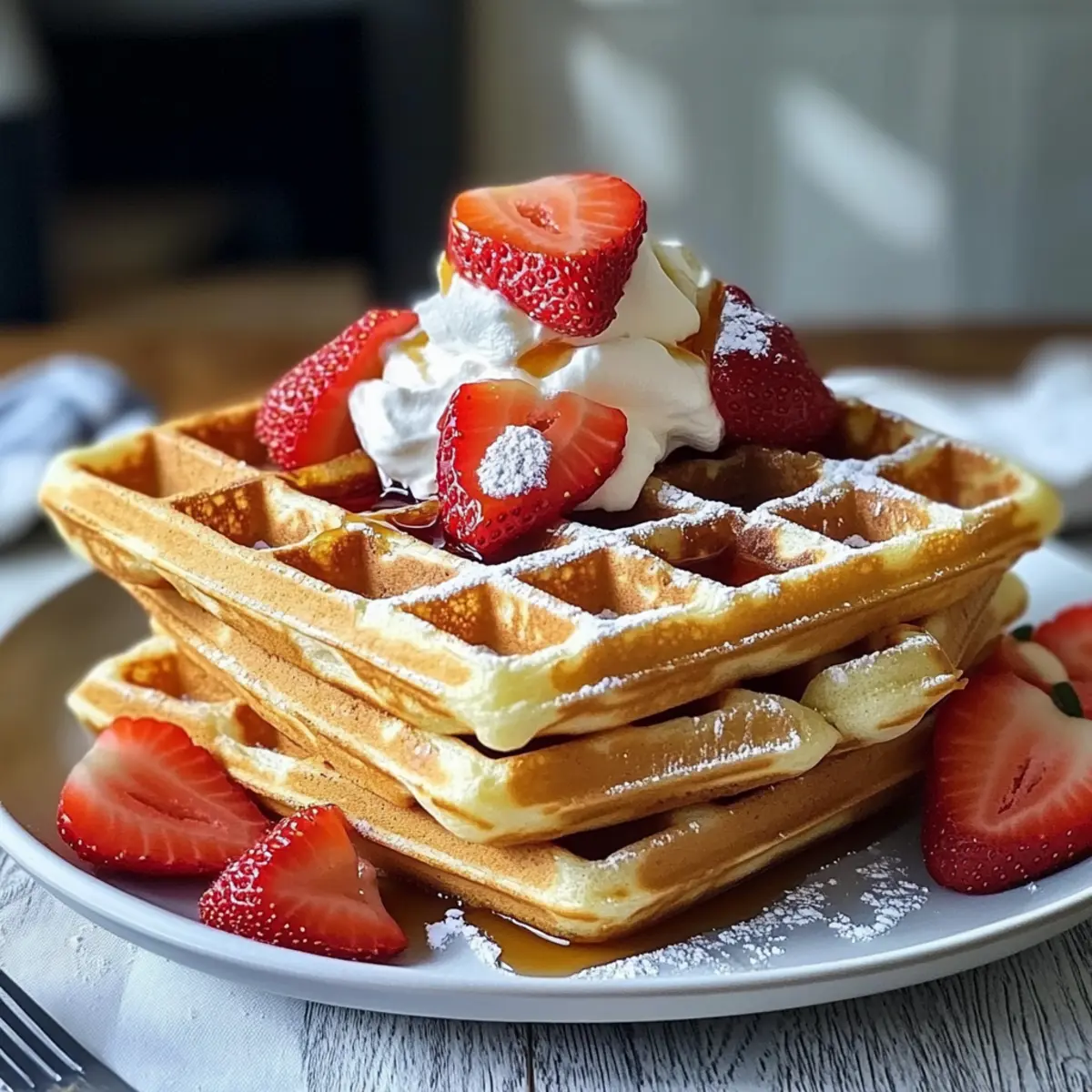 Haben Sie schon einmal den Duft von frisch gebackenen Waffeln erlebt, der durch Ihre Küche zieht? Es ist ein Gefühl von Geborgenheit und Glückseligkeit, das nostalgische Erinnerungen an gemütliche Sonntage weckt. Mit meinem Rezept für hausgemachte Waffeln: Ein unglaubliches ultimativen Rezept, das Sie lieben werden, zaubern Sie im Handumdrehen einen Frühstücksgenuss, der sowohl für den süßen Start in den Tag als auch für ein gemütliches Brunch am Nachmittag perfekt ist. Die Zubereitung ist kinderleicht und erfordert nur wenige Zutaten, die Sie wahrscheinlich bereits in Ihrer Küche haben. Ob fluffig und leicht oder knusprig und goldbraun, diese Waffeln sind einfach unwiderstehlich – und das Beste daran? Sie sind unglaublich vielseitig! Was wäre Ihre Lieblingskombination für das perfekte Waffel-Topping? Warum sind hausgemachte Waffeln ein Hit? Einfachheit: Die Zubereitung ist unkompliziert und erfordert keine besonderen Fähigkeiten – nur wenige Zutaten und schon können Sie loslegen! Vielseitigkeit: Ob süß mit Früchten und Sahne oder herzhaft mit Speck – die Möglichkeiten sind endlos! Beliebtheit: Diese Waffeln sind ein Hit bei Familie und Freunden und sorgen garantiert für gute Laune bei jedem Frühstück oder Brunch. Vertraute Aromen: Der Duft von frisch gebackenen Waffeln lässt alle Erinnerungen an gemütliche Sonntage wieder aufleben. Für noch mehr kreative Ideen probieren Sie auch unsere leckeren Pepperoni Pizza Rollen oder die köstlichen Pizzaschnecken mit Pesto und Mozzarella! Hausgemachte Waffeln Zutaten Für den Teig: • Weizenmehl – bildet die Basis und Struktur der Waffeln; für mehr Nährstoffe kann Vollkornmehl verwendet werden, wobei das Verhältnis angepasst werden sollte. • Backpulver – sorgt für die fluffige Konsistenz; achten Sie darauf, dass es frisch ist für beste Ergebnisse. • Salz – verstärkt den Geschmack und balanciert die Süße; ein Hauch genügt. • Zucker – fügt dem Teig Süße hinzu; kann nach Belieben reduziert oder durch alternatives Süßungsmittel ersetzt werden. • Milch – sorgt für Feuchtigkeit und zarte Waffeln; pflanzliche Milch ist ebenfalls eine gute Wahl als Ersatz. • Eier – binden die Zutaten und tragen zur Textur bei; ein Leinsamen-Ei oder Apfelmus sind gute Alternativen für eine vegane Variante. • Butter – bringt Reichtum und Geschmack; geschmolzenes Kokosöl kann als milchfreie Option verwendet werden. Für die Toppings: • Frische Früchte – verleihen eine fruchtige Frische und sind gesund oben drauf. • Schlagsahne – sorgt für eine süße und cremige Note; ideal für den besonderen Genuss. • Sirup – ein klassischer Waffelbegleiter; probieren Sie Ahornsirup oder Honig für zusätzliche Süße. • Herzhafte Beilagen – verwöhnen Sie sich mit Speck oder Eiern für eine herzhafte Variante. Entdecken Sie die Freude von hausgemachten Waffeln: Ein unglaubliches ultimativen Rezept, das Sie lieben werden, und kreieren Sie Ihr persönliches Waffel-Paradies! Schritt-für-Schritt-Anleitung für Hausgemachte Waffeln: Ein unglaubliches ultimativen Rezept, das Sie lieben werden Step 1: Waffeleisen vorbereiten Heizen Sie Ihr Waffeleisen gemäß den Herstelleranweisungen vor, um eine gleichmäßige Hitze zu gewährleisten. Warten Sie, bis die Kontrollleuchte anzeigt, dass das Eisen bereit ist. Dies stellt sicher, dass Ihre hausgemachten Waffeln von Anfang an goldbraun und knusprig werden. Step 2: Trockene Zutaten mischen In einer großen Schüssel das Weizenmehl, Backpulver, Salz und Zucker verrühren, bis alles gut vermischt ist. Eine gleichmäßige Mischung stellt sicher, dass die Waffeln fluffig und in jedem Bissen perfekt sind. Achten Sie darauf, Klumpen zu vermeiden, um die Konsistenz der hausgemachten Waffeln zu garantieren. Step 3: Nasse Zutaten kombinieren In einer separaten Schüssel die Milch, Eier und die geschmolzene Butter gründlich miteinander vermischen. Rühren Sie so lange, bis alles gut verbunden ist. Dadurch entsteht eine homogene Mischung, die Ihre hausgemachten Waffeln köstlich zart und voller Geschmack macht. Step 4: Mixturen kombinieren Gießen Sie die nassen Zutaten in die Schüssel mit den trockenen Zutaten und rühren Sie vorsichtig, bis alles gerade so verbunden ist. Vermeiden Sie es, den Teig zu übermixen; kleine Klumpen sind völlig in Ordnung und garantieren fluffige Waffeln. Dies ist der Schlüssel zu einem großartigen Endergebnis bei Ihrem Rezept für hausgemachte Waffeln. Step 5: Waffeln backen Geben Sie eine angemessene Menge Teig in das vorgeheizte Waffeleisen und schließen Sie es vorsichtig. Backen Sie die Waffeln für etwa 5 Minuten oder bis sie goldbraun und knusprig sind. Achten Sie darauf, dass der Dampf abnimmt, was darauf hinweist, dass die Waffeln vollständig gegart sind und perfekt auf den Tisch kommen. Step 6: Sofort servieren Nehmen Sie die Waffeln aus dem Eisen und servieren Sie sie heiß mit Ihren Lieblingsbelägen wie frischen Früchten, Sirup oder Schlagsahne. Die knusprige Außenschicht und die zarte Innenseite dieser hausgemachten Waffeln werden sicherlich jeden begeistern. Verwöhnen Sie sich und Ihre Lieben mit diesem ultimativen Rezept! Expert Tips für Hausgemachte Waffeln Frisches Backpulver: Achten Sie darauf, dass Ihr Backpulver frisch ist. Abgelaufenes Backpulver führt zu weniger fluffigen Waffeln. Teig nicht übermixen: Rühren Sie den Teig nur bis alles verbunden ist. Übermischung führt zu zähen Waffeln – kleine Klumpen sind völlig okay! Richtige Temperatur: Stellen Sie sicher, dass Ihr Waffeleisen gut vorgeheizt ist, um eine perfekte, goldbraune Farbe zu erreichen. Testen Sie die Temperatur mit ein paar Tropfen Wasser. Dampfreduktion beachten: Warten Sie, bis der Dampf nach dem Schließen des Waffeleisens nachlässt. Das ist ein Zeichen dafür, dass die Waffeln gar sind. Toppings kreativ gestalten: Experimentieren Sie mit verschiedenen Toppings für Ihre hausgemachten Waffeln, wie frischen Beeren, Nüssen oder au