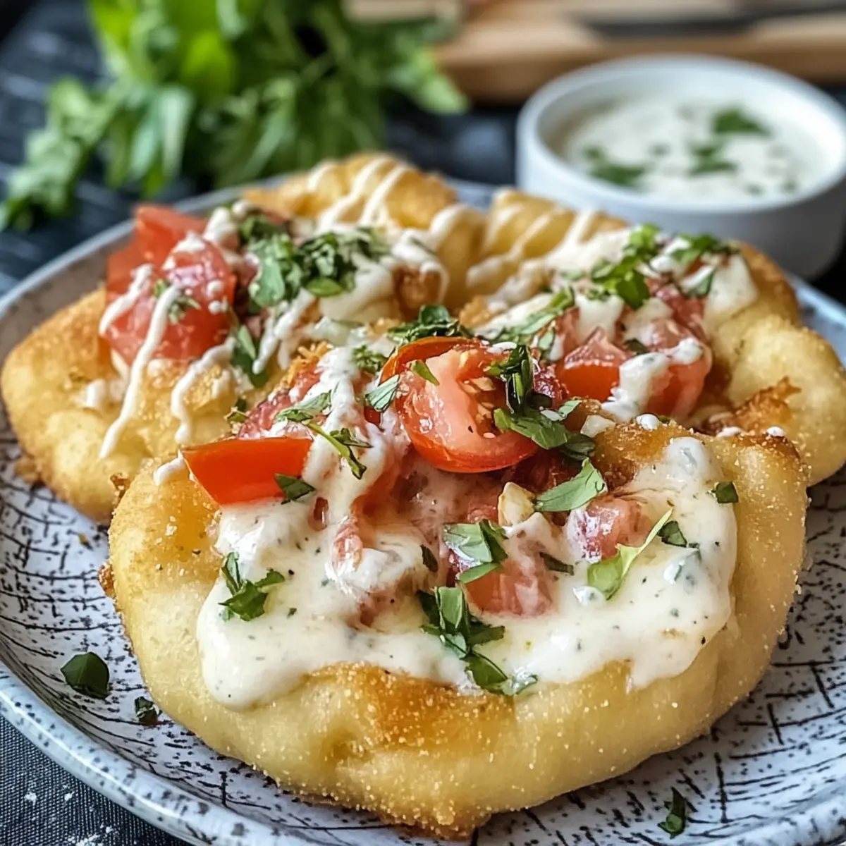 Gesund und lecker: Gefrittiert in der Heißluftfritteuse, bieten diese Langos den Genuss ohne das übermäßige Öl und die üblichen Kalorien einer traditionellen Zubereitung.