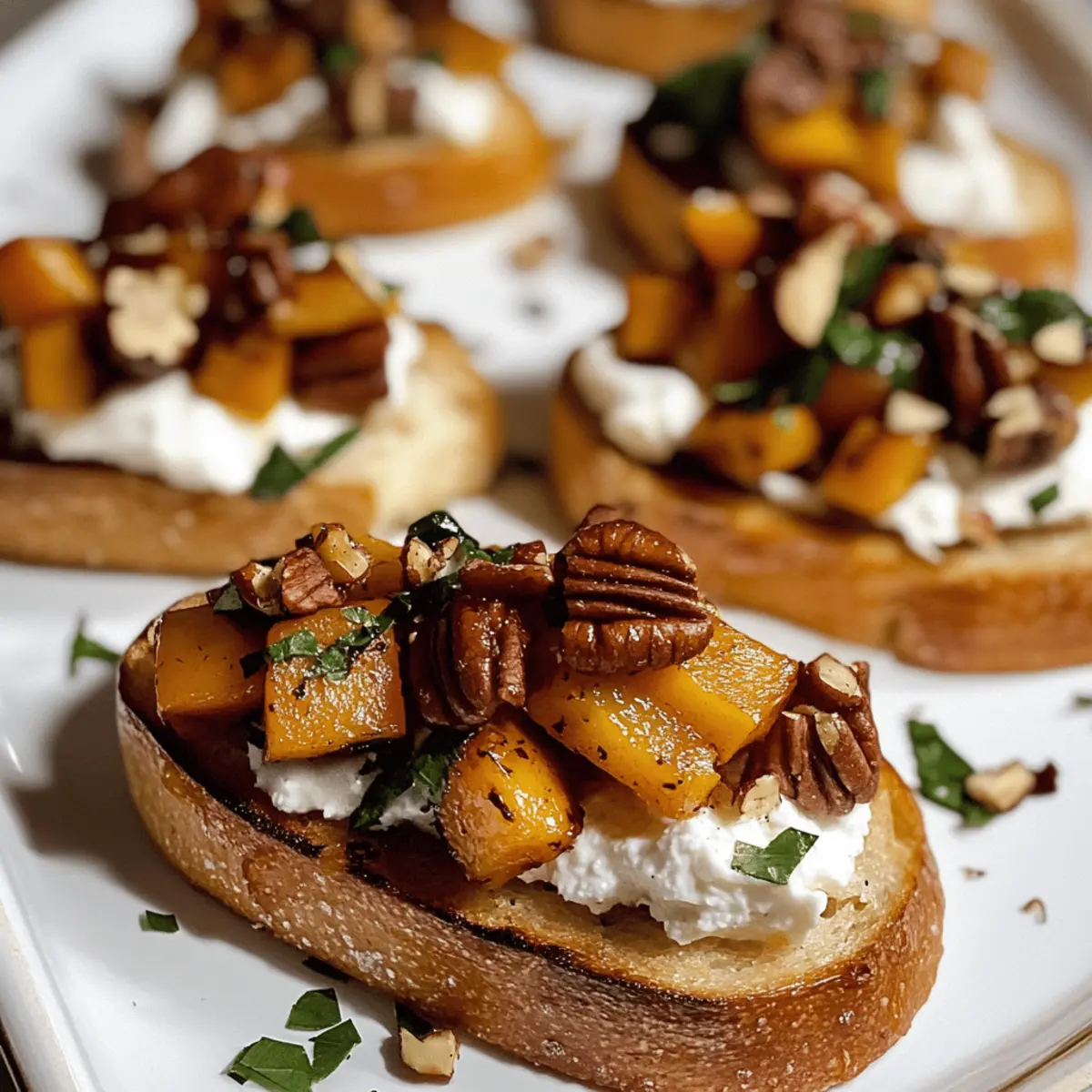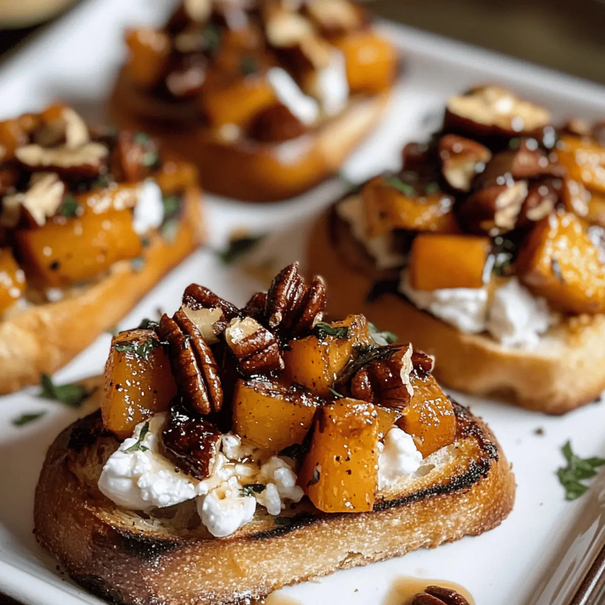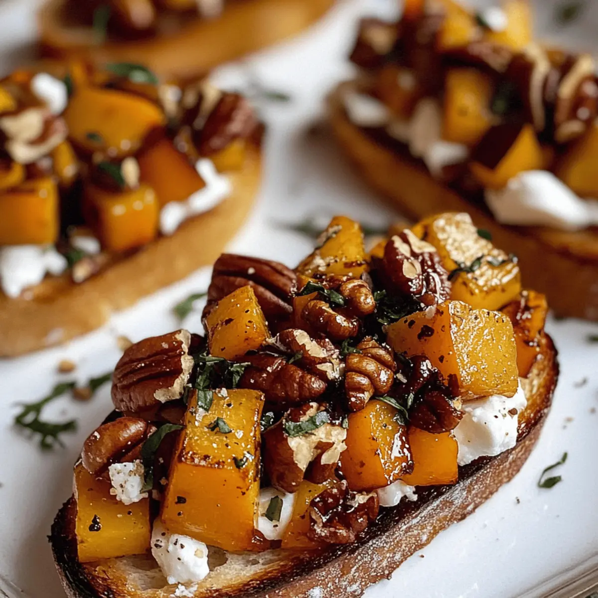Diese Herbst-Bruschetta kombiniert gerösteten Butternut-Kürbis und Äpfel für ein perfektes Snack-Erlebnis im Herbst.