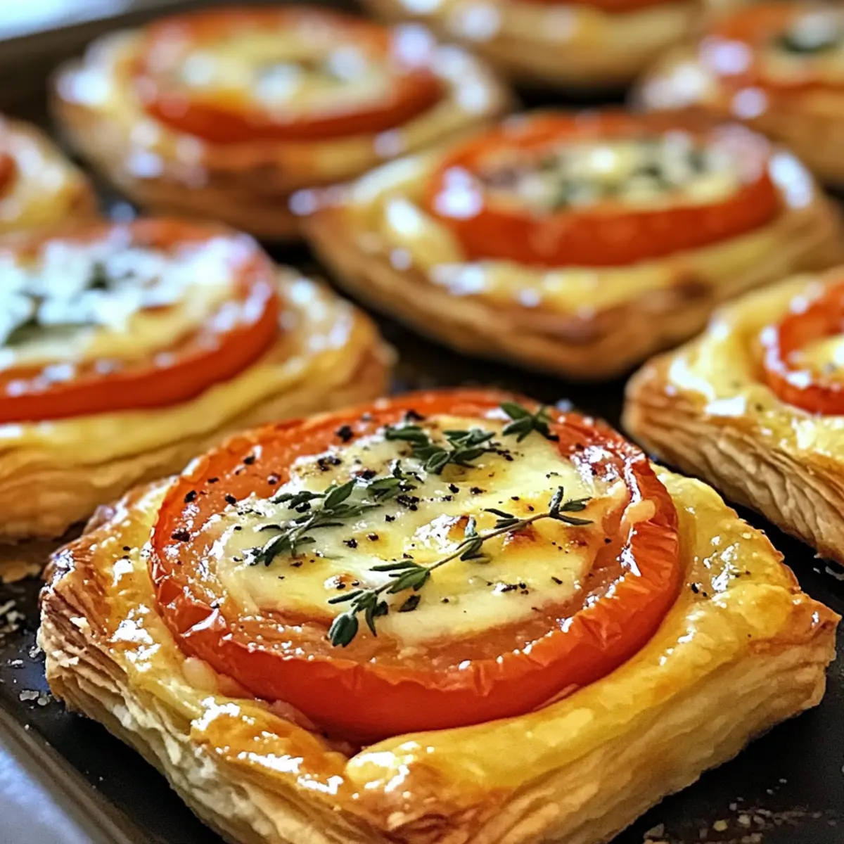 Haben Sie schon einmal von einem Snack geträumt, der sowohl einfach zuzubereiten als auch beeindruckend aussieht? Diese Herzhafte Tomatentörtchen mit Blätterteig für müheloses Snacken sind genau das! Mit nur sechs Zutaten entführen sie uns in die Welt des feinen Genusses und bringen frische, reife Tomaten und die cremige Güte von Gruyère-Käse auf den Tisch. Diese köstlichen Tartlets sind nicht nur vegetarisch, sondern auch die ideale Wahl für spontane Zusammenkünfte oder als raffinierter Appetizer. Ob bei einem gemütlichen Abend mit Freunden oder einfach als kleiner Genuss für zwischendurch – diese Törtchen bringen Freude in jede Küche. Neugierig, wie einfach es ist, solch eine Leckerei herzustellen? Lasst uns gemeinsam in die Zubereitung eintauchen! Warum sind diese Tomatentörtchen besonders? Einfachheit: Die Zubereitung dieser Herzhafte Tomatentörtchen mit Blätterteig ist unkompliziert und erfordert nur grundlegende Kochkenntnisse. Vielseitigkeit: Sie können die Zutaten nach Ihrem Geschmack anpassen, zum Beispiel mit unterschiedlichen Käsesorten oder Kräutern – maßgeschneiderte Variationen sind leicht möglich! Geschmacksexplosion: Die Kombination aus cremigem Gruyère und süßen Tomaten sorgt für einen unvergesslichen Genussmoment. Perfekter Snack: Diese Tartlets sind die ideale Wahl für jede Gelegenheit – sei es als Snack zwischendurch oder als Gourmet-Appetizer bei einem Dinner. Zeitersparnis: In weniger als 30 Minuten sind diese Törtchen gebacken und bereit, serviert zu werden. Außerdem können Sie sie voraus zubereiten und im Kühlschrank aufbewahren! Herzhafte Tomatentörtchen Zutaten Für den Teig • Gefrorenes Blätterteig – Sorgen Sie dafür, dass der Teig vor der Verwendung vollständig aufgetaut ist, um ein leichtes Ausrollen zu ermöglichen. Für die Füllung • Gruyère Käse – Bringt eine cremige und geschmackvolle Tiefe; Sie können ihn durch Mozzarella oder Cheddar ersetzen, wenn gewünscht. • Tomaten (normal oder Kirschtomaten) – Reife Tomaten sind entscheidend für den besten Geschmack; experimentieren Sie mit Erbstücktomaten für zusätzliche Aromen. • Koshersalz – Verstärkt die Aromen und sorgt für den perfekten Geschmack; Meersalz ist auch eine großartige Alternative. • Gemahlener schwarzer Pfeffer – Fügt eine subtile Wärme hinzu; passen Sie die Menge nach Ihrem Geschmack an. • Frischer Thymian, gehackt – Verleiht den Törtchen ein erdiges Aroma; frisches Basilikum oder Oregano sind ebenfalls gute Substitute. Step-by-Step Instructions für Herzhafte Tomatentörtchen mit Blätterteig für müheloses Snacken Step 1: Blätterteig auftauen Lassen Sie den gefrorenen Blätterteig bei Raumtemperatur etwa 30 Minuten auftaue,n damit er sich leichter verarbeiten lässt. Achten Sie darauf, dass er weich und geschmeidig ist, bevor Sie mit dem Ausrollen beginnen, damit Sie feine, zarte Törtchen erhalten. Step 2: Blätterteig ausrollen Bestäuben Sie eine saubere Arbeitsfläche leicht mit Mehl. Rollen Sie den aufgetauten Blätterteig mit einem Nudelholz auf eine Dicke von etwa 1/16 Zoll aus. Die Teigplatte sollte gleichmäßig dünn sein, damit die Törtchen beim Backen schön knusprig werden. Step 3: Teigkreise ausschneiden Verwenden Sie einen Ausstecher oder ein Glas, um rund 30 Kreise aus dem Blätterteig auszuschneiden. Legen Sie die Teigkreise auf ein mit Backpapier ausgelegtes Backblech, damit die Herzhafte Tomatentörtchen gut Platz zum Aufgehen haben und nicht ankleben. Step 4: Gruyère Käse hinzufügen Streuen Sie jeweils etwa 1 Teelöffel geriebenen Gruyère Käse gleichmäßig auf die Mitte jedes Teigkreises. Der Käse schmilzt während des Backens und verleiht den Törtchen eine köstliche cremige Note, die die Tomaten perfekt ergänzt. Step 5: Tomatenscheiben schichten Schneiden Sie die Tomaten in dünne Scheiben und legen Sie 1-2 Scheiben auf den Käse jeder Törtchen. Diese frischen Tomaten sind der Star der Herzhafte Tomatentörtchen und sorgen dafür, dass jedes Bissen voller saftigen Geschmack ist. Step 6: Törtchen würzen Bestreuen Sie die oberen Teile der Törtchen mit Koshersalz, gemahlenem schwarzem Pfeffer und gehacktem Thymian. Diese Gewürze verleihen den Törtchen nicht nur einen zusätzlichen Geschmacksboost, sondern die Aromen werden beim Backen wunderbar intensiver. Step 7: Törtchen backen Heizen Sie den Ofen auf 200 °C (400 °F) vor. Backen Sie die Törtchen im vorgeheizten Ofen für 20-25 Minuten, bis der Blätterteig goldbraun und knusprig aussieht. Halten Sie ein Auge darauf, um sicherzustellen, dass sie nicht verbrennen und die perfekte Farbe erreichen. Step 8: Servieren Lassen Sie die gebackenen Törtchen einige Minuten abkühlen, bevor Sie sie servieren. Diese Herzhafte Tomatentörtchen mit Blätterteig sind warm am besten, können aber auch bei Zimmertemperatur genossen werden, was sie zu einem vielseitigen Snack macht. Lagerungstipps für Herzhafte Tomatentörtchen Raumtemperatur: Ungebackene Törtchen sollten nicht länger als 1-2 Stunden bei Raumtemperatur gelagert werden, um die Qualität des Blätterteigs zu erhalten. Kühlschrank: Vorgefertigte, ungebackene Törtchen können bis zu 24 Stunden abgedeckt im Kühlschrank aufbewahrt werden; backen Sie sie direkt aus dem Kühlschrank. Gefrierschrank: Gebackene Törtchen können in einem luftdichten Behälter bis zu 2 Monate eingefroren werden. Bei Bedarf direkt aus dem Gefrierfach backen oder bei 180 °C (350 °F) für 10-15 Minuten aufwärmen. Wiederverschließen: Um die Knusprigkeit der Törtchen zu bewahren, lagern Sie gebackene Törtchen in einem luftdichten Behälter im Kühlschrank und genießen Sie sie innerhalb von 3 Tagen für das beste Geschmackserlebnis. Was passt zu Herzhafte Tomatentörtchen mit Blätterteig für müheloses Snacken? Erleben Sie, wie diese köstlichen Törtchen die perfekte Grundlage für ein genussvolles Menü bieten, das Ihre Gäste begeistern wird. Gemischter grüner Salat: Frischer, knackiger 