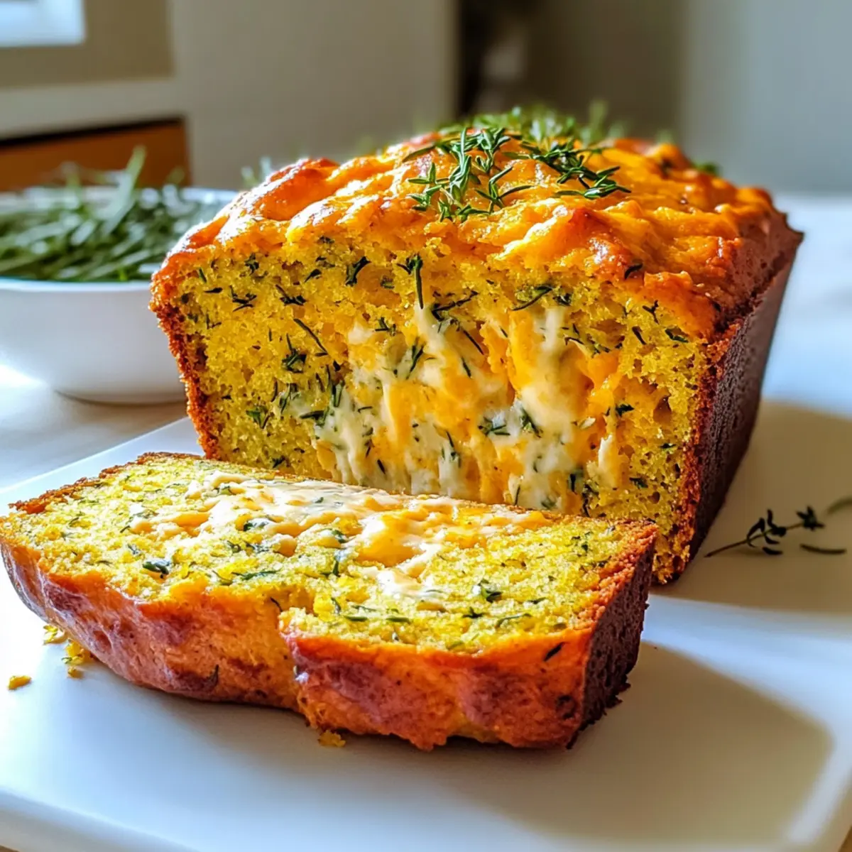 Der Duft von frisch gebackenem Brot kann oft Erinnerungen an gemütliche Nachmittage wecken. Heute möchte ich mit euch mein Herzhafter Cheddar Kräuter Kürbisbrot Leckeres und Einfaches Rezept teilen, das nicht nur das Herz, sondern auch den Magen erfreut. Diese köstliche Laib vereint die süße Note von Kürbis mit würzigem Cheddar und duftenden Kräutern und verwandelt jede Küche in eine einladende Genuss-Oase. Ob für eine entspannte Dinnerrunde mit Freunden oder als schnelles Abendessen – dieses Rezept ist ein echter Publikumsmagnet und benötigt nur wenig Vorbereitung. Lasst uns gemeinsam dieses herrliche Brot zaubern, das nicht nur sättigt, sondern auch mit jeder Scheibe eure Familie und Freunde verzaubern wird. Neugierig auf die Details? Warum wirst du dieses Rezept lieben? Einfachheit pur: Die Zubereitung ist unkompliziert und benötigt nur wenige Schritte – perfekt für Anfänger und erfahrene Bäcker. Würziger Genuss: Die Kombination aus Kürbis, Cheddar und aromatischen Kräutern sorgt für ein Geschmackserlebnis, das deine Sinne verführen wird. Vielseitig verwendbar: Dieses Brot eignet sich sowohl als Beilage zu Suppe oder Salat als auch als köstliches Hauptgericht. Du kannst es warm genießen oder kalt als Snack servieren! Tolle Variationsmöglichkeiten: Du kannst mit verschiedenen Käsesorten oder frischen Kräutern experimentieren, um deinen persönlichen Favoriten zu kreieren. Schnell und praktisch: In nur 60 Minuten backst du dein eigenes Brot, das nicht nur köstlich ist, sondern auch für Überraschungsbesuche geeignet ist. Reinigung leicht gemacht, wenn du Küchenutensilien einfach mit warmem Wasser spülst. Perfekt für jeden Anlass: Dieses Brot zieht nicht nur in deiner eigenen Küche alle Blicke auf sich, sondern wird auch bei jeder geselligen Runde ein Hit sein! Herzhafter Cheddar Kräuter Kürbisbrot Zutaten Eine wunderbare Kombination aus herzhaftem Cheddar und aromatischen Kräutern wartet auf dich! Für den Teig: Gekochte Kürbispüree – sorgt für Feuchtigkeit und eine hintene Süße; du kannst auch frischen, gerösteten Kürbis verwenden. Geriebener Cheddar – bringt einen kräftigen, herzhaften Geschmack; Alternativen sind Gouda oder Mozzarella. Allzweckmehl – sorgt für die nötige Struktur des Brotes. Backpulver – als Treibmittel hilft es dem Brot beim Aufgehen. Natron – unterstützt zusammen mit dem Kürbis bei der Lockerung. Salz – hebt den Gesamte Geschmack hervor. Knoblauchpulver – fügt eine herzhafte Tiefe hinzu; frischer Knoblauch kann auch verwendet werden. Getrockneter Thymian – bringt erdige, kräutrige Noten; du kannst ihn durch Oregano ersetzen. Getrockneter Rosmarin – verleiht ein duftendes Aroma; frischer Rosmarin eignet sich ebenfalls. Schwarzer Pfeffer – fügt eine subtile Schärfe und Komplexität hinzu. Olivenöl – sorgt für Feuchtigkeit und Reichtum; kann durch geschmolzene Butter ersetzt werden. Milch – trägt zur Flüssigkeit im Teig bei; pflanzliche Milch eignet sich ebenfalls für eine laktosefreie Version. Große Eier – binden die Zutaten und helfen bei der Feuchtigkeit; pflanzliche Alternativen sind auch möglich. Frische Schnittlauch (gehackt) – bringt einen milden Zwiebelgeschmack und Farbe ins Brot; Frühlingszwiebeln sind eine tolle Alternative. Genieße jeden Bissen von diesem herzhafter Cheddar Kräuter Kürbisbrot, während du flexibel Variationen ausprobierst! Schritt-für-Schritt-Anleitung für Herzhafter Cheddar Kräuter Kürbisbrot Step 1: Ofen vorheizen und Kastenform vorbereiten Heize den Ofen auf 175°C vor und bereite eine 23×13 cm große Kastenform vor. Fette sie gründlich ein oder lege sie mit Backpapier aus, um ein Ankleben des Brotes zu verhindern. Dieser Schritt ist entscheidend, damit dein Herzhafter Cheddar Kräuter Kürbisbrot gleichmäßig gebacken wird und leicht herauszunehmen ist. Step 2: Flüssige Zutaten vermengen In einer großen Rührschüssel die gekochte Kürbispüree, Olivenöl, Milch und die großen Eier mit einem Schneebesen gründlich verrühren, bis die Mischung glatt ist. Achte darauf, dass die Zutaten gut kombiniert sind, um eine gleichmäßige Struktur des Teigs zu gewährleisten. Dies sorgt für die perfekte feuchte Basis deines Brotes. Step 3: Trockene Zutaten mischen In einer separaten Schüssel das Allzweckmehl, Backpulver, Natron, Salz, Knoblauchpulver, getrockneten Thymian, getrockneten Rosmarin und schwarzen Pfeffer gut vermischen. Diese trockenen Zutaten sind wichtig, um die Geschmäcker zu verbinden und das Aufgehen des Brotes zu unterstützen. Siefrah dir eine gute Mischung, um das Aroma deines Herzhafter Cheddar Kräuter Kürbisbrotes zu intensivieren. Step 4: Trockene Zutaten unter die flüssigen mischen Gib die trockenen Zutaten nach und nach zu den flüssigen Zutaten und rühre vorsichtig um, bis alles gerade so vermischt ist. Vermeide es, den Teig zu übermixen, da dies die Textur des Brotes beeinträchtigen kann. Der Teig sollte leicht klumpig bleiben, um ein zartes, fluffiges Brot zu garantieren. Step 5: Käse und Schnittlauch unterheben Falte den geriebenen Cheddar und den gehackten Schnittlauch in den Teig. Achte darauf, dass der Käse gleichmäßig verteilt ist, damit jeder Bissen deines Herzhafter Cheddar Kräuter Kürbisbrotes reich an Geschmack ist. Der Käse schmilzt beim Backen und sorgt für eine köstliche, reichhaltige Note. Step 6: Teig in die Kastenform füllen Gieße den Teig in die vorbereitete Kastenform und streiche die Oberfläche mit einem Spatel glatt. Achte darauf, die Teighöhe gleichmäßig zu halten, damit das Brot gleichmäßig aufgeht. Du wirst den herrlichen Duft wahrnehmen, während es im Ofen backt und sich die Aromen entfalten. Step 7: Backen Backe das Brot für etwa 50-60 Minuten im vorgeheizten Ofen. Es ist fertig, wenn die Oberfläche goldbraun ist und ein in die Mitte gesteckter Zahnstocher sauber herauskommt. Während des Backvorgangs wird dein Herzhafter Cheddar Kräuter Kürbisbrot eine wunderba