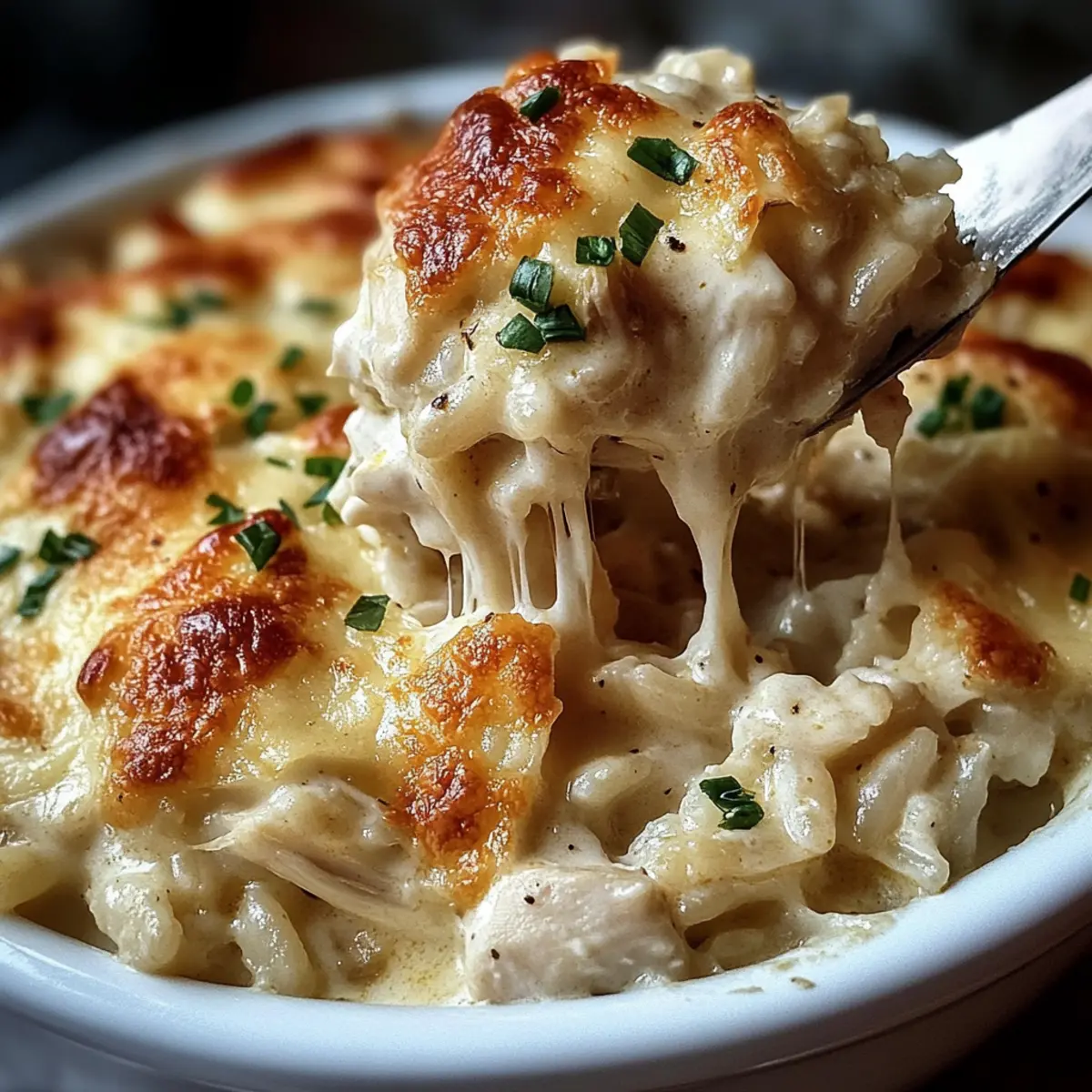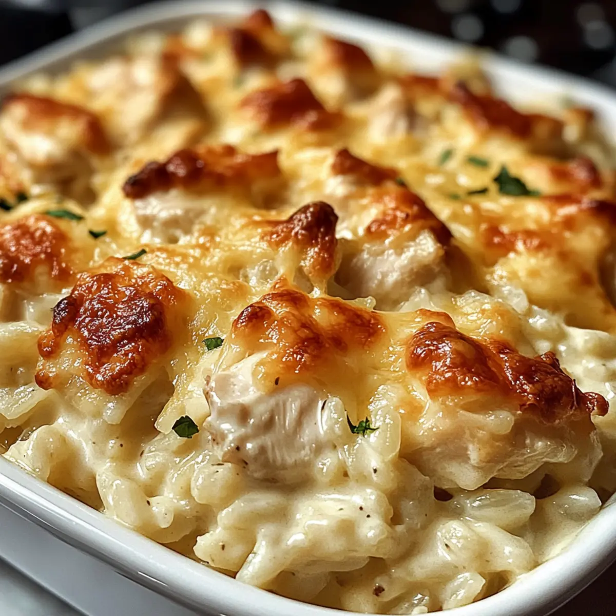 Während ich letzte Woche in meiner Küche stand und die Aromen von frisch gebratenem Hühnchen und geschmolzenem Käse einströmten, wurde mir klar, dass es nichts Besseres gibt als einen cremigen Hühnchen Alfredo Reis Auflauf. Diese köstliche Kombination aus zartem Hühnchen, fluffigem Reis und einer samtigen Alfredo-Sauce ist der Inbegriff von Komfortessen. Schnell zubereitet und dabei preiswert, ist dieses fantastisches Gericht die perfekte Lösung für hektische Abende oder Potluck-Feiern. Die besten Partys sind jedoch die mit kreativen Variationen, sodass du sogar noch Gemüse hinzufügen oder eine vegetarische Version kreieren kannst! Neugierig auf das Rezept? Lass uns gemeinsam den Ofen vorheizen und die Küche in einen Ort voller herrlicher Düfte verwandeln! Warum wirst du dieses Rezept lieben? Einfachheit: Die Zubereitung ist kinderleicht und erfordert nur grundlegende Kochkenntnisse. Perfekt für alle, die wenig Zeit haben! Reiche Aromen: Die Kombination von zartem Hühnchen und cremiger Alfredo-Sauce sorgt für ein Geschmackserlebnis, das jeden begeistert. Vielseitig anpassbar: Du kannst Gemüse hinzufügen oder die Proteine variiert, sodass für jeden etwas dabei ist – auch für Vegetarier! Ideal für Familienessen: Dieser Auflauf wird garantiert zur Familienlieblingsspeise, die du immer wieder zubereiten möchtest. Zeit- und Geldersparnis: Mit kostengünstigen Zutaten und der Möglichkeit, Reste zu verwerten, ist dies ein wahres Budgetfreundliches Gericht. Hühnchen Alfredo Reis Auflauf Zutaten Für die Basis Hähnchenbrust ohne Knochen und Haut – Dies ist die Hauptquelle für das Protein; du kannst auch gekochte Garnelen oder Wurst verwenden, um den Geschmack zu variieren. Olivenöl – Fügt Feuchtigkeit hinzu und verbessert den Geschmack; kann durch Gemüse- oder Rapsöl ersetzt werden. Langkorn-weißer Reis – Bildet die Grundlage des Auflaufs; brauner Reis oder Quinoa sind für eine gesündere Option geeignet, benötigen jedoch eine angepasste Kochzeit. Für die Sauce Butter – Verleiht dem Gericht einen reichhaltigen Geschmack und hilft bei der Sauce; Margarine kann als Ersatz genutzt werden. Schwere Sahne – Schafft die cremige Sauce; Halbfettmilch kann für eine leichtere Version verwendet werden. Parmesankäse – Fügt Reichtum und Geschmack hinzu; andere Hartkäse wie Pecorino können ebenfalls substituiert werden. Für die Gewürze Knoblauchpulver & Zwiebelpulver – Verleihen dem Gericht ein aromatisches Flair; frischer, gehackter Knoblauch und Zwiebeln können für einen intensiveren Geschmack verwendet werden. Getrockneter Oregano – Fügt eine herbale Note hinzu; italienische Gewürzmischung kann eine Alternative sein. Salz & Pfeffer – Wichtig für das Würzen; nach Geschmack anpassen. Für das Topping Geriebener Mozzarella-Käse – Schafft eine köstlich sprudelnde Käsekruste; andere Käsesorten wie Provolone oder Cheddar können verwendet werden. Erbsen (gemischt oder gefroren) – Bringen Farbe und Süße; frische Erbsen oder gemischtes Gemüse sind ebenfalls eine gute Option. Frische Petersilie – Für die Garnitur und um Frische und Farbe hinzuzufügen; optional, aber empfohlen. Die Kombination dieser Zutaten macht den Hühnchen Alfredo Reis Auflauf zu einem beliebten Gericht, das alle Gäste begeistern wird! Step-by-Step Instructions für Hühnchen Alfredo Reis Auflauf Step 1: Ofen vorheizen Heize den Ofen auf 190 °C (375 °F) vor. Währenddessen schneide die Hühnchenbrust in mundgerechte Stücke. Dies sorgt für gleichmäßiges Garverhalten und eine zarte Textur im Hühnchen Alfredo Reis Auflauf. Step 2: Hühnchen würzen und garen Wende die Hühnchenstücke in einer Schüssel mit Olivenöl, Knoblauchpulver, Zwiebelpulver, Oregano, Salz und Pfeffer. Lege das gewürzte Hühnchen in eine Backform und backe es für 20-25 Minuten, bis es gar ist. Achte darauf, dass das Hühnchen eine Innentemperatur von 74 °C (165 °F) erreicht. Step 3: Reis zubereiten Schmelze in einem Topf etwas Butter und füge den Langkorn-Reis hinzu. Rühre den Reis kurz durch und gieße dann die Hühnerbrühe hinzu. Bringe alles zum Kochen und lasse es dann 18-20 Minuten bei niedriger Hitze köcheln, bis die Flüssigkeit absorbiert ist. Lockere den Reis mit einer Gabel auf und stelle ihn beiseite. Step 4: Alfredo-Sauce herstellen In einem anderen Topf die restliche Butter schmelzen, dann füge etwas gehackten Knoblauch hinzu, und brate ihn eine Minute lang an, bis er duftet. Gieße die schwere Sahne hinein und lasse die Mischung köcheln, bis sie leicht eindickt. Dies verleiht der Sauce eine samtige Textur für den Hühnchen Alfredo Reis Auflauf. Step 5: Käse und Gewürze hinzufügen Rühre den geriebenen Parmesankäse in die Sauce ein, bis er vollständig geschmolzen ist. Schmecke die Sauce mit zusätzlichen Gewürzen ab und passe sie nach Geschmack an. Perfektioniere so die Aromen für den besten Hühnchen Alfredo Reis Auflauf. Step 6: Alles kombinieren Vermenge in einer großen Schüssel das gebackene Hühnchen, den fluffigen Reis, die Alfredo-Sauce und die frischen oder gefrorenen Erbsen. Diese Kombination sorgt für ein vollmundiges Geschmackserlebnis im Auflauf. Gib die Mischung dann in die vorbereitete Backform. Step 7: Mit Käse überbacken Streue eine großzügige Menge geriebenen Mozzarella über die Mischung in der Backform. Dies sorgt für eine leckere, geschmolzene Käseschicht auf dem Hühnchen Alfredo Reis Auflauf. Step 8: Backen und servieren Backe den Auflauf bei 175 °C (350 °F) für 20-25 Minuten, bis der Käse goldbraun und sprudelnd ist. Lass den Auflauf kurz abkühlen, bevor du ihn mit frischer Petersilie garnierst. Dies bringt Farbe und Frische in dein köstliches Gericht! Was serviert man zu Hühnchen Alfredo Reis Auflauf? Ein perfekter Abend, an dem sich geschmackvolle Begleiter um den Hauptact gruppieren, sorgt für ein unvergleichliches Esserlebnis. Lass dich von diesen Ideen inspirieren! Frischer grüner Salat: Ein knackiger Salat mit