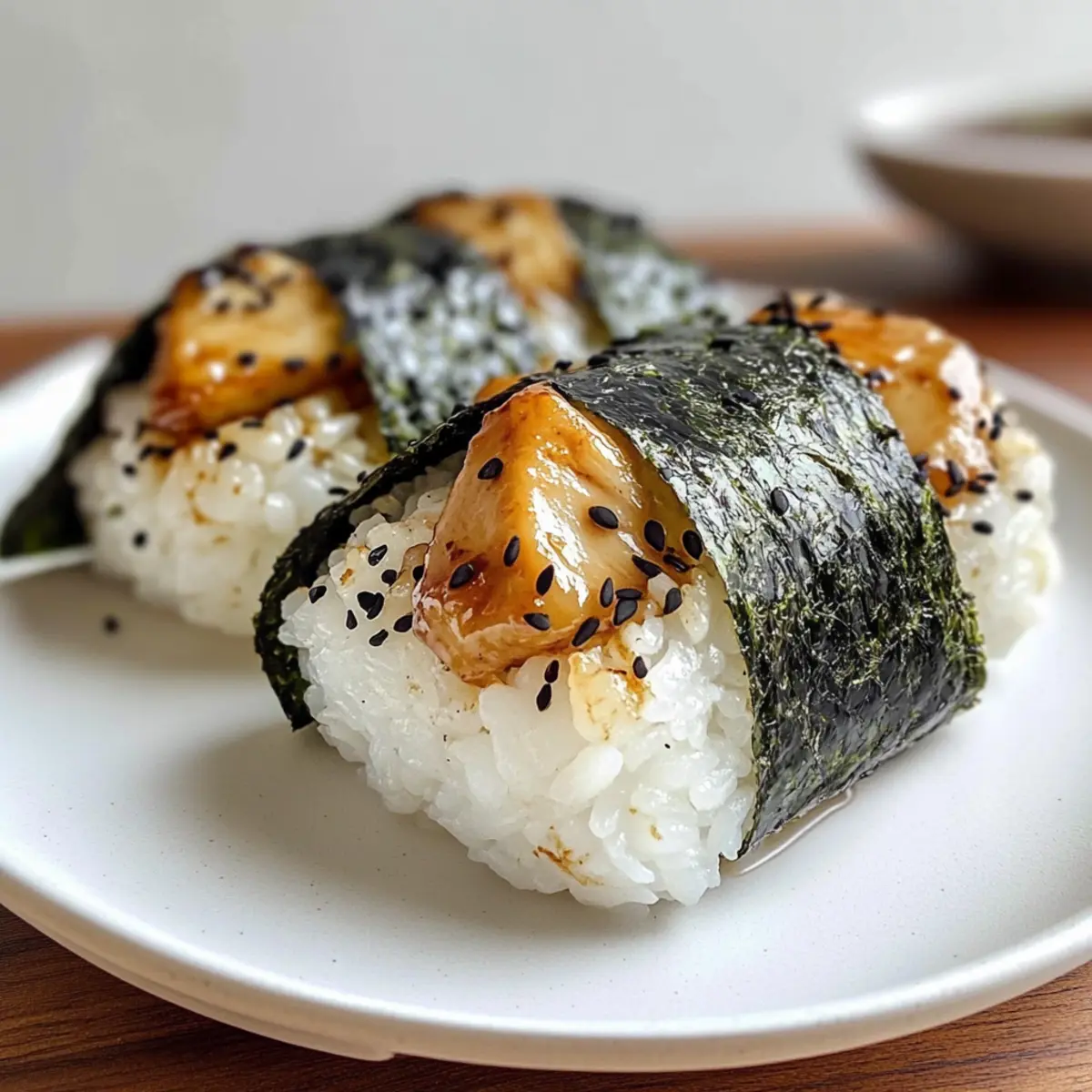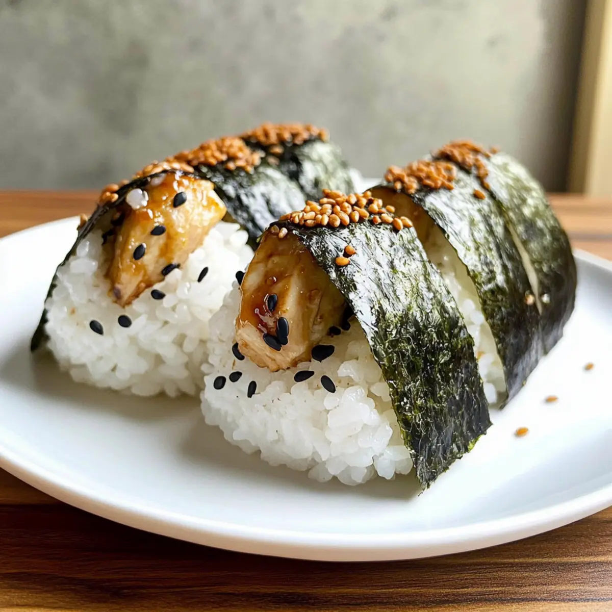 Die Vorstellung eines perfekten Snacks für unterwegs könnte nicht verlockender sein: Hühnchen Onigiri! Diese köstlichen Reisball-Snacks sind nicht nur eine wunderbare Kombination aus zartem, teriyaki-mariniertem Hühnchen und klebrigem Sushi-Reis, sondern auch extrem einfach zuzubereiten. Ich liebe es, dass sie ideal für spontane Picknicks oder als gesunder Snack für den Alltag sind. Mit dem zusätzlichen Kick von Knoblauch und der Möglichkeit, etwas Furikake hinzuzufügen, wird dieses Rezept nicht nur deine Geschmacksnerven erfreuen, sondern auch deine Kochkünste auf ein neues Level heben. Wer kann bei so einer köstlichen Kombination widerstehen? Lass uns herausfinden, wie du mit nur wenigen Zutaten diese japanischen Köstlichkeiten zubereiten kannst! Warum Hühnchen Onigiri so besonders ist? Einzigartig, die Kombination aus zartem Hühnchen und klebrigem Sushi-Reis macht diese Snacks unwiderstehlich! Einfach zuzubereiten, selbst Anfänger in der Küche können diese leckeren Hühnchen Onigiri meisterhaft zaubern. Vielseitigkeit, du kannst variieren und auch Tofu oder anderes Gemüse verwenden, um eine vegetarische Version zu kreieren. Perfekte Portionen, ideal für unterwegs, ob beim Picknick oder im Büro. Geschmacksexplosion, das Teriyaki-Aroma gepaart mit dem Umami des Nori sorgt für unvergessliche Geschmackserlebnisse. Und wenn du mehr über asiatische Snacks erfahren möchtest, wirf einen Blick auf Sieben Schichten Hühnchen! Hühnchen Onigiri Zutaten • Für die Reisgrundlage: Sushi-Reis – 4 Tassen gekochter Sushi-Reis; unerlässlich für die charakteristische Klebrigkeit – kurzkörniger Reis ist ideal für die Formung. Salz – ½ Teelöffel feines Salz; verbessert die Geschmacksverteilung im Reis. Furikake (optional) – 2 Esslöffel; fügt zusätzlichen Umami-Geschmack und Textur hinzu – kann vor dem Servieren darüber gestreut oder in den Reis gemischt werden. • Für die Hühnerfüllung: Hühnchen – ½ Pfund hautloses Hähnchen (am besten Oberschenkel); das Hauptprotein – kann durch Hähnchenschenkel oder gehacktes Hühnchen ersetzt werden. Sojasauce – 2 Teelöffel (Marinade) und 1 ½ Esslöffel (Teriyakisauce); sorgt für den Umami-Geschmack – es sind auch natriumarme Optionen möglich. Sake (oder Wasser) – 1 Esslöffel; zum Marinieren des Hühnchens – verbessert den Geschmack und die Zartheit. Backpulver – ¼ Teelöffel; macht das Hühnchen zarter. Maisstärke – 1 Teelöffel; sorgt für eine leicht knusprige Textur des Hühnchens. Mirin – 1 Esslöffel; ein süßer Reiswein, der der Teriyakisauce Süße verleiht. Brauner Zucker – 1 Esslöffel, fest gepackt; süßt die Teriyakisauce. Öl – 1 Esslöffel; zum Anbraten des Hühnchens – kann pflanzliches oder Sesamöl verwendet werden. Gehackter Knoblauch – 1 Esslöffel; fügt dem Pfannengericht Geschmack hinzu. • Fertigstellung: Nori – 1 Blatt, in kleine Rechtecke geschnitten; wird zum Wickeln der Onigiri verwendet und fügt einen Meeresgeschmack hinzu. Das Hühnchen Onigiri wird dein neuer Lieblingssnack, perfekt für unterwegs! Schritt-für-Schritt-Anleitung für Hühnchen Onigiri Step 1: Reis zubereiten Koche zuerst 4 Tassen Sushi-Reis nach Anleitung, bis er weich und klebrig ist. Füge nach dem Kochen ½ Teelöffel feines Salz und optional 2 Esslöffel Furikake hinzu. Mische alles gut durch, bis sich die Gewürze gleichmäßig verteilt haben und der Reis leicht abgekühlt ist. Step 2: Hühnchen marinieren Schneide ½ Pfund Hautloses Hühnchen in kleine Stücke. Mische in einer Schüssel 2 Teelöffel Sojasauce, 1 Esslöffel Sake, ¼ Teelöffel Backpulver und 1 Teelöffel Maisstärke mit dem Hühnchen. Decke die Schüssel ab und lasse die Marinade 30 Minuten im Kühlschrank ziehen, damit das Hühnchen zart wird. Step 3: Teriyakisauce zubereiten Stelle in der Zwischenzeit die Teriyakisauce her, indem du in einer kleinen Schüssel 1 ½ Esslöffel Sojasauce, 1 Esslöffel Mirin und 1 Esslöffel fest gepackten braunen Zucker verrührst. Rühre, bis der Zucker vollständig gelöst ist. Diese aromatische Sauce wird später über das Hühnchen gegossen. Step 4: Hühnchen anbraten Erhitze 1 Esslöffel Öl in einer beschichteten Pfanne bei mittlerer bis hoher Hitze. Gib das marinierte Hühnchen hinzu und brate es für 2-3 Minuten, bis es durchgegart ist und eine goldene Farbe hat. Füge 1 Esslöffel gehackten Knoblauch hinzu und brate ihn für weitere 30 Sekunden mit, bis er aromatisch ist. Step 5: Sauce hinzufügen Gieße die vorbereitete Teriyakisauce in die Pfanne mit dem Hühnchen. Rühre um und koche die Mischung weiter, bis die Sauce leicht eingedickt ist. Dies dauert etwa 2-3 Minuten. Nimm die Pfanne dann vom Herd und lasse die Füllung etwas abkühlen. Step 6: Onigiri formen Befeuchte deine Hände mit Wasser, um ein Verkleben zu verhindern. Nimm ⅓ Tasse Reis in die Hand, forme eine kleine Mulde in der Mitte und platziere 1 Esslöffel der Hühnchenfüllung darin. Bedecke die Füllung mit mehr Reis und forme die Mischung vorsichtig zu einem kompakten Dreieck. Wickele die Onigiri mit einem kleinen Stück Nori für zusätzlichen Geschmack. Step 7: Servieren Die Hühnchen Onigiri sind nun bereit zum Servieren! Du kannst sie warm genießen oder für ein Picknick einpacken. Diese köstlichen Snacks sind perfekt für unterwegs und bieten eine wunderbare Kombination aus zartem, teriyaki-mariniertem Hühnchen und klebrigem Reis. Expert Tips für Hühnchen Onigiri Reis richtig kochen: Achte darauf, den Reis gut zu waschen und die Wassermenge anzupassen, damit er schön klebrig wird – perfekt für die Formung der Onigiri! Hühnchen marinieren: Lass das Hühnchen mindestens 30 Minuten marinieren, um die Aromen richtig einzuziehen und das Fleisch zarter zu machen. Onigiri formen: Benutze nasse Hände, um das Verkleben zu verhindern. Das hilft dir, die Hühnchen Onigiri in schöne, gleichmäßige Dreiecke zu formen. Sauce eindicken: Koche die Teriyakisauce ausreichend lange, bis sie eine sir