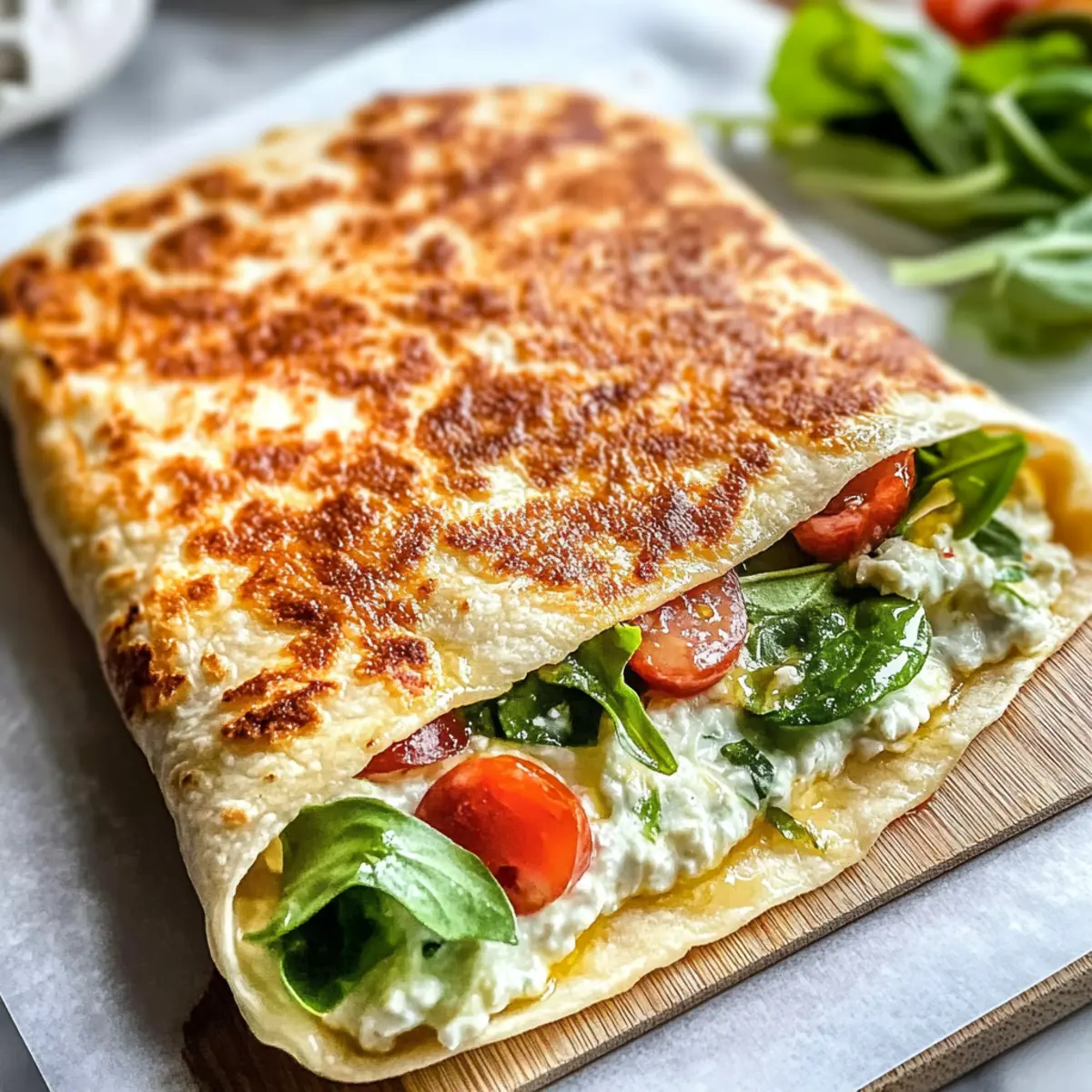 Während ich in meiner Küche stand und die letzten Reste aus dem Kühlschrank verwertete, hatte ich einen Geistesblitz: Wie wäre es mit Hüttenkäse-Wraps? Diese sind nicht nur unglaublich vielseitig, sondern auch eine genussvolle, gesunde Alternative zu herkömmlichen Wraps. Mit über 21 g Protein pro Portion sind sie das perfekte Essen für alle, die sich bewusst ernähren möchten, ohne auf Geschmack zu verzichten. Diese Wraps sind schnell zubereitet und eignen sich ideal für die Mahlzeitenvorbereitung – ob als Frühstücksburrito oder als nahrhafte belegte Variante für das Mittagessen. Und das Beste daran? Sie sind glutenfrei und passen in jede Low-Carb- oder ketogene Diät! Bist du bereit, kreative Füllungen auszuprobieren und deine Küche ins Schwingen zu bringen? Warum sind Hüttenkäse-Wraps so beliebt? Einfachheit: Die Zubereitung ist kinderleicht – alles wird im Mixer püriert! Gesunde Alternative: Mit über 21g Protein sind diese Wraps eine nahrhafte Wahl für jede Tageszeit. Vielseitig: Egal, ob gefüllt mit Gemüse, Aufschnitt oder sogar als süße Variante mit Früchten – der Kreativität sind keine Grenzen gesetzt. Zeitsparend: Ideal zur Mahlzeitenvorbereitung und hält sich bis zu fünf Tage im Kühlschrank. Entdecke dazu auch unsere Tipps für die perfekte Lagerung. Ein Genuss: Diese Wraps bieten die perfekte Konsistenz zwischen einem klassischem Wrap und glutenfreiem Fladenbrot – geschmacklich ein echtes Highlight! Hüttenkäse-Wraps Zutaten • Für den Wrap: Vollfetter Hüttenkäse – sorgt für Struktur, Feuchtigkeit und eine hohe Proteinquelle; für eine milchfreie Option einfach pflanzlichen Hüttenkäse verwenden. Eier – fungieren als Bindemittel, um den Wrap zusammenzuhalten; ersetzt werden können sie durch ein Flax- oder Chia-Ei für eine vegane Variante. Geriebener Parmesan – verleiht Geschmack und eine leicht käsige Textur; kann durch fein geriebenen Käse wie Mozzarella ersetzt werden. Knoblauchpulver – intensiviert die herzhaften Aromen; kann nach Belieben weggelassen werden. Italienische Kräuter – sorgen für eine geschmackvolle Würze; verwenden Sie beliebige Kräuter oder Gewürze als Ersatz. Schritt-für-Schritt-Anleitung für Hüttenkäse-Wraps Step 1: Ofen vorheizen Heize den Ofen auf 175 °C vor und lege ein Backblech mit Backpapier aus. Damit der Teig nicht anklebt, kannst du das Papier leicht einfetten. Achte darauf, dass der Ofen die richtige Temperatur erreicht, bevor du mit den nächsten Schritten fortfährst, um die besten Ergebnisse für deine Hüttenkäse-Wraps zu erzielen. Step 2: Zutaten mischen Gib den Vollfetten Hüttenkäse, die Eier, den geriebenen Parmesan, das Knoblauchpulver und die italienischen Kräuter in einen Mixer. Mixe die Zutaten auf hoher Stufe, bis eine geschmeidige Masse entsteht, was etwa 1 Minute dauert. Diese Mischung wird die Basis deiner leckeren, proteinreichen Hüttenkäse-Wraps sein. Step 3: Teig verteilen Gieße die glatte Masse gleichmäßig auf das vorbereitete Backblech und verstreiche sie vorsichtig zu einem dünnen Rechteck. Achte darauf, dass die Schicht nicht zu dick ist, damit die Wraps gleichmäßig garen. Diese Phase ist entscheidend für die endgültige Textur der Wraps, um weich und rollbar zu werden. Step 4: Backen Schiebe das Backblech in den vorgeheizten Ofen und backe die Mischung 30 bis 35 Minuten lang, bis sie fest und leicht goldbraun ist. Du erkennst, dass die Hüttenkäse-Wraps fertig sind, wenn die Oberfläche nicht mehr wackelt und sich trocken anfühlt. Achte darauf, sie nicht zu lange im Ofen zu lassen, um ein Austrocknen zu vermeiden. Step 5: Abkühlen lassen Nehme die Wraps aus dem Ofen und lasse sie vollständig auf dem Backblech abkühlen. Dies ist wichtig, damit sie an Stabilität gewinnen und sich leichter vom Backpapier lösen lassen. Geduld ist hier der Schlüssel, da sich die Wraps während des Abkühlens festigen werden. Step 6: Schneiden und füllen Sobald die Hüttenkäse-Wraps abgekühlt sind, schneide sie in gewünschte Portionen und fülle sie mit deinen Lieblingszutaten. Egal, ob du Gemüse, Aufschnitt oder eine köstliche süße Füllung wählst, diese Wraps bieten dir eine hervorragende Grundlage für kreative Mahlzeiten. Was passt gut zu Hüttenkäse-Wraps? Die Hüttenkäse-Wraps sind eine köstliche Basis, die sich perfekt in ein vollständiges Menü integrieren lässt. Frischer Blattsalat: Bietet eine knackige Textur und durch die frischen Zutaten wird das komplette Gericht leicht und erfrischend. Guacamole: Die cremige Avocadopaste ergänzt den Wrap mit einem zusätzlichen Hauch von Geschmack und gesunden Fetten. Gegrilltes Gemüse: Die Röstaromen des Gemüses harmonieren wunderbar mit den sanften Wraps und bringen zusätzliche Nährstoffe. Probier auch einen fruchtigen Smoothie dazu: Eine frische Mischung aus Spinat, Banane und Mandelmilch liefert dir eine süße Ergänzung und sorgt für einen nahrhaften Energieschub. Es ist eine wunderbare Möglichkeit, das Gericht rundum auszubalancieren! Joghurt-Dip: Ein leichter Joghurt-Dip, verfeinert mit Kräutern, rundet das Geschmackerlebnis ab und bringt zusätzliche Frische. Kräutertee oder Sprudelwasser: Diese Getränke sind nicht nur erfrischend, sondern unterstützen auch die Verdauung nach einer proteinreichen Mahlzeit wie Hüttenkäse-Wraps. Hüttenkäse-Wraps: Leckere Variationen Lass deiner Kreativität freien Lauf und personalisiere diese Wraps mit köstlichen Optionen, die dein Geschmackserlebnis bereichern! Dairy-Free: Verwende pflanzlichen Hüttenkäse, um eine milchfreie Variante zu kreieren. So kommt jeder in den Genuss der Wraps! Vegan: Tausche die Eier gegen ein Flax- oder Chia-Ei, um eine vegane Version der Wraps zu zaubern. Sie sind dann nicht weniger lecker! Gewürzboost: Füge Kreuzkümmel oder Paprika hinzu, um eine spannende Geschmacksrichtung zu erzielen. Diese Würze bringt dein Gericht auf das nächste Level! Würzige Wraps: Experimentiere mit etwas Chili oder Cayennepfeffe