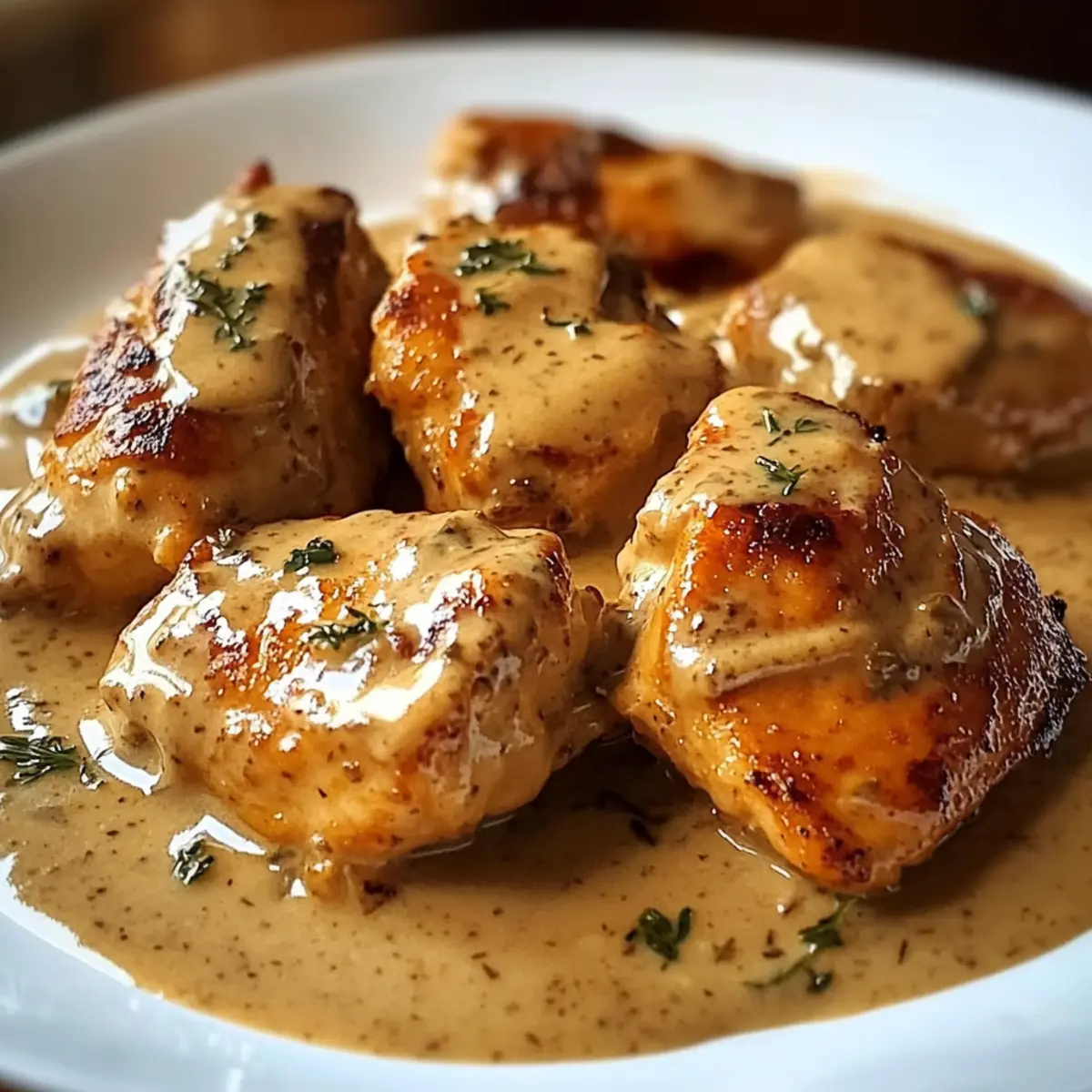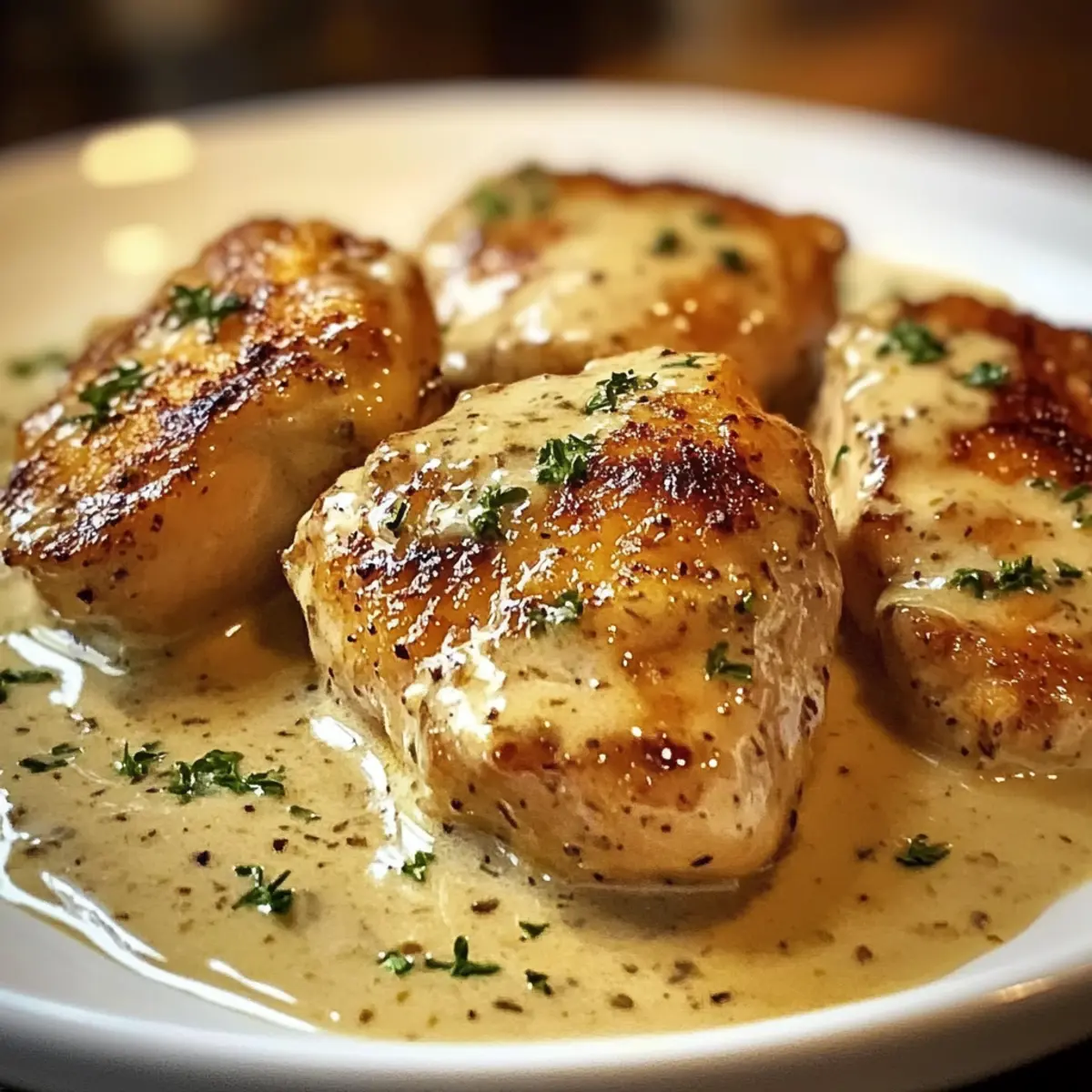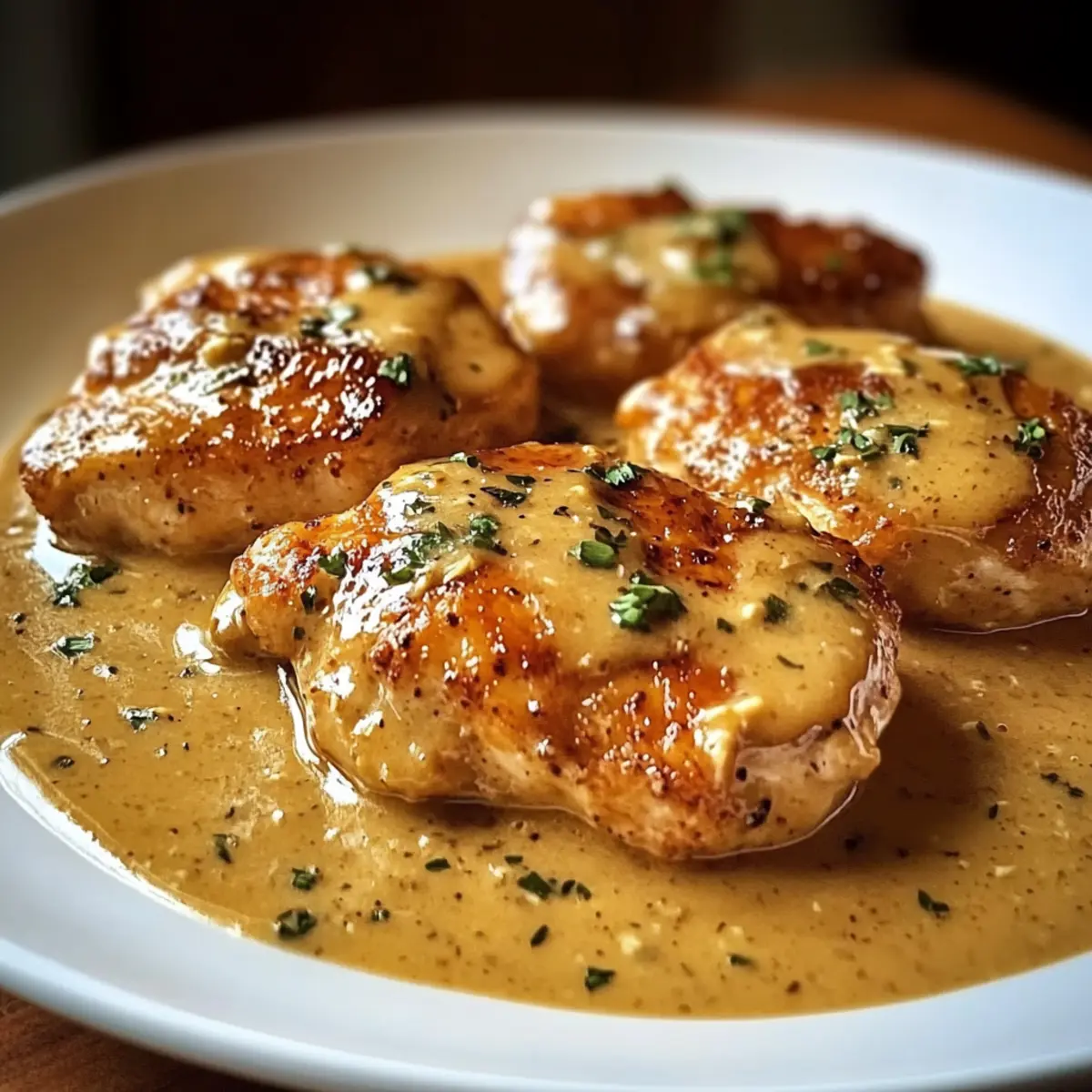Hast du schon einmal den warmen, einladenden Duft eines gemütlichen Pubs in Irland erlebt? Dieses Gefühl habe ich, wenn ich mein Irish Hühnchen in Whiskey-Sahnesauce zubereite. In dieser cremigen Delikatesse vereinen sich die Aromen von zartem Hähnchen und erdigem Whiskey zu einem unvergesslichen Geschmackserlebnis. Was ich an diesem Rezept besonders schätze, ist die schnelle Zubereitung – ideal für ein entspanntes Abendessen unter der Woche. Gleichzeitig eignet es sich wunderbar für besondere Anlässe, bei denen du deine Gäste beeindrucken möchtest. Kombiniert mit einer Beilage entsteht ein vollwertiges Gericht, das sowohl Herz als auch Gaumen erfreut. Bist du bereit, in die Welt dieser köstlichen Aromen einzutauchen? Warum ist dieses Rezept ein Muss? Einfachheit, die begeistert: Mit nur wenigen Zutaten und minimalem Aufwand zauberst du ein beeindruckendes Gericht. Samtiger Geschmack: Die Kombination aus Whiskey und Sahne bringt Karamell- und Vanillenoten in dein Essen. Vielseitigkeit: Ob zu Butterspätzle oder einem frischen Salat, diese Sauce passt einfach zu allem! Schnell zubereitet: Perfekt für trubelige Wochentage, hast du in kurzer Zeit ein Gourmet-Gericht auf dem Tisch. Besonderes Erlebnis: Verwöhne dich selbst oder deine Gäste mit einem Hauch irischer Gemütlichkeit in deinem Zuhause. Du wirst es lieben, dieses Gericht immer wieder zu servieren! Für weitere köstliche Ideen, schau dir auch mein Rezept für Honig Senf Hähnchen mit Reis an! Irish Hühnchen in Whiskey-Sahnesauce Zutaten • Notiz: Entdecke die köstlichen Zutaten für Irish Hühnchen in Whiskey-Sahnesauce, die dein nächste Gericht zum Highlight machen! Für das Hähnchen • Hähnchenbrust – Verwende am besten entbeinte und hautlose Hähnchenbrust für eine schnellere Zubereitung. Für die Sauce • Whiskey – Dieser bringt die Tiefe und den warmen Geschmack in die Sauce; verwende weniger für eine mildere Note. • Sahne – Sie sorgt für die samtige Textur; für eine laktosefreie Variante kannst du eine pflanzliche Sahnealternative verwenden. • Optionaler Irish Cheddar – Dieser Käse sorgt für zusätzlichen Geschmack; kann durch einen anderen Hartkäse ersetzt werden, falls nötig. Mit diesen Zutaten kannst du ein unwiderstehliches Irish Hühnchen in Whiskey-Sahnesauce zaubern, das alle begeistern wird! Step-by-Step Instructions für Irish Hühnchen in Whiskey-Sahnesauce Step 1: Hähnchen vorbereiten Erhitze eine große beschichtete Pfanne bei mittlerer Hitze und füge einen Esslöffel Öl hinzu. Würze die Hähnchenbrust großzügig mit Salz und Pfeffer und lege sie in die heiße Pfanne. Brate das Hähnchen für etwa 6-7 Minuten auf jeder Seite, bis es goldbraun und durchgegart ist. Achte darauf, dass die Innentemperatur mindestens 75°C erreicht. Step 2: Whiskey hinzufügen Nachdem das Hähnchen fertig gegart ist, nimm es aus der Pfanne und halte es warm. Gieße nun den Whiskey in die Pfanne und reduziere die Hitze auf niedrig. Lass den Whiskey für etwa 2-3 Minuten köcheln, damit der Alkohol verdampfen kann. Lass die Aromen sich miteinander verbinden und achte darauf, dass sich keine Reste vom Hähnchen am Pfannenboden absetzen. Step 3: Sahne einrühren Füge die Sahne langsam in die Pfanne hinzu und rühre gut um, um eine glatte Sauce zu erhalten. Lass die Mischung bei mittlerer Hitze für etwa 5 Minuten köcheln, bis sie leicht eindickt. Dabei regelmäßig umrühren, um ein Anbrennen zu verhindern. Die sahnige Konsistenz wird wunderbar mit dem Whiskey harmonieren und dein Irish Hühnchen in Whiskey-Sahnesauce verfeinern. Step 4: Sauce köcheln lassen Reduziere die Hitze weiter und lasse die Sauce für weitere 5 Minuten sanft köcheln. Achte darauf, dass sie nicht zu stark kocht, damit die Sahne nicht gerinnt. Die richtige Konsistenz sollte cremig und samtig sein, während die Aromen der Sauce intensiver werden. Step 5: Hähnchen zurückgeben Lege das zuvor gebratene Hähnchen wieder in die Pfanne mit der Whiskey-Sahnesauce. Lass das Hähnchen für 2-3 Minuten in der Sauce durchziehen, damit es die reichhaltigen Aromen aufnehmen kann. Wende das Hähnchen dabei einmal, um sicherzustellen, dass es gleichmäßig überzogen ist. Step 6: Anrichten und servieren Nehme die Pfanne vom Herd und serviere das Irish Hühnchen in Whiskey-Sahnesauce sofort. Garniere es mit frisch geriebenem Irish Cheddar, falls gewünscht. Dieses Gericht passt wunderbar zu Beilagen wie Butterspätzle, Kartoffelpüree oder einem einfachen grünen Salat. Lagerungstipps für Irish Hühnchen in Whiskey-Sahnesauce Raumtemperatur:: Lasse das Hähnchen vollständig auf Raumtemperatur abkühlen, bevor du es lagerst, um die Bildung von Bakterien zu vermeiden. Kühlschrank:: Bewahre die Reste in einem luftdichten Behälter auf und genieße sie innerhalb von bis zu 3 Tagen. Vermeide den Kontakt mit anderen Lebensmitteln, um Geruchsübertragung zu verhindern. Gefrierschrank:: Du kannst das Irish Hühnchen in Whiskey-Sahnesauce bis zu 2 Monate lang einfrieren. Verpacke es in einem gefrierfreundlichen Behälter oder Beutel, um Gefrierbrand zu vermeiden. Aufwärmen:: Erwärme die Sauce sanft in einer Pfanne bei niedriger Hitze, damit die Sahne nicht gerinnt. Füge eventuell etwas Wasser oder zusätzliche Sahne hinzu, um die Konsistenz wiederherzustellen. Tipps zur perfekten Vorbereitung von Irish Hühnchen in Whiskey-Sahnesauce Das Irish Hühnchen in Whiskey-Sahnesauce eignet sich hervorragend für die Vorbereitung im Voraus! Du kannst das Hähnchen bereits bis zu 24 Stunden vor dem Kochen würzen und in einem luftdichten Behälter im Kühlschrank aufbewahren, um die Aromen zu intensivieren. Die Whiskey-Sahnesauce kannst du sogar für bis zu 3 Tage im Voraus zubereiten; lagere sie ebenfalls in einem luftdichten Behälter. Beim Reheat solltest du die Sauce in einer Pfanne bei niedriger Hitze sanft aufwärmen, um eine cremige Konsistenz zu gewährleisten. Wenn du das Hähnchen in die Sauce zurückgibst, lasse es 2-3 Minuten kö