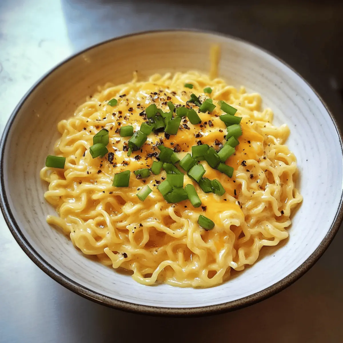 Als ich das erste Mal eine Schale Käse Ramen Nudeln vor mir hatte, fühlte ich mich sofort nach Hause versetzt. In nur fünf Minuten ist dieses Gericht ein wahrer Retter in der Not, besonders an hektischen Abenden, wenn die Familie nach etwas Warmem und Gemütlichem verlangt. Die Kombination aus geschmolzenem Käse und zarten Ramen-Nudeln schafft ein wunderbares Wohlfühlgericht, das Kinder und Erwachsene gleichermaßen begeistert. Mit einfachen Zutaten, die jeder daheim hat, lässt sich dieses Rezept schnell anpassen – sei es mit frischem Gemüse oder zartem Fleisch. Bereit, das perfekte, schnelle Gericht zu entdecken, das jeder lieben wird? Lass uns gleich loslegen! Warum sind Käse Ramen Nudeln so beliebt? Begeisterung für Käse: Diese Ramen sind eine cremige Umarmung für deinen Gaumen und vereinen die Liebe zu Komfortessen mit schneller Zubereitung. Einfach und schnell: In nur fünf Minuten zauberst du ein köstliches Gericht, perfekt für hektische Abende. Vielseitigkeit pur: Egal, ob du Gemüse oder Fleisch hinzufügst, dieses Rezept passt sich deinen Vorlieben an und bleibt dennoch unverwechselbar. Ideale Zutatenauswahl: Mit Zutaten, die du wahrscheinlich schon zu Hause hast, steht deinem Genuss nichts im Weg! Familienliebling: Die Kombination aus schmelzendem Käse und weichen Nudeln begeistert sowohl Kinder als auch Erwachsene und macht jede Mahlzeit zu einem besonderen Erlebnis. Lass dich inspirieren und entdecke auch andere variierte Rezepte! Käse Ramen Nudeln Zutaten • Für diese einfache Rezeptur benötigst du die folgenden Zutaten, um köstliche Käse Ramen Nudeln zu zaubern: Für die Ramen Instant Ramen Nudeln – Die Basis des Gerichts, jede Marke oder Geschmacksrichtung ist geeignet; die Geschmacksbeutel sollten vorher entfernt werden. Wasser – Essentiell zum Kochen der Nudeln; benötige dafür 2 Tassen für die perfekte Konsistenz. Für das Käse-Ramen Knoblauchpulver – Fügt einen aromatischen Kick hinzu und intensiviert den Geschmack. Butter – Macht das Gericht cremig und reichhaltig; kann durch Öl ersetzt werden, um es milchfrei zu gestalten. Geriebener Käse (Mozzarella, Cheddar, Parmesan) – Sorgt für die cremige Textur und den herzhaften Geschmack; mische verschiedene Käsesorten für noch mehr Vielfalt. Schwarzer Pfeffer – Fügt eine Prise Würze hinzu; nach Geschmack anpassen. Zum Garnieren Frühlingszwiebeln – Eine optionale Garnitur, die Frische und Farbe bringt; ideal für einen zusätzlichen Crunch. Diese Zutaten helfen dir, deine eigenen, köstlichen Käse Ramen Nudeln zuzubereiten – ein schnelles und einfaches Gericht, das sich wunderbar anpassen lässt! Schritt-für-Schritt-Anleitung für Käse Ramen Nudeln Step 1: Wasser zum Kochen bringen In einem Topf bringst du 2 Tassen Wasser zum Kochen. Achte darauf, dass das Wasser sprudelnd kocht, damit die Ramen-Nudeln gleichmäßig garen. Dies dauert in der Regel etwa 3-5 Minuten. Benutze einen geeigneten Kochtopf, um ein Überkochen zu verhindern. Step 2: Nudeln kochen Sobald das Wasser kocht, fügst du die Instant Ramen Nudeln hinzu. Koche die Nudeln für ca. 3-4 Minuten, bis sie al dente sind. Rühre gelegentlich um, damit die Nudeln nicht zusammenkleben. Das Wasser sollte nach dem Kochen trüb werden, was ein Zeichen für die Freisetzung der Stärke ist. Step 3: Wasser abgießen und Zutaten hinzufügen Nachdem die Nudeln gar sind, gieße das überschüssige Wasser ab, aber behalte ein wenig für die Creme-Konsistenz. Gib die Nudeln zurück in den Topf und füge 1 Esslöffel Butter, 1 Teelöffel Knoblauchpulver und frisch gemahlenen schwarzen Pfeffer nach Geschmack hinzu. Rühre alles gut um, bis die Butter vollständig geschmolzen ist. Step 4: Käse hinzufügen Füge nun eine gut gehäufte Tasse geriebenen Käse deiner Wahl zu den heißen Nudeln hinzu. Rühre kräftig, bis der Käse schmilzt und sich mit der Butter und den Nudeln verbindet. Nach etwa 1-2 Minuten solltest du eine cremige und leckere Käse Ramen Mischung haben. Step 5: Servieren und garnieren Verteile die Käse Ramen Nudeln auf Schalen und garniere sie nach Belieben mit frisch gehackten Frühlingszwiebeln. Diese bringen nicht nur Farbe, sondern auch einen erfrischenden Crunch. Serviere die Nudeln sofort heiß und genieße die köstliche und schnelle Mahlzeit! Käse Ramen Nudeln – Variationen & Anpassungen Lass deiner Kreativität freien Lauf und mach dieses Rezept zu deinem eigenen kulinarischen Meisterwerk! Vegetarische Optionen: Füge sautiertes Gemüse wie Brokkoli oder Spinat hinzu. So wird das Gericht bunt und gesund! Fleischvariationen: Integriere zarte Stücke von Hähnchen oder Garnelen für eine proteinreiche Ergänzung. Eine extra Portion Ei rundet das Ganze perfekt ab! Käse-Experiment: Probiere verschiedene Käsesorten wie Gouda oder spicy Pepper Jack aus. Das sorgt für ganz neue Geschmackserlebnisse. Würzige Note: Streue etwas rote Chili-Flocken oder einen Spritzer Sriracha darüber. Für alle, die es gerne feuriger mögen! Nussiger Geschmack: Ein Löffel Erdnussbutter in die Mischung geben, um eine cremige Herzhaftigkeit hinzuzufügen. Eine überraschende Wendung, die begeistert! Cremigkeit steigern: Ein Schuss Sahne oder ein Klecks Frischkäse verfeinert die Konsistenz und macht das Gericht unwiderstehlich cremig. Crunch-Faktor: Gebe geröstete Nüsse oder knusprige Zwiebeln als Topping hinzu. Das sorgt für tollen Biss und interessante Textur. Eine süße Note: Füge eine Prise Zucker oder Honig für einen unerwarteten süßlichen Kontrast hinzu. Eine raffinierte Erweiterung für deine Ramen! Probiere auch andere variierte Rezepte, um noch mehr Abwechslung in deiner Küche zu finden! Expert Tips für Käse Ramen Nudeln Richtige Kochzeit: Achte darauf, die Nudeln nicht zu lange zu kochen. Al dente Nudeln sind wichtig für die perfekte Textur deiner Käse Ramen Nudeln. Wasserabguss: Lass etwas Kochwasser in der Pfanne, um die Sauce cremiger zu gestalten. Zu viel Wasser kann das Gericht verwässern. Käs