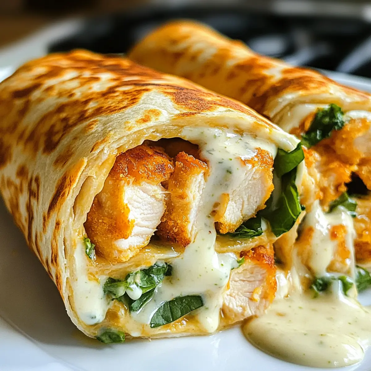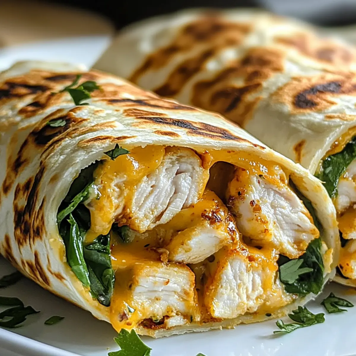 Als ich neulich auf dem Markt frischen Knoblauch entdeckte, konnte ich nicht widerstehen, mich von seiner aromatischen Präsenz verzaubern zu lassen. Diese Inspiration führte mich direkt zu meinen köstlichen Käsige Knoblauch Hähnchen Wraps. Mit zartem Hähnchen, schmelzendem Käse und einer unwiderstehlichen Knoblauchbutter vereinen sich hier die besten Zutaten in einem unkomplizierten Gericht, das sich perfekt für hektische Tage eignet. Das Beste daran? Es lässt sich im Handumdrehen zubereiten und ist ein echter Crowd-Pleaser für Familie und Freunde. Ganz gleich, ob du ein schnelles Mittagessen oder ein gemütliches Abendessen zapfen möchtest, diese Wraps bieten dir eine köstliche und anpassbare Lösung. Hast du schon eine persönliche Variante im Kopf, die dir besonders gut schmecken würde? Warum werden Sie diese Wraps lieben? Vielseitigkeit: Diese Käsigen Knoblauch Hähnchen Wraps sind anpassbar und bieten dir die Freiheit, unterschiedlichste Zutaten und Käsesorten zu verwenden. Schnelle Zubereitung: In nur wenigen Schritten kannst du dieses schmackhafte Gericht zaubern – ideal für stressige Tage. Aromen, die begeistern: Die Kombination aus zartem Hähnchen, geschmolzenem Käse und aromatischer Knoblauchbutter sorgt für einen unvergleichlichen Geschmack. Perfekt für Meal Prepping: Bereite gleich mehrere Portionen vor und genieße diese leckeren Wraps auch an geschäftigen Tagen. Geselliges Essen: Ob im Restaurant oder am Küchentisch, diese Wraps sind ein Hit bei Familie und Freunden – perfekt für ein entspanntes Abendessen oder Dinnerpartys. Käsige Knoblauch Hähnchen Wraps Zutaten Für dieses köstliche Rezept benötigst du eine Kombination aus frischen und herzhaften Zutaten, die zusammen eine wahre Geschmacksexplosion ergeben. Für die Füllung Hähnchenbrustfilets – Das Hauptakteur für die Wraps; du kannst auch Hähnchenschenkel für mehr Saftigkeit verwenden. Geriebener Cheddar-Käse – Dieser Käse bringt intensiven Geschmack; es empfiehlt sich, Gouda oder eine Mischvariante auszuprobieren. Geriebener Mozzarella – Für die berühmten „Cheese-Pulls“; andere schmelzende Käsesorten funktionieren genauso gut. Knoblauch – Der Hauptgeschmacksträger; die Menge kann je nach Vorliebe angepasst werden. Für die Wraps Tortilla-Wraps – Die perfekte Trägerschicht; Weizentortillas sorgen für die besten Ergebnisse. Für die aromatische Butter Butter – Die Basis für die Knoblauchbutter; du kannst auch Olivenöl verwenden, wenn du eine leichtere Option bevorzugst. Paprikapulver – Verleiht den Wraps zusätzliche Farb- und Geschmackstiefe. Salz und Pfeffer – Grundgewürze, die zur Geschmacksanpassung verwendet werden sollten. Optionales Topping Salat, Tomaten, Zwiebeln – Füge frisches Gemüse hinzu, um deine Wraps noch geschmackvoller zu gestalten. Sour Cream, Salsa – Ideal zum Servieren und Ergänzen der Wraps. Mit den Käsige Knoblauch Hähnchen Wraps bereitest du in kürzester Zeit nicht nur eine leckere Mahlzeit zu, sondern auch jede Menge Freude am Essen! Schritt-für-Schritt-Anleitung für Käsige Knoblauch Hähnchen Wraps Step 1: Hähnchen vorbereiten Die Hähnchenbrust in Streifen schneiden und mit Salz, Pfeffer sowie Paprikapulver würzen. In einer großen Pfanne bei mittlerer Hitze 6–8 Minuten braten, bis das Hähnchen goldbraun und durchgegart ist. Achte darauf, das Fleisch gelegentlich zu wenden, damit es gleichmäßig gar wird und sich der köstliche Duft entfaltet. Step 2: Knoblauchbutter zubereiten In derselben Pfanne 2 Esslöffel Butter bei niedriger Hitze schmelzen. Füge den fein gehackten Knoblauch hinzu und lasse ihn unter ständigem Rühren goldbraun rösten, etwa 2–3 Minuten. Der Geruch des gebräunten Knoblauchs wird unverwechselbar sein und perfekt die Basis für die Käsigen Knoblauch Hähnchen Wraps bilden. Step 3: Wraps belegen Die Tortillas auf eine saubere Arbeitsfläche legen und mit der vorbereiteten Knoblauchbutter großzügig bestreichen. Dann die gebratenen Hähnchenstreifen gleichmäßig darauf verteilen, gefolgt von einer Schicht geriebenem Cheddar- und Mozzarellakäse. Optional kannst du auch frisches Gemüse wie Salat und Tomaten hinzufügen, um mehr Farbe und Geschmack zu erzielen. Step 4: Wraps rollen Die Seiten der Tortillas leicht einklappen und dann eng aufrollen, sodass sie die Füllung gut einschließen. Dies sorgt dafür, dass beim Rösten nichts herausfällt und die Käsigen Knoblauch Hähnchen Wraps schön zusammenhalten. Stelle sicher, dass sie straff genug sind, um beim Toasten nicht auseinanderzufallen. Step 5: Wraps toasten Erhitze eine große, unbefettete Pfanne bei mittlerer Hitze. Die Wraps auflegen und 2–3 Minuten pro Seite rösten, bis sie goldbraun und der Käse geschmolzen ist. Achte darauf, die Wraps nicht zu lange zu toasten, da sie sonst zu knusprig werden könnten, während sich der Käse ebenfalls schön zieht. Step 6: Servieren Sobald die Käsigen Knoblauch Hähnchen Wraps perfekt geröstet sind, nehme sie aus der Pfanne und lasse sie kurz abkühlen. In der Zwischenzeit kannst du Sour Cream und Salsa bereitstellen, um sie frisch servieren zu können. Schneide die Wraps schräg durch und genieße das schmelzende Käsevergnügen! Meal Prep für Käsige Knoblauch Hähnchen Wraps Diese Käsigen Knoblauch Hähnchen Wraps sind ideal für eine zeitsparende Meal Prep! Du kannst die Hähnchenbrust bereits bis zu 24 Stunden im Voraus marinieren und anbraten; so bleibt das Fleisch saftig und geschmackvoll. Auch die Knoblauchbutter lässt sich prima vorbereiten und im Kühlschrank aufbewahren. Ein weiterer Pluspunkt: Die fertigen Wraps können in Folie gewickelt bis zu 3 Tage im Kühlschrank gelagert werden. Wenn du bereit bist, sie zu genießen, erhitze einfach eine Pfanne und röste die Wraps 2-3 Minuten pro Seite, bis sie goldbraun sind. Damit bleiben sie knackig und der Käse schmilzt perfekt – ein echter Zeitgewinn für deine geschäftigen Tage! Was passt zu Käsige Knoblauch Hähn