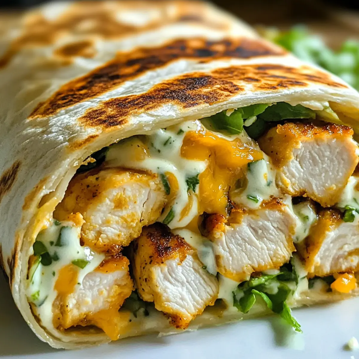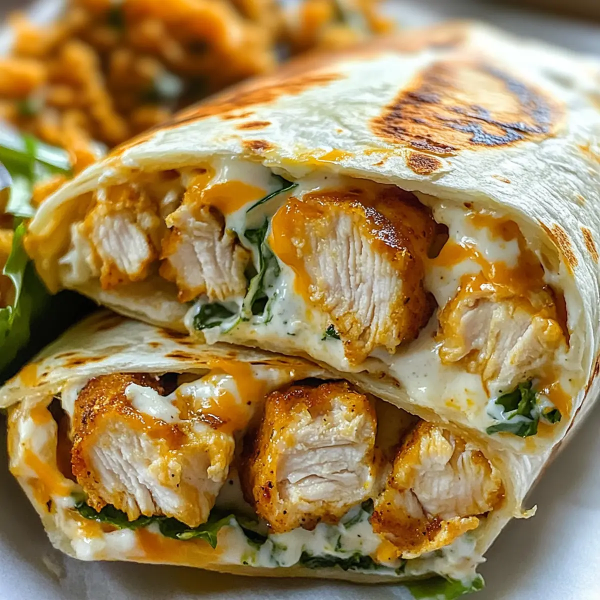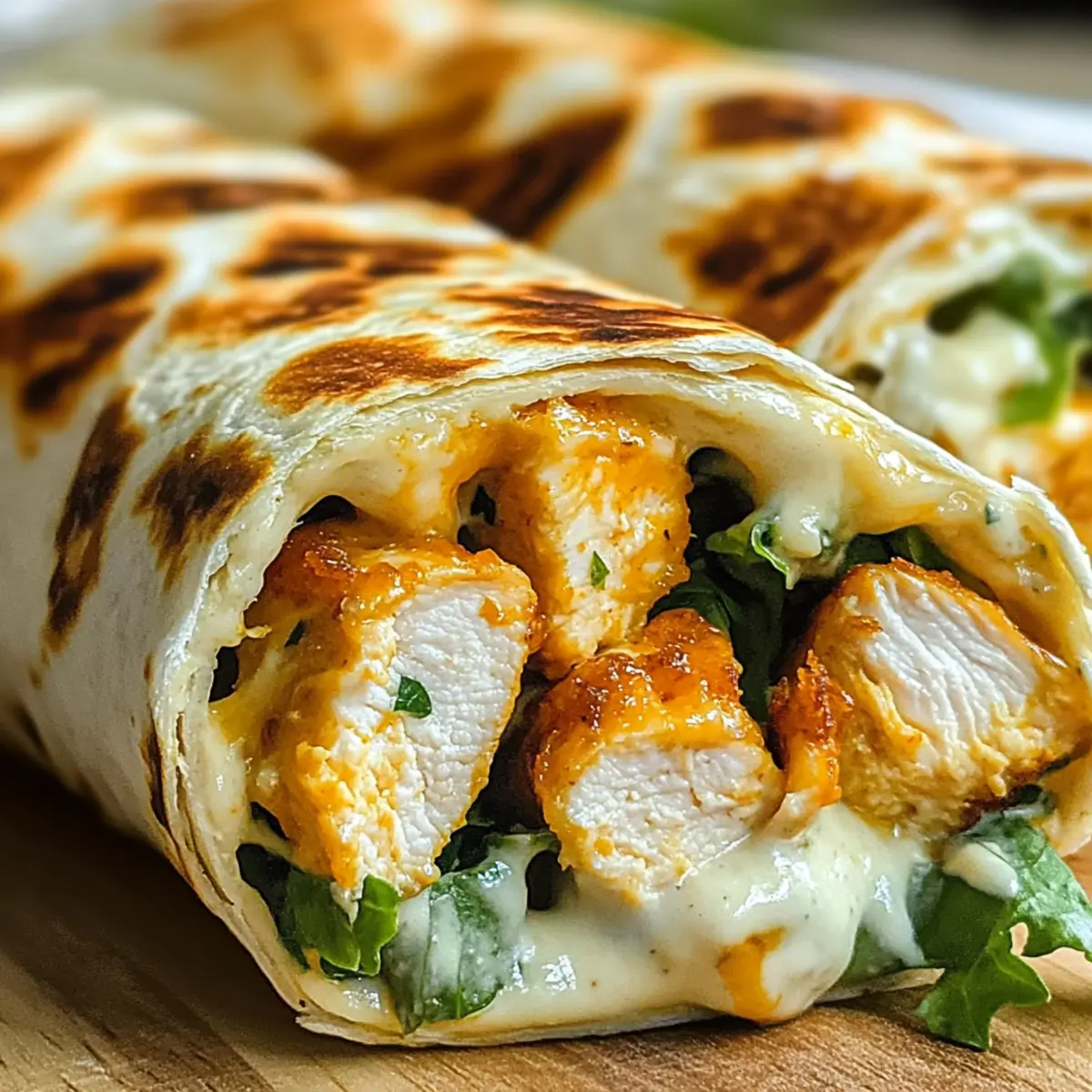 Als ich letztens im Kühlschrank nach Inspiration suchte, entdeckte ich einige Zutaten, die sich perfekt für ein schnelles Gericht eigneten. Mit saftigem Hähnchen, geschmolzenem Käse und einem Hauch von Knoblauch entstand die Idee zu meinen Käsigen Knoblauch Hähnchen Wraps. Diese köstlichen Wraps sind nicht nur in weniger als 30 Minuten zubereitet, sie sind auch ein wahres Fest für die Sinne und ideal für Meal Prep. Du kannst sie nach Lust und Laune anpassen, indem du verschiedene Käsesorten oder sogar vegetarische Optionen wie Tofu oder gegrilltes Gemüse wählst. Suchst du nach einem sättigenden Mittagessen oder einem entspannten Abendessen? Dann sind diese Wraps genau das Richtige für dich! Bist du bereit, in die Welt des Geschmacks einzutauchen? Warum werden diese Wraps dein Favorit? Vielfältigkeit: Diese Käsigen Knoblauch Hähnchen Wraps sind extrem anpassbar – ob mit schmelzenden Käsesorten deiner Wahl oder einer leckeren pflanzenbasierten Füllung. Schnelle Zubereitung: In weniger als 30 Minuten kannst du ein herzhaftes Gericht zaubern. Ideal für Meal Prep: Perfekt für die Woche im Voraus zubereitet – sie lassen sich einfach lagern und bei Bedarf aufwärmen. Crowd-Pleaser: Egal, ob für ein Familienessen oder ein Treffen mit Freunden, diese Wraps sind immer ein Hit! Herzhafter Geschmack: Die Kombination aus zartem Hähnchen und würziger Knoblauchbutter sorgt für ein Geschmackserlebnis, das du lieben wirst. Käsige Knoblauch Hähnchen Wraps Zutaten • Diese köstlichen Wraps sind einfach zuzubereiten und bieten vielfältige Anpassungsmöglichkeiten! Für die Füllung Hähnchenbrustfilets – Saftige Hauptzutat; für mehr Geschmack kannst du auch Hähnchenschenkel verwenden. Geriebener Cheddar-Käse – Für einen intensiven Geschmack; Gouda oder eine Käsemischung eignen sich hervorragend als Variante. Geriebener Mozzarella – Schmilzt schön und sorgt für die perfekten „Cheese-Pulls“; kann durch andere Käsesorten ersetzt werden. Knoblauch – Für den charakteristischen intensiven Geschmack; passe die Menge nach deinem persönlichen Vorliebe an. Paprikapulver – Verleiht eine tolle Farb- und Geschmackstiefe; ideal für ein wenig zusätzliches Feuer. Butter – Grundlage für die köstliche Knoblauchbutter; alternativ lässt sich auch Olivenöl verwenden. Salz und Pfeffer – Grundgewürze zur Geschmacksanpassung; verwende sie nach Belieben. Für die Wraps Tortilla-Wraps – Die ideale Trägerschicht; Weizentortillas bieten die besten Ergebnisse, können aber je nach Vorliebe variieren. Optional für das Topping Salat – Frische Beilage, die beim Servieren für zusätzlichen Crunch sorgt. Tomaten – Saftig für mehr Geschmack und Farbe. Zwiebeln – Feine Würfel für eine zusätzliche Geschmacksnote. Sauerrahm oder Salsa – Perfekt zum Servieren und als Dip für einen zusätzlichen Kick! Diese Käsigen Knoblauch Hähnchen Wraps sind nicht nur schnell und einfach, sondern lassen sich dank der verschiedenen Variationen jederzeit anpassen! Schritt-für-Schritt-Anleitung für Käsige Knoblauch Hähnchen Wraps Step 1: Hähnchen vorbereiten Schneide die Hähnchenbrustfilets in etwa 1 cm breite Streifen und würze sie großzügig mit Salz, Pfeffer und Paprikapulver. Erhitze eine Pfanne bei mittlerer Hitze und füge etwas Öl oder Butter hinzu. Brate die Hähnchenstreifen für 6–8 Minuten, bis sie goldbraun sind und ein zartes, saftiges Innere haben. Step 2: Knoblauchbutter zubereiten In derselben Pfanne schmelze die Butter bei niedriger Hitze und füge gehackten Knoblauch hinzu. Rühre den Knoblauch konstant um, bis er goldbraun und aromatisch ist, was etwa 1–2 Minuten dauert. Diese Mischung wird später auf die Tortillas gestrichen und verleiht den Käsigen Knoblauch Hähnchen Wraps einen unverwechselbaren Geschmack. Step 3: Wraps belegen Nehme die Tortilla-Wraps zur Hand und bestreiche sie großzügig mit der frisch zubereiteten Knoblauchbutter. Lege dann eine Portion der gebratenen Hähnchenstücke in die Mitte der Wraps, gefolgt von einer großzügigen Menge geriebenem Cheddar- und Mozzarella-Käse. Du kannst auch frische Zutaten wie Salat und Tomatenscheiben hinzufügen, um den Wraps mehr Frische zu verleihen. Step 4: Wraps rollen Klappe zuerst die Seiten der Tortilla leicht ein und beginne dann, die Wraps von unten nach oben fest aufzurollen. Achte darauf, dass die Füllung gut eingepackt ist, um ein Auslaufen zu vermeiden. Wenn du die Wraps richtig rollst, erhältst du eine handliche Portion für jeden Biss und hältst sie schmackhaft und stabil. Step 5: Wraps toasten Erhitze die Pfanne auf mittlerer bis hoher Temperatur, ohne zusätzliches Fett hinzuzufügen. Lege die gerollten Wraps mit der Nahtseite nach unten in die heiße Pfanne und röste sie für 2–3 Minuten pro Seite, bis sie goldbraun und knusprig sind. Achte darauf, dass der Käse schön schmilzt und die Außenseite der Wraps eine knusprige Textur erhält. Step 6: Servieren Nehme die Käsigen Knoblauch Hähnchen Wraps aus der Pfanne und lasse sie kurz abkühlen. Anschließend schneide sie in der Mitte durch und serviere sie warm mit optionaler Sour Cream oder Salsa. Diese Wraps sind perfekt für ein schnelles Mittagessen oder ein entspanntes Abendessen und werden garantiert ein Hit bei der Familie oder Freunden! Perfekte Vorbereitung für Käsige Knoblauch Hähnchen Wraps Diese Käsigen Knoblauch Hähnchen Wraps sind ideal für die Vorbereitung und ermöglichen es dir, wertvolle Zeit während der Woche zu sparen! Du kannst die Hähnchenstücke bereits bis zu 24 Stunden im Voraus marinieren und im Kühlschrank aufbewahren, damit sie den vollen Geschmack entwickeln. Auch die Knoblauchbutter kannst du vorbereiten und in einem luftdichten Behälter bis zu 3 Tage im Kühlschrank lagern. Wenn du bereit bist zu genießen, bestreiche die Tortillas einfach mit der Knoblauchbutter, fülle sie mit den vorgebratenen Hähnchenstücken und dem Käse, rolle sie auf, und röste sie für 2–3 Minu