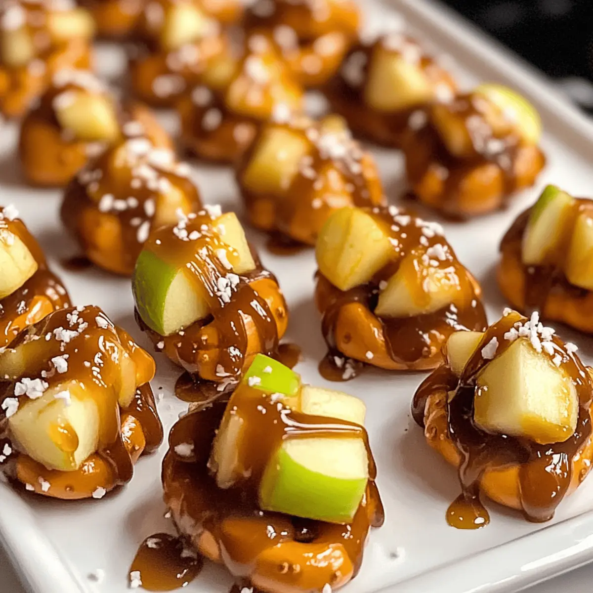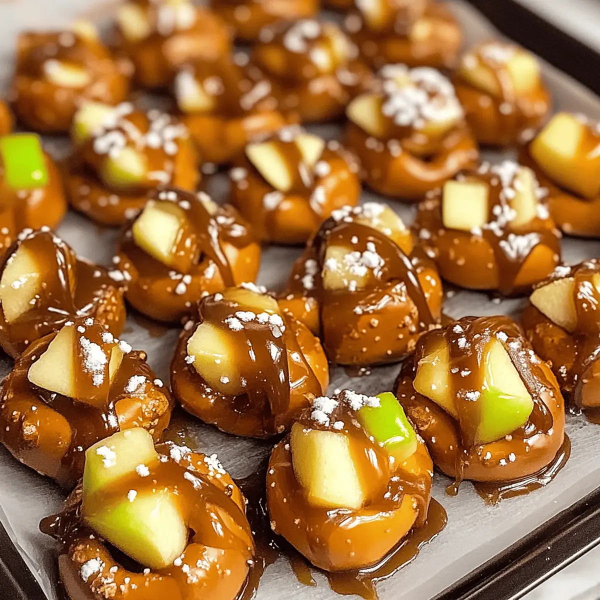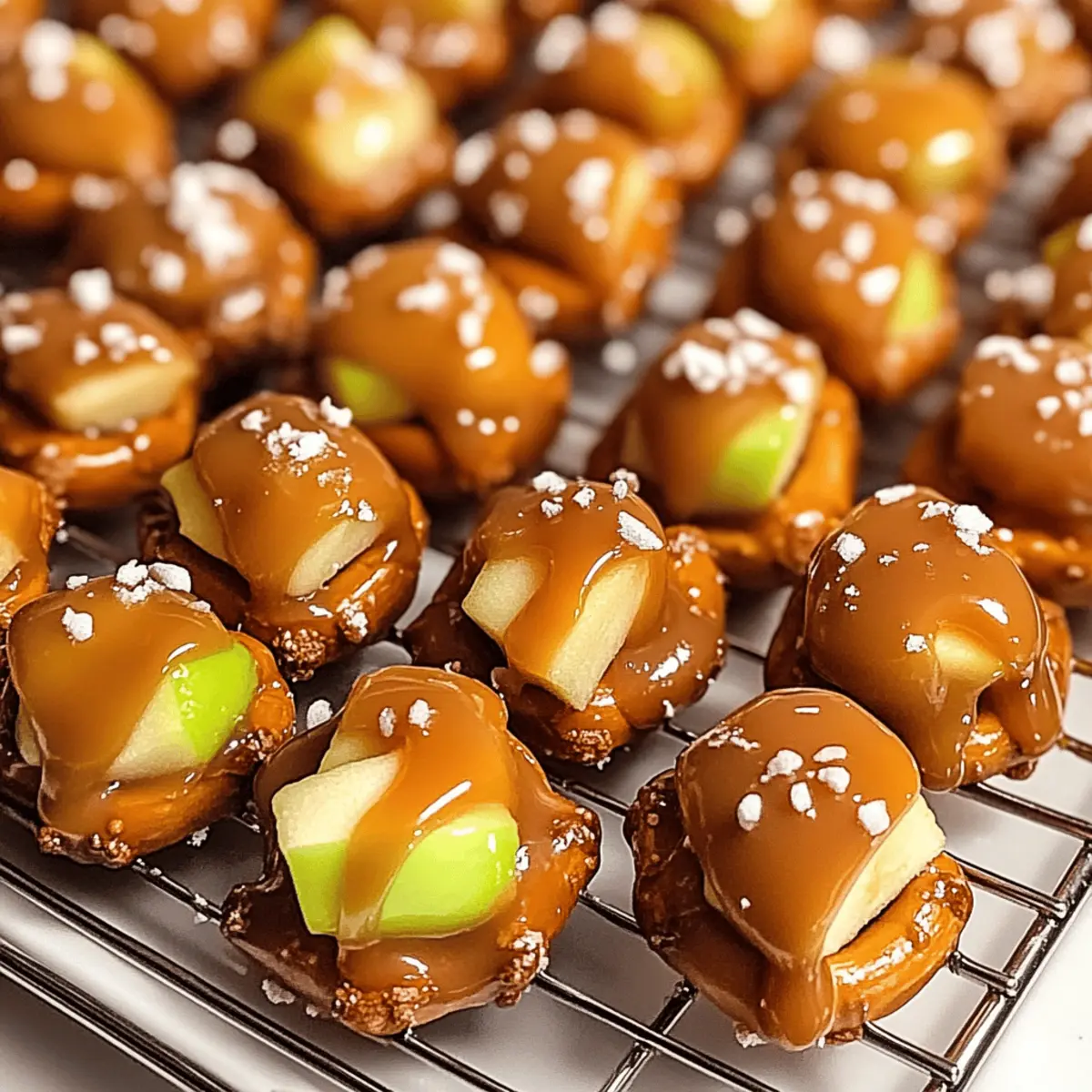 Es ist Herbst und die Blätter färben sich in warmen Farben – der perfekte Zeitpunkt, um sich mit meinen Karamell-Apfel-Brezel-Bissen verwöhnen zu lassen! Diese einfachen Leckerbissen kombinieren die spritzige Frische von Äpfeln mit dem süßen, klebrigen Genuss von Karamell und dem knackigen Biss der Brezeln. Mit nur fünf Zutaten bereitet ihr dieses Rezept im Handumdrehen zu und es ist die ideale Wahl für spontane Gäste oder gemütliche Abende mit Freunden und Familie. Diese kleinen Häppchen sind nicht nur ein echter Hingucker, sondern versprechen auch, bei jedem herbstlichen Treffen ein Hit zu werden! Seid ihr bereit für eine köstliche Geschmacksexplosion? Warum wirst du diese Bissen lieben? Schnelligkeit und Einfachheit: Die Zubereitung dieser Karamell-Apfel-Brezel-Bissen ist denkbar einfach und benötigt nur wenige Schritte – perfekt für alle, die viel um die Ohren haben. Vielseitige Variationen: Experimentiere mit verschiedenen Apfelsorten oder tausche die Schokolade gegen dunkle Schokolade aus, um deinen Geschmack zu treffen. Köstlicher Geschmack: Die Kombination aus salzigen Brezeln, süßem Karamell und frischen Äpfeln sorgt für ein unvergessliches Geschmackserlebnis, das alle begeistert. Ideal für jeden Anlass: Egal ob Geburtstagsfeier oder einfach nur ein gemütlicher Abend zu Hause, diese Bissen sind immer der Star. Einfach teilen: Diese kleinen Häppchen sind perfekt portioniert und laden zum Teilen ein – perfekt für gesellige Runden. Karamell-Apfel-Brezel-Bissen Zutaten • Diese köstlichen Karamell-Apfel-Brezel-Bissen sind super einfach zuzubereiten und benötigen nur fünf Zutaten! Für die Brezeln Brezel-Snaps – bieten eine salzige Knusprigkeit, die perfekt mit dem süßen Karamell harmoniert. Karamellwürfel – sorgen für eine süße und klebrige Textur; verwenden Sie klassische Karamellbonbons für das beste Ergebnis. Für die Äpfel Frische Äpfel – bringen einen spritzigen und frischen Geschmack; ideal sind säuerliche Sorten wie Granny Smith für einen ausgewogenen Genuss. Für die Schokolade Halbbitterschokoladenstückchen – zum Drizzlen, um das Geschmackserlebnis zu vervollständigen; dunkle Schokolade kann für einen intensiveren Geschmack verwendet werden. Optional für den Crunch Gehackte Erdnüsse – bieten zusätzlichen Knusper und Geschmack; können für eine nussfreie Variante weggelassen werden. Schritt-für-Schritt-Anleitung für Karamell-Apfel-Brezel-Bissen Step 1: Ofen vorheizen Heize deinen Ofen auf 135°C (275°F) vor und lege ein Backblech mit Backpapier aus. Dies sorgt nicht nur für eine einfache Reinigung, sondern verhindert auch, dass die Karamellwürfel an der Oberfläche festkleben. Step 2: Brezeln anordnen Platziere die Brezel-Snaps gleichmäßig auf dem Backblech in einer einzigen Schicht. Achte darauf, dass sie sich nicht überlappen, damit jede Brezel gleichmäßig mit Karamell und Äpfeln belegt werden kann. Step 3: Karamell daraufsetzen Nehme einen Karamellwürfel und setze ihn sorgfältig auf jede Brezel. Achte darauf, dass die Karamellwürfel gut auf den Brezeln liegen, da sie beim Backen schmelzen und eine leckere Verbindung bilden. Step 4: Backen Backe die Brezel-Karamell-Kombination für etwa 10-15 Minuten im vorgeheizten Ofen, bis die Karamellwürfel weich, aber nicht vollständig geschmolzen sind. Halte ein Auge darauf, um ein Überfließen zu vermeiden – sie sollten formbar bleiben. Step 5: Äpfel vorbereiten Während die Brezeln im Ofen sind, entkerne und würfle die frischen Äpfel in etwa 2,5 cm große Stücke. Lege die Äpfel in eine Schüssel mit Zitronensaft, um ein Braunwerden zu verhindern und um die Frische zu bewahren. Step 6: Äpfel in Karamell drücken Nachdem du die Brezeln aus dem Ofen genommen hast, drücke sofort ein Apfelstück in das weiche Karamell auf jeder Brezel. Dies sorgt für einen fruchtigen Biss, der perfekt zu dem süßen Karamell und dem salzigen Crunch passt. Step 7: Schokolade schmelzen Gebe die Halbbitterschokoladenstückchen in eine mikrowellengeeignete Schüssel. Schmelze sie in 15-20 Sekundenschritten, bis sie glatt und flüssig sind. Rühre zwischendurch um, um ein Anbrennen zu vermeiden. Step 8: Schokolade drizzeln Verteile die geschmolzene Schokolade gleichmäßig über den fertiggestellten Karamell-Apfel-Brezel-Bissen. Dies fügt nicht nur eine köstliche Schokoladennote hinzu, sondern verbessert auch das Aussehen der Häppchen. Step 9: Abkühlen lassen Lass die Karamell-Apfel-Brezel-Bissen vollständig bei Zimmertemperatur abkühlen, bevor du sie servierst. Dadurch wird sichergestellt, dass die Schokolade fest wird und die Bissen ihre Form behalten. Vorbereitungen für die Karamell-Apfel-Brezel-Bissen Diese Karamell-Apfel-Brezel-Bissen sind perfekt für die Vorausplanung und helfen dir, wertvolle Zeit zu sparen! Du kannst die Brezeln und Karamellwürfel bis zu 24 Stunden im Voraus vorbereiten. Einfach die Brezeln auf dem Backblech anordnen und die Karamellwürfel darauf setzen, dann in einem luftdichten Behälter bei Zimmertemperatur aufbewahren. Die Äpfel kannst du ebenfalls einen Tag im Voraus schneiden; lege die Würfel einfach in Zitronensaft, um das Braunwerden zu verhindern. Wenn du bereit bist, die Bissen zuzubereiten, backe alles im vorgeheizten Ofen und füge die Äpfel hinzu, bevor du die geschmolzene Schokolade drizzlest. So erhältst du frische, köstliche Snacks, die deine Familie lieben wird! Tipps für die besten Karamell-Apfel-Brezel-Bissen Genaues Timing: Achte während des Backens auf die Karamellwürfel, damit sie nicht überfließen; sie sollten weich, aber nicht völlig geschmolzen sein. Frische Äpfel verwenden: Nimm frische Äpfel und achte darauf, sie nach dem Einweichen in Zitronensaft gut abzutrocknen, um die Knusprigkeit der Bissen zu bewahren. Schnelle Lagerung: Serviere die Karamell-Apfel-Brezel-Bissen am selben Tag für die beste Textur. Sie können bei Zimmertemperatur aufbewahrt werden, um ihren Crunch zu erhalten. Vielzahl an 
