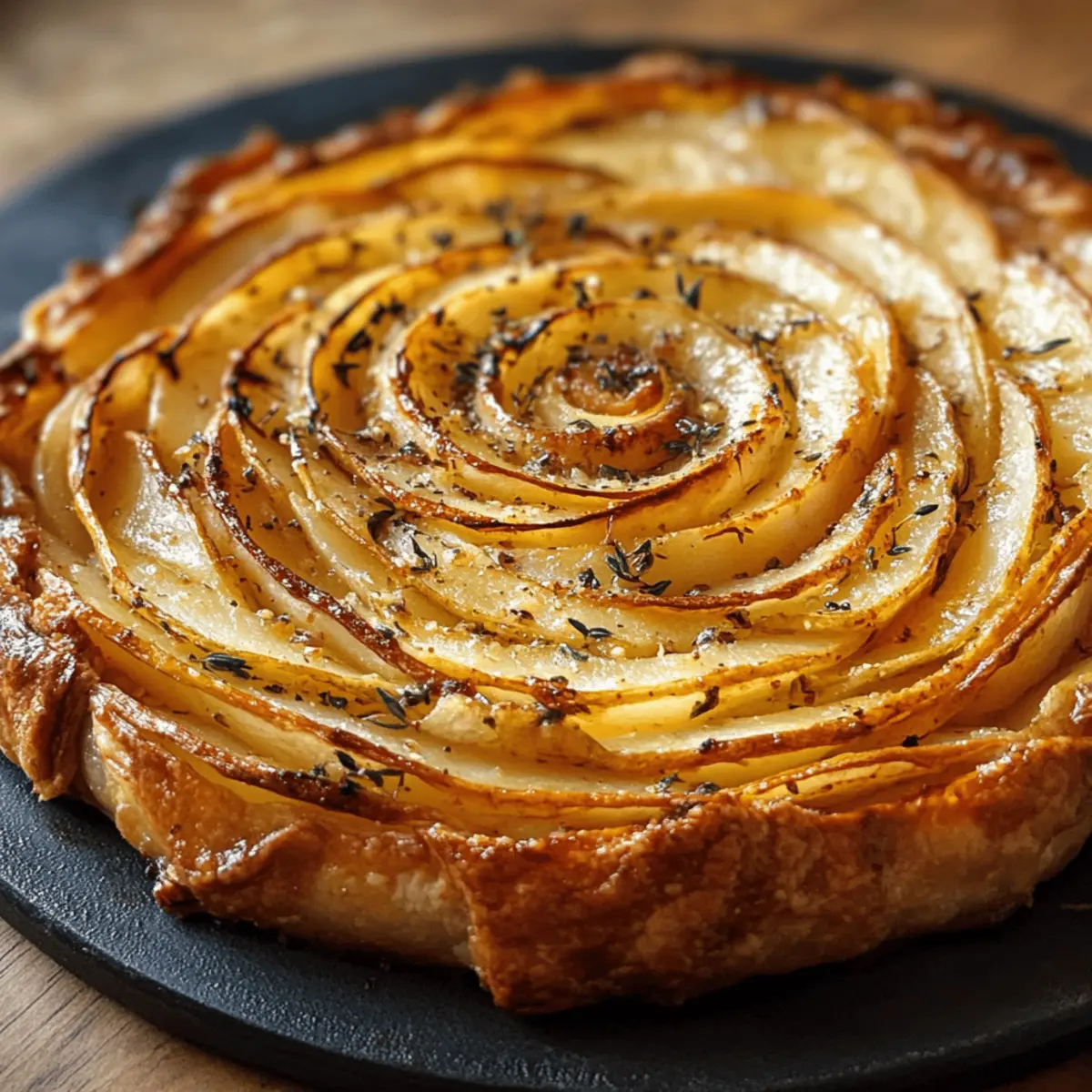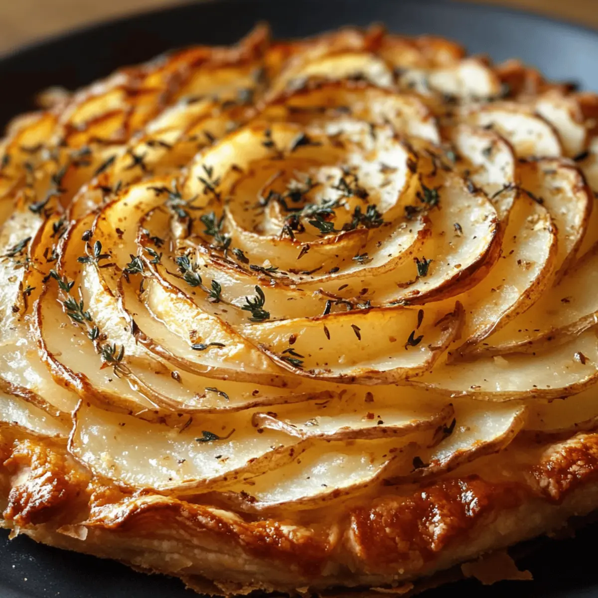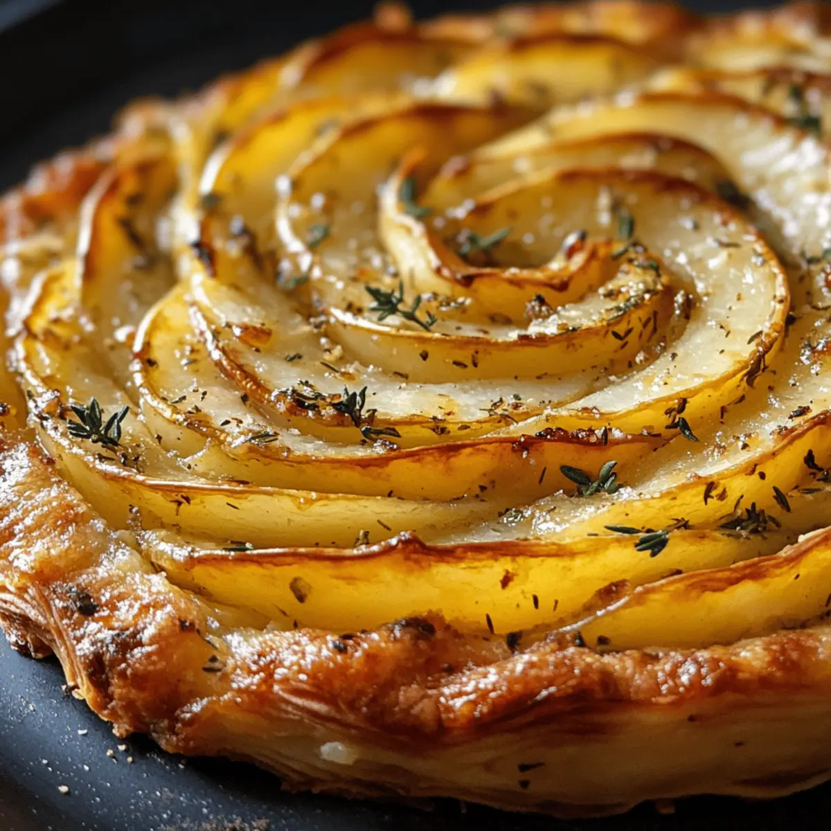 Genieße diese köstliche Kartoffelgalette mit Knoblauch und Thymian, ein einfaches und leckeres Rezept für jede Gelegenheit.