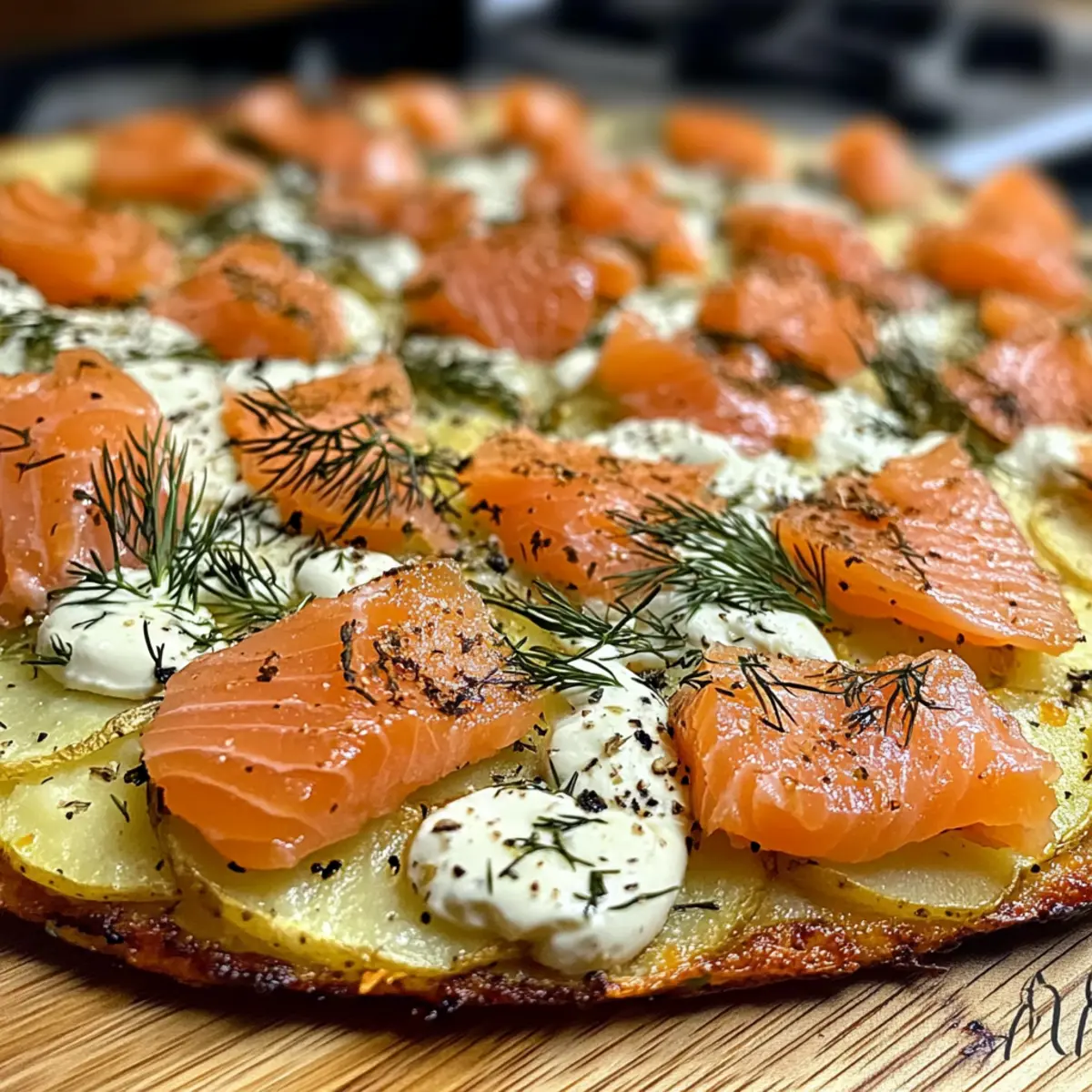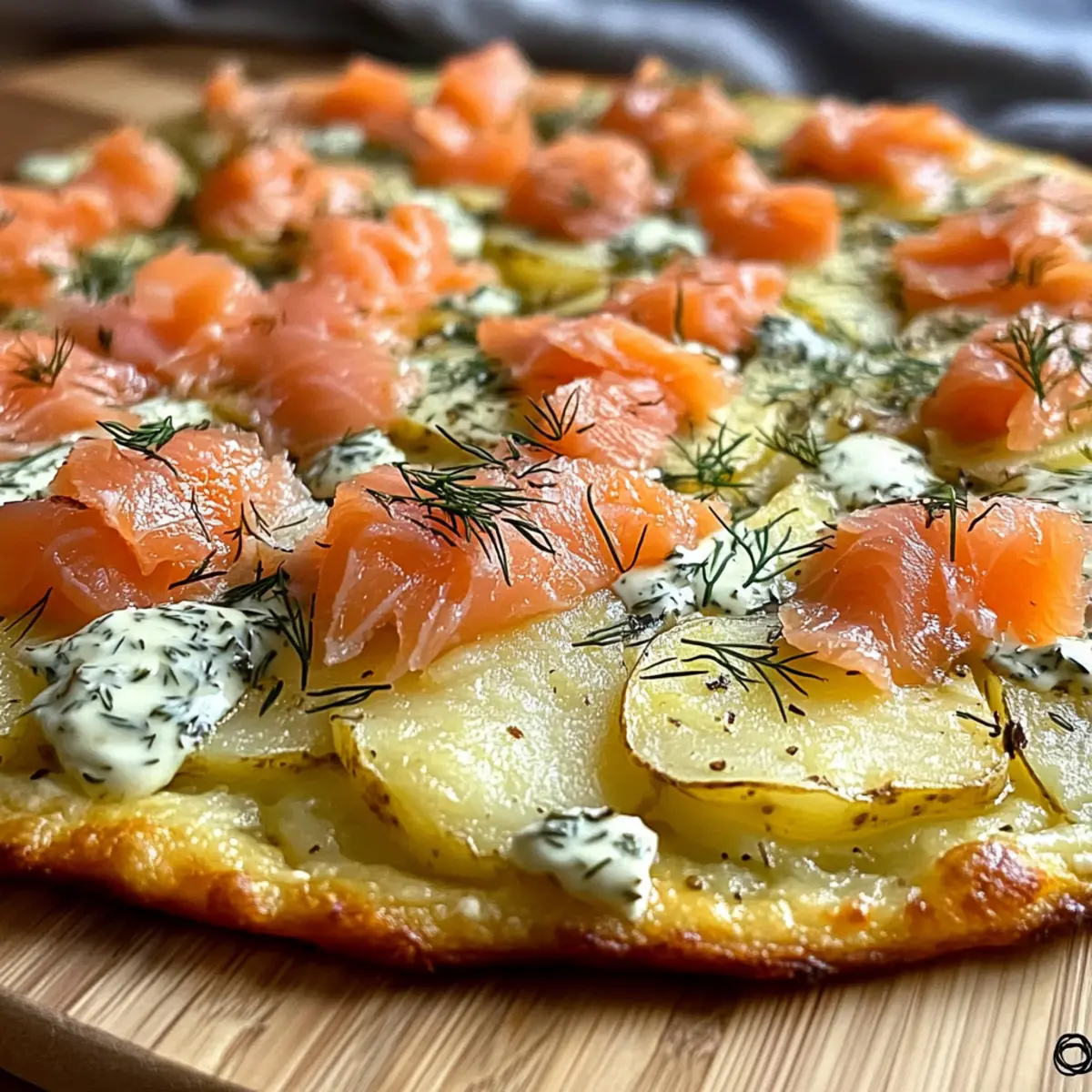 In der Küche begegnet uns oft die kleine Herausforderung, etwas Schnelles und Leckeres zu zaubern, ohne aufgerufenes Fast Food zurückgreifen zu müssen. Heute lade ich dich ein, mit mir gemeinsam eine köstliche Kartoffelpizza mit geräuchertem Lachs zuzubereiten. Diese glutenfreie Pizza ist nicht nur schnell und einfach zu machen, sondern auch unglaublich vielseitig – du kannst sie nach Belieben belegen! Der knusprige Boden aus Kartoffeln gepaart mit dem cremigen Kräuterfrischkäse und dem zarten Lachs wird selbst die anspruchsvollsten Gaumen begeistern. Ob als leichtes Abendessen oder als beeindruckende Vorspeise für deine Freunde, diese Kartoffelpizza ist ein echtes Highlight. Bist du bereit, deine nächsten Kocherfahrungen aufzupeppen? Warum wirst du dieses Rezept lieben? Einfachheit trifft Genuss: Die Zubereitung dieser Kartoffelpizza mit geräuchertem Lachs ist kinderleicht und benötigt nur grundlegende Kochkenntnisse. Vielseitige Beläge: Du kannst deine Pizza ganz nach deinen Vorlieben gestalten, sei es mit gebratenem Gemüse oder frischem Rucola. Schnell und nahrhaft: In nur 30 Minuten steht diese glutenfreie Köstlichkeit auf deinem Tisch – ideal für hektische Tage! Crowd-Pleaser: Ob als Hauptgericht oder als Teil eines Buffets, sie begeistert garantiert Familie und Freunde. Gesunde Basis: Dank der Kartoffeln ist sie zudem reich an Nährstoffen, was sie zu einer sättigenden Wahl macht. Mach dich bereit, deine Gäste mit diesem Rezept zu beeindrucken! Kartoffelpizza Zutaten • Entdecke die Grundlagen für die perfekte Kartoffelpizza mit geräuchertem Lachs! Für den Boden Kartoffeln – Die Basis für die Pizza, sorgt für die knusprige Textur. Stärkehaltige Sorten wie mehlige oder Yukon Gold werden empfohlen. Olivenöl – Fügt Reichtum hinzu und fördert das Bräunen. Verwende hochwertiges Olivenöl für besten Geschmack. Salz – Unverzichtbar für die Würze; nach Geschmack anpassen. Pfeffer – Ergänzt das Salzaroma; ebenfalls nach Geschmack hinzufügen. Für den Belag Geriebener Käse – Für Feuchtigkeit und Geschmack; Mozzarella oder Gouda sind ideal, kann durch vegane Käsealternativen ersetzt werden. Kräuterfrischkäse – Cremiger Belag mit Kräuteraroma. Kann durch veganen Frischkäse ersetzt werden. Räucherlachs – Hauptproteinquelle, bringt einen reichen Geschmack. Kann durch gegrilltes Gemüse oder karamellisierte Zwiebeln für eine vegetarische Variante ersetzt werden. Dill – Verstärkt den Geschmack des Lachses; frisch oder getrocknet verwendbar. Schritt-für-Schritt-Anleitung für Kartoffelpizza mit geräuchertem Lachs Step 1: Ofen vorheizen Heize deinen Ofen auf 200°C vor. Dies ist wichtig, um eine gleichmäßige Bräunung der Kartoffelpizza mit geräuchertem Lachs zu gewährleisten. Stelle sicher, dass der Ofen vollständig vorgeheizt ist, bevor du mit dem nächsten Schritt fortfährst, um optimale Ergebnisse zu erzielen. Step 2: Kartoffeln vorbereiten Reibe die Kartoffeln fein und forme sie gleichmäßig auf einem mit Backpapier belegten Blech. Achte darauf, dass die Kartoffelmasse eine runde Form hat und nicht zu dick aufgetragen wird. Dies sorgt für eine knusprige Textur beim Backen und lässt die köstliche Grundlage der Pizza gut durchbacken. Step 3: Würzen Träufle das Olivenöl gleichmäßig über die Kartoffelmasse und würze großzügig mit Salz und Pfeffer. Diese Würze ist entscheidend für den Geschmack deiner Kartoffelpizza. Verwende deine Hände, um die Zutaten gut zu vermischen, und achte darauf, dass jede Kartoffelscheibe mit Öl und Gewürzen coated ist. Step 4: Käse hinzufügen Streue den geriebenen Käse gleichmäßig über die Kartoffelmasse. Der Käse sorgt für Feuchtigkeit und Geschmack und schmilzt beim Backen schön. Achte darauf, dass jeder Biss deine Kartoffelpizza mit geräuchertem Lachs geschmacklich bereichert, während der Boden knusprig bleibt. Step 5: Backen Schiebe das Blech für 20–25 Minuten in den vorgeheizten Ofen. Halte ein Auge darauf, bis die Oberseite goldbraun und knusprig ist. Dies ist der perfekte Zeitpunkt, um deine Kartoffelpizza aus dem Ofen zu nehmen und ihr die perfekte Farbe zu verleihen. Step 6: Abkühlen lassen Lass die gebackene Kartoffelpizza nach dem Backen kurz abkühlen. Dies hilft, die Struktur des Bodens zu festigen und erleichtert das Schneiden. Etwa 5–10 Minuten sind ausreichend, damit du eine stabile und schmackhafte Grundlage erhältst. Step 7: Frischkäse auftragen Verteile gleichmäßig den Kräuterfrischkäse über die gebackene Kartoffelbasis. Achte darauf, dass du eine gleichmäßige Schicht aufträgst, die sich gut mit den knusprigen Kartoffeln verbindet. Der Frischkäse ergänzt perfekt den herzhaften Geschmack des Lachses. Step 8: Lachs hinzufügen Reiße den Räucherlachs in Stücke und streue ihn locker über den Frischkäse. So erhältst du eine gleichmäßige Verteilung und jeder Biss der Kartoffelpizza mit geräuchertem Lachs ist ein Genuss! Lass den Lachs großzügig auf der Pizza liegen, um den besten Geschmack zu erzielen. Step 9: Garnieren und Servieren Garnieren mit frischem Dill und der Kartoffelpizza etwas Farbe und zusätzlichen Geschmack verleihen. Diese Pizza ist nun bereit zum Servieren – ideal als leichtes Abendessen oder als beeindruckende Vorspeise für deine Gäste. Lass es dir schmecken! Expert Tips für Kartoffelpizza mit geräuchertem Lachs Kartoffeln richtig wählen: Achte darauf, stärkehaltige Kartoffeln wie Yukon Gold zu verwenden, um die beste Textur für den Boden zu erzielen. Feuchtigkeit entfernen: Drücke die geriebenen Kartoffeln gut aus, um überschüssige Flüssigkeit zu entfernen. Dies hilft, die gewünschte Knusprigkeit zu erreichen. Käseauswahl: Nutze hochwertigen Käse wie Mozzarella oder Gouda für zusätzlichen Geschmack. Veganer Käse ist eine gute Alternative für die Kartoffelpizza. Abkühlzeit beachten: Lass die Pizza nach dem Backen einige Minuten abkühlen, um eine stabilere Struktur zu bekommen, die sich besse