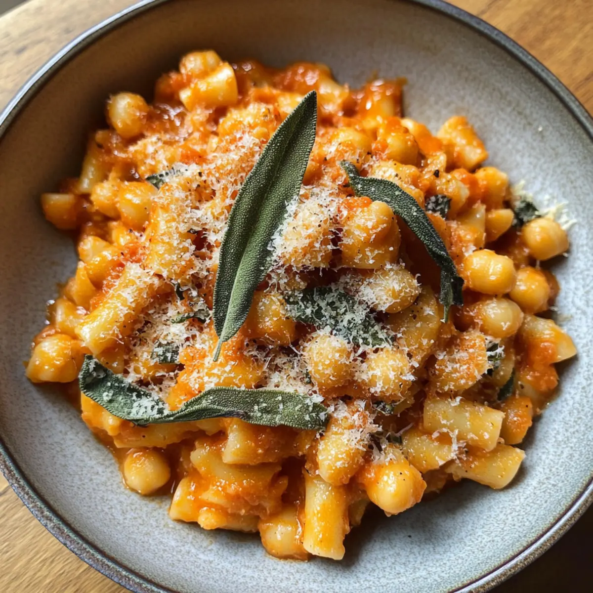 Während ich durch die Regale meines Lebensmittelladens schlenderte, entdeckte ich eine beeindruckende Tüte Kichererbsenpasta. Diese unscheinbare Zutat hat sich als das Geheimnis für ein köstliches, pflanzenbasiertes Abendessen entpuppt! Ich kann kaum beschreiben, wie glücklich ich war, als ich diese Kichererbsenpasta mit einer aromatischen Tomatensauce und knusprigen Salbeiblättern kombiniert habe. Dies ist nicht nur ein einfaches und schnelles Rezept, sondern auch ein wärmendes Comfort Food, das selbst den geschäftigsten Wochentagen eine kulinarische Umarmung verleiht. Mit all den Möglichkeiten für Anpassungen, sei es durch das Hinzufügen von buntem Gemüse oder verschiedenen Gewürzen, wird diese Mahlzeit zu einem vielfältigen Genuss. Wer wäre nicht neugierig darauf, sich in ein so wohlschmeckendes Gericht zu vertiefen? Lass uns zusammen in die Zubereitung eintauchen! Warum ist Kichererbsenpasta so besonders? Vielfältig und anpassbar: Diese Kichererbsenpasta ist ein wahres Chamäleon in der Küche, das wunderbar mit verschiedenen Gemüsesorten oder Gewürzen kombiniert werden kann. Einfache Zubereitung: Selbst Anfänger in der Küche können mit diesem Rezept beeindrucken und in kürzester Zeit ein schmackhaftes Gericht zaubern. Nahrhaft und gesund: Reich an Proteinen und Ballaststoffen ist dieses Rezept nicht nur ein köstlicher Genuss, sondern unterstützt auch eine gesunde Ernährung. Perfekte Portionen für jeden Anlass: Egal, ob für ein schnelles Wochendinner oder als Teil eines festlichen Buffets – diese Pasta kommt immer gut an. Verpasse nicht die Möglichkeit, dieses Rezept mit verschiedenen Variationen zu experimentieren und jeden Bissen zu genießen! Kichererbsenpasta Zutaten • Diese Kichererbsenpasta ist ein flexibles Rezept, das sich perfekt für kreative Anpassungen eignet. Für die Sauce Olivenöl – sorgt für Feuchtigkeit und hilft beim Anbraten von Gemüse; kann durch Avocadoöl ersetzt werden. Salbeiblätter – verleihen ein aromatisches Flair; frischer Salbei ist bevorzugt, aber getrockneter kann in kleinerer Menge verwendet werden. Zwiebel – bildet die Geschmacksbasis der Sauce; kann durch Schalotten oder rote Zwiebeln ersetzt werden. Karotte – bringt Süße und Textur ein; Alternativ kann der süßere Geschmack von Pastinaken verwendet werden. Sellerie – trägt zur Soffritto-Basis bei; kann weggelassen oder durch Paprika für eine süßere Note ersetzt werden. Knoblauchzehen – unverzichtbar für die Geschmackstiefe; für stärkeren Geschmack die Menge erhöhen. Anchovis – sorgt für einen herzhaften Umami-Geschmack; für eine pflanzenbasierte Version weglassen oder durch Miso-Paste ersetzen. Salz und schwarzer Pfeffer – essenziell für die Würze. Chopped Tomaten – bildet die Grundlage der Sauce; kann durch frische, in der Saison befindliche Tomaten oder andere Dosentomaten ersetzt werden. Heißer Gemüsefond – fügt Flüssigkeit und Geschmack hinzu; hausgemachter Fond ist ideal, aber Wasser kann im Notfall verwendet werden. Kichererbsen – Quelle für Proteine und Cremigkeit; sowohl aus der Dose als auch getrocknet geeignet. Für die Pasta Ditalini-Pasta – kleine, röhrenförmige Pasta, die großartig für dieses Gericht ist; kann durch Makkaroni oder Orzo ersetzt werden. Parmesan – sorgt für einen reichen Finish; vegetarischen Parmesan für eine fleischfreie Variante verwenden. Extrawohlsames Olivenöl – für einen Schuss vor dem Servieren, fügt Reichtum und Geschmack hinzu. Schritt-für-Schritt-Anleitung für Kichererbsenpasta mit knusprigem Salbei Step 1: Salbei knusprig braten Erhitze in einer großen, beschichteten Pfanne bei mittlerer Hitze einen Esslöffel Olivenöl. Füge die Hälfte der frischen Salbeiblätter hinzu und brate sie für etwa 2-3 Minuten, bis sie knusprig sind. Achte darauf, dass sie nicht verbrennen. Nach dem Braten die Blätter auf einen Teller legen und beiseite stellen. Step 2: Gemüse anbraten In derselben Pfanne das restliche Olivenöl erhitzen und die gewürfelte Zwiebel, Karotte und Sellerie hinzufügen. Bei mittlerer Hitze etwa 10-15 Minuten anbraten, bis das Gemüse weich und leicht goldbraun ist. Rühre gelegentlich um, damit es gleichmäßig gar wird und eine schöne aromatische Basis entsteht. Step 3: Knoblauch und Anchovis hinzufügen Füge nun die zerdrückten Knoblauchzehen und die Anchovis in die Pfanne hinzu. Würze mit Salz und schwarzem Pfeffer und brate alles für weitere 5 Minuten, bis der Knoblauch duftet und die Anchovis zerfallen sind. Achte darauf, dass nichts anbrennt, und rühre gut um. Step 4: Salbei und Tomaten einrühren Gib die fein gehackten Salbeiblätter in die Pfanne und brate sie 5 Minuten lang mit dem Gemüse weiter an. Füge dann die gehackten Tomaten und den heißen Gemüsefond hinzu. Rühre alles gut um und bringe die Mischung zum Kochen, bevor du die Hitze reduzierst und die Sauce für 10 Minuten köcheln lässt. Step 5: Kichererbsen integrieren Nachdem die Sauce etwas reduziert ist, füge die abgetropften Kichererbsen hinzu. Rühre gut um und lasse das Ganze für weitere 10 Minuten bei mittlerer Hitze köcheln, bis die Kichererbsen heiß sind und die Aromen gut durchgezogen sind. Diese Kichererbsenpasta wird nun aromatisch und cremig. Step 6: Sauce pürieren Nimm nun einen Stabmixer und püriere etwa die Hälfte der Sauce direkt in der Pfanne, bis sie cremig ist. Die pürierte Sauce sorgt für eine samtige Textur und verbindet sich wunderbar mit der Ditalini-Pasta, die gleich hinzugefügt wird. Die Hitze auf niedrig einstellen, während du die Pasta kochst. Step 7: Pasta kochen Bring in einem großen Topf gesalzenes Wasser zum Kochen und füge die Ditalini-Pasta hinzu. Koche sie gemäß den Anweisungen auf der Verpackung al dente, normalerweise etwa 8-10 Minuten. Scanne die Pasta regelmäßig, damit sie nicht zu weich wird. Wenn die Pasta fertig ist, abgießen und kurz beiseite stellen. Step 8: Pasta und Sauce vermengen Gib die gekochte Ditalini-Pasta di