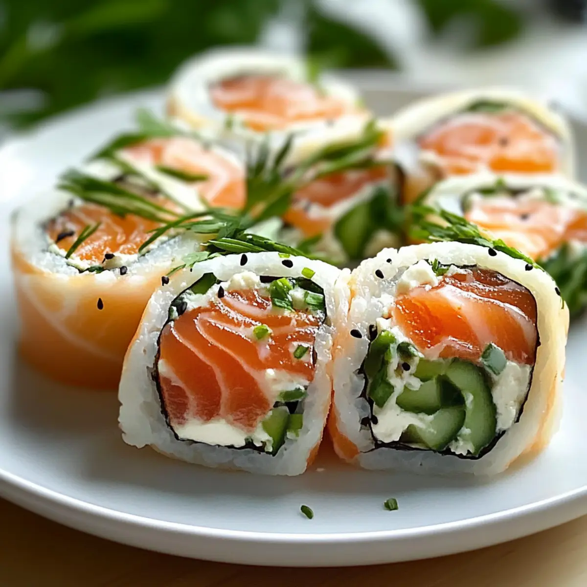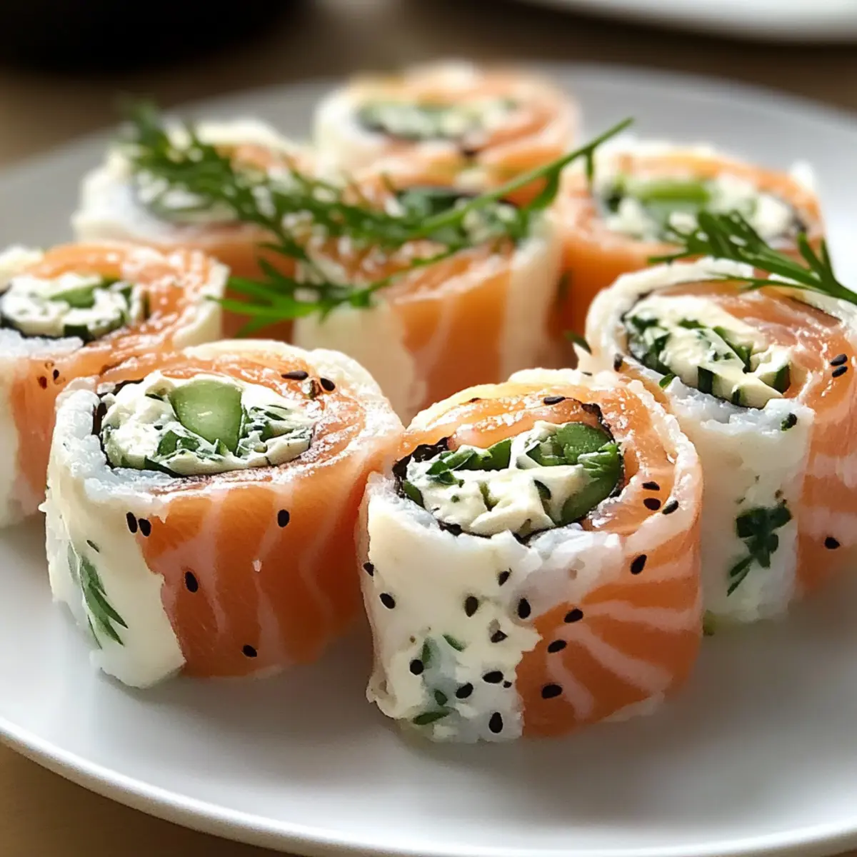 Jeder Brunch hat das Potenzial, etwas Besonderes zu sein, und mit diesen kleinen Räucherlachs Röllchen wird jeder Biss zu einem Fest der Aromen. Diese köstlichen Happen sind nicht nur äußerst einfach zuzubereiten, sondern beeindrucken auch als vielseitiges Fingerfood. Die Kombination aus zartem Räucherlachs und cremigem Frischkäse, garniert mit frischen Kräutern, sorgt für ein Genuss-Erlebnis, das einfach begeistert. Außerdem sind sie ideal, um frische Zutaten clever zu nutzen – ob knackige Gurkenstreifen oder pikante Meerrettich-Noten, hier können kreative Köche ihre persönliche Note einbringen. Lust darauf, diese raffinierten Röllchen zu probieren? Lass uns gemeinsam eintauchen! Warum sind Räucherlachs Röllchen so beliebt? Einfachheit: Die Zubereitung dieser kleinen Räucherlachs Röllchen ist kinderleicht und erfordert nur wenige Schritte. Selbst Anfänger in der Küche können damit glänzen! Vielseitigkeit: Diese Röllchen sind anpassbar – fügen Sie Ihre Lieblingskräuter oder Gemüse hinzu und variieren Sie die Füllung nach Belieben, wie zum Beispiel mit einer leichten Avocado-Creme. Frischer Geschmack: Die Kombination aus zartem Räucherlachs und cremigem Frischkäse, angereichert mit frischem Gemüse, sorgt für ein harmonisches Geschmackserlebnis, das begeistert. Perfekt für jede Gelegenheit: Ob beim Brunch, beim gemütlichen Abendessen oder als Party-Snack, diese Röllchen kommen immer gut an und sind ein echter Hingucker. Gesundheitsbewusst: Mit griechischem Joghurt anstelle von Frischkäse können Sie die Kalorien reduzieren, ohne auf den köstlichen Geschmack zu verzichten. Machen Sie Ihren nächsten Brunch unvergesslich mit diesen kleinen Räucherlachs Röllchen! Kleine Räucherlachs Röllchen Zutaten Für die Röllchen Räucherlachs – Hauptbestandteil, der für einen salzigen und rauchigen Geschmack sorgt; wählen Sie qualitativ hochwertigen Lachs für den besten Genuss. Frischkäse – Sorgt für Cremigkeit und dient als Bindemittel; für eine leichtere Variante können Sie auch griechischen Joghurt verwenden. Frische Kräuter (z.B. Dill oder Schnittlauch) – Fügen Sie frische Aromen hinzu, ganz nach Ihrem persönlichen Geschmack. Gemüse (z.B. Gurke oder Paprika) – Bietet Textur und Frische; schneiden Sie es in dünne Streifen für eine einfache Handhabung. Würzen (z.B. Meerrettich) – Verleiht dem Frischkäse eine schärfere Note; ideal für Liebhaber von pikanten Aromen. Für die Garnitur Dips (z.B. Meerrettichsauce oder Senfsauce) – Servieren Sie die Röllchen mit verschiedenen Dips, um den Geschmack zu variieren. Genießen Sie die kleinen Räucherlachs Röllchen für Ihr nächstes Brunch und überzeugen Sie Ihre Gäste mit diesen köstlichen und vielseitigen Happen! Schritt-für-Schritt-Anleitung für Kleine Räucherlachs Röllchen genießen Step 1: Vorbereitung der Zutaten Beginnen Sie damit, den Räucherlachs in große, handliche Stücke zu schneiden. Nehmen Sie dann frisches Gemüse wie Gurken oder Paprika und schneiden Sie es in feine Streifen. Legen Sie alle Zutaten auf eine saubere Arbeitsfläche bereit, sodass Sie einen klaren Überblick haben. Dies erleichtert die spätere Zubereitung der kleinen Räucherlachs Röllchen. Step 2: Zubereitung der Füllung In einer Schüssel vermengen Sie den Frischkäse mit den frisch gehackten Kräutern Ihrer Wahl, wie Dill oder Schnittlauch. Für einen zusätzlichen Kick können Sie auch etwas Meerrettich hinzufügen. Rühren Sie die Mischung gut durch, bis eine gleichmäßige, cremige Konsistenz entsteht, die das Fundament Ihrer kleinen Räucherlachs Röllchen bildet. Step 3: Röllchen formen Legen Sie ein Blatt Räucherlachs auf eine saubere Arbeitsfläche oder ein Schneidebrett. Geben Sie einen Streifen der Frischkäsefüllung in die Mitte des Lachses und fügen Sie einige Gemüsestreifen hinzu. Rollen Sie den Lachs vorsichtig aber fest auf, sodass die Füllung gut umschlossen wird. Achten Sie darauf, dass die Röllchen nicht überladen werden, um das feine Aroma des Räucherlachses zu betonen. Step 4: Servieren Sobald alle kleinen Räucherlachs Röllchen geformt sind, richten Sie diese auf einem Platter an. Servieren Sie sie zusammen mit verschiedenen Dips wie Meerrettichsauce oder Senfsauce, um den Geschmack noch zu bereichern. Die Röllchen können auch mit frischen Kräutern garniert werden, um das Auge zu erfreuen und appetitlich zu wirken. Kleine Räucherlachs Röllchen Variationen Lassen Sie Ihrer Kreativität freien Lauf und passen Sie die Röllchen nach Ihrem Geschmack an! Dairy-Free: Ersetzen Sie den Frischkäse durch Avocado-Creme für eine pflanzliche Option, die ebenfalls glänzt. Zesty Kick: Fügen Sie etwas frischen Zitronensaft in die Füllung hinzu, um ein spritziges Geschmackserlebnis zu schaffen. Gemüsevielfalt: Experimentieren Sie mit verschiedenen Gemüsesorten wie Karotten oder Radieschen, um zusätzliches Crunch und Farbe zu bringen. Scharfe Note: Mischen Sie etwas Sriracha in die Füllung, wenn Sie es lieber scharf möchten! Diese Würze bringt neuen Schwung in die Röllchen. Kräuterwechsel: Nutzen Sie frische Basilikumblätter anstelle von Dill für eine italienische Variante. Diese Kombination ist einfach köstlich! Extra Crunch: Fügen Sie geröstete Pinienkerne oder Mandeln in die Füllung hinzu für einen spannenden Texturen-Kick. Low-Calorie: Verwenden Sie griechischen Joghurt anstelle von Frischkäse, um diese leckeren Röllchen leichter zu machen, ohne auf den Geschmack zu verzichten. Mediterrane Inspiration: Ergänzen Sie die Füllung mit getrockneten Tomaten und Oliven für eine mediterrane Note. Diese Zutaten bringen den Urlaub auf den Teller! Mit diesen Anpassungen können Sie Ihre kleinen Räucherlachs Röllchen ganz nach Ihrem Geschmack gestalten und jeder Biss wird zum einzigartigen Vergnügen! Lagerungstipps für Kleine Räucherlachs Röllchen Kühlschrank: Bewahren Sie die kleinen Räucherlachs Röllchen in Frischhaltefolie oder einem luftdichten B
