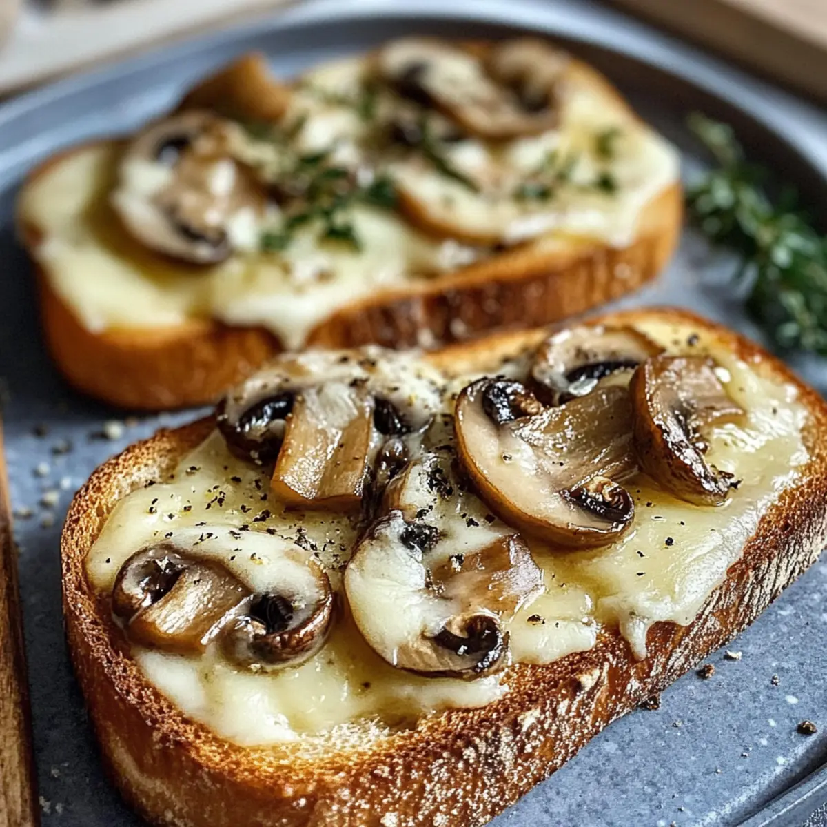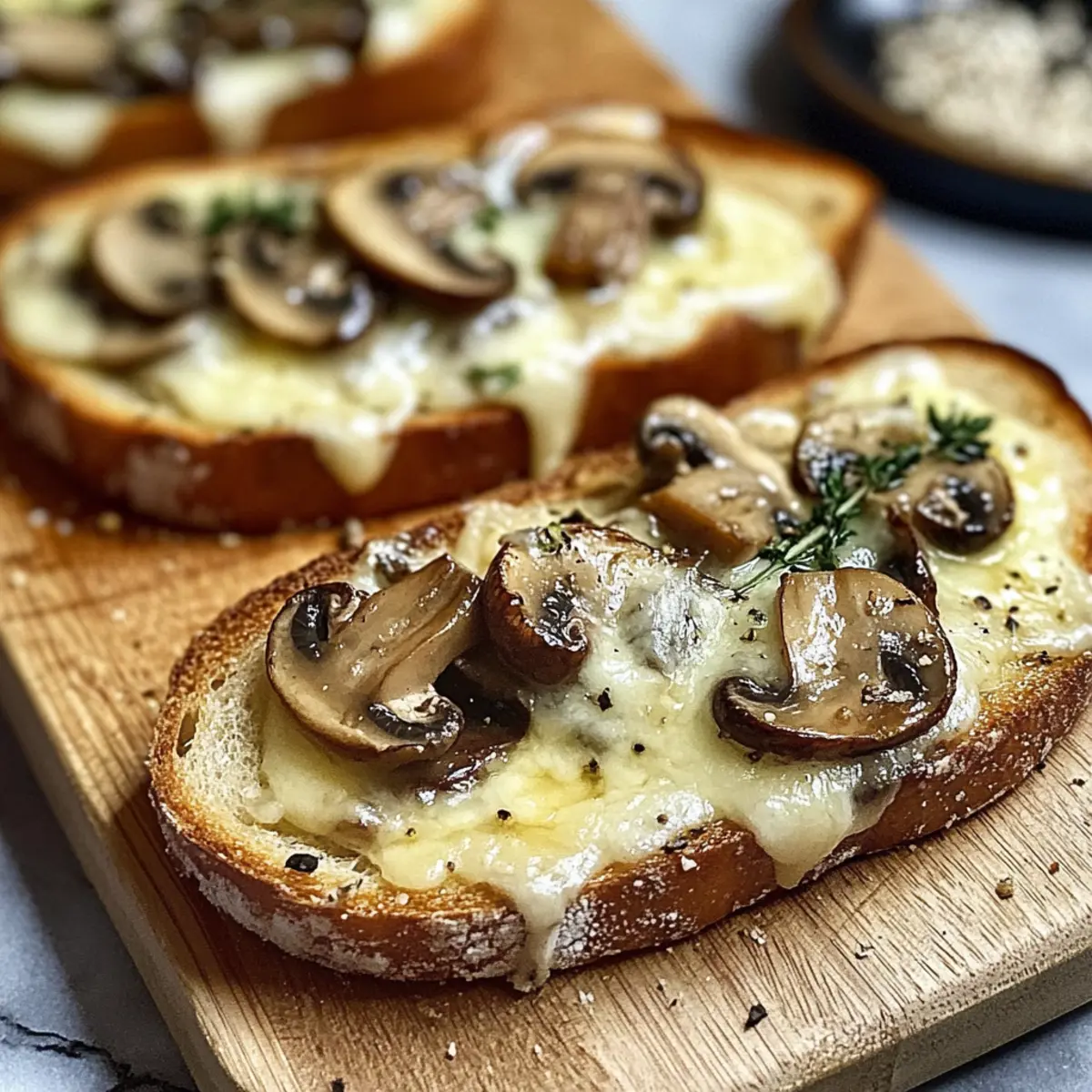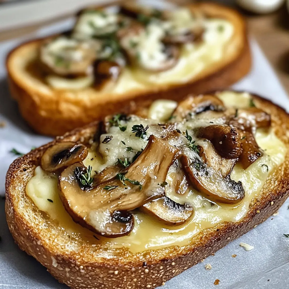 Ich erinnere mich an einen Abend, als der Duft gebratener Champignons und knusprigem Brot meine Küche erfüllte und sofort ein Gefühl von Gemütlichkeit und Zufriedenheit hervorrief. Diese knusprigen Käse-Champignon-Knoblauch-Toasts sind nicht nur lecker, sondern auch in weniger als 30 Minuten zubereitet – perfekt für alle, die nach einem schnellen und schmackhaften Snack suchen. Die Kombination aus aromatischen Champignons, würzigem Knoblauch und geschmolzenem Käse zaubert ein Gericht, das sowohl Anfängern als auch erfahrenen Köchen Freude bereitet. Probiert sie einfach aus und überrascht eure Gäste oder euch selbst mit dieser köstlichen vegetarischen Leckerei. Was haltet ihr davon, euren nächsten Filmabend mit diesen Toasterlebnissen aufzupeppen? Warum sind diese Toasts unwiderstehlich? Zauberhafte Mischung: Die Kombination von knusprigem Brot und zart geschmolzenem Käse sorgt für ein echtes Geschmackserlebnis. Diese Toast-Variante bringt die Aromen zusammen, die sich perfekt ergänzen. Einfach zuzubereiten: In weniger als 30 Minuten sind die Käse-Champignon-Toasts auf dem Tisch – ideal für unerwartete Gäste oder als schneller Snack! Vielseitige Anpassungen: Mit der Möglichkeit, die Zutaten zu variieren, könnt ihr immer wieder neue Geschmäcker entdecken. Ob mit veganem Käse oder anderen Pilzsorten, wie Shiitake, die Auswahl ist groß. Gemütlichkeit pur: Diese leckeren Snacks sind perfekt für einen entspannten Abend zuhause oder als Teil eines Buffets mit Freunden. Gesund und lecker: Als vegetarische Option sind sie nicht nur aromatisch, sondern auch ein günstiger Genuss. Eine ideale Ergänzung zu einem frischen Salat oder einer Auswahl an Dips, wie selbstgemachtem Basilikum-Pesto. Knusprige Käse-Champignon-Knoblauch-Toasts Zutaten Hier sind die Zutaten für eure köstlichen Knusprige Käse-Champignon-Knoblauch-Toasts: Für die Pilze • Champignons – Sie bieten eine tiefgründige Geschmacksnote; ihr könnt auch Shiitake oder Austernpilze verwenden für eine spannende Variation. Für die Mischung • Käse – Fügt Cremigkeit hinzu und verstärkt den Geschmack; versucht Emmental oder Cheddar für einen würzigen Kick, oder nutzt veganen Käse für eine milchfreie Variante. • Knoblauch – Steigert das Aroma; passt die Menge je nach persönlichem Geschmack an. Für den Toast • Brot – Dient als der knusprige Untergrund; wählt ein kräftiges Brot für den perfekten Crunch. Glutenfreies Brot ist eine großartige Option für Glutenempfindliche. Extras • Pflanzliche Sahnealternative – Sorgt für eine cremige Struktur; lasst sie weg, wenn ihr eine leichtere Version möchtet. Schritt-für-Schritt-Anleitung für Knusprige Käse-Champignon-Knoblauch-Toasts Step 1: Brot vorbereiten Schneidet die Scheiben des knusprigen Brotes in etwa 1,5 cm dicke Stücke. Legt sie auf ein Backblech und heizt den Ofen auf 200 °C vor. Das Brot sollte leicht geröstet sein, damit es die saftigen Beläge gut halten kann. Bereitet bereits jetzt den Tisch für die Zutaten vor, um die Zubereitung effizient zu gestalten. Step 2: Champignons sautieren Erhitzt eine Pfanne bei mittlerer Hitze und gebt 1-2 Esslöffel Öl hinzu. Fügt die in Scheiben geschnittenen Champignons zusammen mit 2-3 gehackten Knoblauchzehen hinzu, und bratet alles etwa 5-7 Minuten lang an. Rührt gelegentlich um, bis die Champignons goldbraun sind und die Flüssigkeit verdampft ist. Der aromatische Duft wird euch bereits bei der Zubereitung anmachen. Step 3: Toasts belegen Nehmt die sautierten Champignons vom Herd und verteilt sie gleichmäßig auf den vorbereiteten Brotscheiben. Streut großzügig geriebenen Käse darüber, um eine cremige Schicht zu schaffen. Achten Sie darauf, dass jeder Toast genug Belag hat, damit die knusprigen Käse-Champignon-Knoblauch-Toasts ein vollmundiges Aroma entfalten. Step 4: Backen oder Grillen Stellt das Backblech in den vorgeheizten Ofen und backt die Toasts für etwa 5-10 Minuten, bis der Käse geschmolzen und blubbernd ist. Wenn ihr eine Grillfunktion verwendet, haltet einen Blick darauf, um ein Anbrennen zu vermeiden. Der Toast sollte goldbraun und knusprig sein, bevor ihr zum Servieren übergeht. Step 5: Servieren Nehmt die knusprigen Käse-Champignon-Knoblauch-Toasts sofort aus dem Ofen und lasst sie kurz abkühlen. Serviert sie heiß, am besten neben einer frischen Beilage wie einem Salat oder einem Dip. Diese Snacks sind am besten, wenn sie frisch sind, sodass ihr euch gleich auf den ersten Biss freuen könnt! Knusprige Käse-Champignon-Knoblauch-Toasts Variationen Lasst eure Kreativität in der Küche fließen und passt dieses Rezept nach euren Wünschen an. Vegan: Tauscht den Käse gegen eine pflanzliche Alternative aus, um einen köstlichen, milchfreien Snack zu kreieren. Glutenfrei: Verwendet glutenfreies Brot für eine tolle Option, die alle genießen können. So bleiben auch glutenempfindliche Freunde am Tisch! Scharf: Fügt frische Chilischoten oder eine Prise Cayennepfeffer hinzu, um dem Gericht einen feurigen Kick zu geben. Die Hitze harmoniert wunderbar mit dem geschmolzenen Käse. Bunt: Experimentiert mit verschiedenen Gemüsesorten wie Paprika oder Zucchini, die ihr zusammen mit den Champignons anbraten könnt. Das sorgt nicht nur für Geschmack, sondern auch für Farbe! Kräuter-getränkt: Mit frischen Kräutern wie Thymian oder Rosmarin den Pilzen Aromen hinzufügen, die das Gericht verfeinern. Ein einfacher Dreh, der viel bringen kann. Nüsse: Getrocknete Walnüsse oder Pinienkerne darüber streuen für einen zusätzlichen Crunch und schönen nussigen Geschmack. Die Textur ist einmalig! Angebot an Dips: Serviert die Toasts mit einem selbstgemachten Basilikum-Pesto oder einer Creme aus Avocado. Das bringt eine neue Geschmacksebene in die Kombination. Süß: Für eine interessante Variante könnt ihr eine Schicht aus Honig oder Balsamico-Glasur hinzufügen. Diese süße Note balanciert die herzhafte Füllung perfekt aus. In jeder Variation wird der Ges