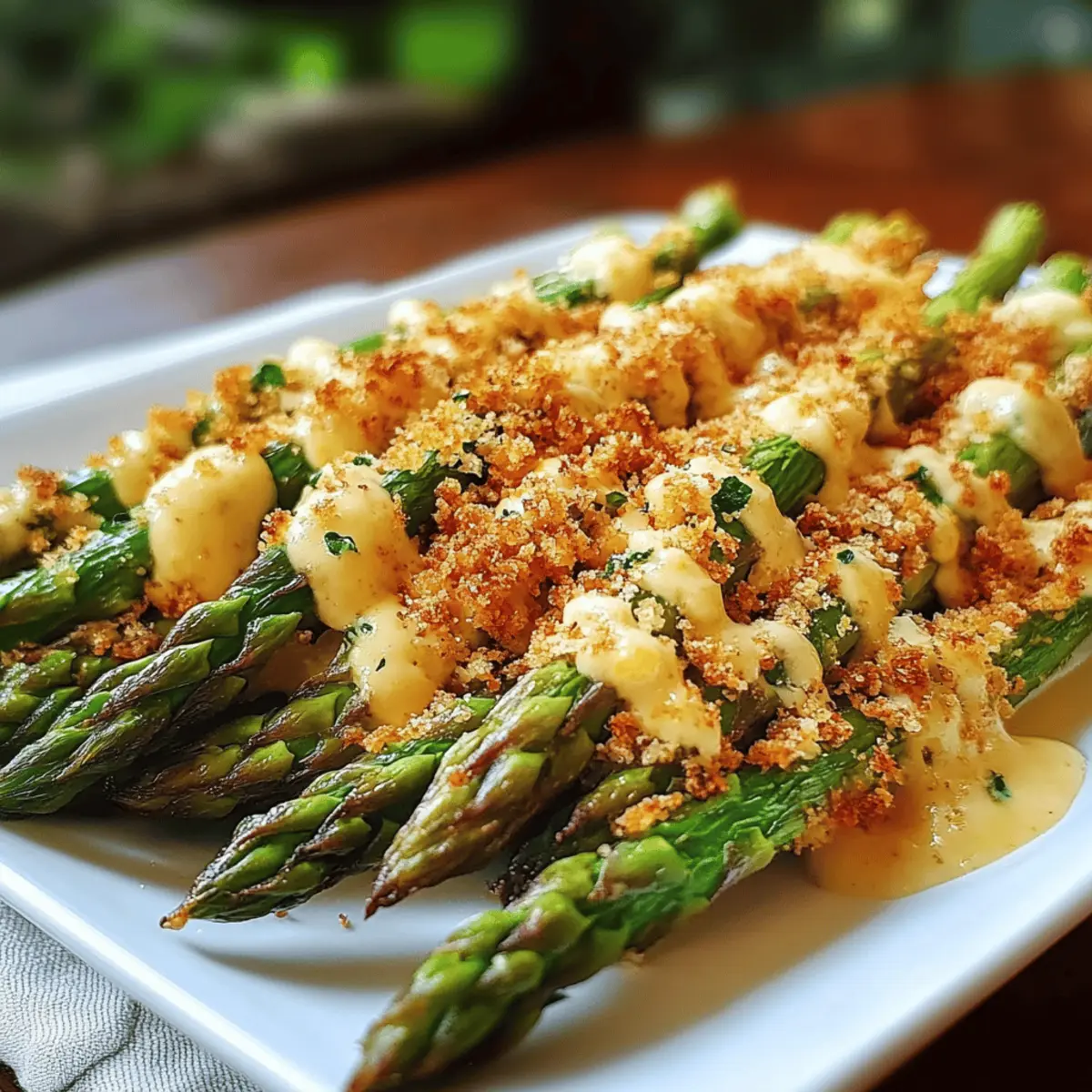 Wenn ich knusprigen Spargel Parmesan Panade zubereite, überkommt mich das Gefühl von heimlichem Genuss. Der frische, zarte Grünspan wird von einer goldbraunen Panade in den perfekten Crunch gehüllt – ein himmlisches Zusammenspiel von Texturen und Aromen! Diese einfache und schnelle Rezeptur ist ideal für alle, die eine schmackhafte, vegetarische Beilage oder einen leckeren Snack suchen, der auch beim nächsten Abendessen zum Star des Abends wird. Mit nur wenigen Zutaten zaubern wir nicht nur einen Gaumenschmaus, sondern auch ein Gericht, das mit seiner Vielseitigkeit überzeugt. Ob à la carte oder als Beilage, die köstlichen Spargelstücke sind eine wahre Freude. Bist du bereit, deine Küche in eine kleine Geschmackswelt zu verwandeln? Warum wirst du dieses Rezept lieben? Einfachheit: Die Zubereitung ist unkompliziert und benötigt nur grundlegende Kochfähigkeiten, sodass jeder in der Küche glänzen kann. Knuspriger Genuss: Die Kombination von frischem Spargel mit einer goldenen Panade sorgt für einen wunderbar knusprigen Biss, der garantiert deine Geschmacksknospen erfreut. Vielfältige Variationen: Du kannst das Rezept leicht anpassen, indem du verschiedene Käsesorten oder Gewürze hinzufügst, um neue Geschmackserlebnisse zu kreieren! Eher ein Snack: Diese Spargelstücke sind perfekt als Snack oder als Beilage und bringen Farbe und Geschmack auf jeden Tisch – sie passen hervorragend zu einem Dip wie Aioli oder Marinara. Schnell zubereitet: In weniger als 30 Minuten hast du ein köstliches Gericht gezaubert, ideal für hektische Wochentage! Nährstoffreich: Dieses Gericht ist nicht nur lecker, sondern auch gesund – voller Ballaststoffe, Vitamine und Eiweiß, die zu einer ausgewogenen Ernährung beitragen. Du möchtest mehr schmackhafte Rezepte entdecken? Schaue dir auch unsere schnellen vegetarischen Rezepte an! Knuspriger Spargel Parmesan Panade Zutaten • Für den Spargel Grüner Spargel – Frisch und knackig, kann auch durch Zucchini ersetzt werden. • Für die Panade Paniermehl (Panko/Semmelbrösel) – Sorgt für eine perfekte Knusprigkeit; Panko empfiehlt sich für eine leichtere Textur. Geriebener Parmesan – Verleiht einen reichhaltigen, herzhaften Geschmack; kann durch Grana Padano oder Hefeflocken für eine vegane Option ersetzt werden. Geriebener Pecorino Romano (optional) – Verstärkt die herzhafte Tiefe; kann weggelassen werden, falls nicht verfügbar. Knoblauchpulver – Bringt eine köstliche Knoblauchnote; frischer Knoblauch kann für einen intensiveren Geschmack verwendet werden. Getrockneter Oregano – Fügt würzige Kräuternoten hinzu; alternativ kann italienische Gewürzmischung oder Thymian verwendet werden. Chiliflocken (optional) – Sorgt für milde Schärfe; für einen milderen Geschmack weglassen. Salz und frisch gemahlener schwarzer Pfeffer – Unverzichtbar für die Würze; je nach Geschmack anpassen. • Für die Bindung Eier – Halten die Panade am Spargel; Flachs-Eier sind eine vegane Alternative. Mehl (Type 405 oder Dinkelmehl) – Hilft, die Panade haften zu lassen; glutenfreies Mehl kann für eine glutenfreie Version verwendet werden. • Zum Backen Olivenöl – Fügt Reichtum hinzu und sorgt für Knusprigkeit; alternativ kann Avocadoöl verwendet werden. Zitronenspalten – Ideale Garnitur, die Frische und Säure verleiht; zum Servieren daneben legen. Genieße diese vielseitige und köstliche Knuspriger Spargel Parmesan Panade! Schritt-für-Schritt-Anleitung für Knuspriger Spargel Parmesan Panade Step 1: Spargel vorbereiten Wasche den grünen Spargel gründlich unter fließendem Wasser und schneide die holzigen Enden ab. Trockne die Stangen gründlich mit einem Küchentuch, damit die Panade gut haftet. Dieser Schritt sorgt dafür, dass dein Spargel frisch und knackig bleibt, bereit für die köstliche Knuspriger Spargel Parmesan Panade. Step 2: Panade zubereiten Vermenge in einer großen Schüssel das Paniermehl, den geriebenen Parmesan, eventuell geriebenen Pecorino, Knoblauchpulver, getrockneten Oregano, Chiliflocken sowie Salz und Pfeffer. Mische die Zutaten gut, bis sie gleichmäßig verteilt sind, sodass deine Panade einen herzhaften und würzigen Geschmack erhält, der perfekt zum Spargel passt. Step 3: Eier vorbereiten Schlage in einer separaten Schüssel die Eier auf und püriere sie mit einer Gabel, bis sie gut vermischt sind. Diese Mischung wird helfen, die Panade auf dem Spargel festzuhalten, sodass du beim Backen die perfekte Crunche entsteht. Stelle sicher, dass die Eier gleichmäßig geschlagen sind. Step 4: Bierte-Station einrichten Lege die vorbereiteten Zutaten in folgender Reihenfolge auf einen großen Arbeitstisch: eine Schüssel mit Mehl, gefolgt von der Schüssel mit den aufgeschlagenen Eiern und schließlich die Schüssel mit der Panade. Diese Organisation sorgt dafür, dass du schnell und effizient arbeiten kannst, während du die Knuspriger Spargel Parmesan Panade zubereitest. Step 5: Spargel panieren Nehme jeweils ein Stück Spargel, wälze es zuerst im Mehl, tauche es dann in die Eier und für eine gleichmäßige Panade in die Mischung aus Paniermehl und Käse. Drücke die Panade sanft an, damit sie gut haftet. Dieser Schritt ist entscheidend für die Knusprigkeit und den Geschmack deiner letzten Kreation. Step 6: Ofen vorheizen Heize deinen Ofen auf 200°C vor. Während der Ofen die Temperatur erreicht, hast du genug Zeit, um die Backblech vorzubereiten und den Spargel einzupacken. Dadurch wird sichergestellt, dass deine Knuspriger Spargel Parmesan Panade gleichmäßig und perfekt gebacken wird. Step 7: Backblech vorbereiten Lege ein Backblech mit Backpapier aus, um ein Anhaften des Spargels zu verhindern. Diese Vorbereitung hilft dir, stressfrei zu arbeiten und die köstlichen Spargelstücke später leicht zu entnehmen, ohne dass etwas daran kleben bleibt. Step 8: Spargel backen Lege die panierten Spargelstücke gleichmäßig auf das Backblech und träufle sie mit etwas Olivenöl. Backe sie für 