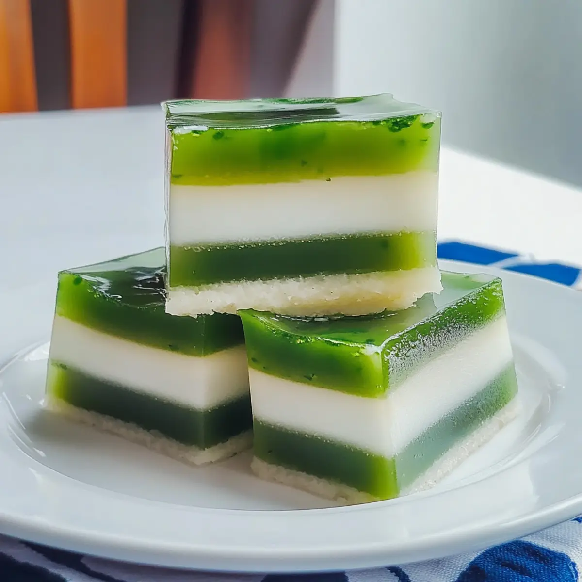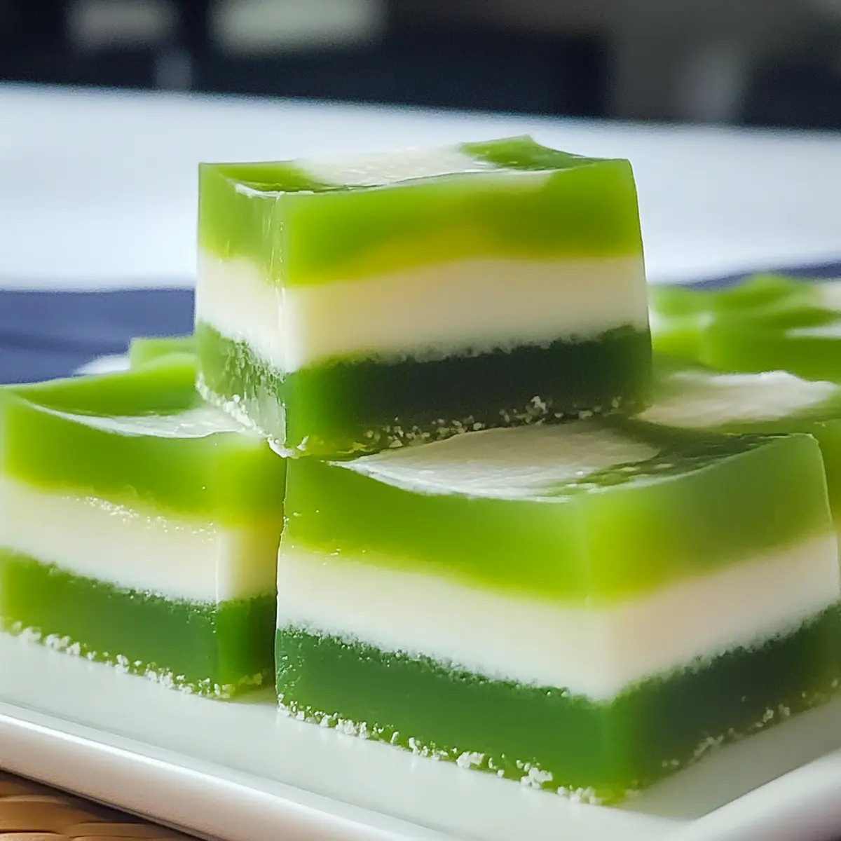 Ein köstliches Kokosnuss Pandan Gelee Dessert mit schichtenartigen Texturen, perfekt für jeden Anlass.