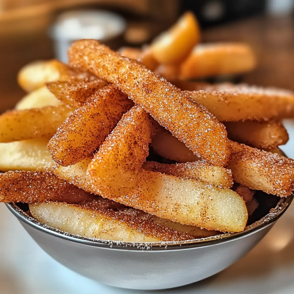 Als ich das erste Mal diese krossen Heißluftfritteuse Apfel-Pommes zubereitet habe, sprangen die Aromen einfach in die Luft und umarmten mich mit jedem Bissen. Wenn die herbstlichen Tage näher rücken, sind diese knusprigen Apfel-Pommes der perfekte Snack, um uns mit einem Hauch von Wärme zu verwöhnen. In nur 30 Minuten sind sie nicht nur blitzschnell zubereitet, sondern auch eine gesunde Alternative zu herkömmlichen Frittiermethoden. Die ganze Familie wird diese süßen, mit Zimt-Zucker bestäubten Stücke lieben, die sich zu einem gemütlichen Abendessen oder einem unkomplizierten Snack für zwischendurch eignen. Wie wäre es, gleich die Zubereitung auszuprobieren und die Küche mit dem Duft frisch gebackener Apfelpommes zu füllen? Warum sind Apfel-Pommes so unwiderstehlich? Schnell und einfach: In nur 30 Minuten sind diese Apfel-Pommes fertig, perfekt für stressige Tage. Gesunde Alternative: Genießen Sie den köstlichen Geschmack ohne schlechtes Gewissen – sie sind eine gesündere Wahl als herkömmliche Frittiermethoden. Familienfreundlich: Diese krossen Pommes sind bei Groß und Klein beliebt und laden zum gemeinsamen Snacken ein. Vielseitig: Experimentieren Sie mit unterschiedlichen Apfelsorten oder erweitern Sie die Dips für noch mehr Geschmack! Probieren Sie auch einen fruchtigen Dip für Abwechslung. Köstlicher Zimtgeschmack: Der warm-harmonische Zimt-Zucker macht jede Portion unwiderstehlich und sorgt für ein heimeliges Gefühl. Krosse Heißluftfritteuse Apfel-Pommes Zutaten • Diese Zutaten werden es dir ermöglichen, ein köstliches Gericht zuzubereiten, das die ganze Familie begeistern wird. Für die Pommes Granny Smith Äpfel – Sie bringen die perfekte Säure und Textur; du kannst sie auch durch Honeycrisp oder Fuji ersetzen, wenn du etwas Süßeres möchtest. Allzweckmehl – Sorgt für die knusprige Beschichtung; für eine glutenfreie Option verwende eine 1:1 glutenfreie Mehlmischung. Apfelkuchen-Gewürz – Gibt den Pommes eine warme Note; alternativ kannst du Zimt, Muskatnuss und Ingwer mischen. Große Eier – Binden die Beschichtung; ersetze mit einer veganen Option (1 EL Chiasamen + 2,5 EL Wasser) für eine pflanzliche Version. Für den Zimt-Zucker Zimt-Zucker – Für die süße Note; mische Zimt mit Zucker im Verhältnis 1:4 für den besten Geschmack. Für den Dipp Kochspray – Verhindert das Ankleben und sorgt für eine knusprige Textur; verwende Oliven- oder Avocadoöl-Spray. Puderzucker – Süßt die Dipsauce; passe die Menge nach Belieben an. Aktiviere eine kalorienärmere Option, indem du einen Zuckersatz wie Erythrit verwendest. Vanilleextrakt – Verleiht der Dipsauce zusätzlichen Geschmack; optional, wenn du es einfacher halten möchtest. Vollmilch – Verdünnt den Guss; kannst du auch durch pflanzliche Milch ersetzen. Schritt-für-Schritt-Anleitung für Krosse Heißluftfritteuse Apfel-Pommes Step 1: Äpfel vorbereiten Schäle die Granny Smith Äpfel und schneide sie in gleichmäßige Streifen von etwa 1 cm Breite. Achte darauf, dass die Stücke gleichmäßig sind, damit sie gleichmäßig garen. Lege die geschnittenen Apfelstreifen auf einen Teller und stelle sie beiseite, während du mit dem nächsten Schritt fortfährst. Step 2: Beschichtung mischen In einer Schüssel mischst du das Allzweckmehl mit dem Apfelkuchen-Gewürz gründlich. In einer separaten Schüssel schlägst du die großen Eier auf und vermischt sie gut. Diese zwei Mischungen sind wichtig für die knusprige Beschichtung der Krossen Heißluftfritteuse Apfel-Pommes, also achte darauf, dass sie gut vorbereitet sind. Step 3: Äpfel panieren Nehme nun die Apfelstreifen und tauche sie zuerst in die Mehlmischung, dann in die geschlagenen Eier und anschließend zurück in die Mehlmischung. Diese doppelte Beschichtung wird dafür sorgen, dass die Pommes besonders kross werden. Lege die panierten Apfelstreifen auf einen separaten Teller, während du die Heißluftfritteuse vorheizt. Step 4: Heißluftfritteuse vorheizen Heize die Heißluftfritteuse auf 163°C (325°F) vor. Während die Heißluftfritteuse sich aufwärmt, sprühe den Korb gleichmäßig mit Kochspray ein, um ein Ankleben der Apfel-Pommes zu verhindern. Dies trägt auch dazu bei, dass sie schön knusprig werden. Step 5: Äpfel frittieren Lege die panierten Apfelstreifen vorsichtig in den Korb der Heißluftfritteuse, wobei du darauf achtest, dass sie sich nicht überlappen. Frittiere die Apfel-Pommes für etwa 5 Minuten. Sie sollten weich sein und goldbraun werden, wenn sie fertig sind. Step 6: Wenden und erneut frittieren Nach den ersten 5 Minuten nimmst du den Korb heraus und drehst die Apfelstreifen vorsichtig um. Sprühe sie erneut mit Kochspray ein und stelle den Korb zurück in die Heißluftfritteuse. Frittiere die Pommes für weitere 5 Minuten oder bis sie knusprig und goldbraun sind. Step 7: Zimt-Zucker hinzufügen Sobald die Krosse Heißluftfritteuse Apfel-Pommes fertig sind, nimmst du den Korb heraus und gibst sofort den Zimt-Zucker darüber. Dies wird den warmen, süßen Geschmack verstärken und sicherstellen, dass jede Pommes köstlich aromatisch ist. Step 8: Dipsauce zubereiten In einer kleinen Schüssel mischst du den Puderzucker mit dem Vanilleextrakt und der Vollmilch, bis eine glatte Konsistenz erreicht ist. Diese Dipsauce ergänzt die Apfel-Pommes perfekt und sorgt für ein rundum köstliches Geschmackserlebnis. Lagerungstipps für Krosse Heißluftfritteuse Apfel-Pommes Kühlschrank: Bewahre übrig gebliebene Apfel-Pommes in einem luftdichten Behälter im Kühlschrank auf, um die Frische für bis zu 2 Tage zu bewahren. Gefrierschrank: Für längere Lagerung kannst du die Apfel-Pommes bis zu 2 Monate im Gefrierschrank aufbewahren. Achte darauf, sie gut einzupacken, um Gefrierbrand zu vermeiden. Wiedererhitzen: Um die Knusprigkeit wiederherzustellen, erhitze die gefrorenen oder gekühlten Krosse Heißluftfritteuse Apfel-Pommes in der Heißluftfritteuse bei 180°C (350°F) für etwa 5-7 Minuten. Allgemeine