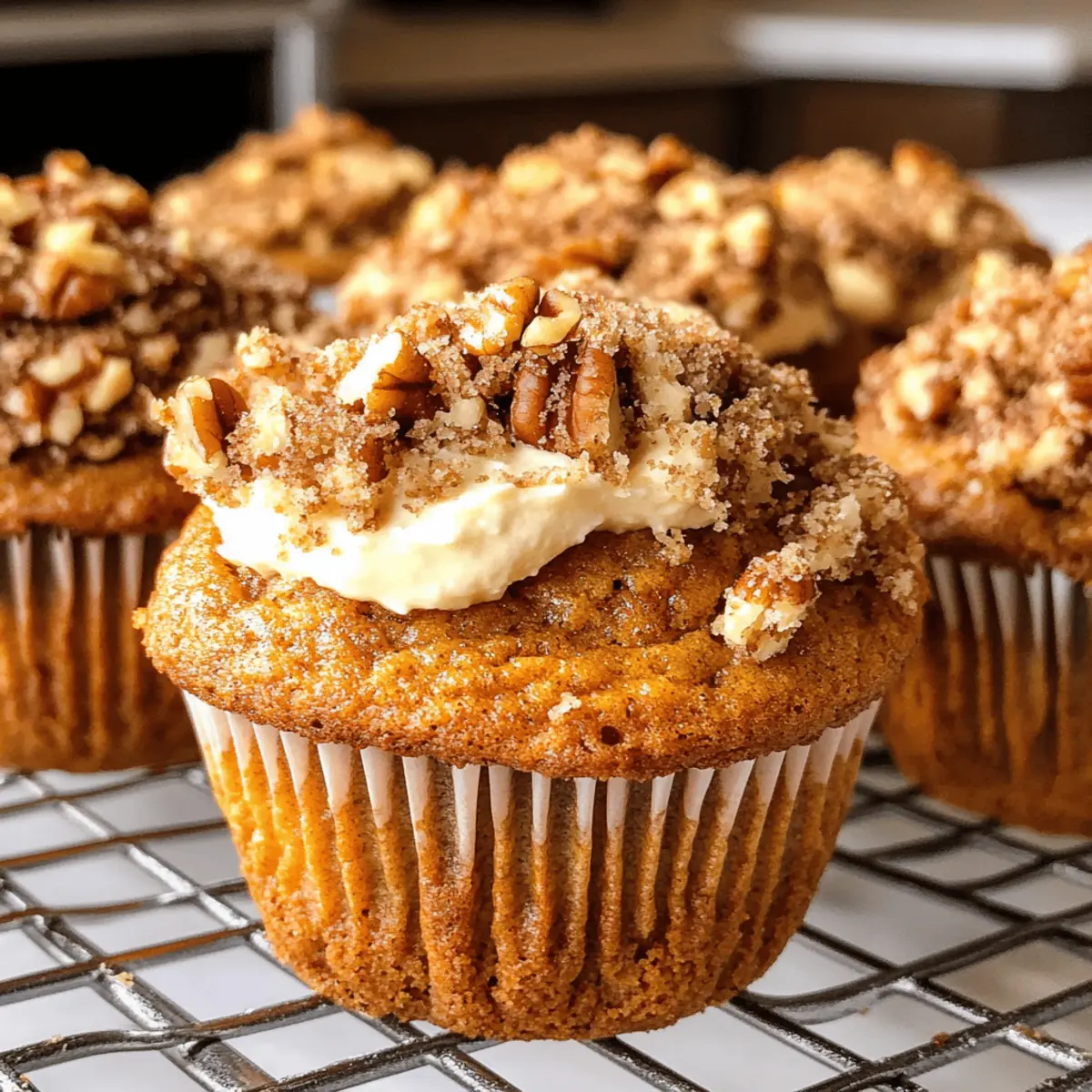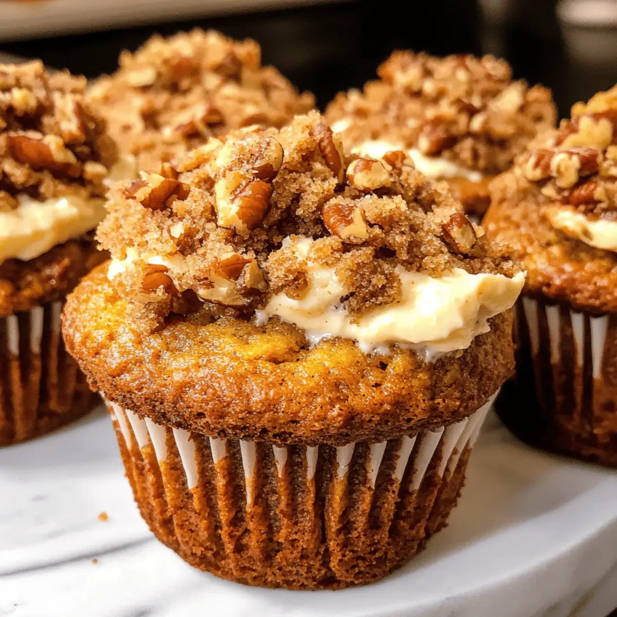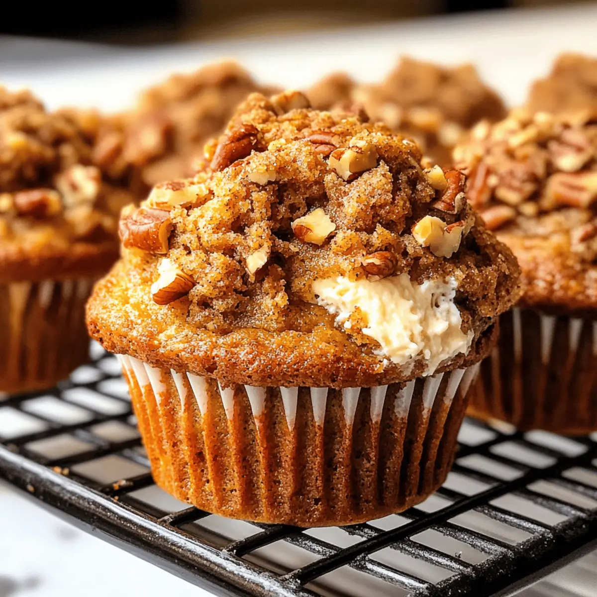 Eines Morgens, als die Blätter in warmen Herbsttönen leuchteten, hatte ich das Verlangen nach etwas, das nicht nur den Gaumen erfreut, sondern auch die Seele wärmt. So entstanden meine Kürbis-Frischkäse-Muffins, die eine perfekte Kombination aus saftigem Kürbis und einer himmlischen Frischkäsefüllung bieten. Diese Muffins sind nicht nur einfach zuzubereiten, sondern erfüllen auch das Bedürfnis nach einer köstlichen, chai-würzigen Leckerei, die man sogar im Voraus zubereiten kann! Mit ihrem knusprigen Pekannüsse-Topping und dem zarten, luftigen Teig sind sie ideal für ein gemütliches Frühstück oder als süßer Snack zwischendurch. Bereit, euch in die Welt dieser unwiderstehlichen Muffins entführen zu lassen? Warum sind diese Muffins ein Muss? Einzigartig: Diese Kürbis-Frischkäse-Muffins sind eine wahre Geschmacksexplosion, die den Herbst in jeden Bissen bringen. Einfach zuzubereiten: Der Rezeptablauf ist unkompliziert, selbst für weniger erfahrene Bäcker. Saftige Textur: Der feuchte Kürbis und die cremige Füllung sorgen für ein unvergessliches Geschmackserlebnis. Vielseitig: Sie können leicht glutenfrei zubereitet oder mit weiteren Zutaten wie Schokoladenstückchen variiert werden. Für jeden Anlass: Perfekt als herzhaftes Frühstück oder süßer Snack – diese Muffins begeistern garantiert Familie und Freunde. Kürbis-Frischkäse-Muffins Zutaten Hinweis: Diese Kürbis-Frischkäse-Muffins sind nicht nur köstlich, sondern auch vielseitig in ihren Variationen! Für den Muffinteig • Kürbispüree – Sorgt für Feuchtigkeit und Geschmack; verwende reines Kürbispüree und nicht die fertige Kürbistorte. • Mehl – Bildet die Struktur; glutenfreies 1:1 Backmehl ist eine geeignete Alternative. • Zucker – Gibt Süße, ohne den Kürbisgeschmack zu überdecken. • Backpulver und Natron – Lassen die Muffins schön aufgehen und sorgen für eine luftige Textur. • Pflanzenöl – Steigert die Feuchtigkeit für einen zarten Teig; kann teilweise durch ungesüßtes Apfelmus ersetzt werden. • Eier – Drei große Eier sorgen für Reichhaltigkeit und Bindung. • Gewürze (Zimt, Muskatnuss, Nelken, Ingwer) – Bringen die warmen Aromen der Herbstsaison zur Geltung; Salz verstärkt den Gesamtschmack. Für die Frischkäsefüllung • Vollfette Frischkäse – Sorgt für eine cremige Füllung; sollte Zimmertemperatur haben für die richtige Konsistenz. • Puderzucker – Süßt die Füllung, ohne eine körnige Textur zu erzeugen. • Vanilleextrakt – Natürlicher Aromafläscher, der dem Füllungsgeschmack Tiefe verleiht. Für das Streuseltopping • Pekannüsse – Fügen Knusprigkeit und nussigen Geschmack hinzu; verwende ungesalzene Hälften. • Mehl und Zucker (brauner und weißer Zucker) – Schaffen eine krümelige Textur, wobei brauner Zucker Feuchtigkeit und Geschmack vertieft. • Butter – Sollte kalt sein, bevor sie vermischt wird, um eine krümelige Konsistenz zu bewahren. Schritt-für-Schritt-Anleitung für Kürbis-Frischkäse-Muffins Schritt 1: Frischkäsefüllung zubereiten In einer großen Schüssel den Zimmertemperatur-Frischkäse, Puderzucker und Vanilleextrakt mit einem Schneebesen glatt rühren. Sorge dafür, dass keine Klumpen entstehen. Stelle die Füllung dann in den Gefrierschrank, während du dich um die anderen Zutaten kümmerst, um sie ausreichend fest zu machen. Schritt 2: Streuseltopping vorbereiten Gib die Pekannüsse, Mehl, weißen und braunen Zucker sowie Zimt in eine Küchenmaschine und püriere die Mischung, bis die Nüsse grob gehackt sind. Füge dann kalte Butterstückchen hinzu und pulsieren, bis kleine Krümel entstehen. Stelle das Streuseltopping für etwa 30 Minuten in den Kühlschrank, um die Textur beim Backen zu verbessern. Schritt 3: Feuchte Zutaten vermischen In einer großen Schüssel die Eier, Pflanzenöl, Zucker und Kürbispüree mit einem Schneebesen gut verrühren, bis die Masse homogen ist. Achte darauf, dass die Mischung gutem Aussehen hat und gleichmäßig in der Farbe ist, was etwa 2-3 Minuten in Anspruch nimmt. Schritt 4: Trockene Zutaten mischen In einer separaten Schüssel das Mehl, Backpulver, Natron und alle Gewürze gut vermengen. Diese trockenen Zutaten gleichmäßig miteinander vermischen, sodass alles gut verteilt ist, bevor du sie zur feuchten Mischung hinzufügst. Schritt 5: Zutaten kombinieren Gib die trockenen Zutaten vorsichtig zu den feuchten Zutaten und falte sie mit einem Gummispatel, bis sie gerade so kombiniert sind. Achte darauf, nicht zu übermixen, damit die Kürbis-Frischkäse-Muffins schön fluffig bleiben. Schritt 6: Muffins zusammenstellen Fülle die Muffinförmchen bis zur Hälfte mit dem Teig. Löffle dann einen Esslöffel der vorbereiteten Frischkäsefüllung auf den Teig und bedecke sie mit dem restlichen Muffinteig. Streue schließlich das gekühlte Streuseltopping gleichmäßig über die Muffins. Schritt 7: Backen Heize den Ofen auf 175°C vor und backe die Muffins für 20-22 Minuten oder bis ein Zahnstocher sauber herauskommt. Lasse die Muffins nach dem Backen etwa 5 Minuten in der Form abkühlen, bevor du sie auf ein Kuchengitter transferierst, damit sie komplett auskühlen können. Experten-Tipps für Kürbis-Frischkäse-Muffins Raumtemperatur Frischkäse: Stelle sicher, dass der Frischkäse ausreichend weich ist, um eine cremige Füllung zu erhalten und eine klumpige Textur zu vermeiden. Kühlen des Toppings: Halte das Streuseltopping vor dem Backen kalt, um die knusprige Textur bei der Zubereitung der Kürbis-Frischkäse-Muffins zu verbessern. Nicht übermixen: Um die Fluffigkeit der Muffins zu bewahren, mische die Zutaten nur so lange, bis sie gerade so kombiniert sind. Backzeit anpassen: Achte beim Überprüfen der Garzeit darauf, dass die Füllung nicht zu kühl ist; überbacke die Muffins nicht, um Trockenheit zu vermeiden. Variationen ausprobieren: Fühle dich frei, mit verschiedenen Aromen wie Schokoladenstückchen oder getrockneten Cranberries zu experimentieren, u