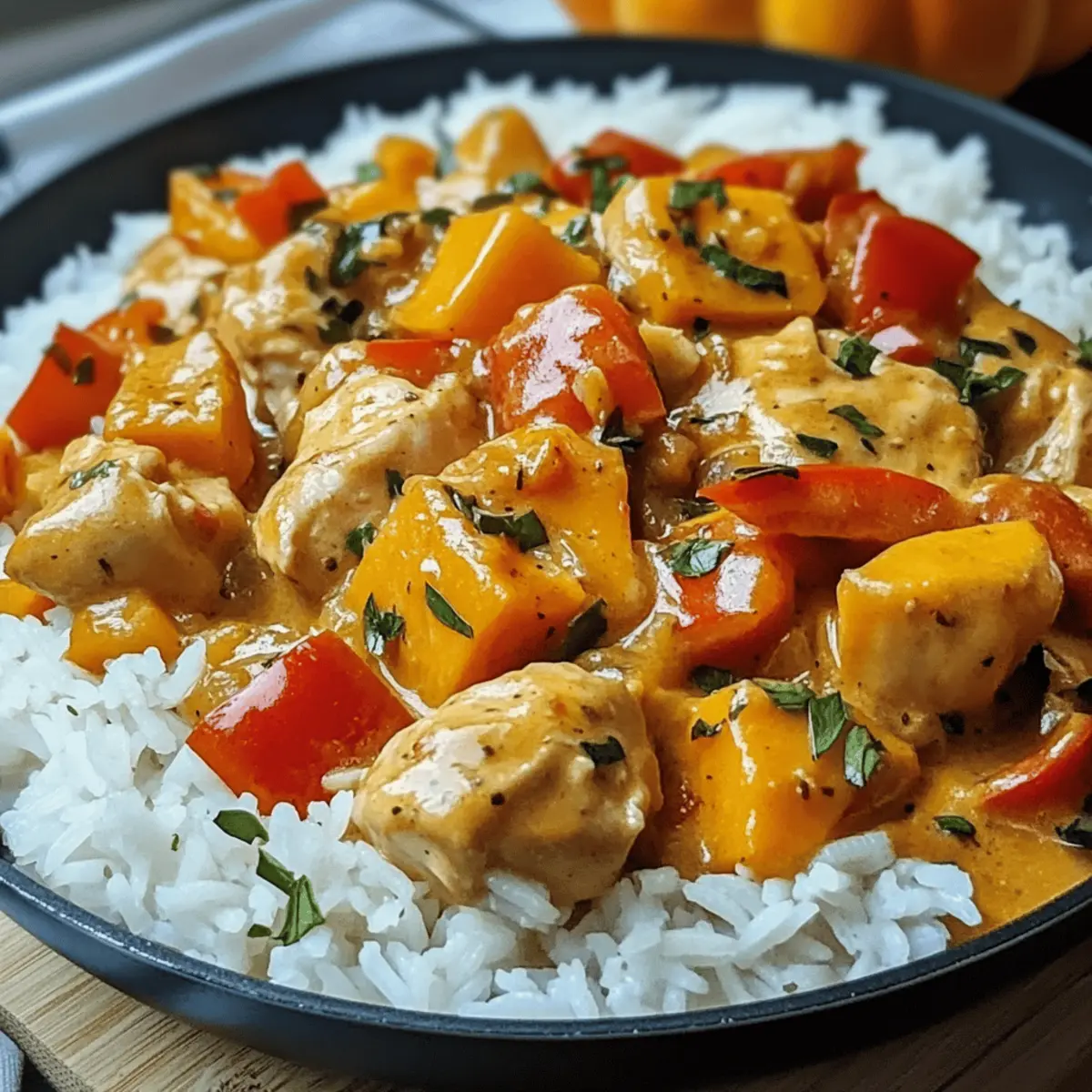 Ein Fest für die Sinne: Der cremige, dickflüssige Sauce umhüllt zartes Hähnchen und frische Gemüse, was ein wahres Geschmackserlebnis bietet. Lass die Gerichte von anderen Blogbesitzern, wie der Kürbis Hähnchen Pfanne, nicht entgehen, um noch mehr Inspiration zu finden!