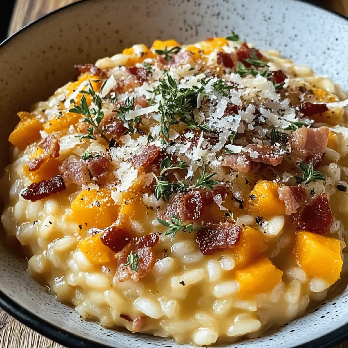 Die blendenden Farben der Herbstblätter ziehen mich jedes Jahr aufs Neue an und erinnern mich an ein besonders gemütliches Gericht: Kürbisrisotto mit Speck und Parmesan. Diese herzhafte Speise vereint die süße Note des Hokkaido-Kürbisses mit dem herzhaften Crunch des knusprigen Specks und der cremigen Textur des Arborio-Reis. Perfekt für entspannte Abendessen mit der Familie oder Freunden, ist dieses Rezept nicht nur ein Fest der saisonalen Aromen, sondern auch ein wahrer Seelenwärmer. Mit einfachen Zutaten und einer unkomplizierten Zubereitung ist es die ideale Lösung für alle, die sich nach einem komfortablen Essen sehnen. Neugierig, wie man mit dieser Kombination von köstlichen Aromen echte Herbststimmung auf den Tisch bringt? Lassen Sie uns gemeinsam loslegen! Warum lieben Sie dieses Rezept? Einfachheit: Die Zubereitung ist unkompliziert, perfekt auch für Kochanfänger, die sich an einem herzhaften Gericht ausprobieren möchten. Reiche Aromen: Die Kombination aus süßem Kürbis und würzigem Speck sorgt für ein Geschmackserlebnis, das die Sinne verzaubert. Saisonale Frische: Dieses Gericht bringt die Aromen des Herbstes direkt auf Ihren Tisch und macht es ideal für jede herbstliche Zusammenkunft. Vielseitigkeit: Haben Sie Lust auf Gemüse? Fügen Sie einfach sautierte Pilze oder Spinat hinzu! Oder experimentieren Sie mit einer anderen Proteinquelle wie Tempeh. Käse-Liebhaber: Der Parmesan verleiht dem Risotto eine cremige Note und ein umami-reiches Finish, das zum Schlemmen einlädt. Herzlicher Komfort: Mit jedem Bissen fühlen Sie sich umarmt, perfekt für einen kalten Herbstabend oder ein gemütliches Beisammensein mit Freunden! Kürbisrisotto mit Speck und Parmesan Zutaten Hinweis: Diese Zutaten verleihen Ihrem Kürbisrisotto mit Speck und Parmesan eine perfekte Kombination aus Geschmack und Textur. Für den Risotto • Arborio Reis – sorgt für die ideale cremige Konsistenz und das besondere Mundgefühl. • Hokkaido Kürbis – fügt süße Herbstnoten hinzu; kann durch Butternut-Kürbis ersetzt werden. • Speck – bringt einen herzhaften Crunch; für eine vegane Variante eignen sich geräucherte Pilze oder Tempeh. • Zwiebel – die Basisnote, die den Risotto bereichert; kann durch Schalotten für einen milderen Geschmack ersetzt werden. • Knoblauch – verstärkt die Geschmacksintensität; optional, wenn Sie einen weniger intensiven Geschmack bevorzugen. • Gemüsebrühe – die Flüssigkeit zum Garen des Reises; Hühnerbrühe kann ebenfalls verwendet werden. • Weiße Wein (optional) – verleiht dem Gericht eine angenehme Säure; kann weggelassen werden, wenn kein Alkohol gewünscht ist. • Parmesan Käse – sorgt für Cremigkeit und einen umami-reichen Geschmack; verwenden Sie Hefeflocken für eine milchfreie Option. • Butter – fügt reiche Geschmeidigkeit hinzu; kann durch Olivenöl für eine milchfreie Variante ersetzt werden. • Olivenöl – ideal zum Anbraten; kann durch jedes neutrale Öl ersetzt werden. • Salz und Pfeffer – für die geschmackliche Abstimmung; nach Belieben anpassen. • Schnittlauch oder Petersilie – für die Garnitur; bringt Frische und Farbe ins Gericht. Schritt-für-Schritt-Anleitung für Kürbisrisotto mit Speck und Parmesan Step 1: Brühe erhitzen Bringen Sie einen großen Topf mit Gemüsebrühe zum Simmern und halten Sie ihn bei mittlerer Hitze warm. Diese vorbereitete Brühe ist entscheidend für die Zubereitung des Kürbisrisottos mit Speck und Parmesan und sorgt dafür, dass der Risotto gleichmäßig gegart wird. Step 2: Speck anbraten Erhitzen Sie in einer großen Pfanne einen Esslöffel Olivenöl bei mittlerer Hitze. Fügen Sie den gewürfelten Speck hinzu und braten Sie ihn etwa 5-7 Minuten lang an, bis er knusprig ist. Nehmen Sie den Speck aus der Pfanne und lassen Sie ihn auf einem Küchenpapier abtropfen, um überschüssiges Fett zu entfernen. Step 3: Zwiebeln und Knoblauch anschwitzen In der gleichen Pfanne, in der Sie den Speck zubereitet haben, fügen Sie bei Bedarf einen weiteren Esslöffel Olivenöl hinzu. Schwitzen Sie die fein gewürfelte Zwiebel und den gehackten Knoblauch 3-4 Minuten lang an, bis sie weich und leicht durchsichtig sind. Diese Aromabasis ist der Schlüssel für den reichen Geschmack Ihres Risottos. Step 4: Kürbis hinzufügen Fügen Sie die gewürfelten Hokkaido-Kürbisstücke in die Pfanne und braten Sie sie etwa 5 Minuten lang an, bis sie weich sind. Der Kürbis sollte leicht karamellisieren, um die süßen Herbstnoten beizutragen, die Sie im Kürbisrisotto mit Speck und Parmesan lieben werden. Step 5: Reis toasten Geben Sie nun den Arborio Reis in die Pfanne und rösten Sie ihn für etwa 2 Minuten unter ständigem Rühren. Der Reis sollte glasig werden und einen nussigen Duft verströmen. Dies hilft, die cremige Textur des Risottos zu entwickeln. Step 6: Mit Wein ablöschen Gießen Sie den optionalen weißen Wein in die Pfanne und rühren Sie um, bis der Wein fast vollständig verdampft ist, etwa 1-2 Minuten. Dies fügt Tiefe und Komplexität hinzu, die Ihr Kürbisrisotto noch köstlicher machen. Step 7: Brühe schrittweise hinzufügen Legen Sie eine Kelle warme Brühe in die Pfanne und rühren Sie ständig, während der Reis die Flüssigkeit aufnimmt. Wiederholen Sie diesen Schritt alle paar Minuten und fügen Sie nach und nach mehr Brühe hinzu. Dies dauert insgesamt etwa 18-20 Minuten, bis der Reis al dente und cremig ist. Step 8: Käse und Gewürze unterrühren Sobald der Reis perfekt gegart ist, mischen Sie den geriebenen Parmesan und die Butter unter, bis alles gut verbunden ist. Schmecken Sie das Kürbisrisotto mit Speck und Parmesan mit Salz und Pfeffer ab, um das Geschmackserlebnis zu vollenden. Step 9: Speck einrühren Fügen Sie den zuvor knusprig gebratenen Speck wieder in die Pfanne hinzu und rühren Sie vorsichtig um. Dies gibt dem Risotto den herzhaften Crunch und die salzige Note, die es so besonders macht. Step 10: Garnieren und servieren Servieren Sie da