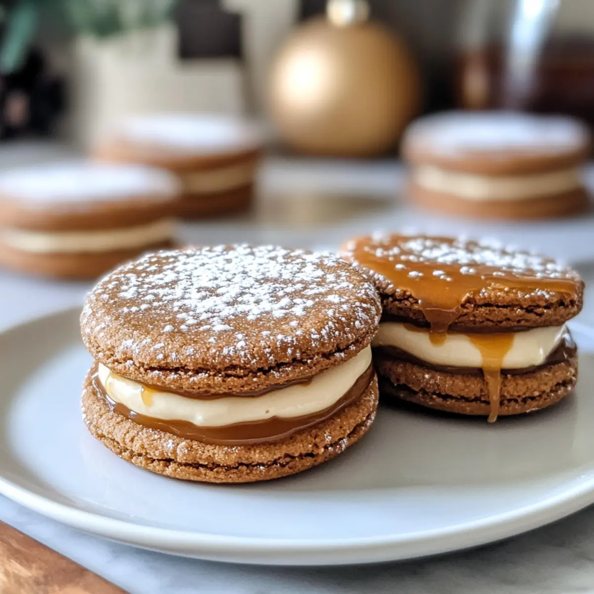 Lebkuchenkekse mit Vanille-Likörcreme und Salzkaramell