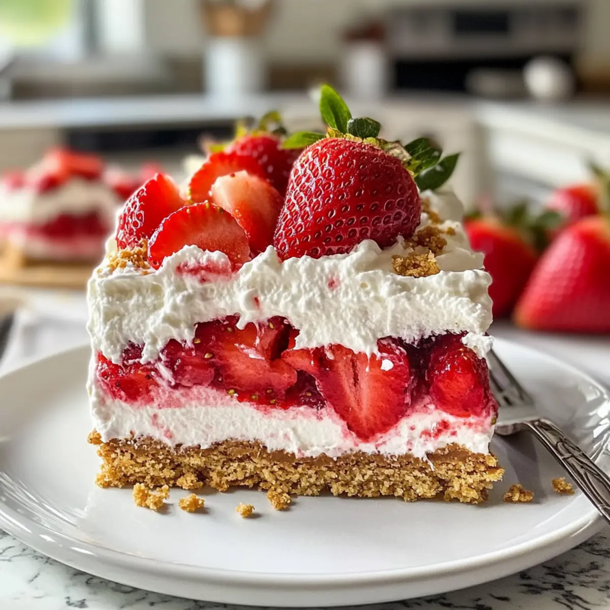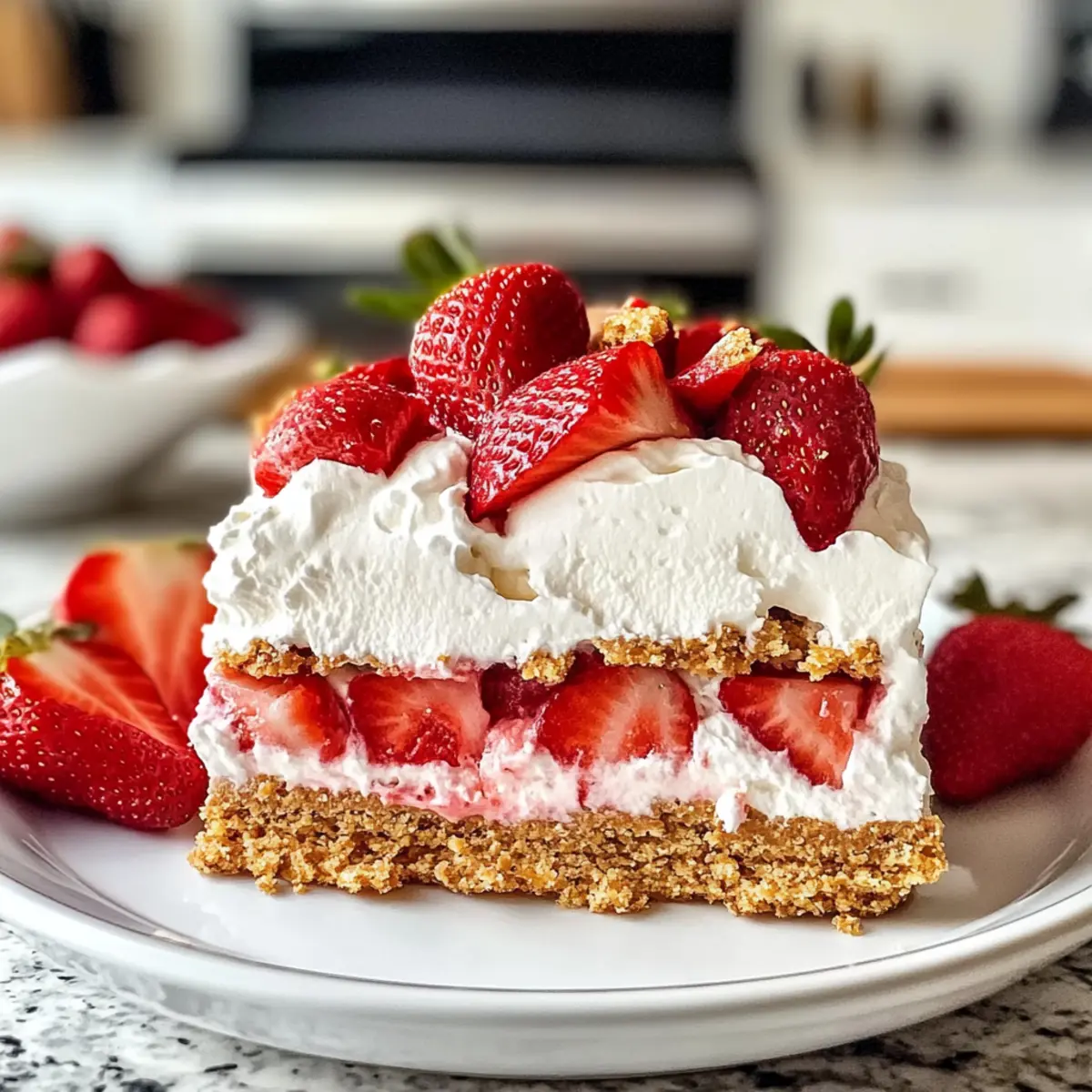 Es gibt nichts Erfrischenderes als die Aromen eines warmen Sommertages, und mit meinem leckeren No-Bake Erdbeeren & Sahne Eiskasten Kuchen Rezept holt ihr diese Freude direkt in eure Küche! Dieses Rezept vereint zarte Schichten aus luftiger, geschlagener Kokoscreme mit süßen, saftigen Erdbeeren und knusprigen Graham-Crackern – eine unwiderstehliche Kombination, die nicht nur einfach zuzubereiten ist, sondern auch einen bleibenden Eindruck bei euren Freunden und der Familie hinterlässt. Ideal für gesellige Zusammenkünfte oder als leichter Abschluss eines Festmahls, es ist der perfekte Schmaus, ohne dass der Ofen eingeschaltet werden muss. Wer kann schon einer so köstlichen, unkomplizierten Leckerei widerstehen? Lasst uns gemeinsam in die Welt dieses erfrischenden Desserts eintauchen! Warum wirst du dieses Rezept lieben? Einfachheit: Die Zubereitung ist kinderleicht – jeder kann diesen köstlichen Kuchen meistern, egal ob Neuling in der Küche oder erfahrener Koch. Erfrischender Geschmack: Die Kombination aus frischen Erdbeeren und cremiger Kokoscreme sorgt für ein Geschmackserlebnis, das an sonnige Sommertage erinnert. Vielseitigkeit: Dieses Rezept ist nicht nur vegan, sondern lässt sich auch mit verschiedenen Früchten anpassen. Probiere es mit Banane oder Pfirsich für zusätzliche Abwechslung! Perfekt für jede Gelegenheit: Ob für BBQs, Geburtstagsfeiern oder einfach als leichtes Dessert nach dem Abendessen – dieser Kuchen wird immer ein Hit sein. Keine Backzeit nötig: Keine Aufheizung des Ofens erforderlich! Einfach schichten, kühlen und genießen – ideal für heiße Tage. Verpasse nicht die Gelegenheit, das Rezept für Leckeres No-Bake Erdbeeren & Sahne Eiskasten Kuchen Rezept auszuprobieren und deine Freunde mit diesem süßen Genuss zu begeistern! Leckeres No-Bake Erdbeeren & Sahne Eiskasten Kuchen Zutaten • Hier ist alles, was du für dein köstliches No-Bake Erdbeeren & Sahne Eiskasten Kuchen Rezept benötigst! Für die Schlagsahne Kokoscreme – sorgt für eine reichhaltige und cremige Textur; stelle sicher, dass sie vollständig gekühlt ist für das beste Ergebnis. Puderzucker – bringt die nötige Süße und harmonisiert mit der Sahne; du kannst auch alternative Süßstoffe verwenden, wenn gewünscht. Vanilleextrakt – verstärkt den Geschmack und verleiht Wärme; für eine Abwechslung kann auch Mandelextrakt verwendet werden. Für die Struktur Vegane Graham-Cracker – bieten eine knusprige Basis für den Kuchen; du kannst auch andere Kekse verwenden, um einen anderen Geschmack zu erzielen. Frische Erdbeeren – sorgen für natürliche Süße und eine lebendige Farbe; du kannst sie auch durch reife Bananen, frische Pfirsiche oder Heidelbeeren ersetzen, falls gewünscht. Genieße diese einfache und erfrischende Leckerei mit all deinen Lieblingszutaten! Step-by-Step Instructions für Leckeres No-Bake Erdbeeren & Sahne Eiskasten Kuchen Rezept Step 1: Zutaten vorbereiten Kühle die Kokoscreme über Nacht im Kühlschrank, damit sie sich leicht aufschlagen lässt. Wasche die frischen Erdbeeren gründlich und schneide die Spitzen ab, um sie in gleichmäßige Scheiben zu schneiden. Dies bereitet die frischen Früchte ideal für die Schichtung in deinem leckeren No-Bake Erdbeeren & Sahne Eiskasten Kuchen vor. Step 2: Schlagsahne zubereiten In einer großen Schüssel die gut gekühlte Kokoscreme mit Puderzucker und Vanilleextrakt vermengen. Mit einem Handmixer oder einer Küchenmaschine auf mittlerer Stufe etwa 2-3 Minuten schlagen, bis die Mischung leicht und fluffig ist. Die Konsistenz sollte so sein, dass sie beim Anheben von einem Löffel steif bleibt – perfekt für den Eiskasten Kuchen. Step 3: Kuchenbasis einrichten Lege eine 20×20 cm große Backform mit Backpapier aus, damit sich der Kuchen später leicht entfernen lässt. Gib einen guten Klecks der vorbereiteten Schlagsahne auf den Boden der Form und verteile sie gleichmäßig, um eine stabilisierende Schicht für die nachfolgenden Zutaten zu schaffen. Step 4: Zutaten schichten Füge jetzt fünf Stücke der veganen Graham-Cracker gleichmäßig auf die Schicht der Schlagsahne in der Backform hinzu. Danach kommt ein Drittel der geschlagenen Kokoscreme darüber, gefolgt von einer Schicht der geschnittenen Erdbeeren. Wiederhole diesen Vorgang zwei weitere Male, bis alle Zutaten aufgebraucht sind, wobei die letzte Schicht aus Schlagsahne bestehen sollte. Step 5: Letzte Schicht fertigstellen Verteile die restliche Schlagsahne gleichmäßig auf der letzten Schicht und glätte sie gut, um eine ansprechende Oberfläche zu schaffen. Decke die Backform mit Klarsichtfolie ab und stelle sie in den Kühlschrank, wo der Kuchen mindestens 6 Stunden oder besser über Nacht fest werden sollte. So entwickelst du den besten Geschmack. Step 6: Servieren Vor dem Servieren den Kuchen aus dem Kühlschrank nehmen und vorsichtig aus der Backform heben. Mit den zurückbehaltenen Erdbeerscheiben garnieren und in Quadrate schneiden. Serviere den leckeren No-Bake Erdbeeren & Sahne Eiskasten Kuchen kalt und genieße das erfrischende Sommerdessert in guter Gesellschaft! Was passt zu Leckeres No-Bake Erdbeeren & Sahne Eiskasten Kuchen? Der perfekte Abschluss für dein sommerliches Festmahl oder eine entspannte Nachmittagsrunde, um deine Lieben zu verwöhnen. Frischer Minztee: Ein erfrischendes Getränk, das die süßen Aromen des Kuchens harmonisch ergänzt und für eine angenehme Kühle sorgt. Serviere ihn kalt mit einer Zitronenscheibe. Crunchige Nüsse: Mandeln oder Pekannüsse bringen eine schöne Textur in Kontrast zu der cremigen Konsistenz des Kuchens. Röste sie leicht für zusätzlichen Geschmack und streue sie über das Dessert. Zitronensorbet: Dieses leichte und fruchtige Sorbet bietet eine erfrischende Abwechslung und reinigt den Gaumen zwischen den Kuchenschnitten. Die Zitrusnote passt perfekt zu den Erdbeeren. Dunkle Schokolade: Ein Schokoladensplitter oder ein Zartbitter-Schokoladensirup kann dem Kuchen eine luxuriös