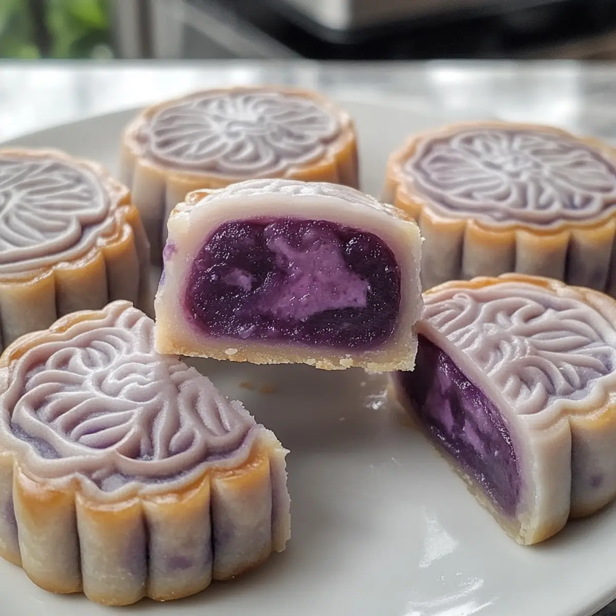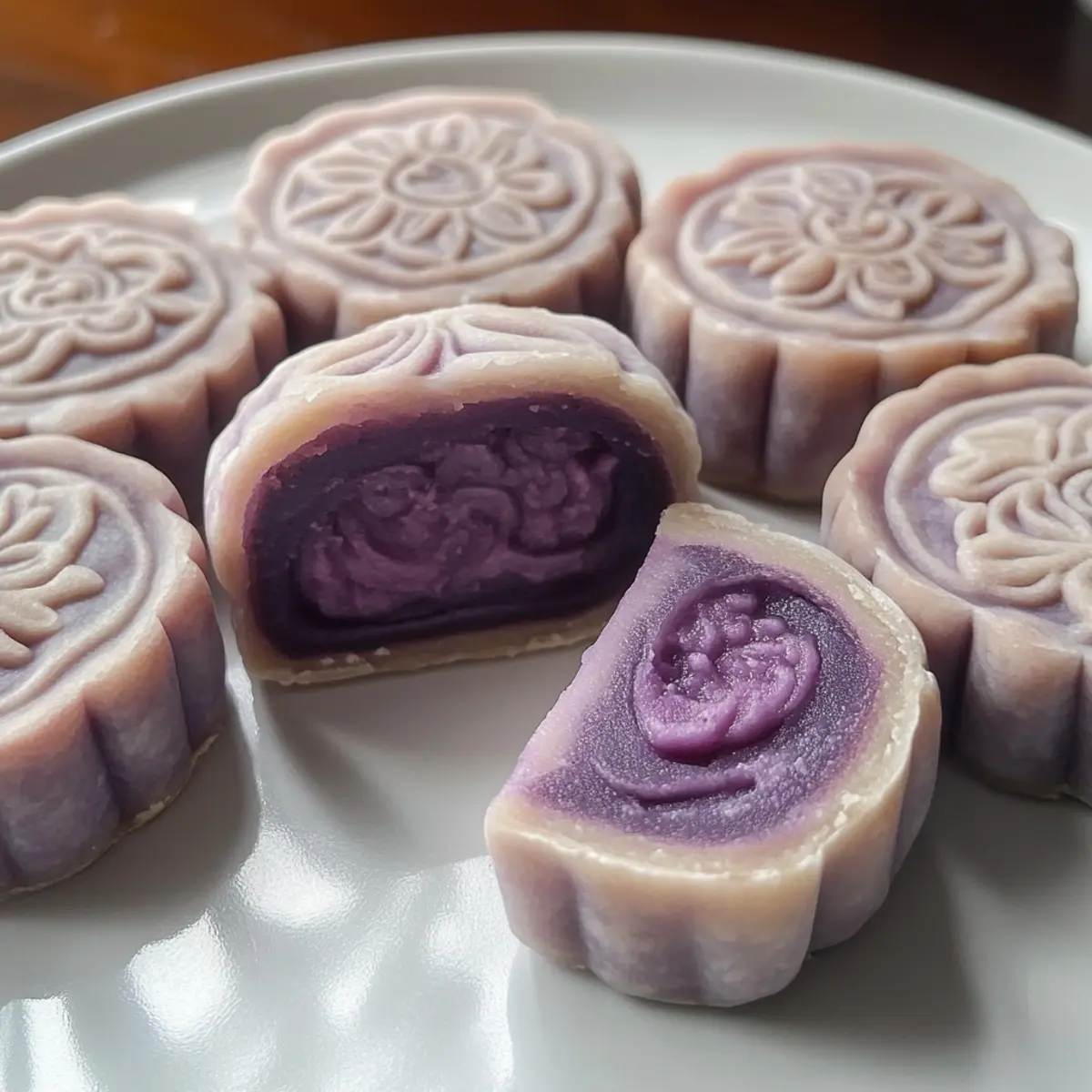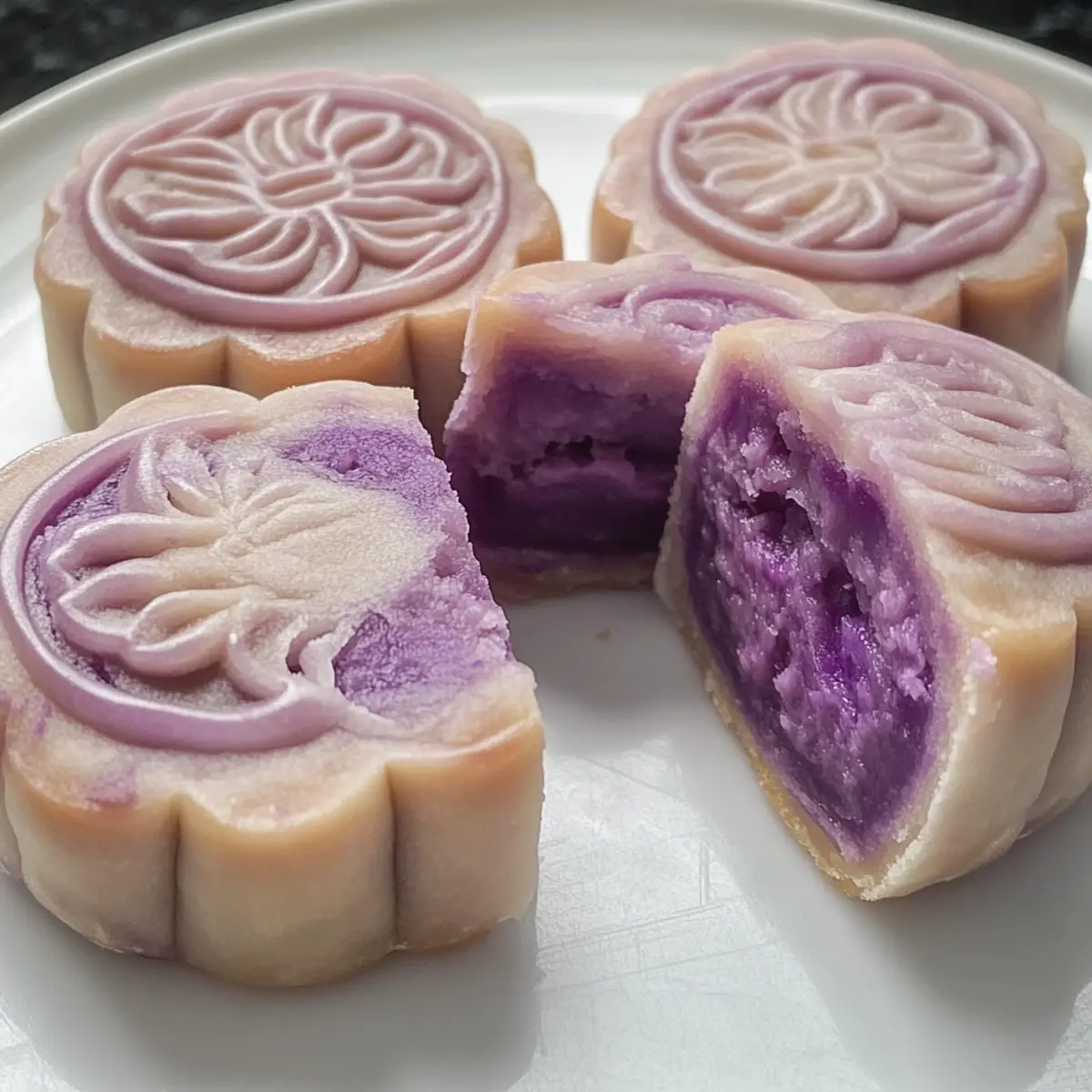 Die sanfte Kombination aus Aromen und Texturen dieser Lila Süßkartoffel Schneehaut Mondkuchen wird jeden Gourmand verzaubern. Während ich die zartschmelzende Füllung mit der samtigen, leicht klebrigen Haut zubereite, kann ich kaum an mich halten und denke an die Gemeinschaft, die diese köstlichen Leckereien während des Mid-Autumn Festivals zusammenbringt. Dieses Rezept ist nicht nur einfach zuzubereiten, sondern überzeugt zudem durch seine glutenfreien Zutaten – perfekt für alle, die eine gesunde Alternative zu herkömmlichen Desserts suchen. Ob als Teil deiner Feierlichkeiten oder als süßer Snack für zwischendurch, diese Mondkuchen bringen Farbe und Geschmack auf den Tisch. Neugierig, wie du sie selbst herstellen kannst? Lass uns gemeinsam in die Zubereitung eintauchen! Warum sind lila Süßkartoffel Mondkuchen besonders? Einzigartige Farben: Die leuchtend lila Farbe dieser Mondkuchen zieht sofort die Blicke auf sich und bringt einen Hauch von Festlichkeit auf den Tisch. Gesunde Süße: Mit lila Süßkartoffeln als Hauptzutat verwandelt sich dieser traditionelle Snack in eine nährstoffreiche Leckerei. Einfach zuzubereiten: Selbst Anfänger können diese Mondkuchen im Handumdrehen meistern und so Freunde und Familie beeindrucken. Glutenfrei: Ideal für alle, die nach glutenfreien Alternativen suchen – diese Mondkuchen passen perfekt in jede Diät. Vielseitig: Ob zu Tee, Kaffee oder einfach so – sie sind die perfekte Ergänzung zu jedem Moment. Wenn du auf der Suche nach weiteren interessanten Rezepten bist, schau dir auch unsere festlichen Dessertideen an! Lila Süßkartoffel Mondkuchen Zutaten • Für den Teig Reismehl – gibt den Mondkuchen Struktur; darauf achten, dass es kein klebriges Reismehl ist. Klebereismehl – sorgt für eine weiche, kaubare Textur; ist in asiatischen Lebensmittelgeschäften weit verbreitet. Weizenstärke – verleiht der Schneehaut eine durchscheinende Erscheinung; unterscheidet sich von normalem Weizenmehl. Milch + Lila Süßkartoffel Flüssigkeit (130 ml) – sorgt für Feuchtigkeit und natürliche Farbe beim Dämpfen der lila Süßkartoffeln. Gesüßte Kondensmilch (25 g) – bringt Süße und Reichhaltigkeit in Teig und Füllung. Puderzucker (40 g) – hebt die Süße hervor und trägt zu einer leichten Textur bei. Pflanzenöl (25 g für den Teig, 25 g für die Füllung) – hilft, eine glatte Textur in beiden Komponenten zu erreichen. • Für die Füllung Geschälte lila Süßkartoffeln (145 g) – Hauptzutat für die Füllung, bringt Geschmack und Farbe. Wasser (100 ml + 60 ml) – wird zum Dämpfen der Süßkartoffeln und Mixen der Füllung verwendet. Salz (1/4 Teelöffel) – verstärkt den Geschmack in der Füllung. Kokoscreme (55 g) – fügt der Füllung Reichtum und einen subtilen tropischen Geschmack hinzu. Diese lila Süßkartoffel Mondkuchen sind nicht nur ein Fest für die Augen, sondern auch eine köstliche glutenfreie Leckerei, die alle im Handumdrehen begeistert! Schritt-für-Schritt-Anleitung für Lila Süßkartoffel Schneehaut Mondkuchen Schritt 1: Füllung zubereiten Dämpfe die geschälten lila Süßkartoffeln für 11-12 Minuten, bis sie weich sind. In einem Mixer vermenge die warmen Süßkartoffeln mit 60 ml Wasser, Weizenstärke, Salz, Kokoscreme und gesüßter Kondensmilch, bis eine glatte Masse entsteht. Gib die Mischung in eine antihaftbeschichtete Pfanne und erhitze sie bei mittlerer Hitze, bis sie eine pasteuse Konsistenz erreicht. Lass die Füllung abkühlen und stelle sie anschließend in den Kühlschrank. Schritt 2: Teig für die Schneehaut herstellen In einer Schüssel vermenge Reismehl, Klebereismehl, Weizenstärke, Puderzucker und gesüßte Kondensmilch gründlich. Mische 130 ml der lila Süßkartoffel-Flüssigkeit mit Milch und füge dies zu den trockenen Zutaten hinzu. Stelle die Mischung in einen Dampfeinsatz und dämpfe sie für 25 Minuten bei mittlerer Hitze, bis der Teig durchgegart ist. Lass den Teig kurz abkühlen, bevor du ihn mit Pflanzenöl zu einer glatten Masse knetest. Schritt 3: Mondkuchen formen Teile die gekühlte Füllung in 12 gleichmäßige Portionen von etwa 25 g und forme sie zu kleinen Bällen. Teile den Teig in 12 gleich große Stücke und forme jedes Stück zu einer flachen Scheibe. Platziere einen Füllungsball in der Mitte und umschließe die Füllung gut mit dem Teig. Rolle sie zu einer Kugel und achte darauf, dass kein Teig sichtbar bleibt. Schritt 4: Mondkuchen pressen und kühlen Bestäube die geformten Mondkuchen leicht mit gekochtem Klebereismehl, um das Festkleben zu verhindern. Verwende Mondkuchenformen, um die Kugeln gleichmäßig zu drücken und ihnen ihre traditionelle Form zu geben. Lege die geformten Mondkuchen auf ein Tablett und kühle sie für mindestens 2 Stunden im Kühlschrank, bevor du sie servierst. Schritt 5: Servieren und genießen Nach dem Kühlen sind deine Lila Süßkartoffel Schneehaut Mondkuchen bereit, genossen zu werden! Sie sind perfekt für das Mid-Autumn Festival oder als köstlicher Snack zwischendurch. Serviere sie gekühlt zusammen mit einer Tasse Tee oder Kaffee für ein besonderes Geschmackserlebnis. Aufbewahrungstipps für Lila Süßkartoffel Mondkuchen Raumtemperatur:: Vermeide es, die Mondkuchen bei Raumtemperatur zu lagern, da sie schnell austrocknen können. Kühlschrank:: Bewahre die Lila Süßkartoffel Schneehaut Mondkuchen in einem luftdichten Behälter im Kühlschrank auf, um sie bis zu 1 Woche frisch zu halten. Gefrierschrank:: Du kannst die Mondkuchen bis zu 1 Monat im Gefrierschrank aufbewahren. Lege sie in einen gefriersicheren Behälter und schichte sie mit Backpapier, um ein Zusammenkleben zu verhindern. Wiedererwärmen:: Um die Mondkuchen zu genießen, erwärme sie kurz in der Mikrowelle für etwa 10–15 Sekunden, damit sie wieder weich werden, ohne die Textur zu verlieren. Was zu Lila Süßkartoffel Schneehaut Mondkuchen servieren? Genieße die sanfte Verbindung von Aromen und Texturen dieser köstlichen Nachspeise, perfe