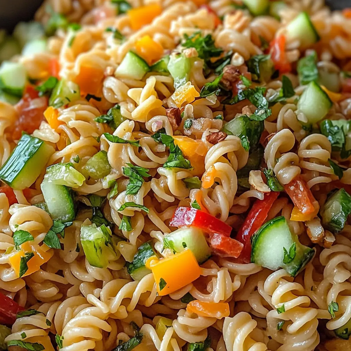 Einfrieren: Für das Einfrieren ist dieser Nudelsalat nicht optimal, da die Textur der frischen Zutaten und des Dressings nach dem Auftauen leiden kann.
