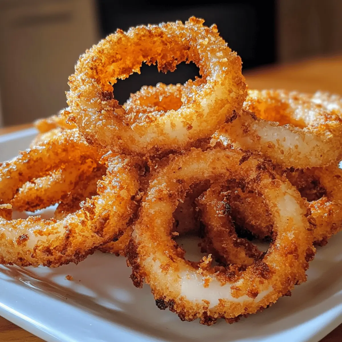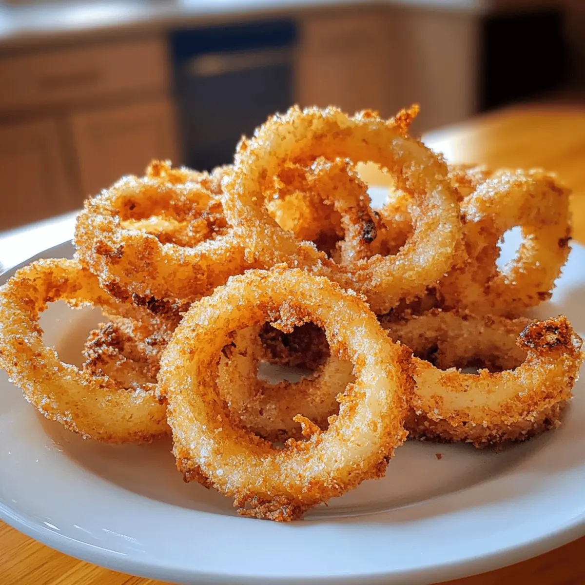 Knusprige Perfektion: Diese Zwiebelringe werden wunderbar knusprig, während sie gleichzeitig leicht und gesund bleiben.